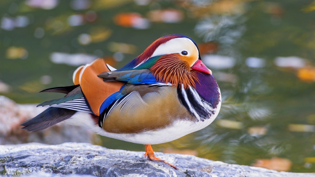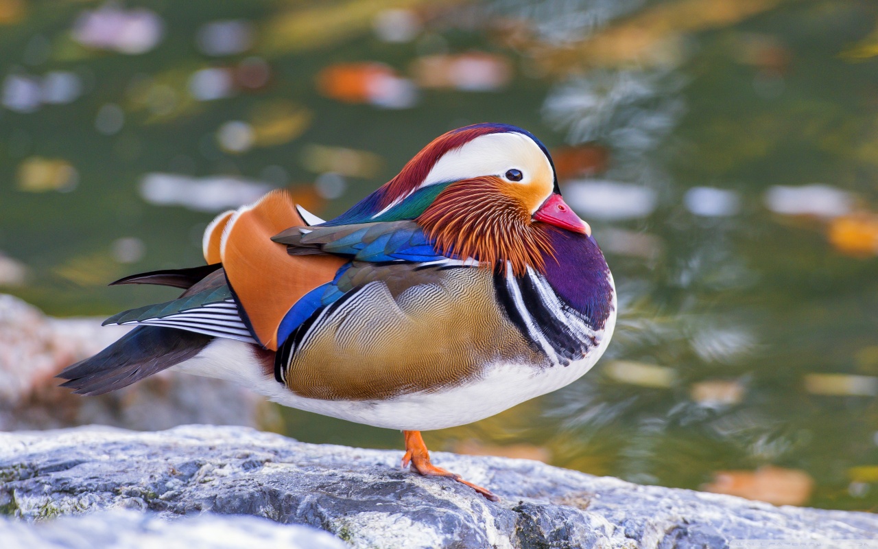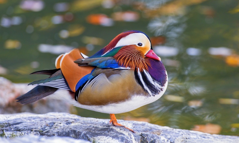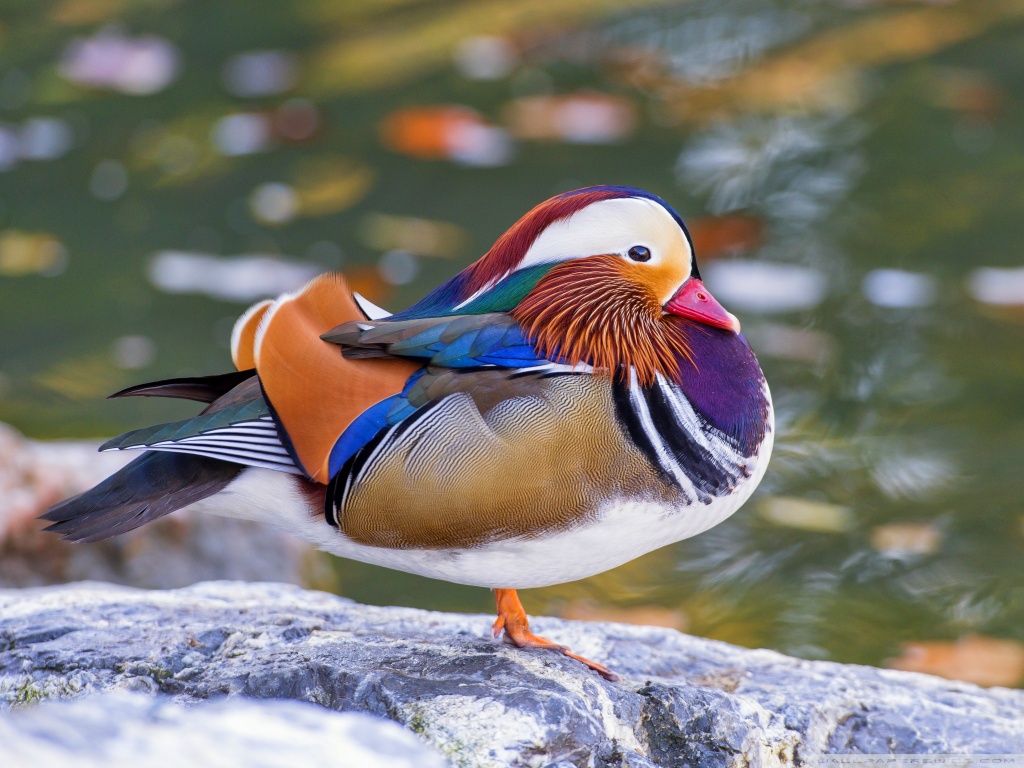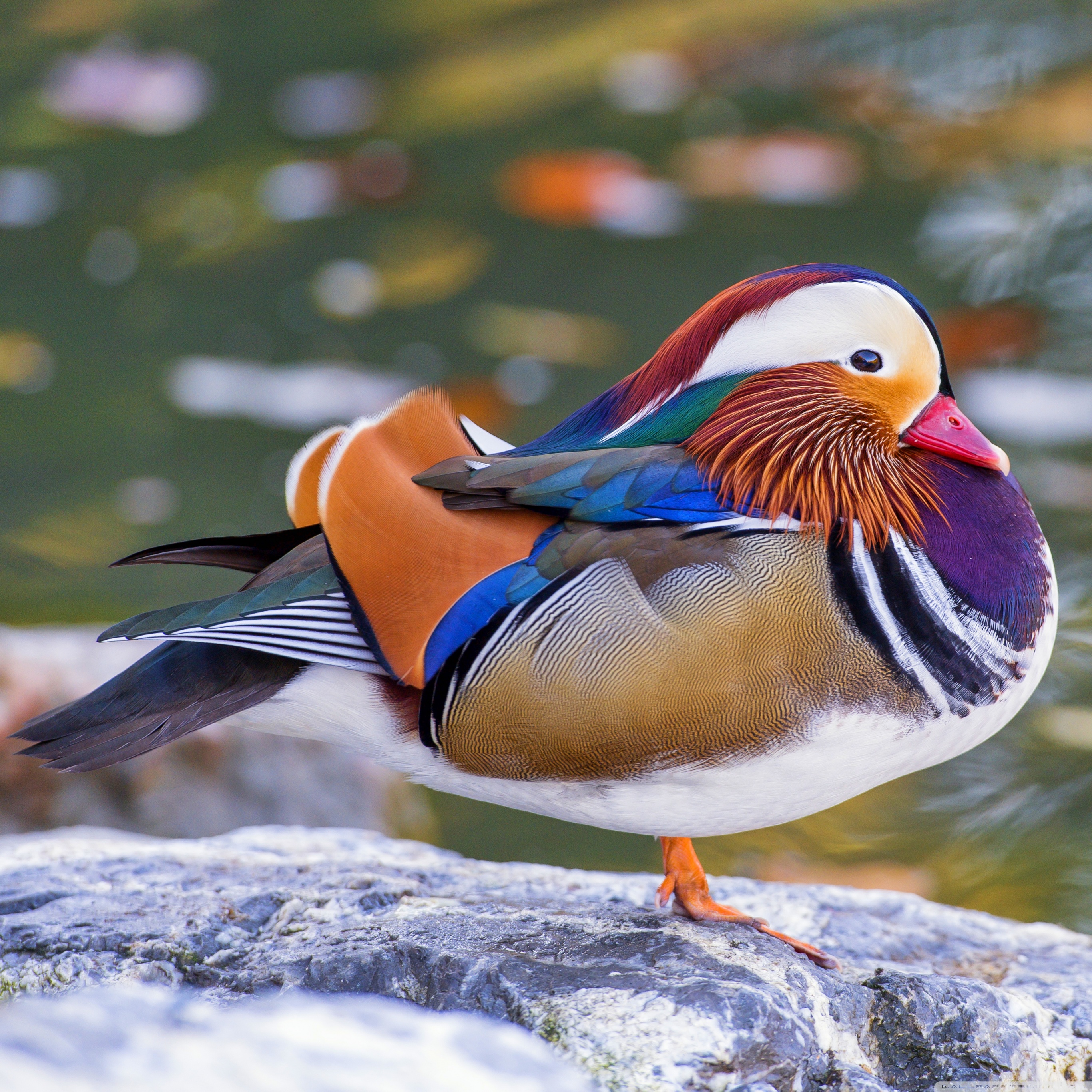 Download Mandarin Duck on the Rock 4K UHD Wallpaper