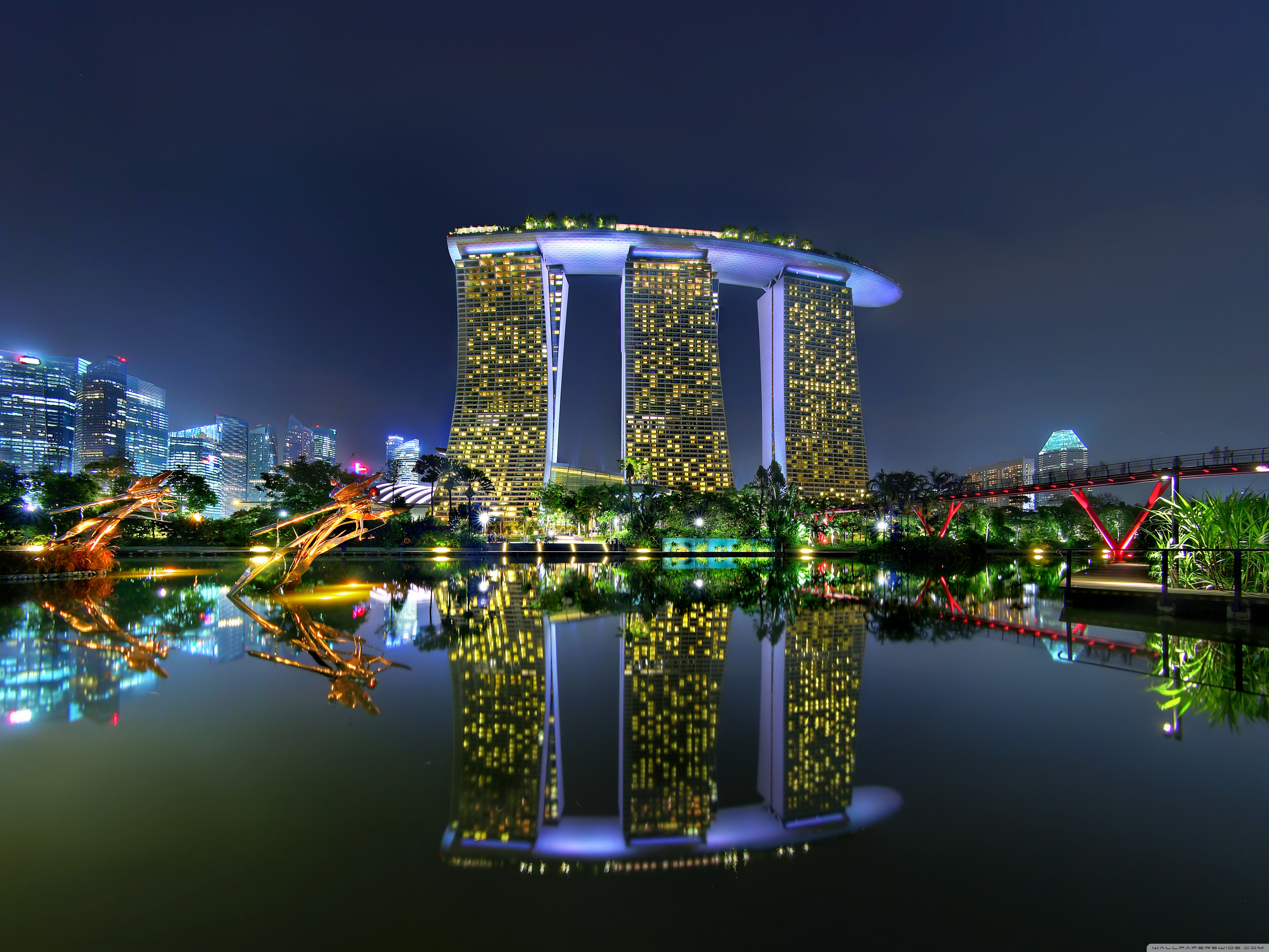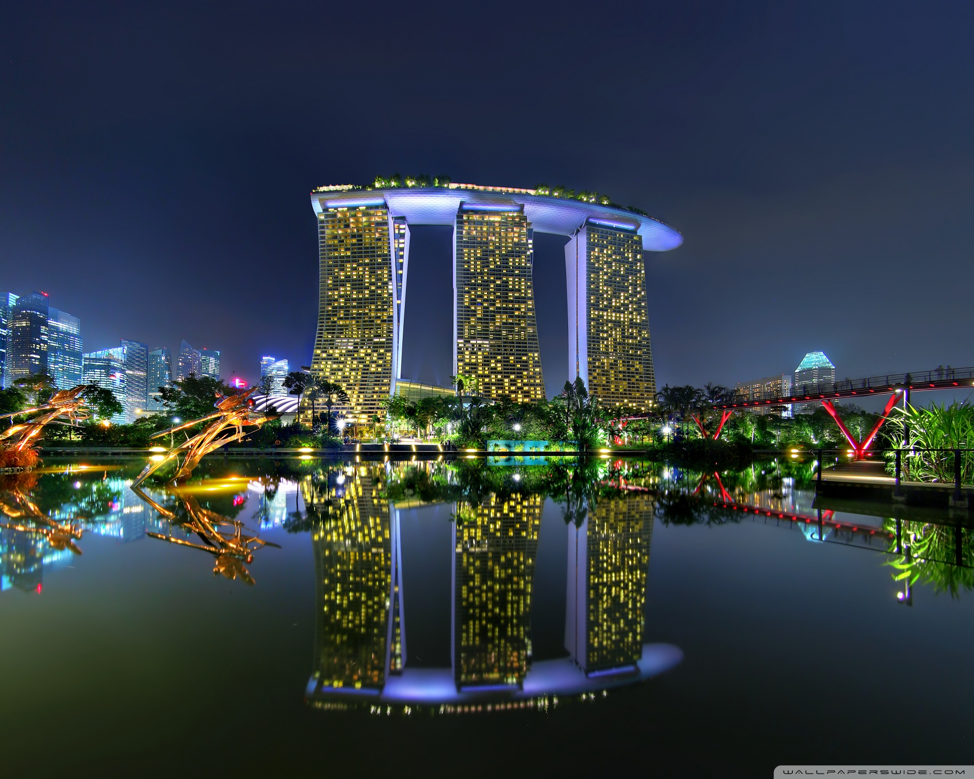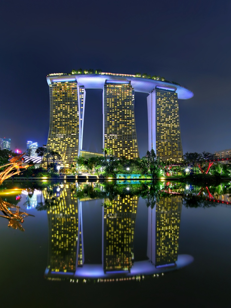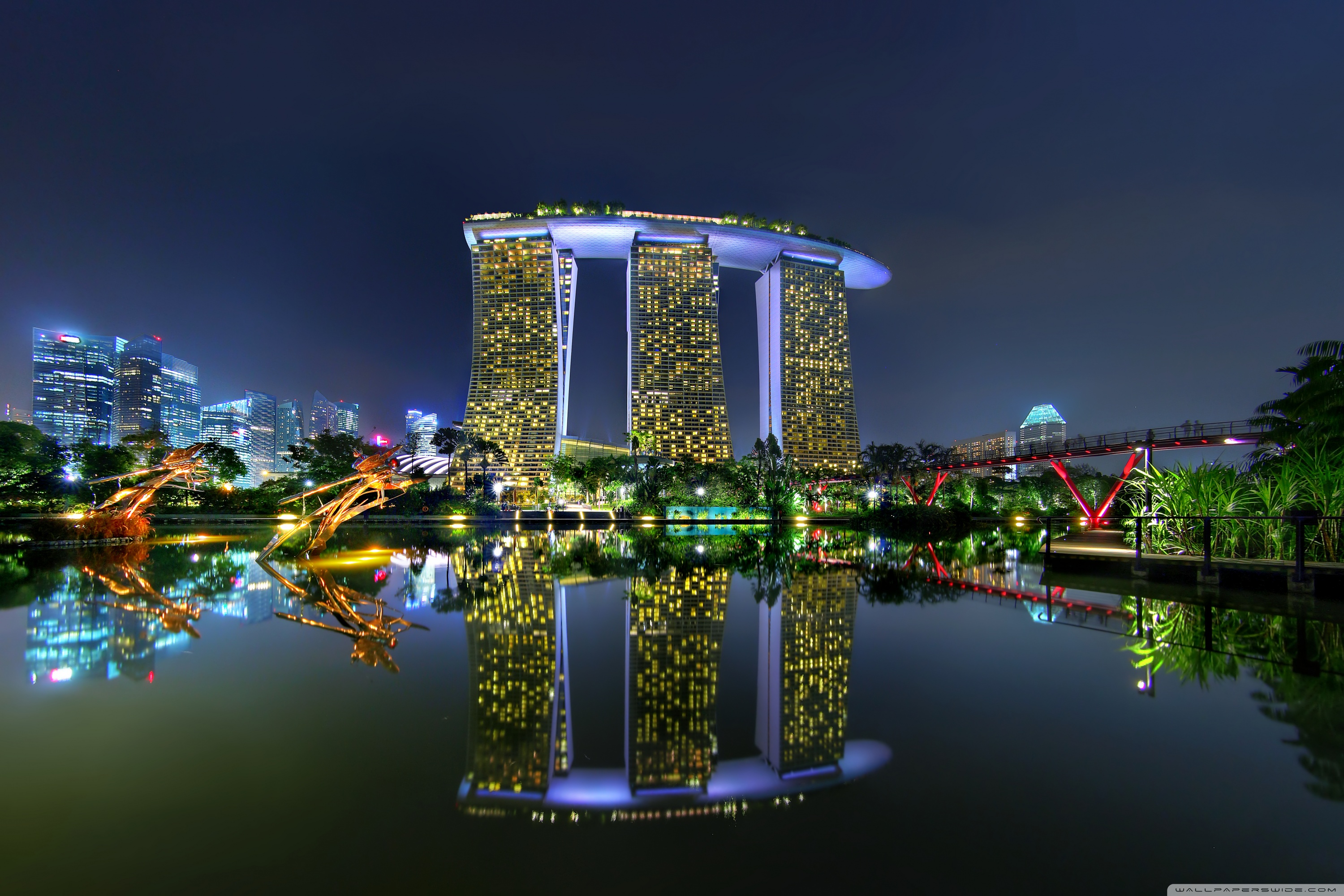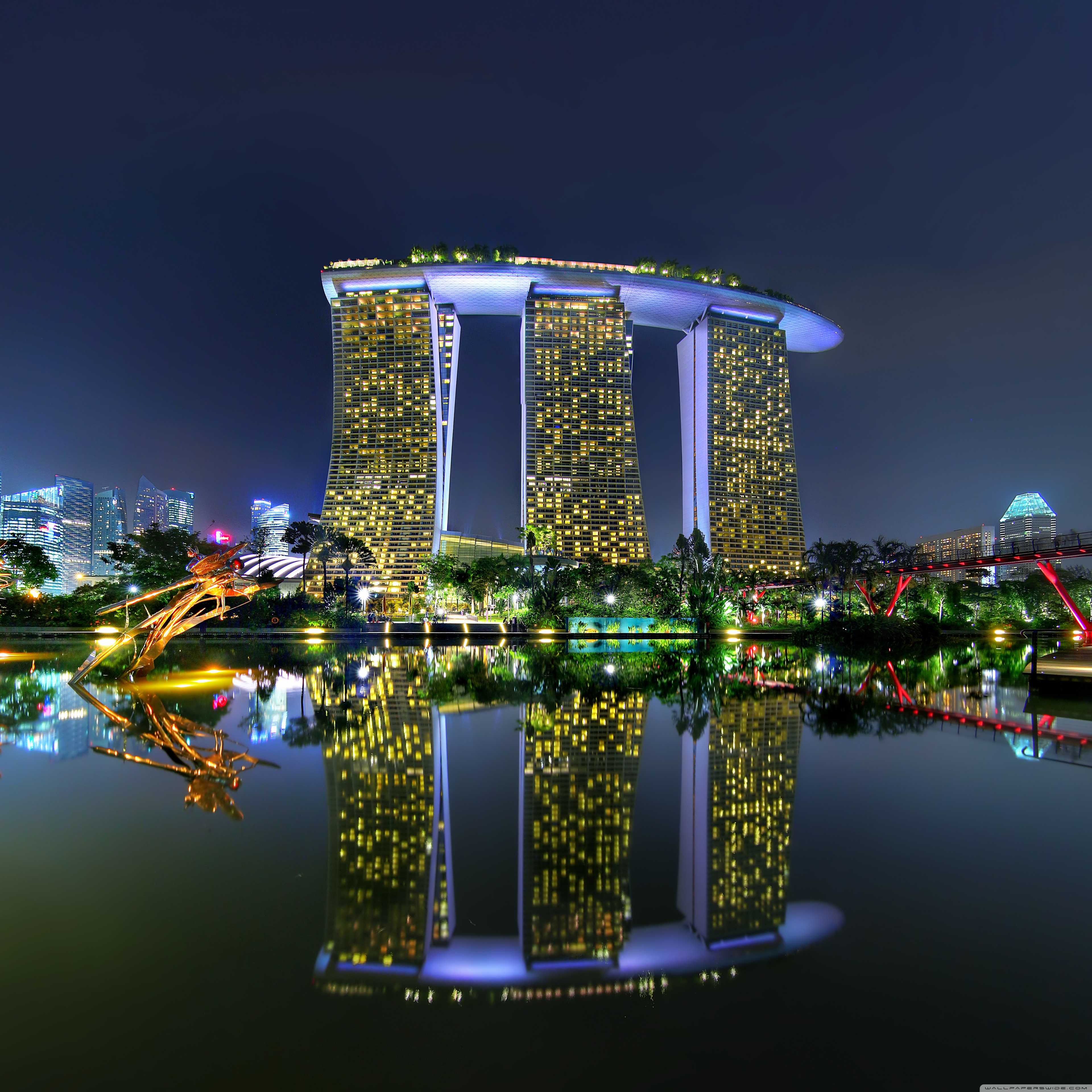 Download Marina Bay Sands Reflection At Dragonfly Lake 4K UHD Wallpaper