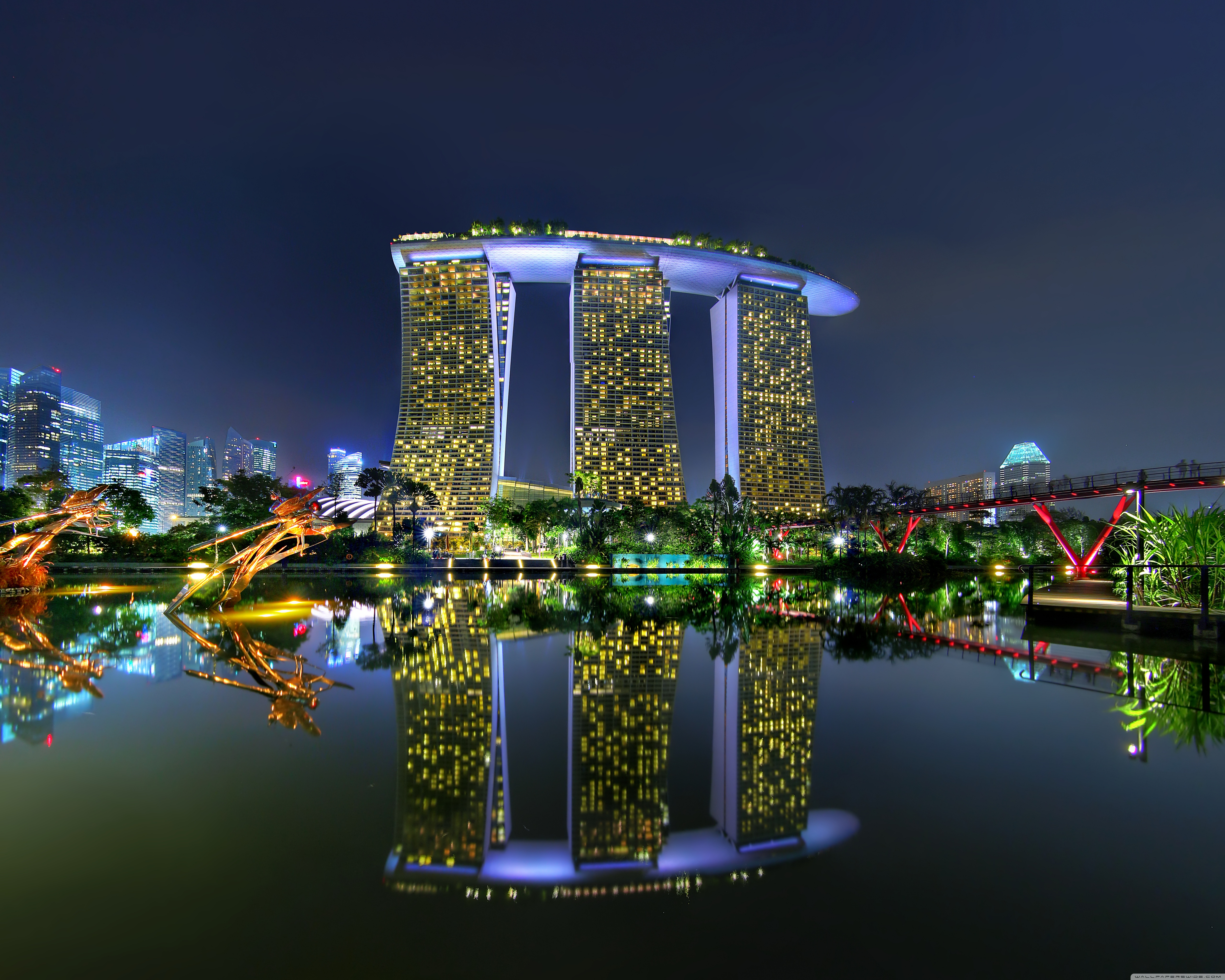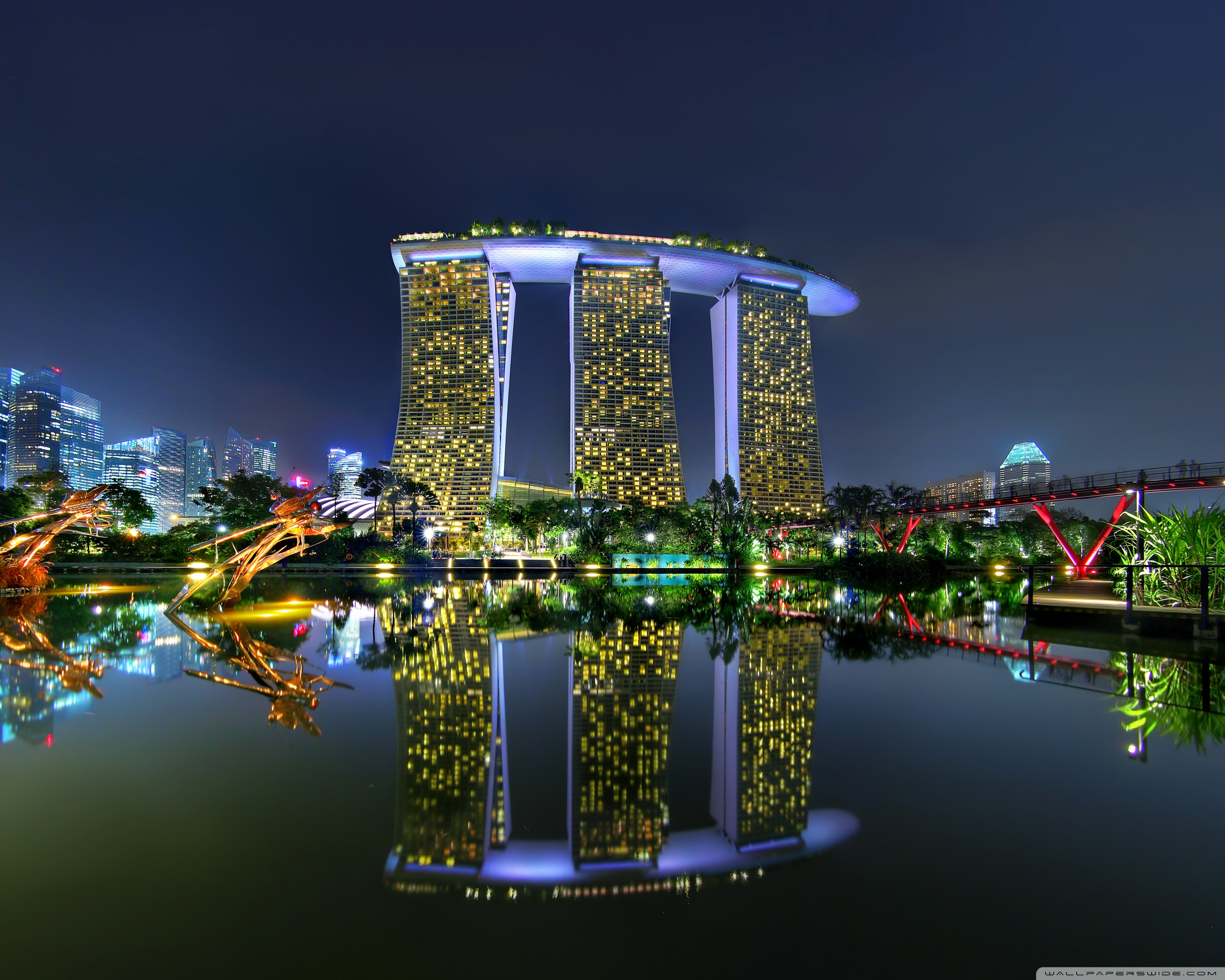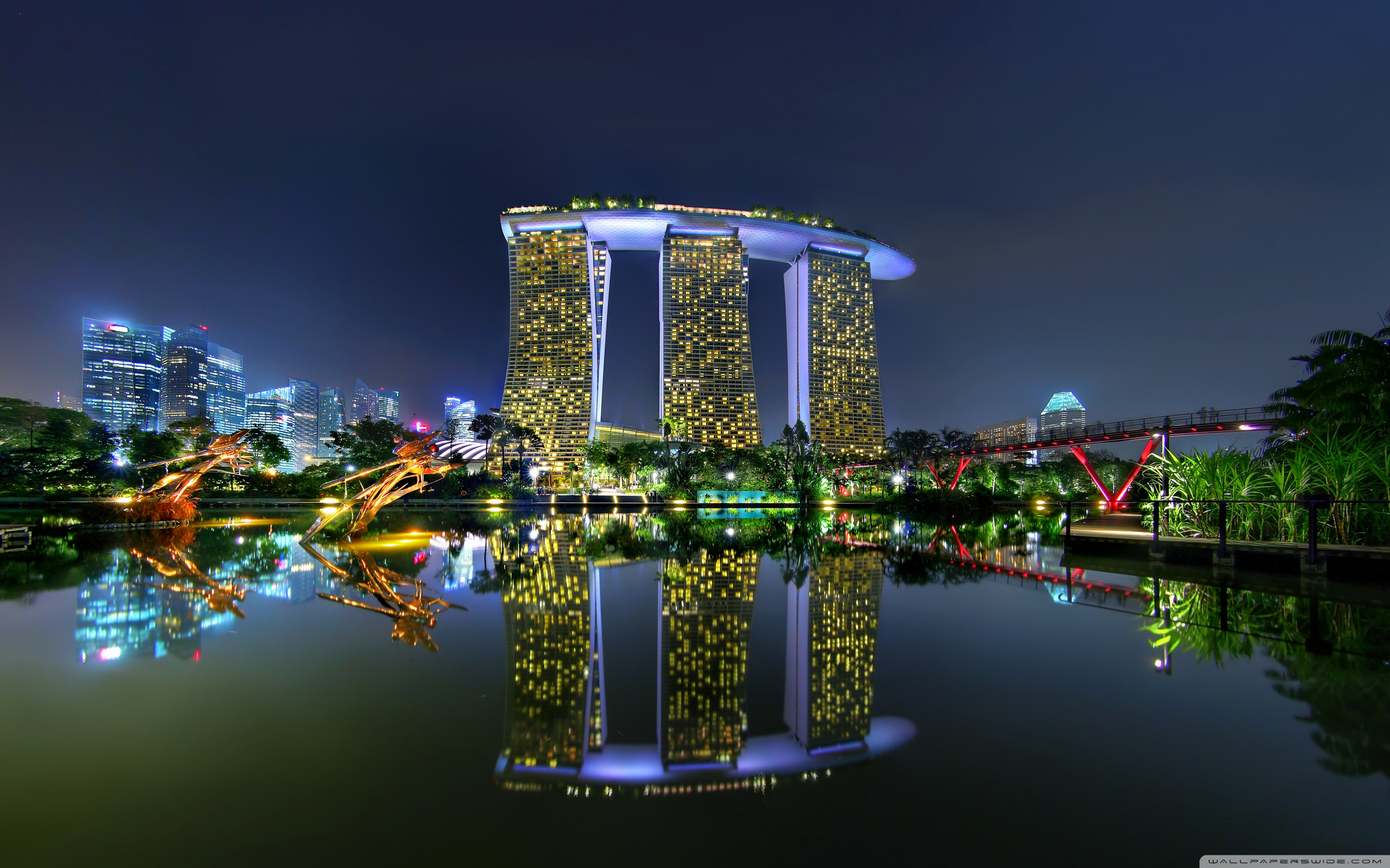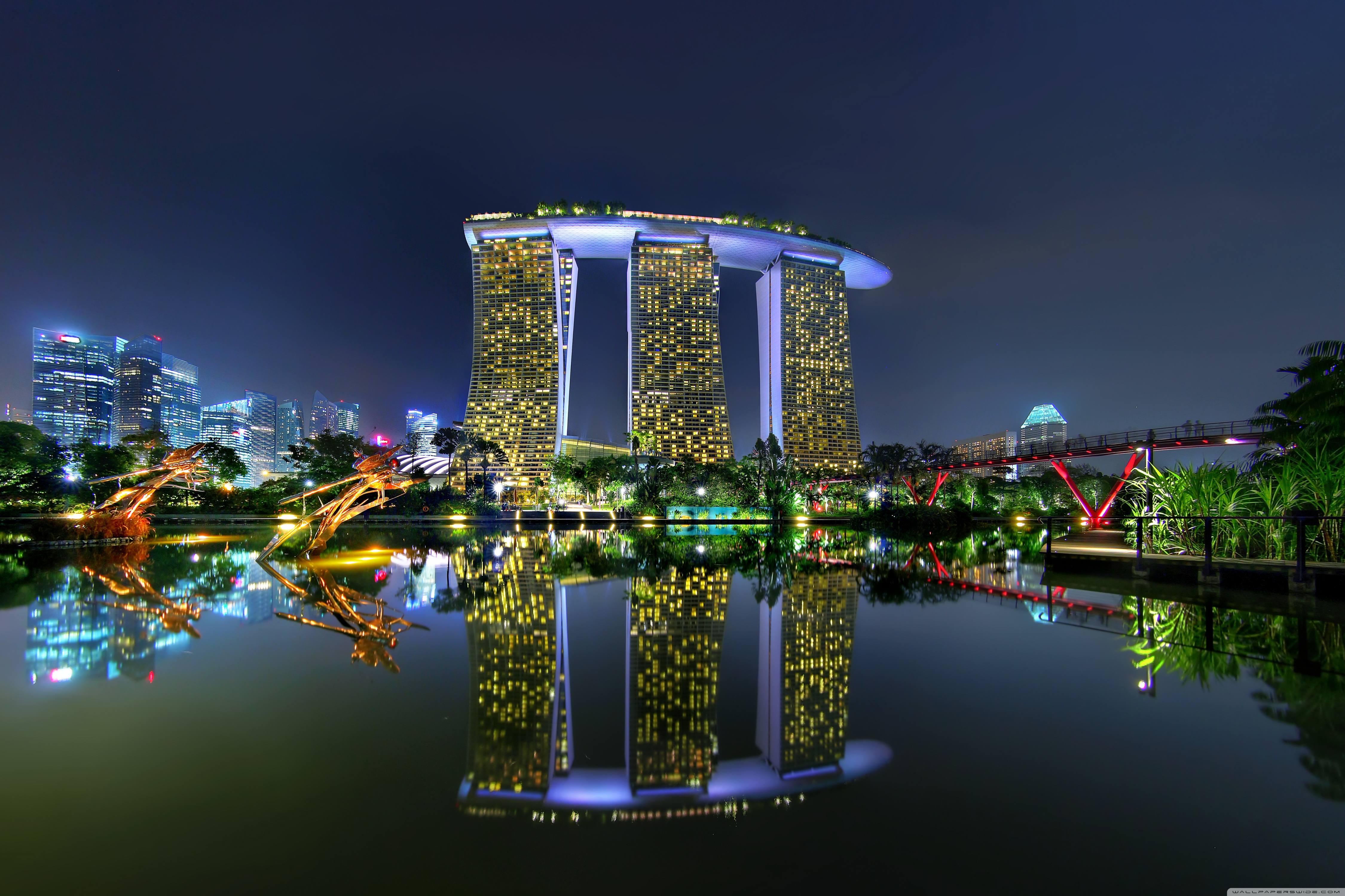 Download Marina Bay Sands Reflection At Dragonfly Lake 4K UHD Wallpaper
