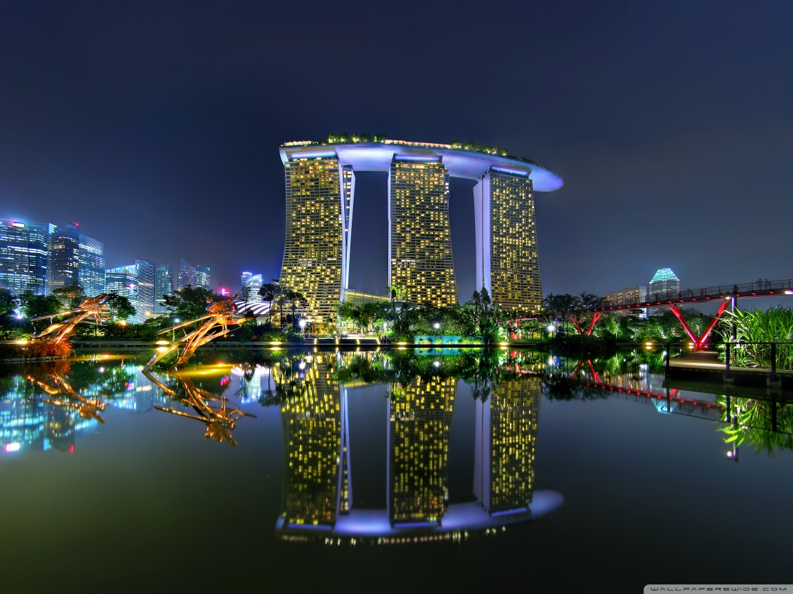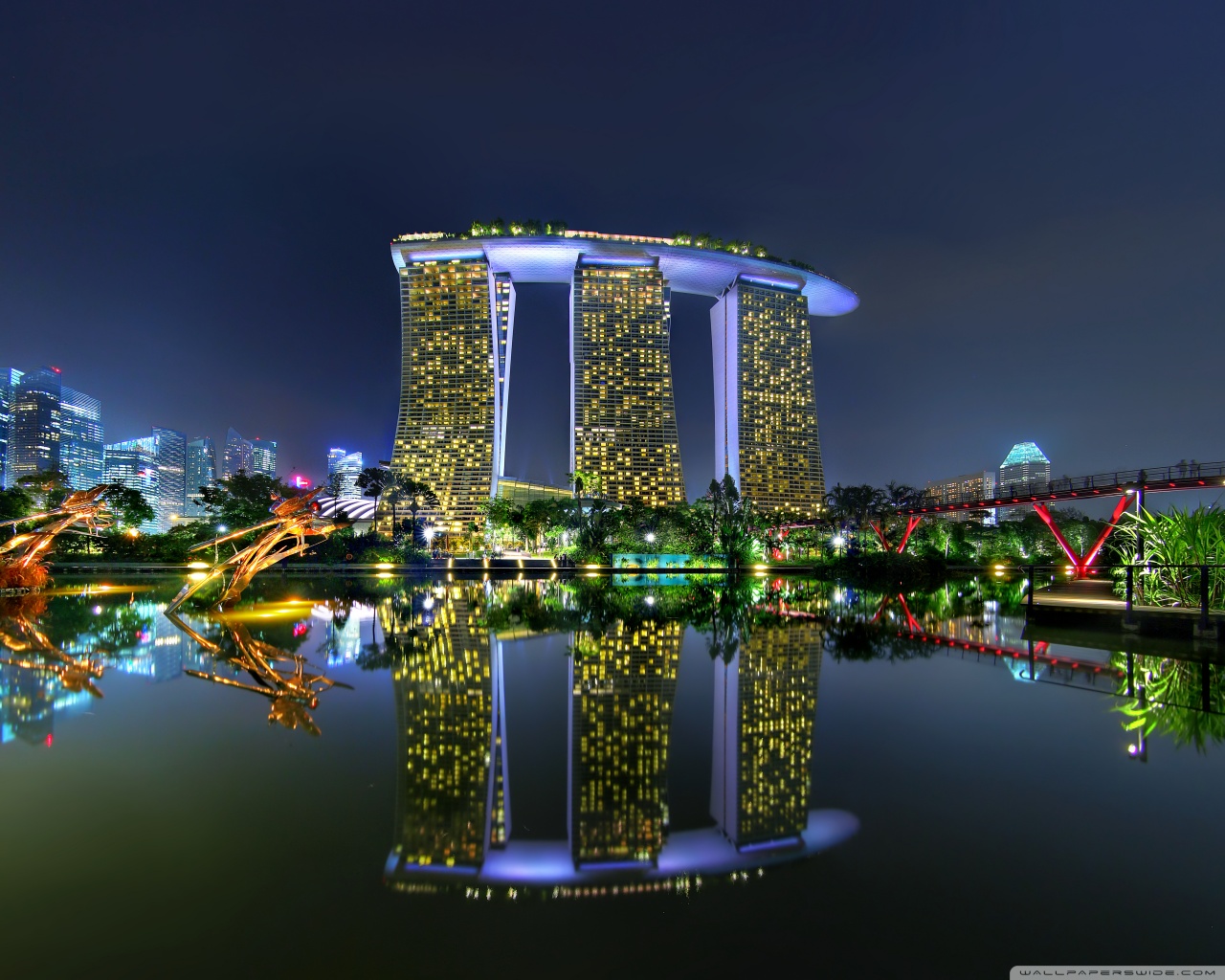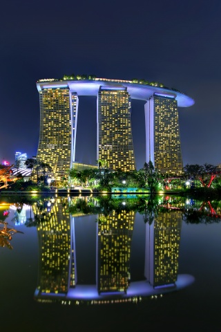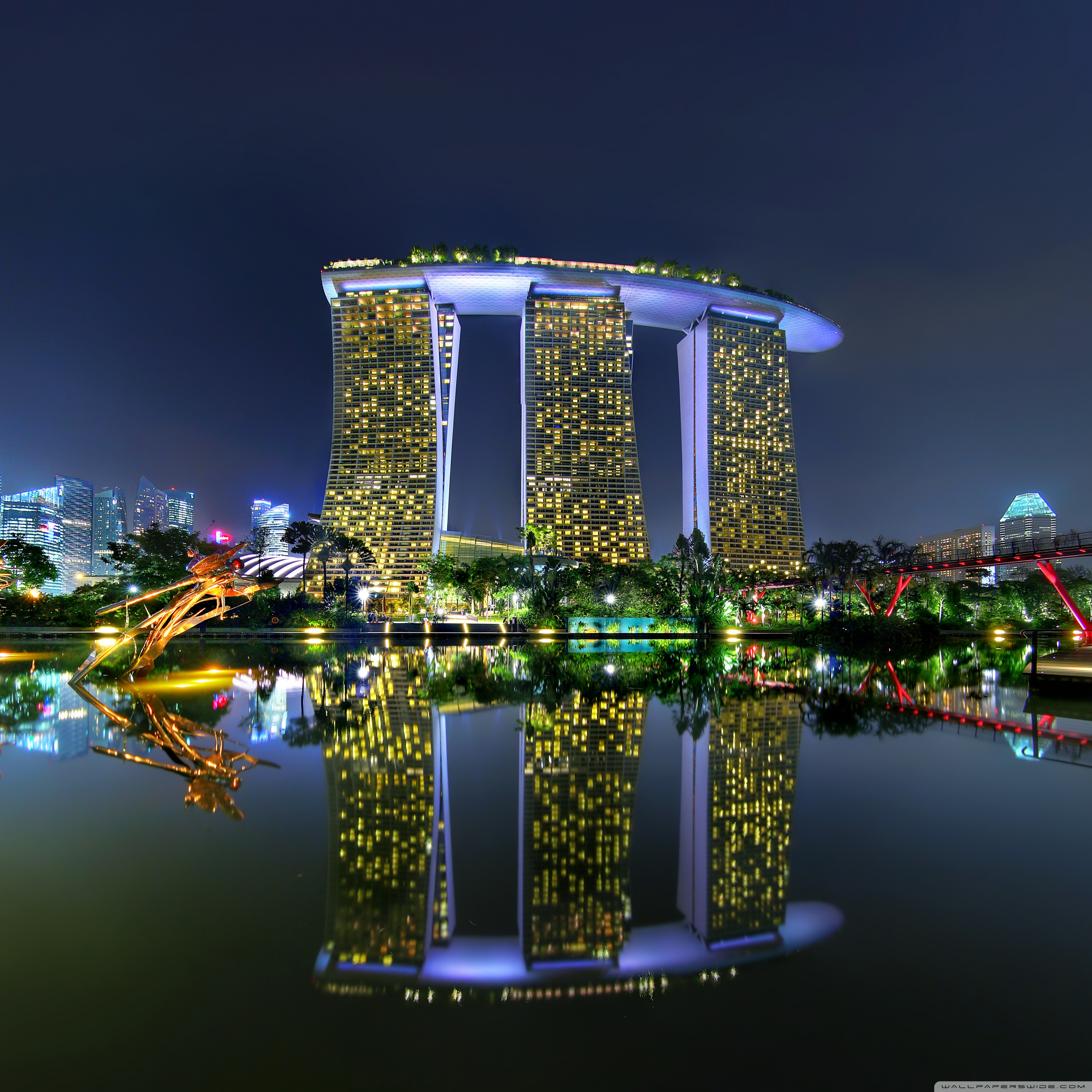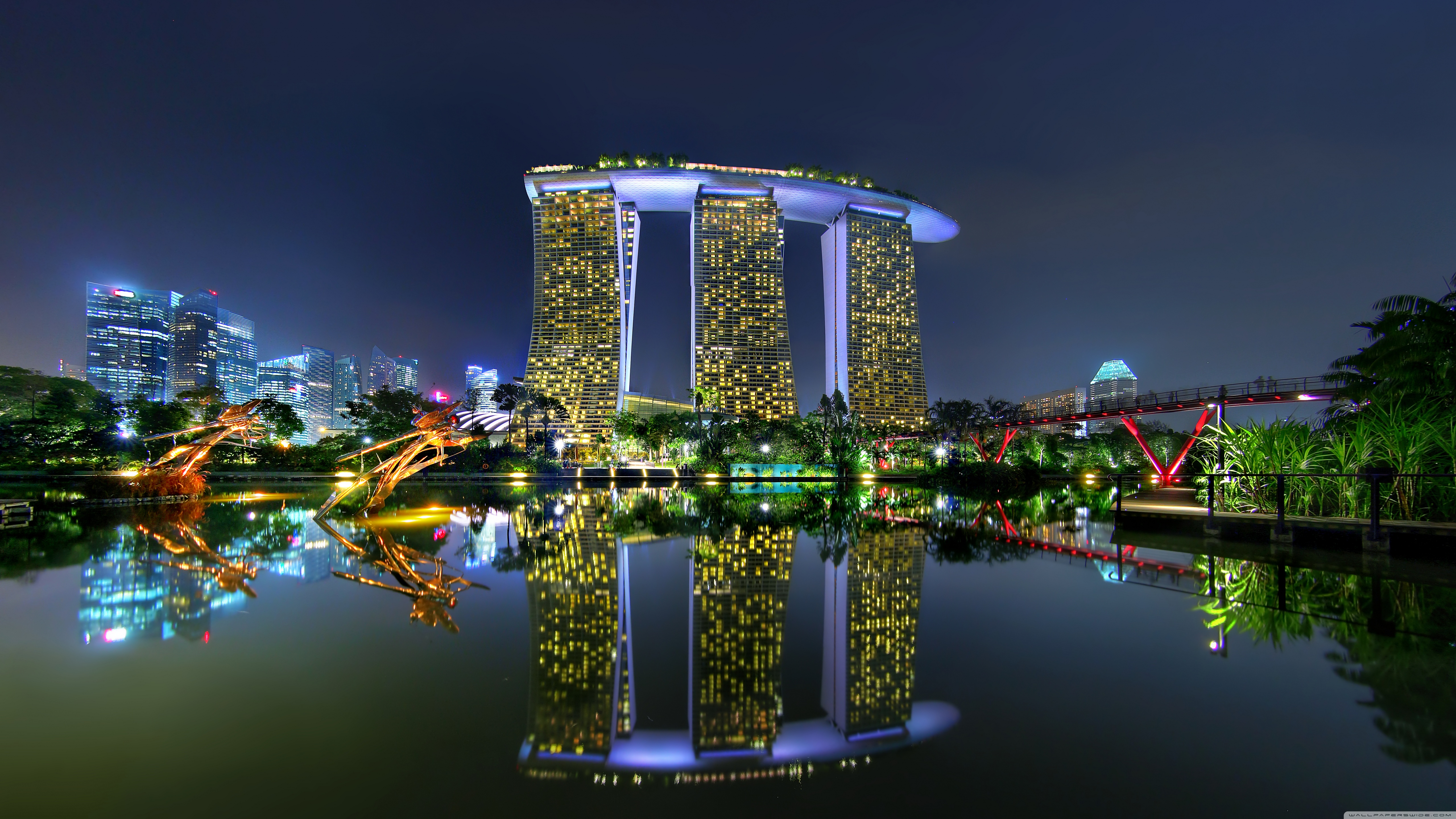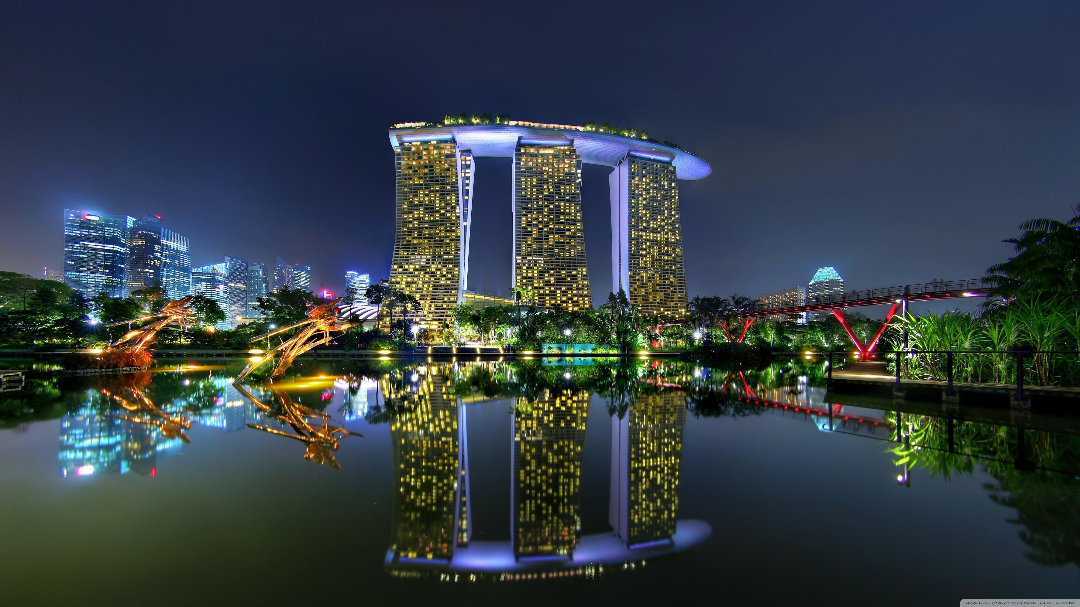 Download Marina Bay Sands Reflection At Dragonfly Lake 4K UHD Wallpaper