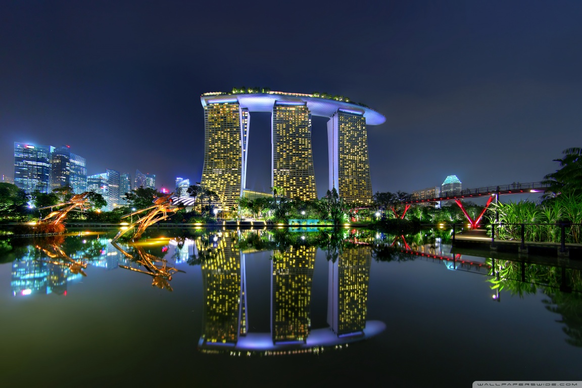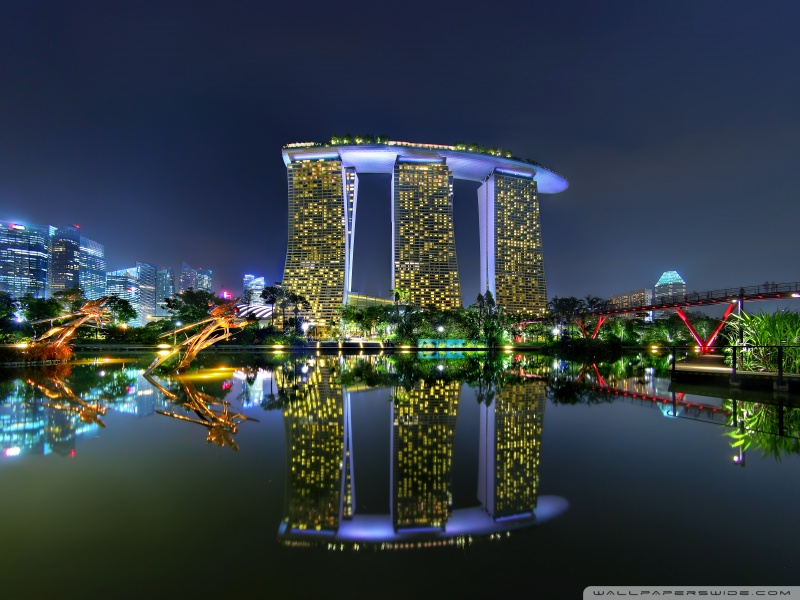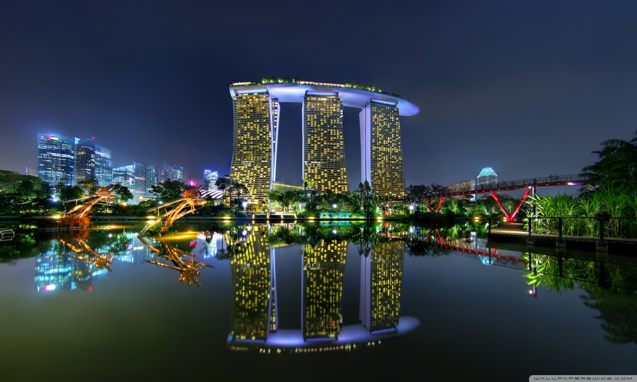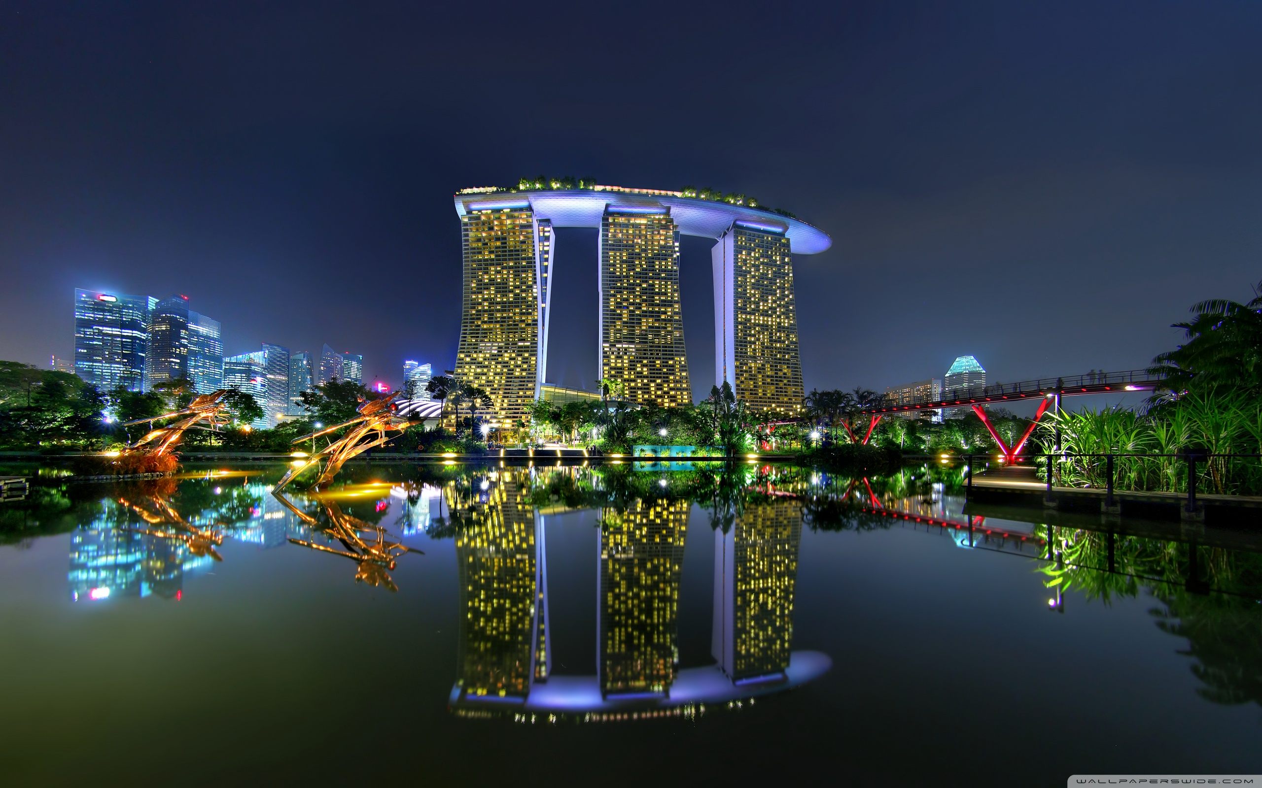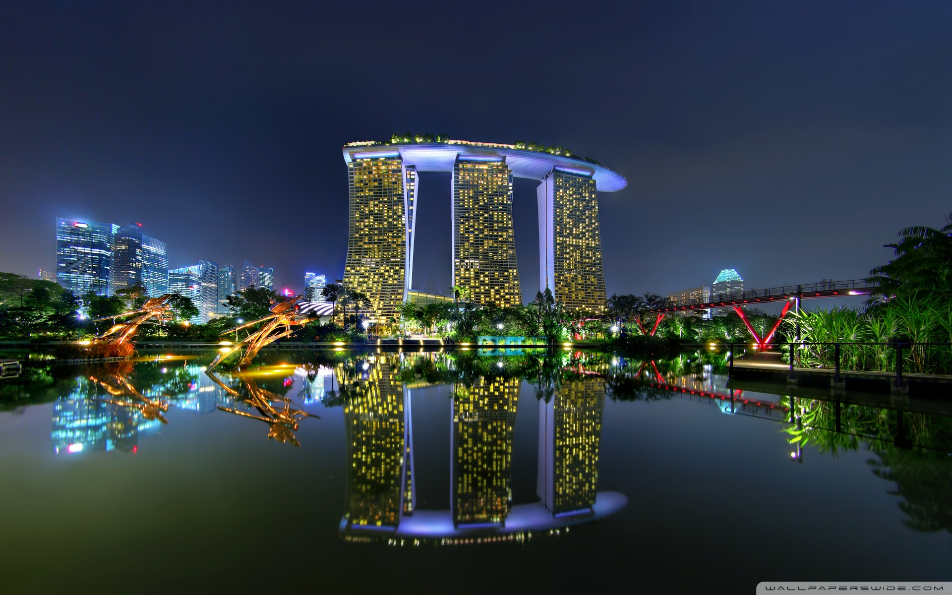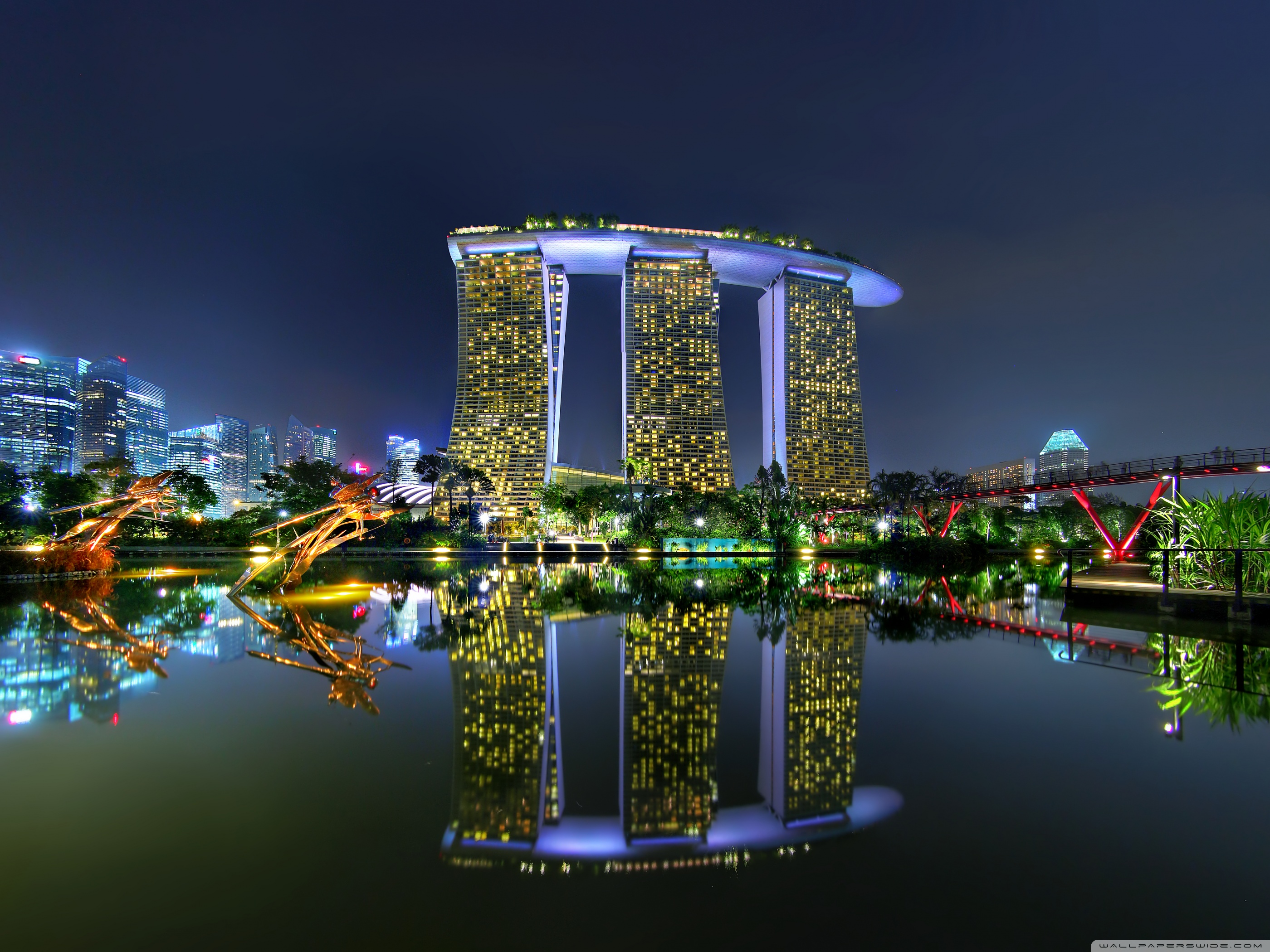 Download Marina Bay Sands Reflection At Dragonfly Lake 4K UHD Wallpaper