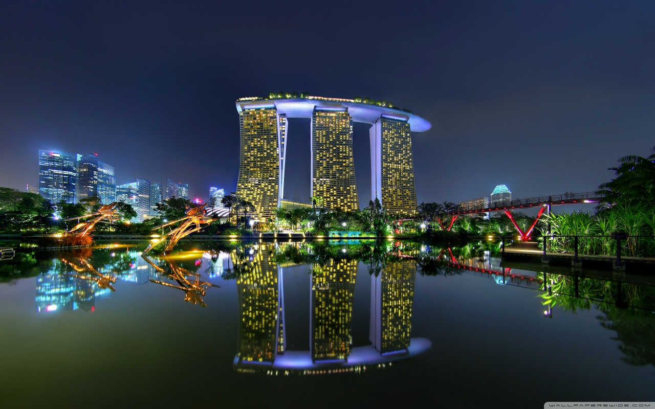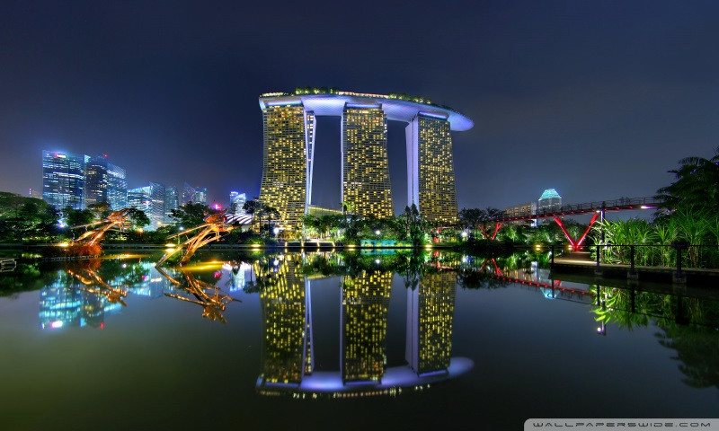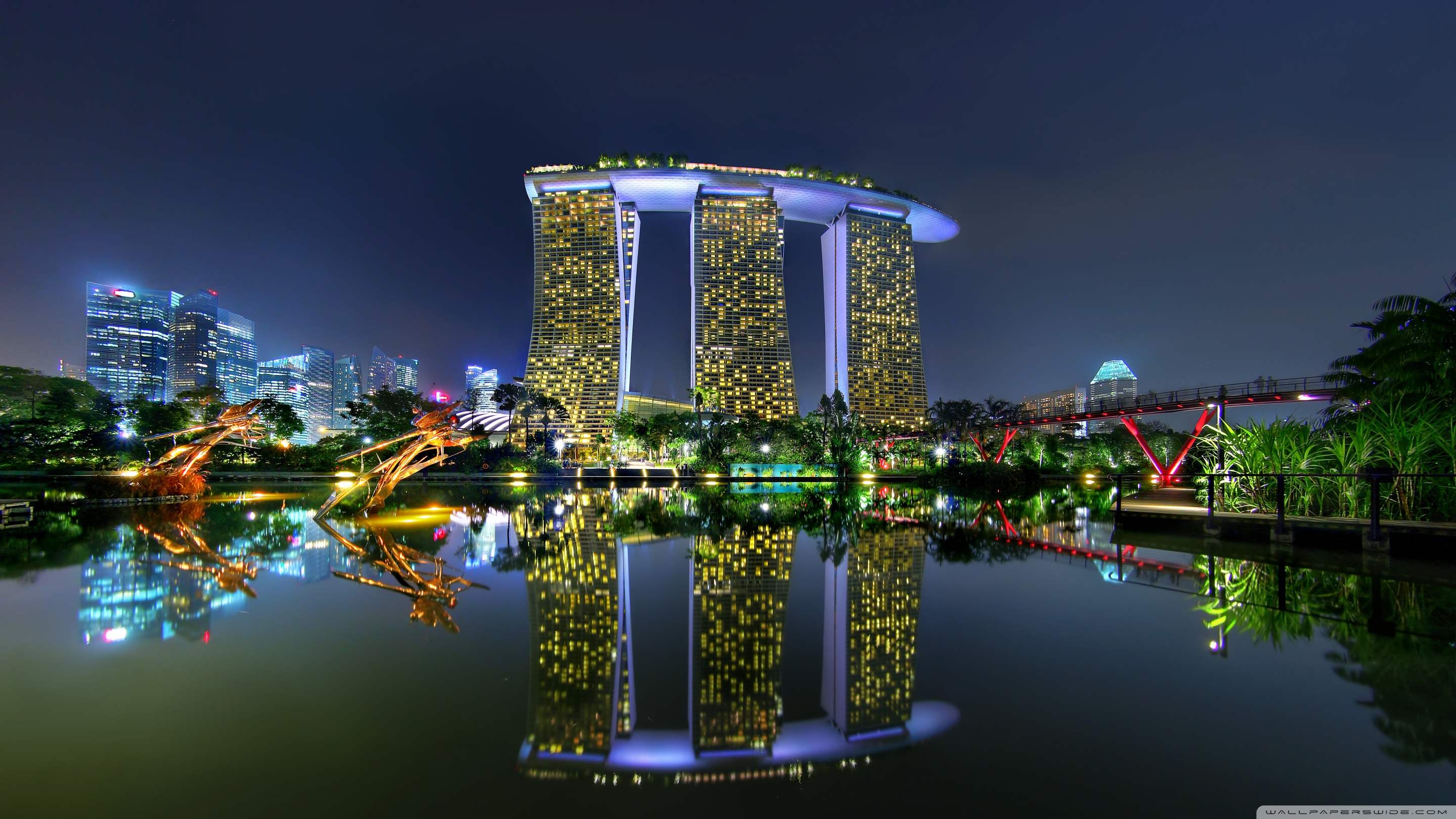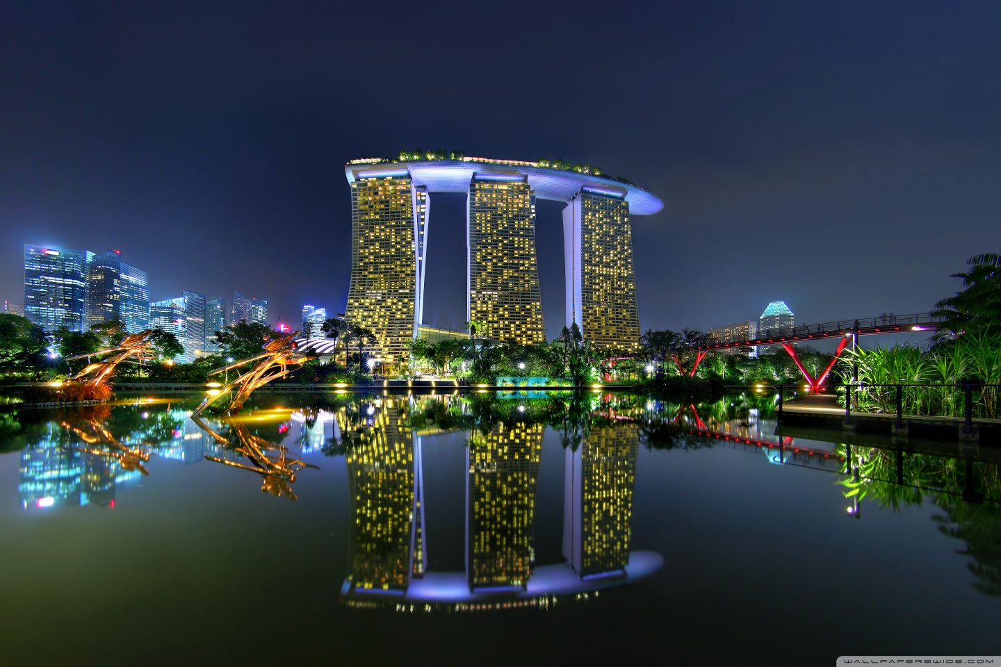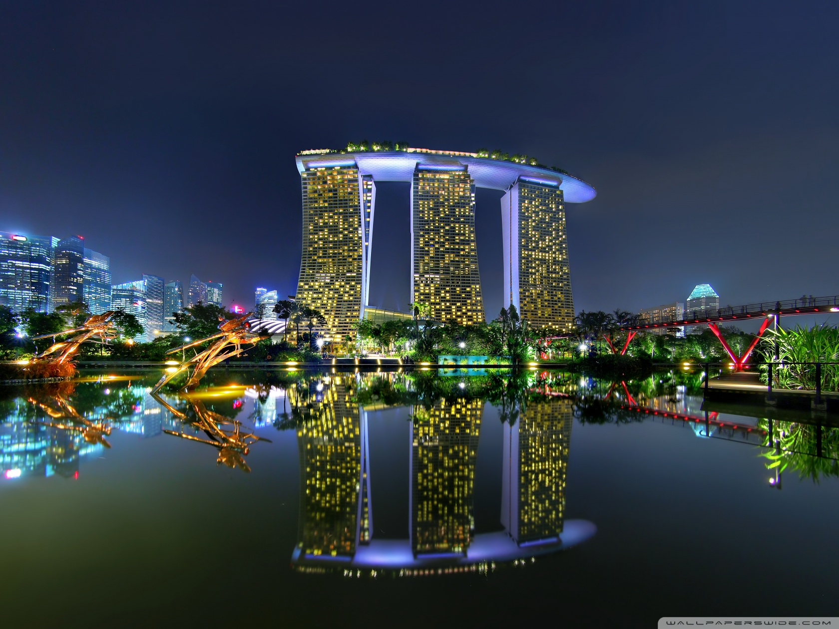 Download Marina Bay Sands Reflection At Dragonfly Lake 4K UHD Wallpaper