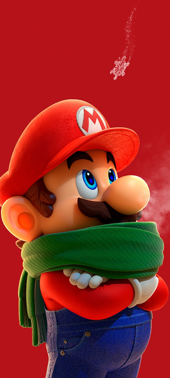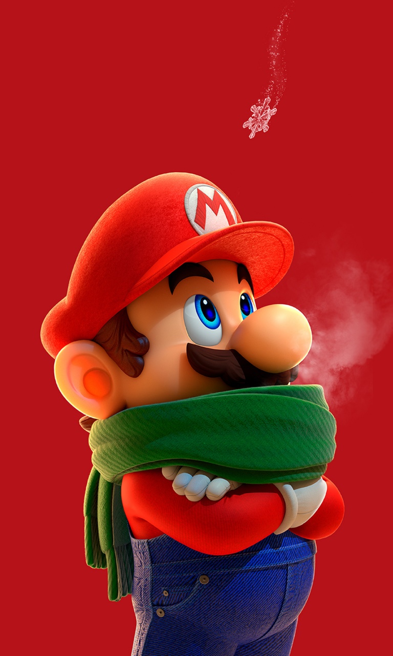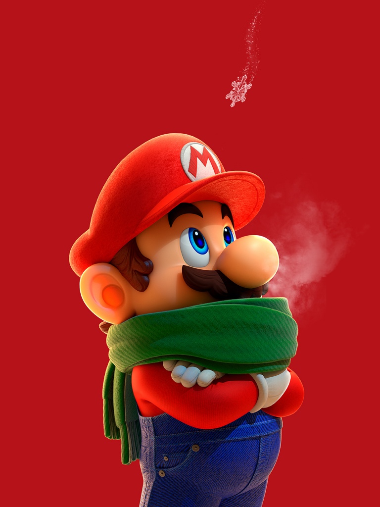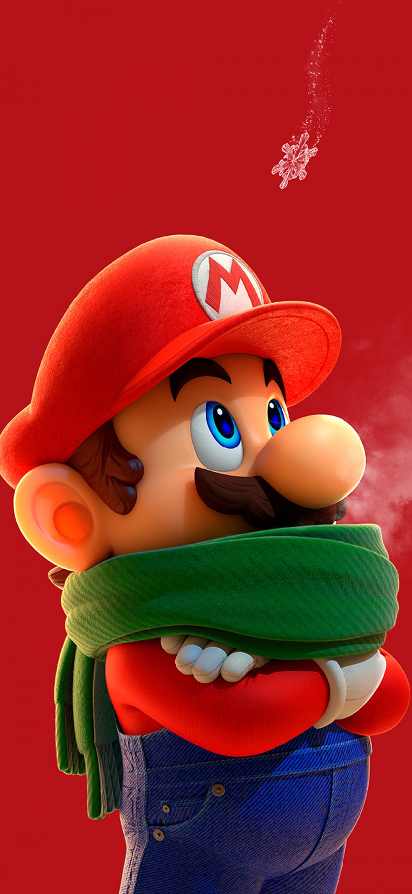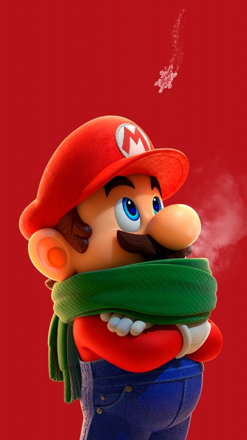 Download Mario Wearing a Winter Scarf 4K UHD Wallpaper