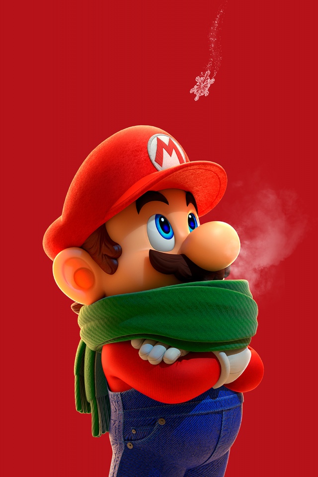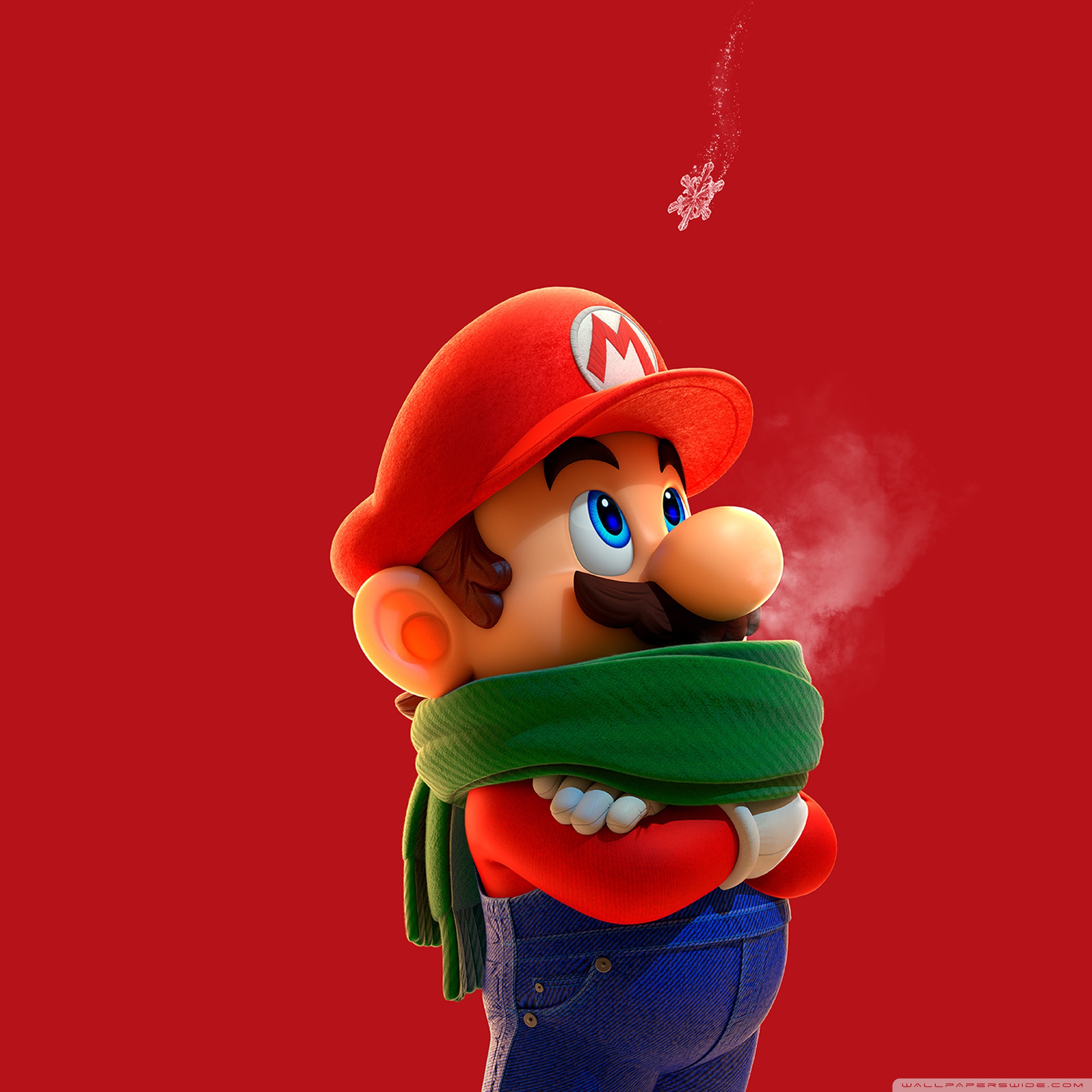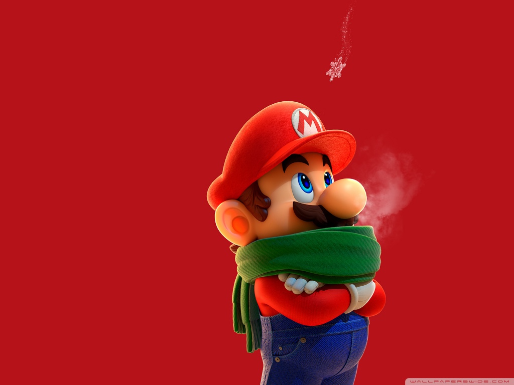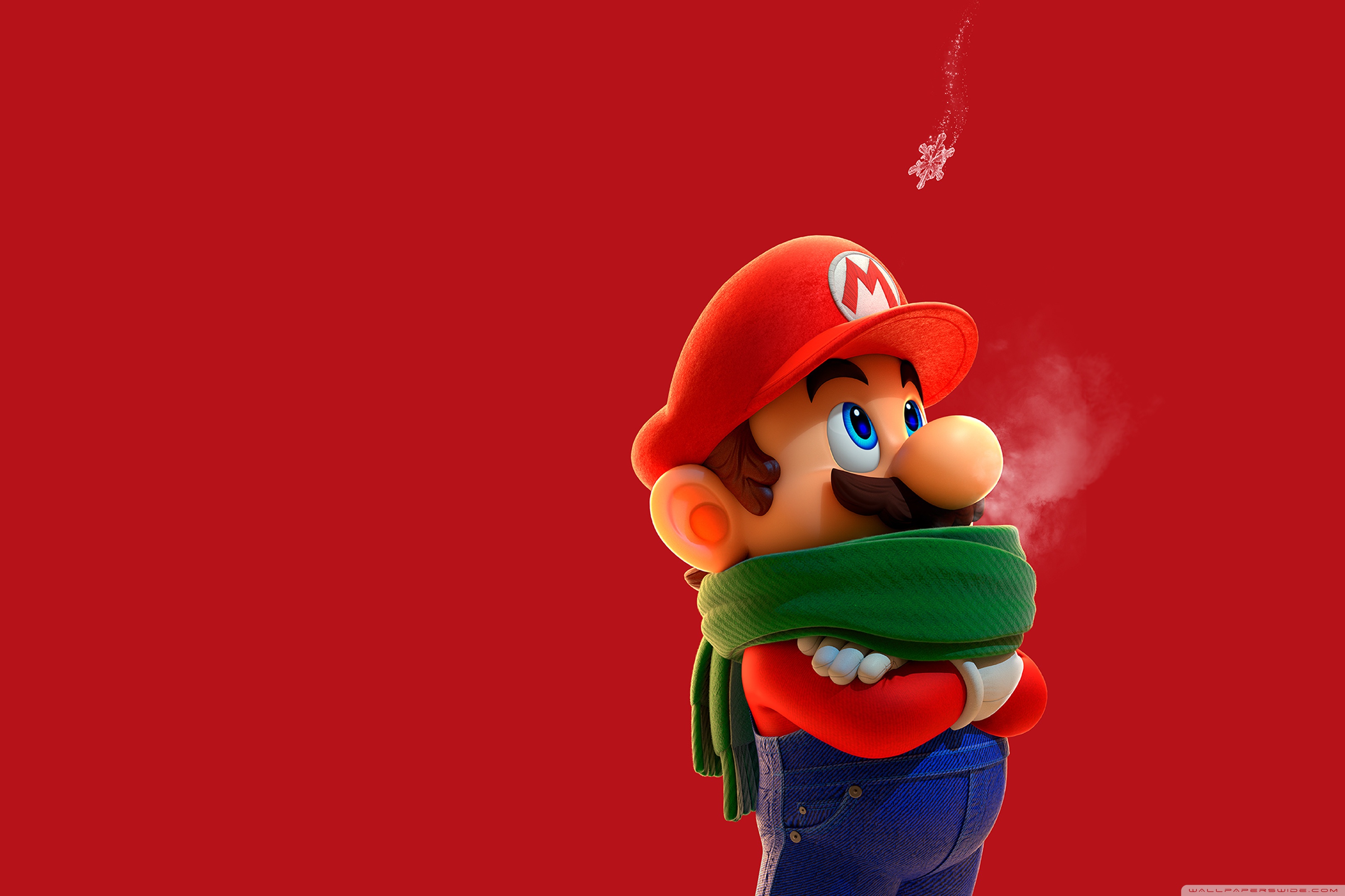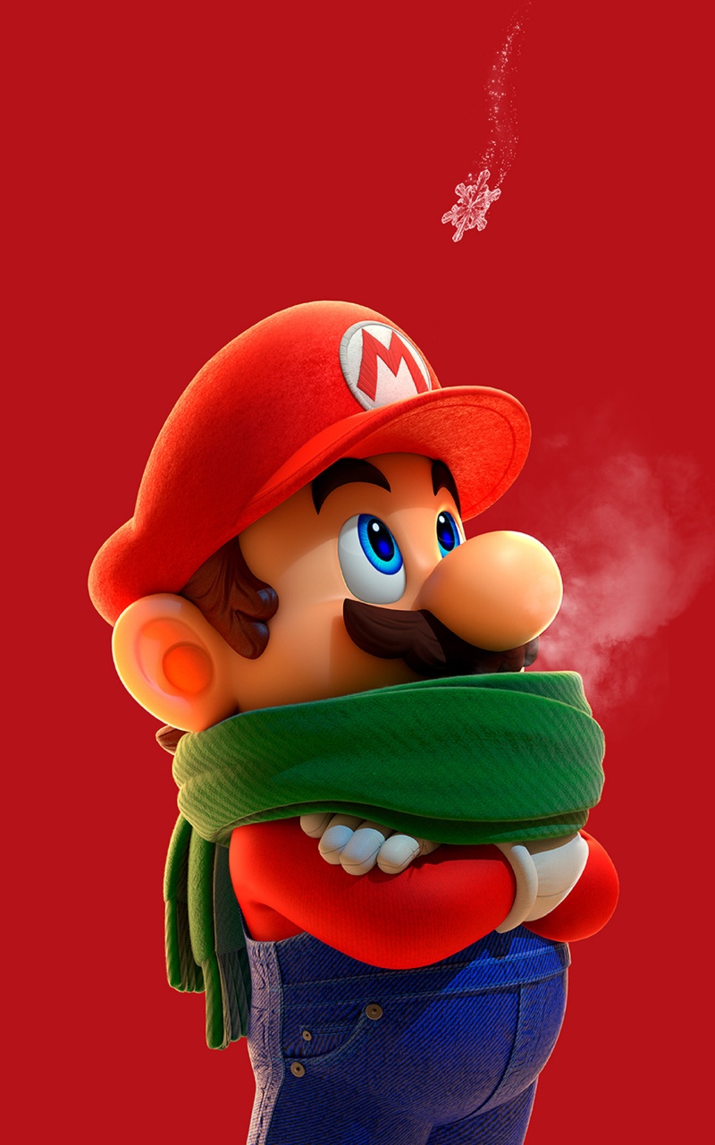 Download Mario Wearing a Winter Scarf 4K UHD Wallpaper