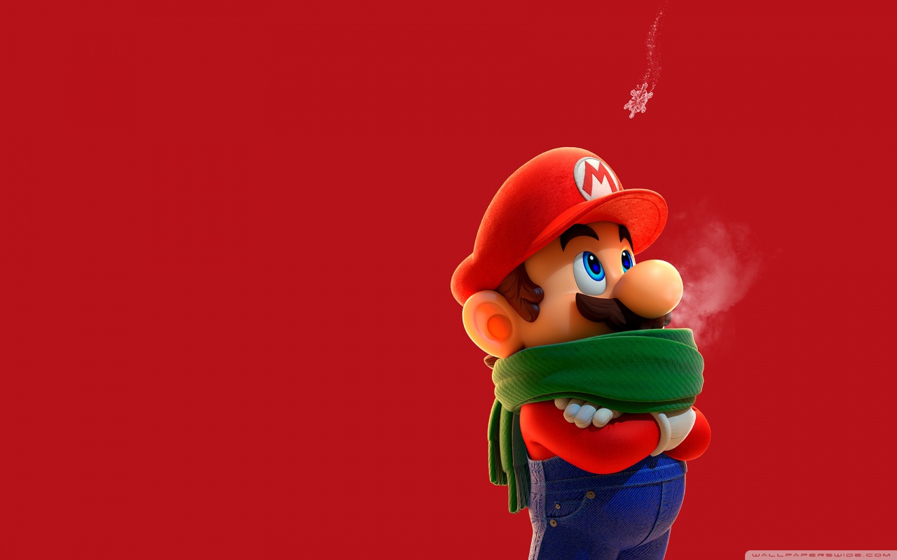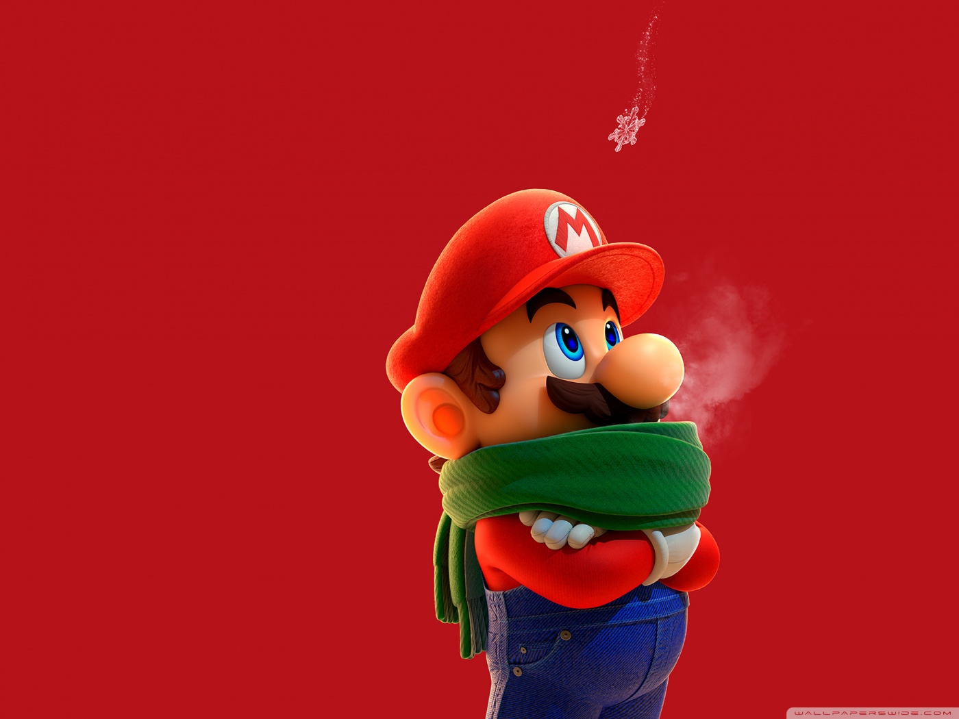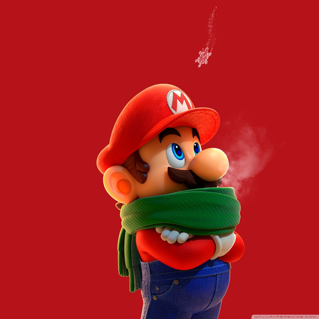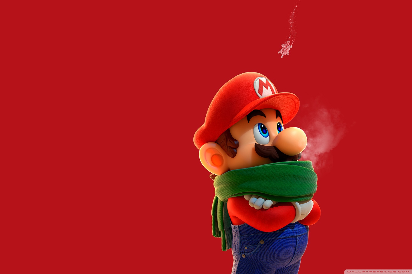 Download Mario Wearing a Winter Scarf 4K UHD Wallpaper