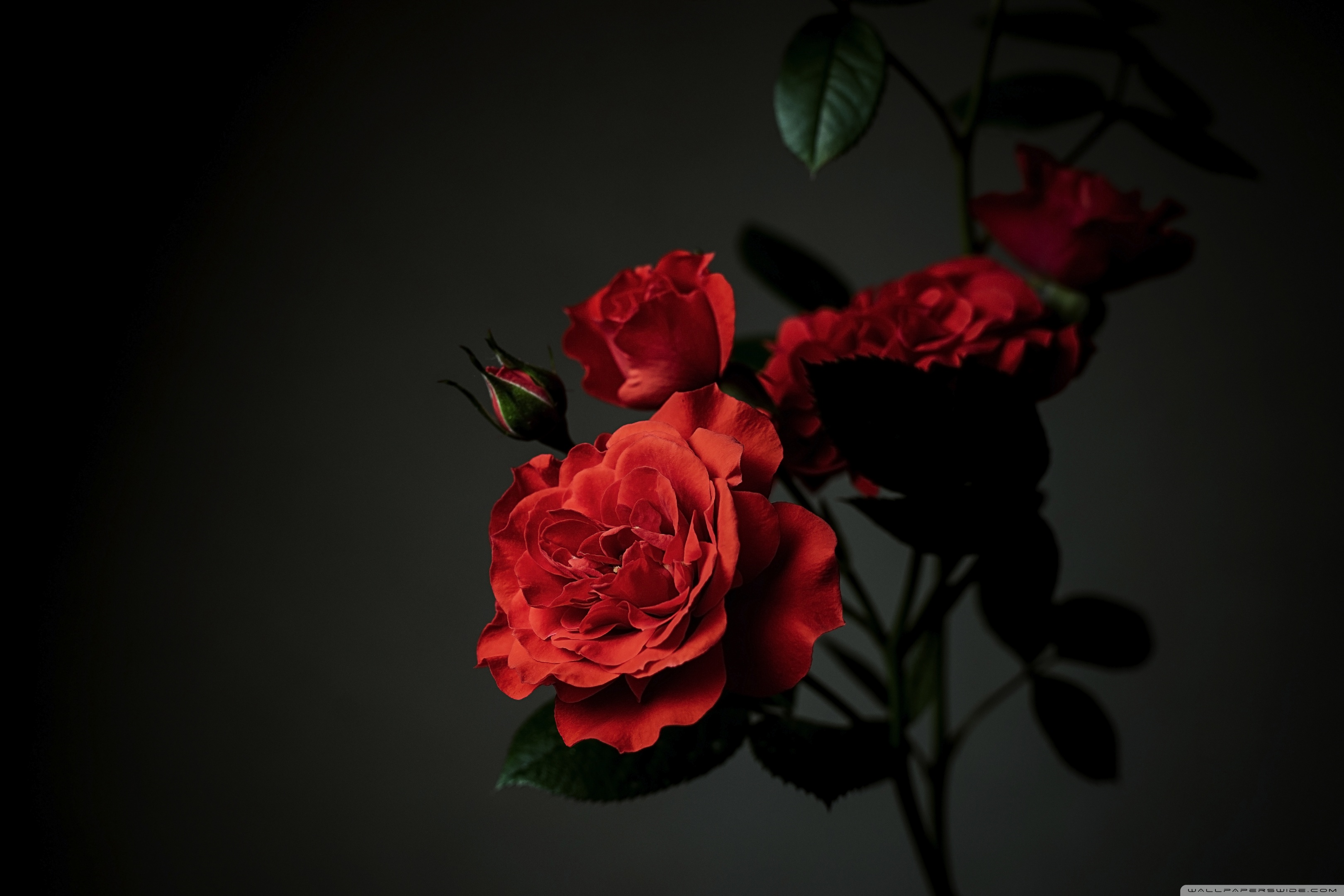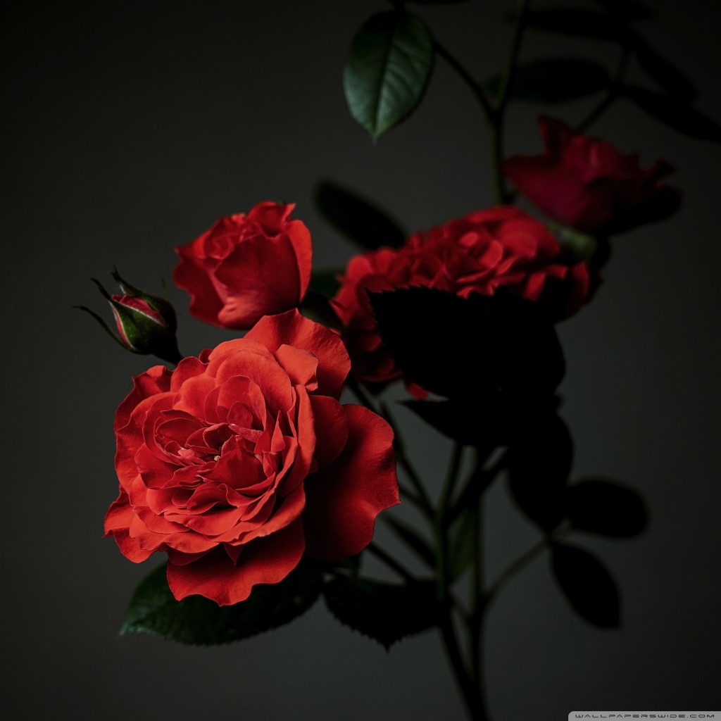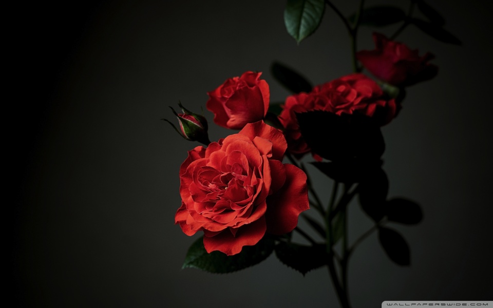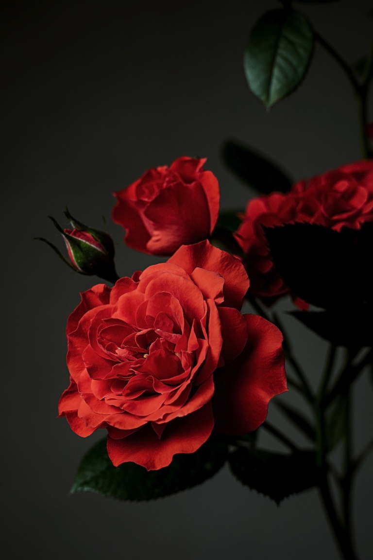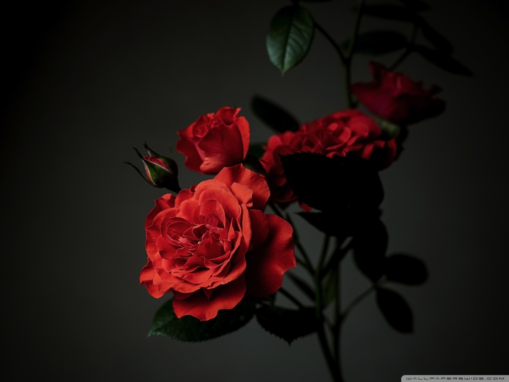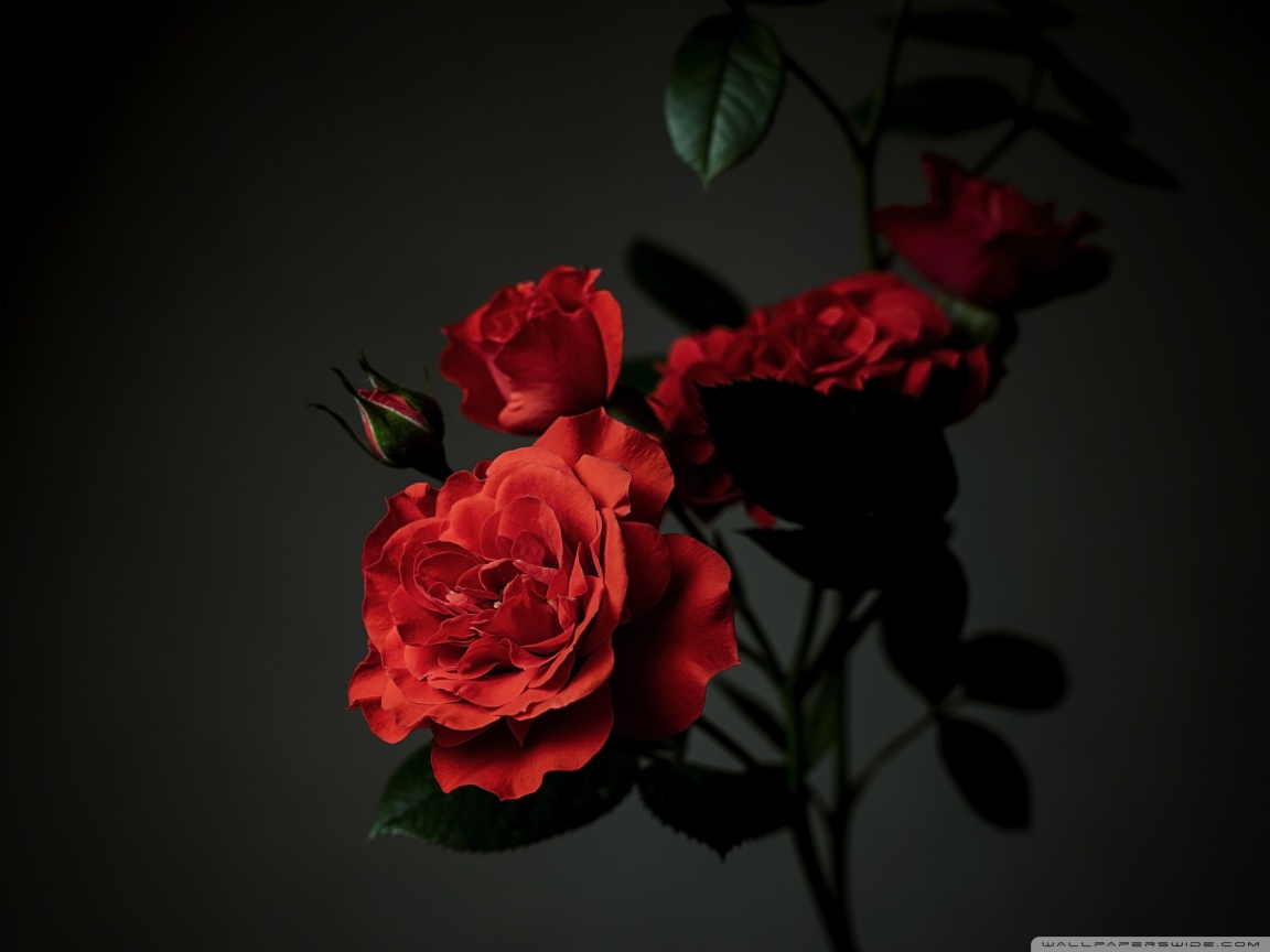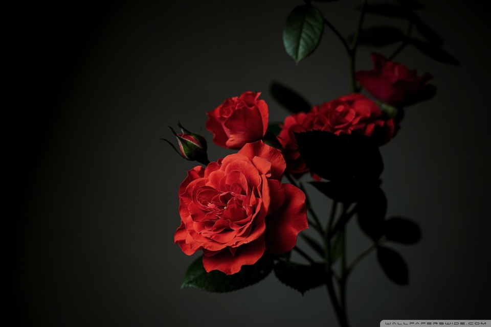 Download Meillandina Rose Cluster in Bloom, Dark... 4K UHD Wallpaper