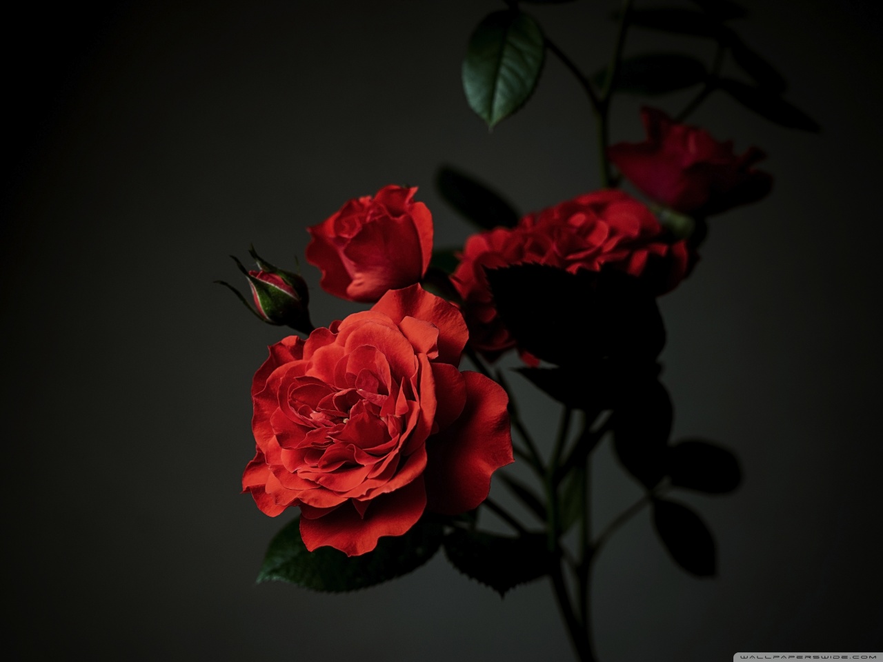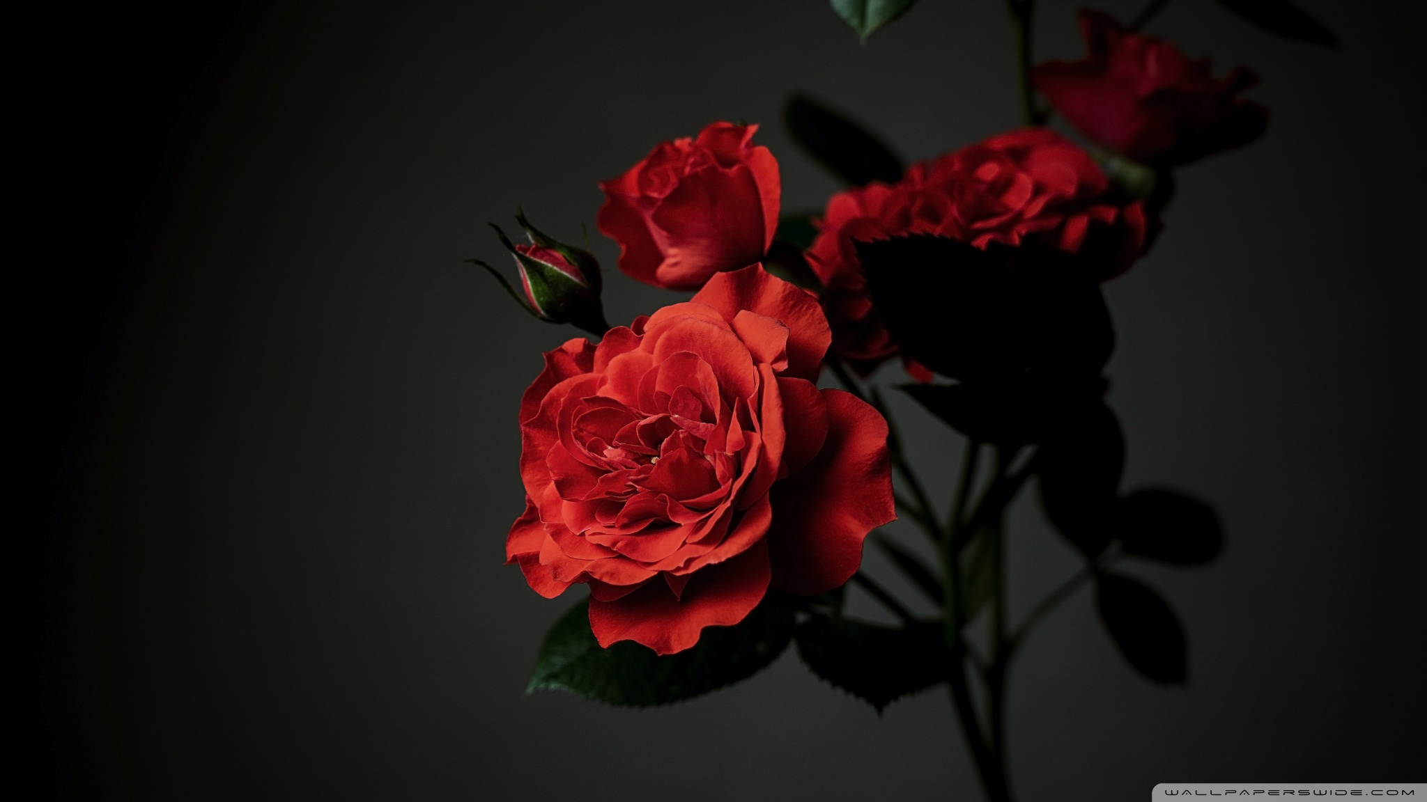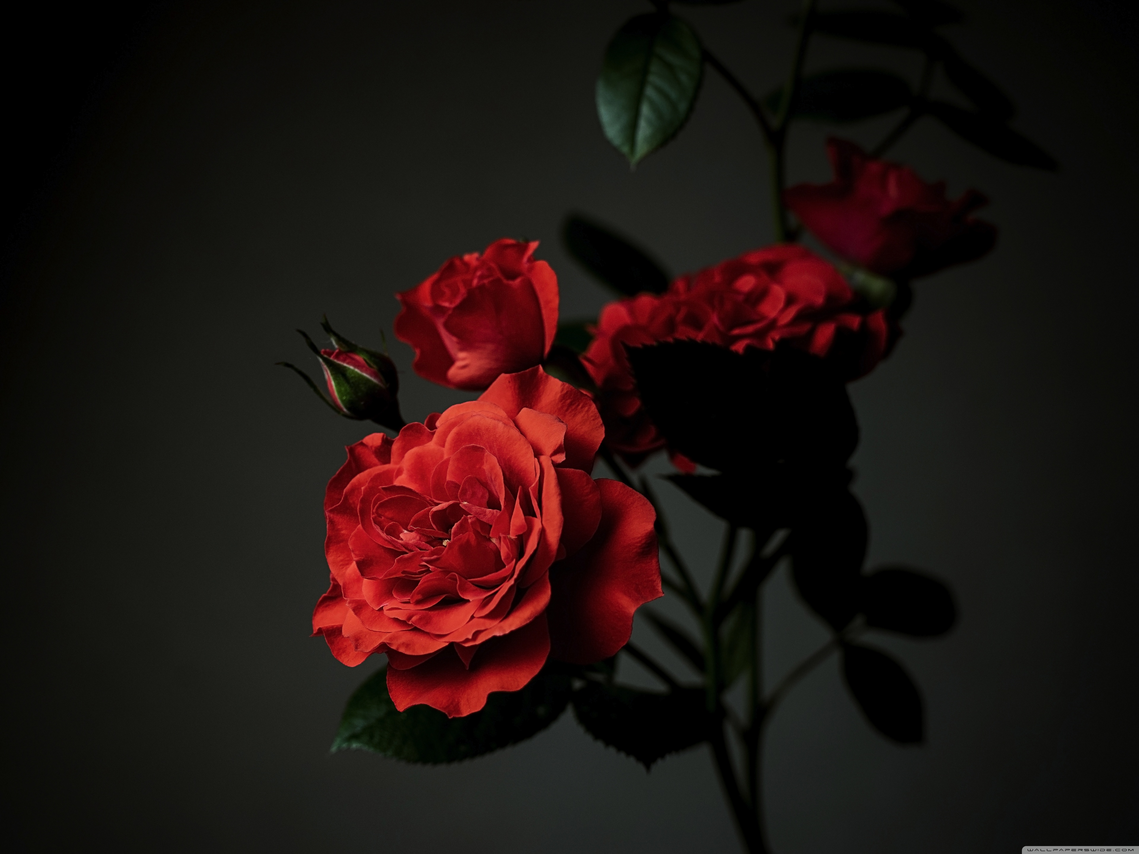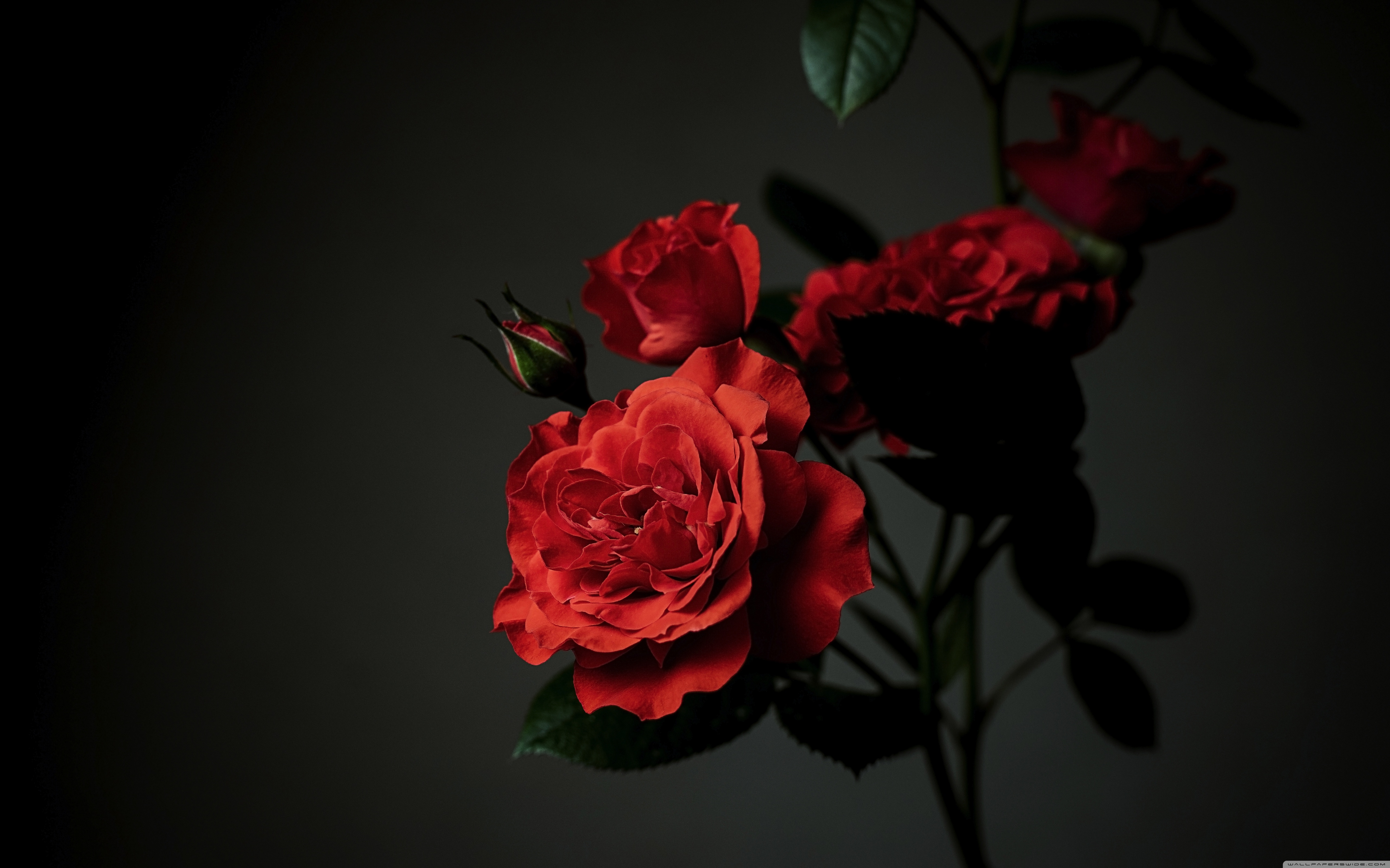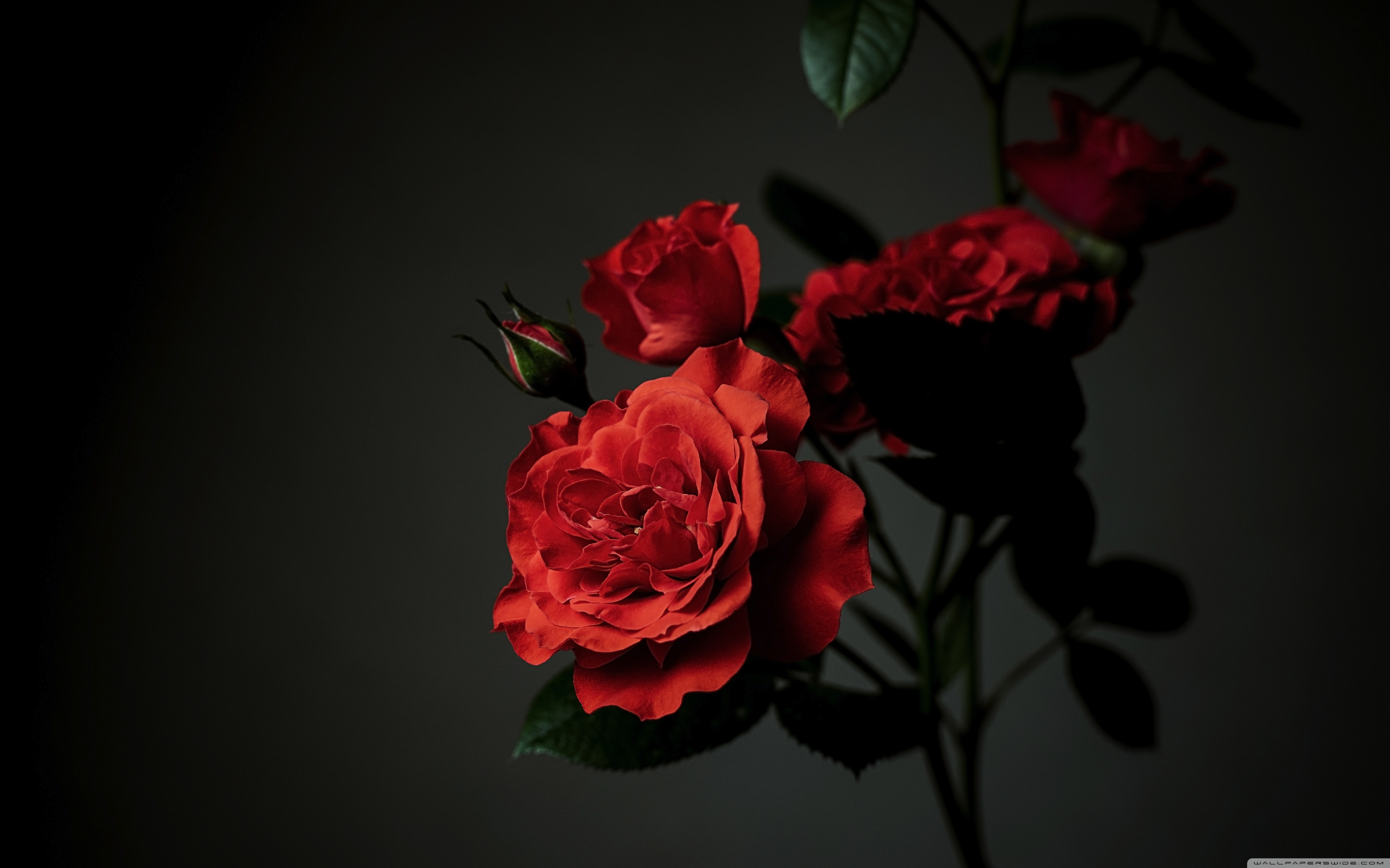 Download Meillandina Rose Cluster in Bloom, Dark... 4K UHD Wallpaper
