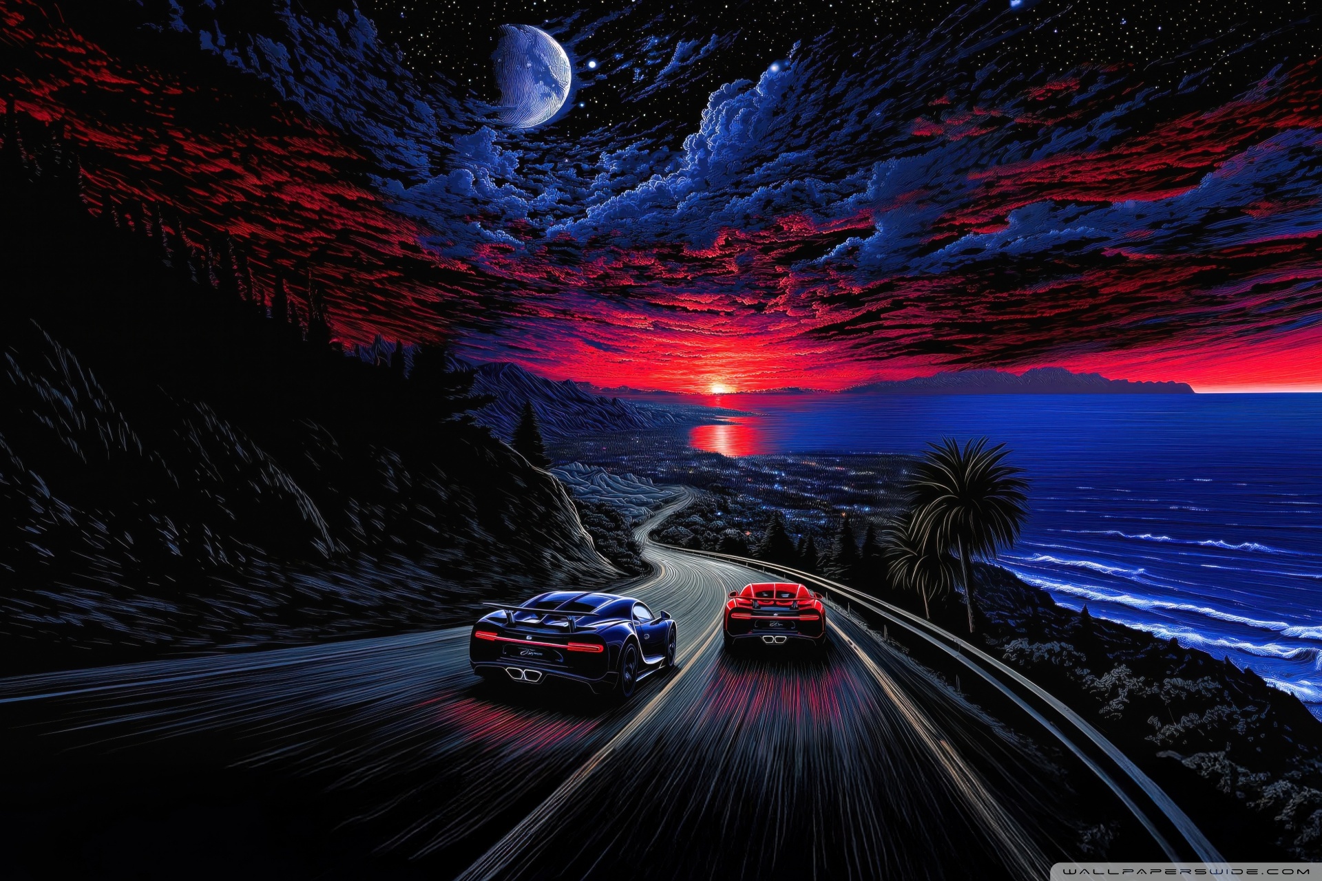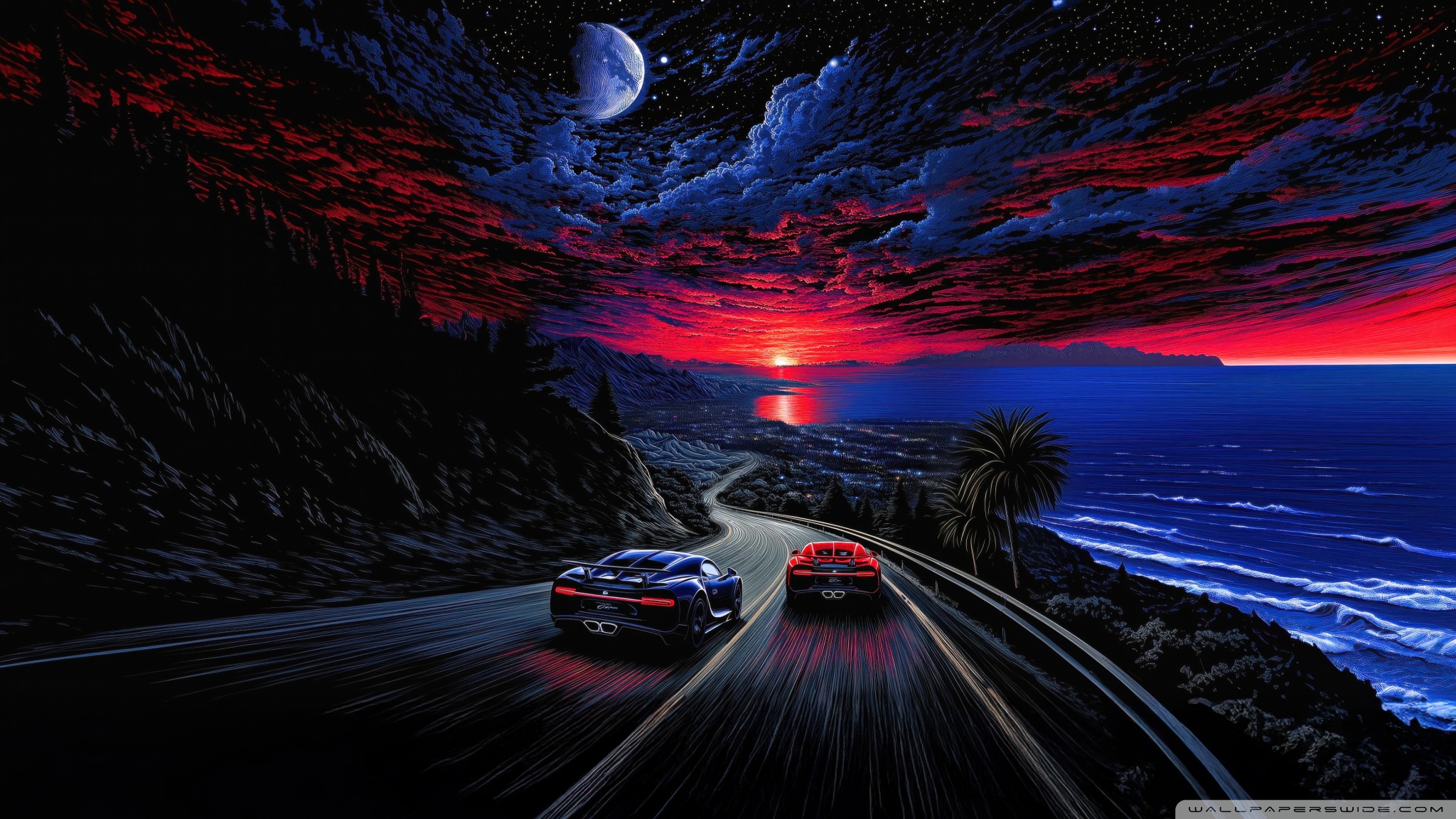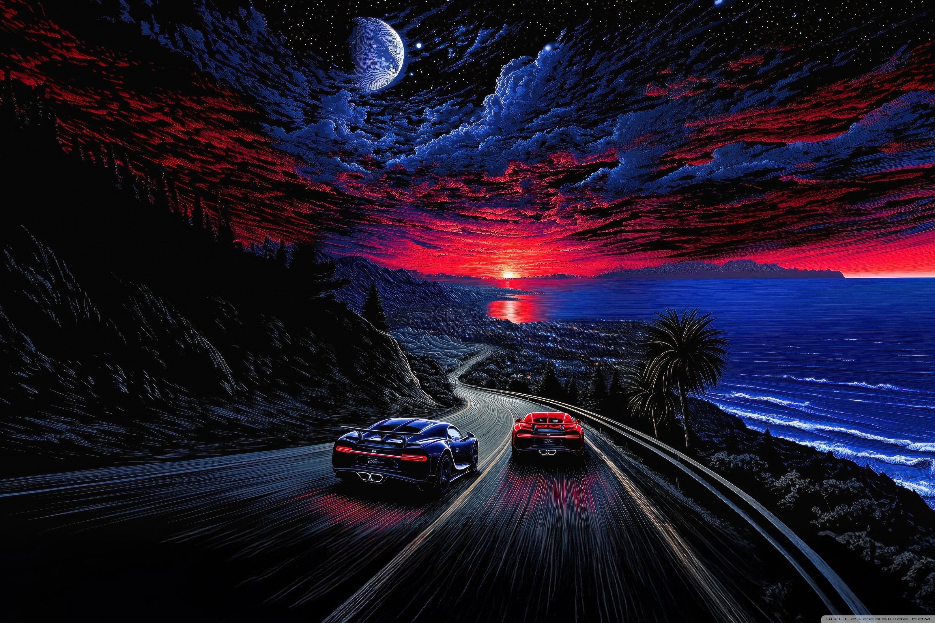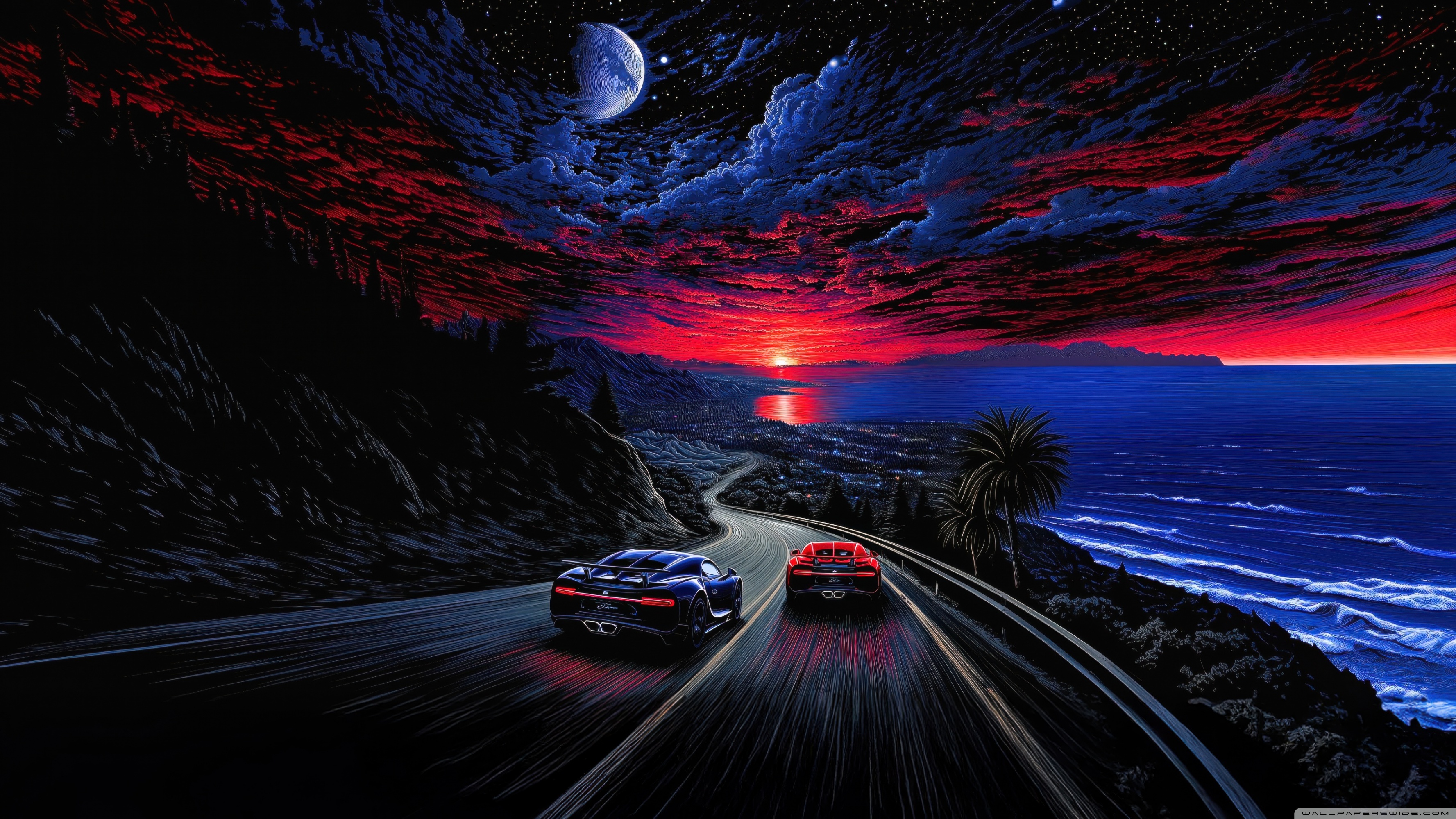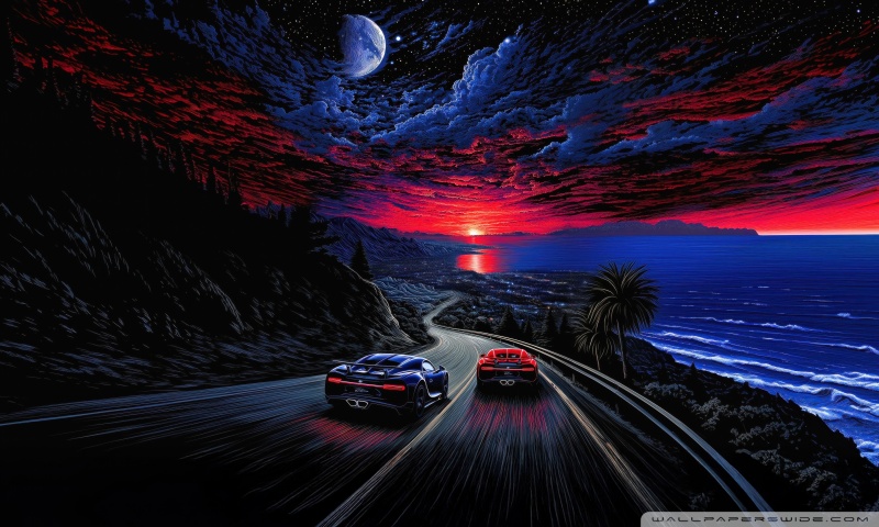 Download Midnight Coastline Race 4K UHD Wallpaper