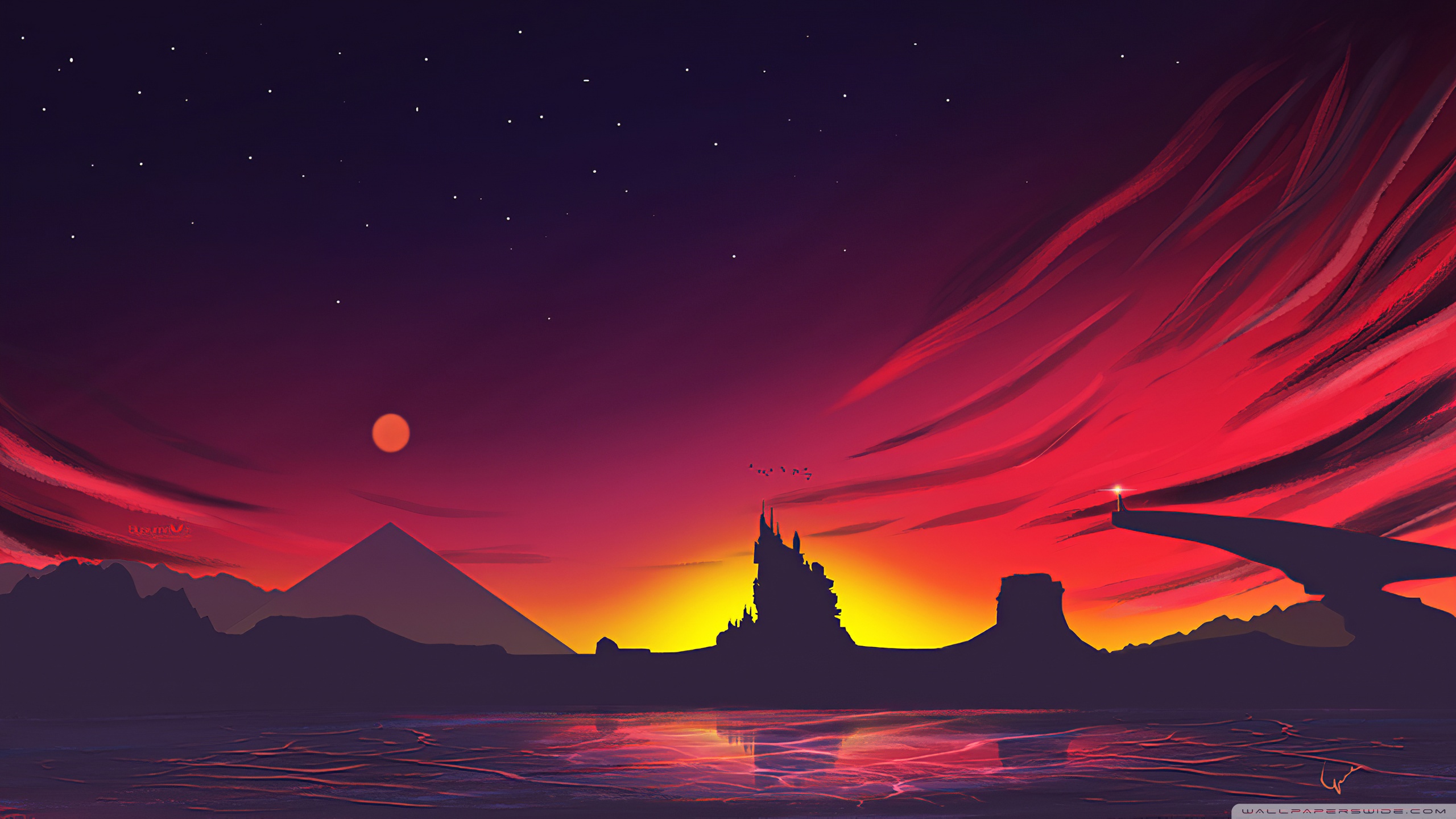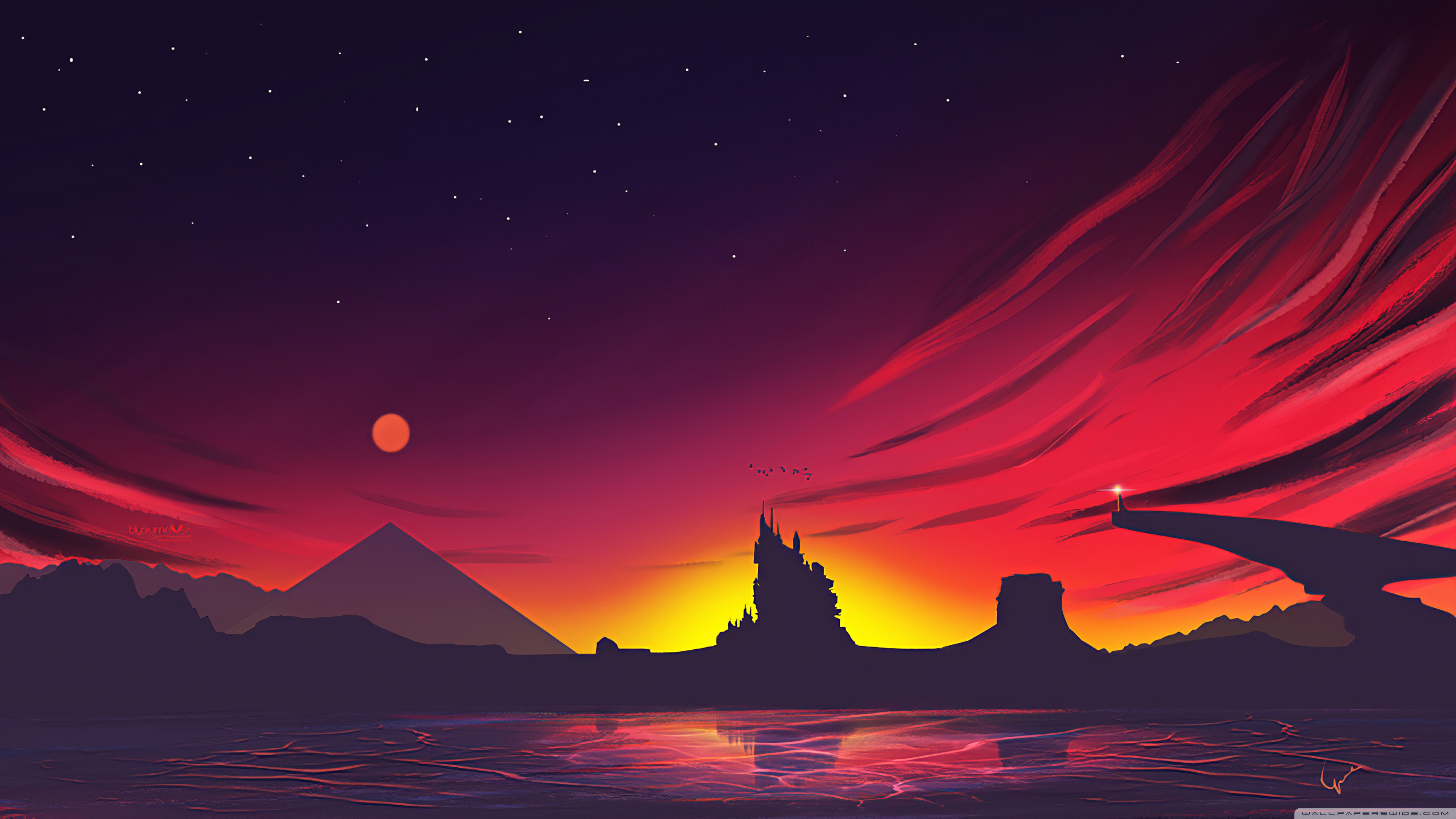 Download Minimal Sunset Landscape 4K UHD Wallpaper
