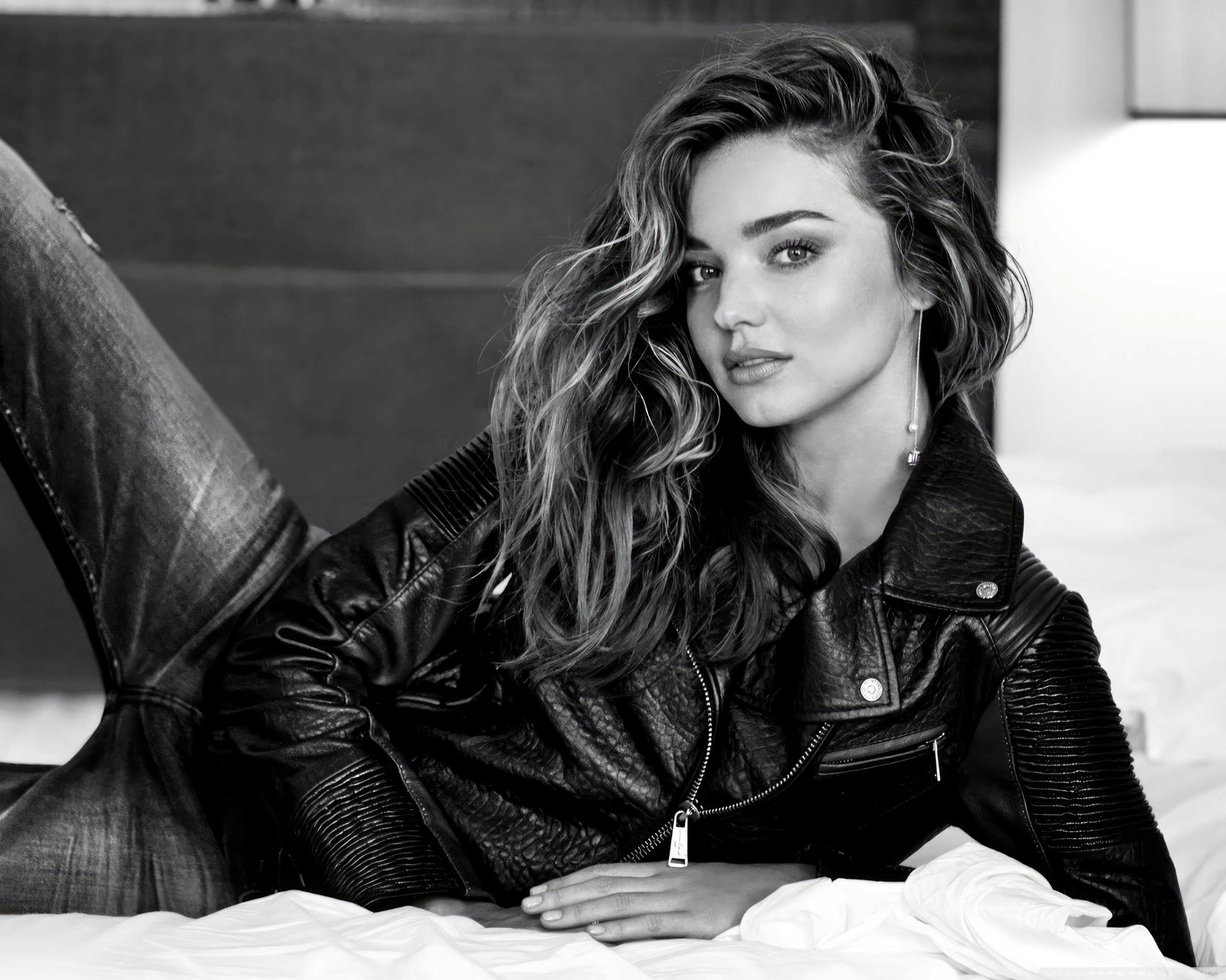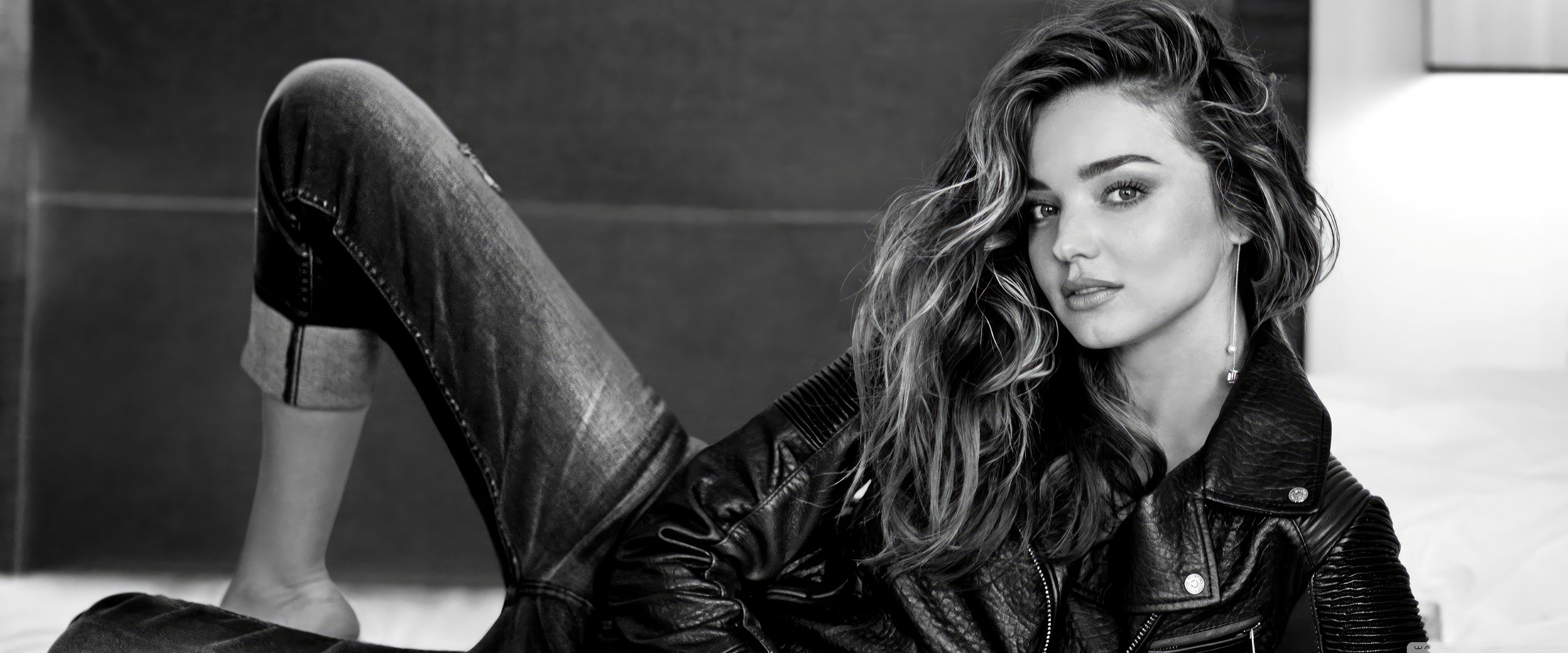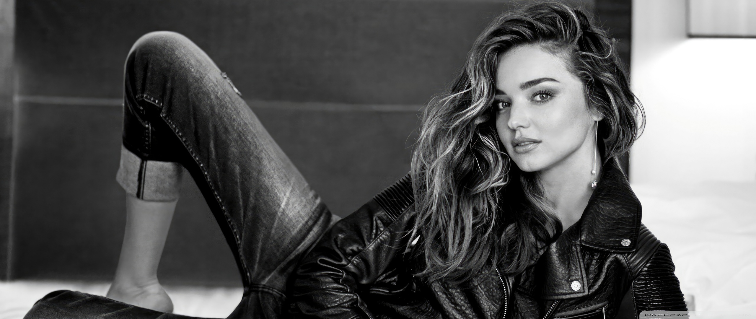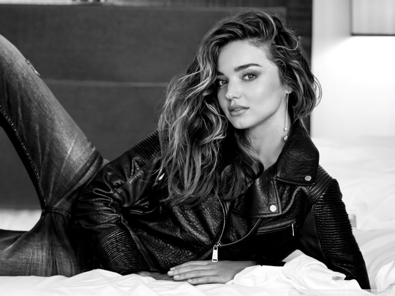 Download Miranda Kerr in Bed Photoshoot Black and White 4K UHD Wallpaper