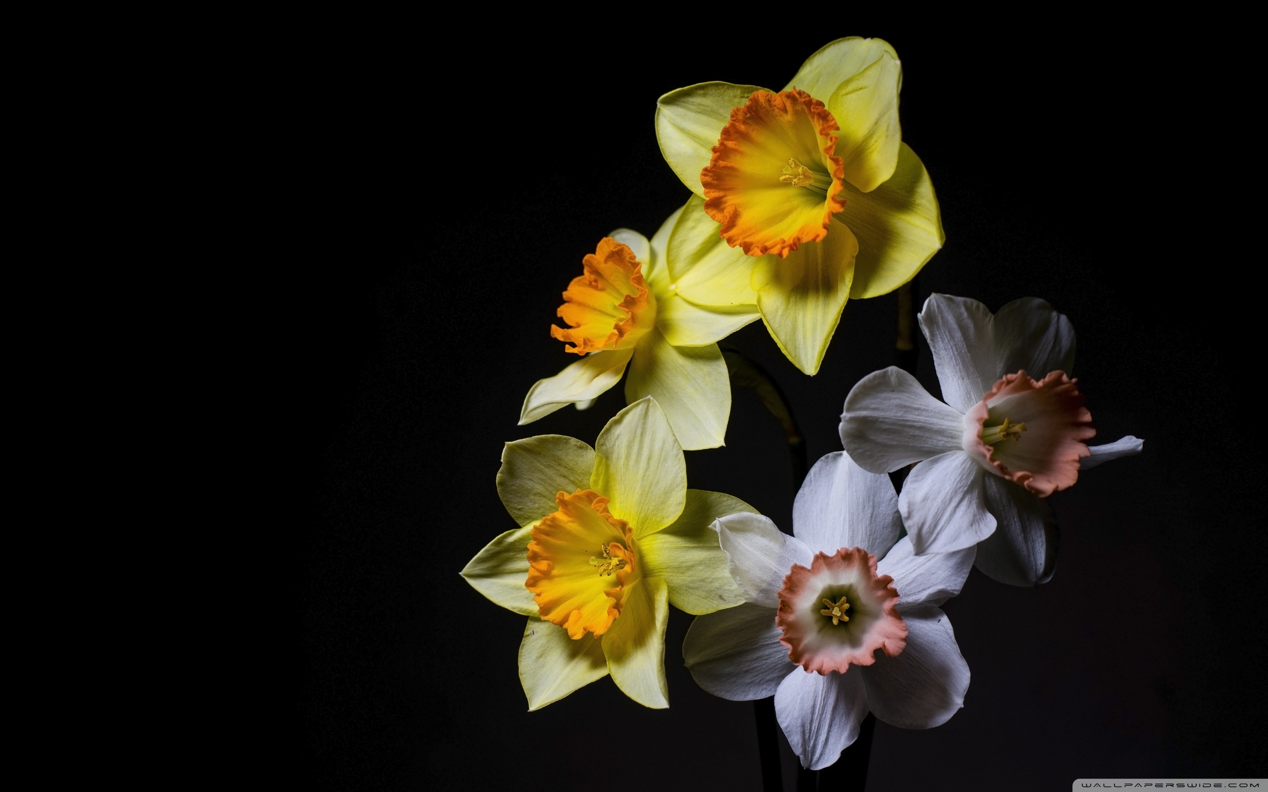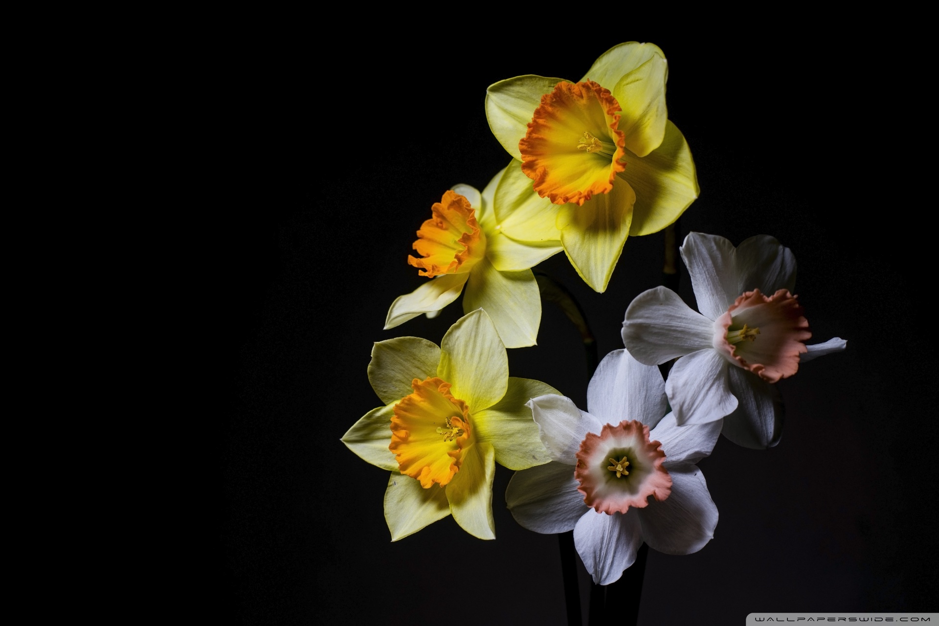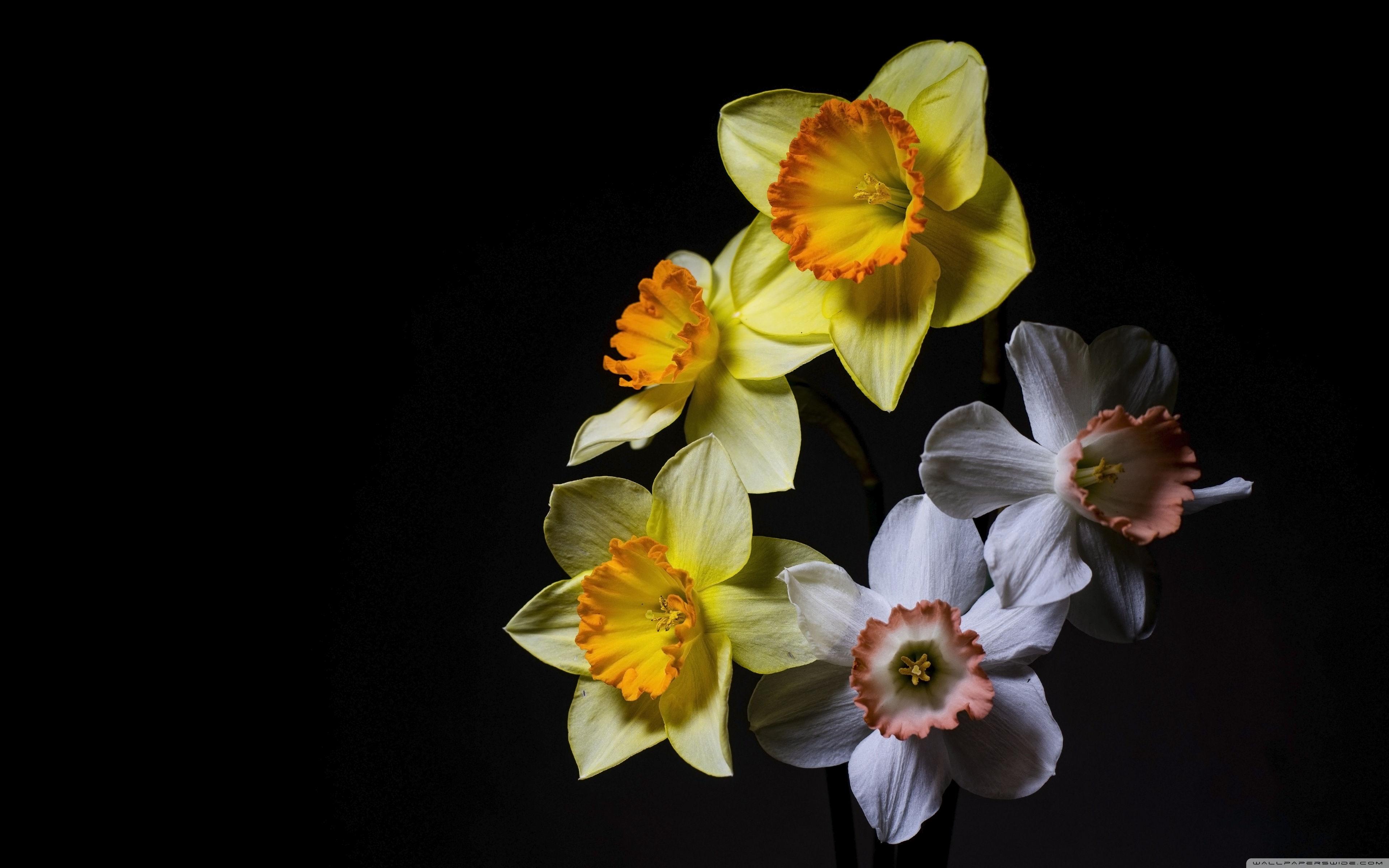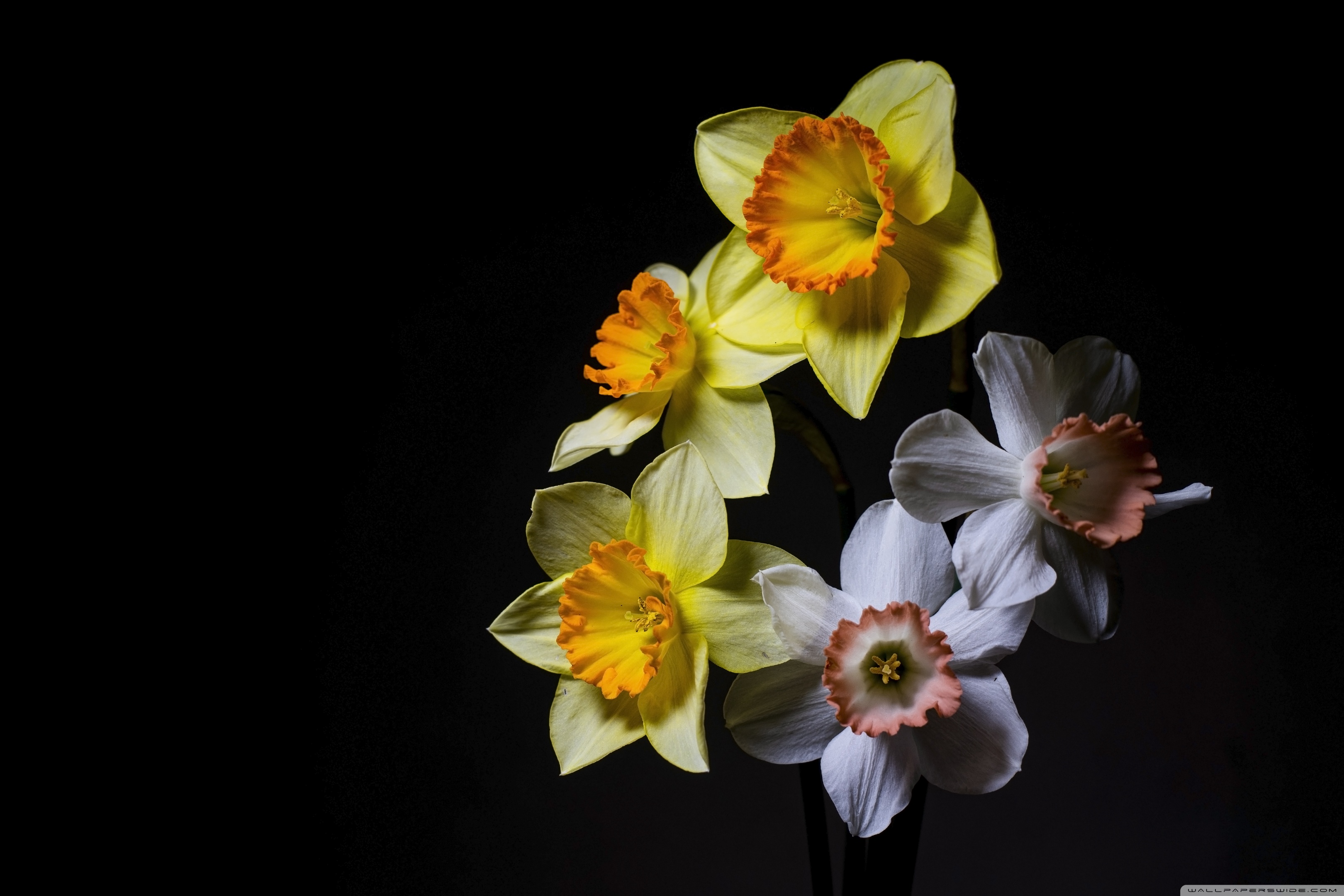 Download Mixed Daffodil Blooms in Studio Light 4K UHD Wallpaper
