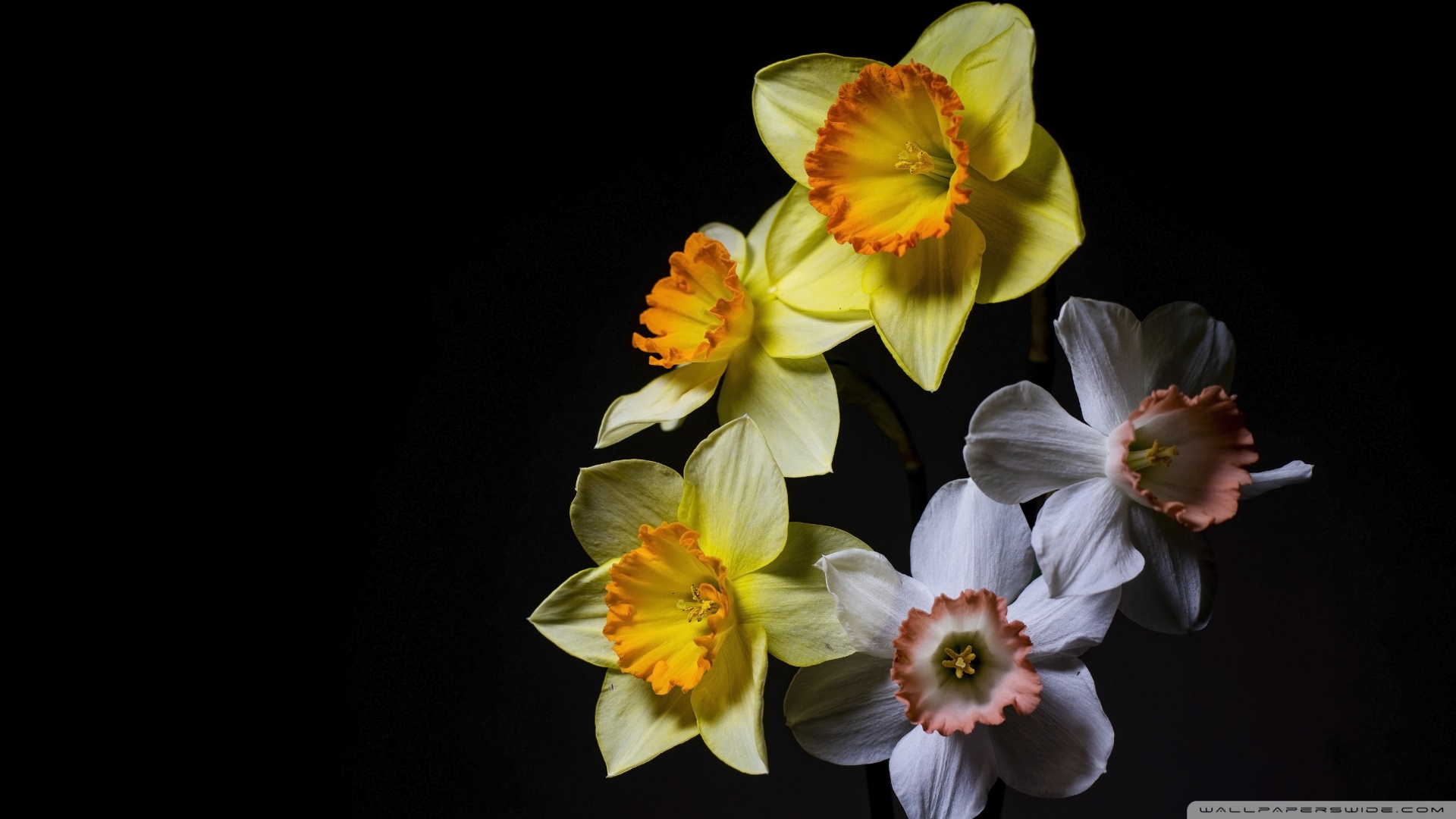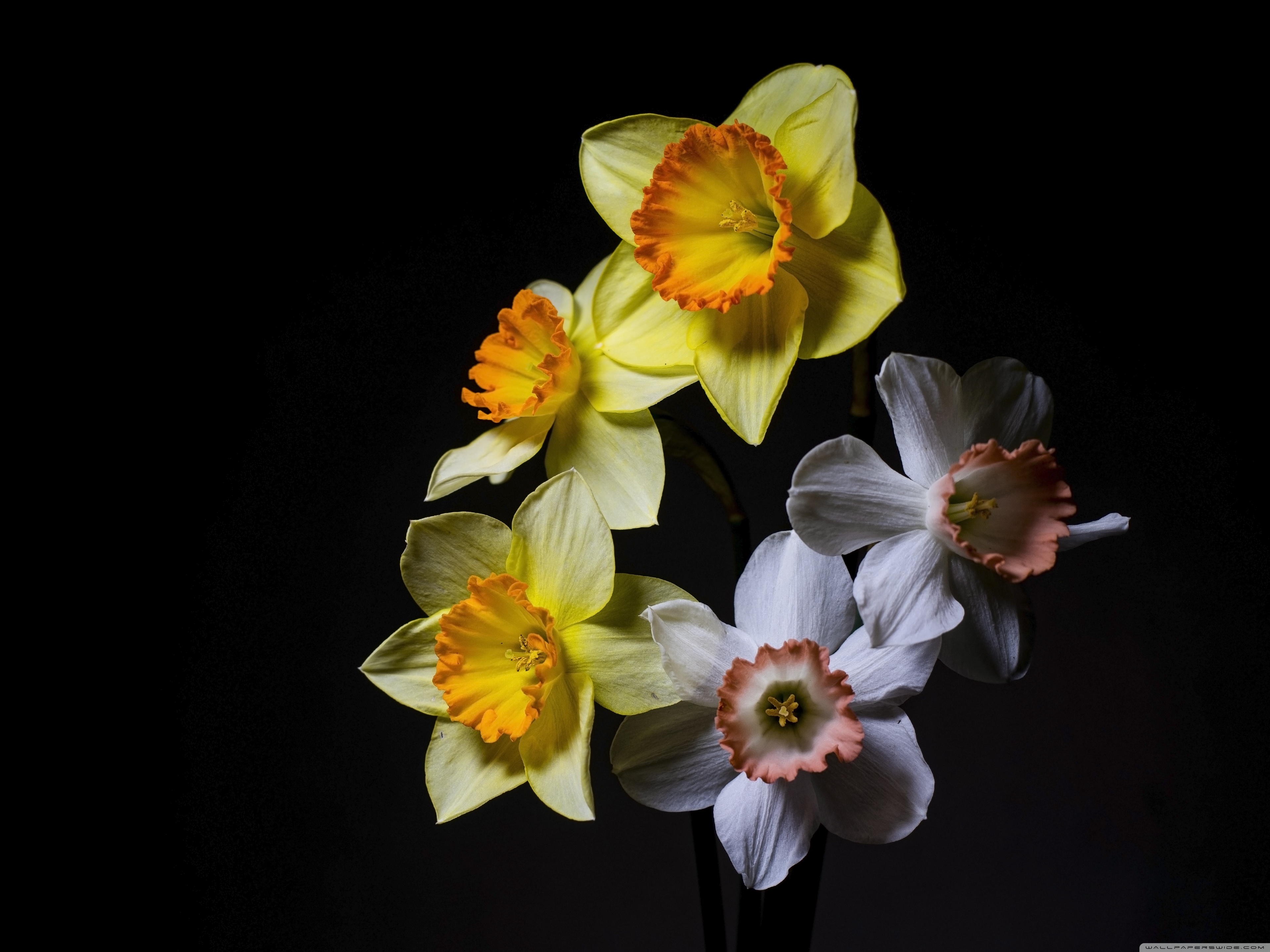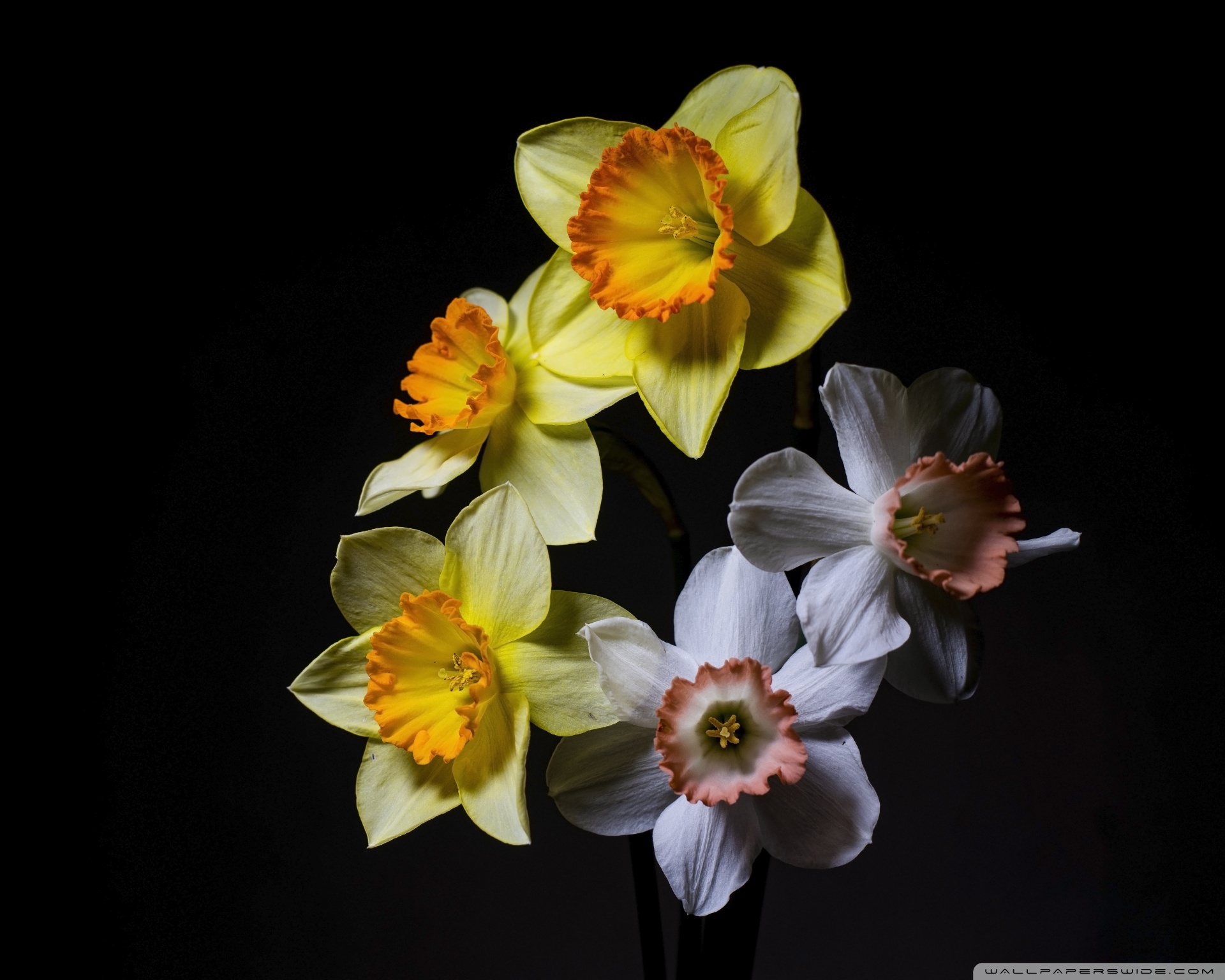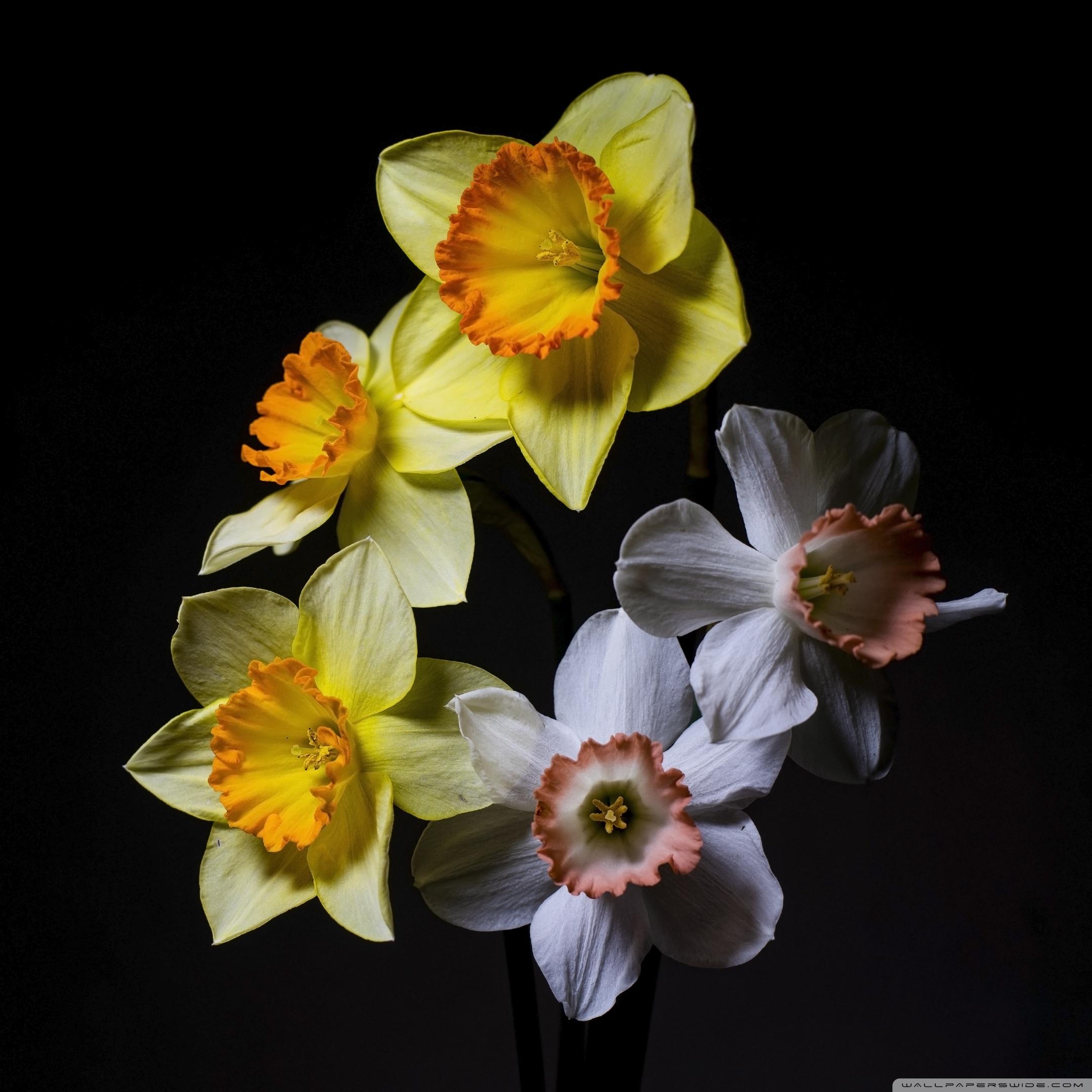 Download Mixed Daffodil Blooms in Studio Light 4K UHD Wallpaper