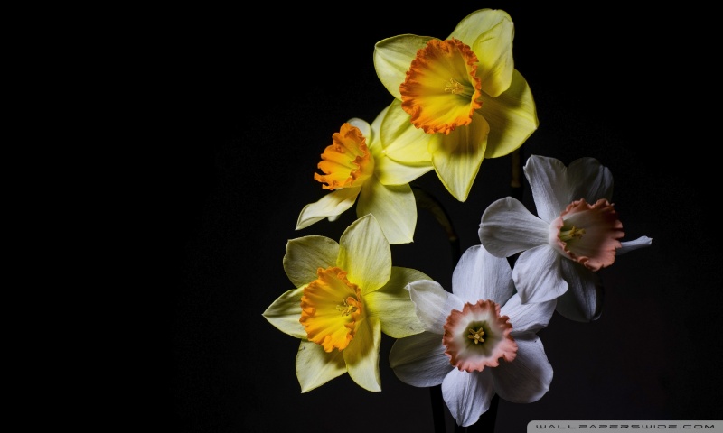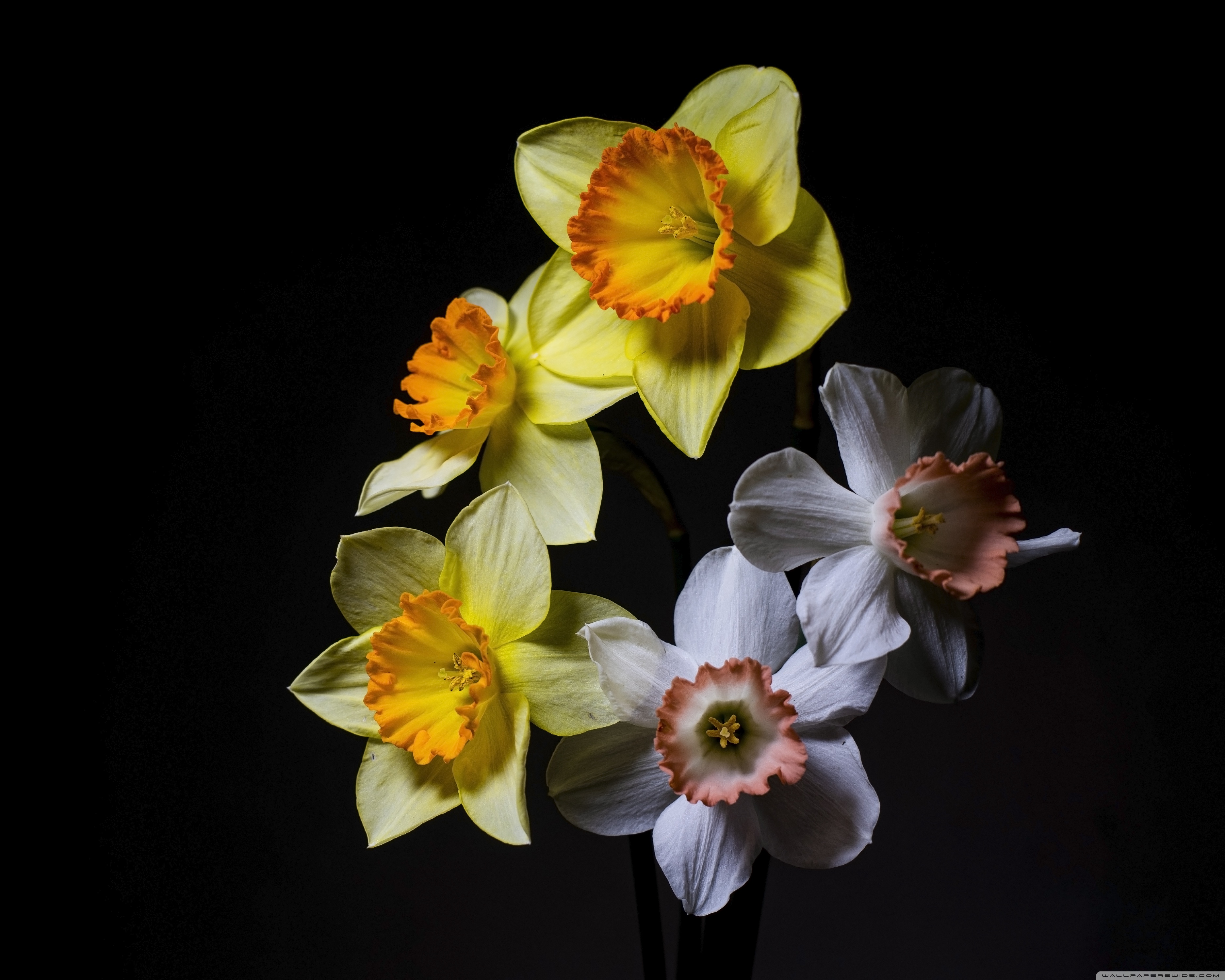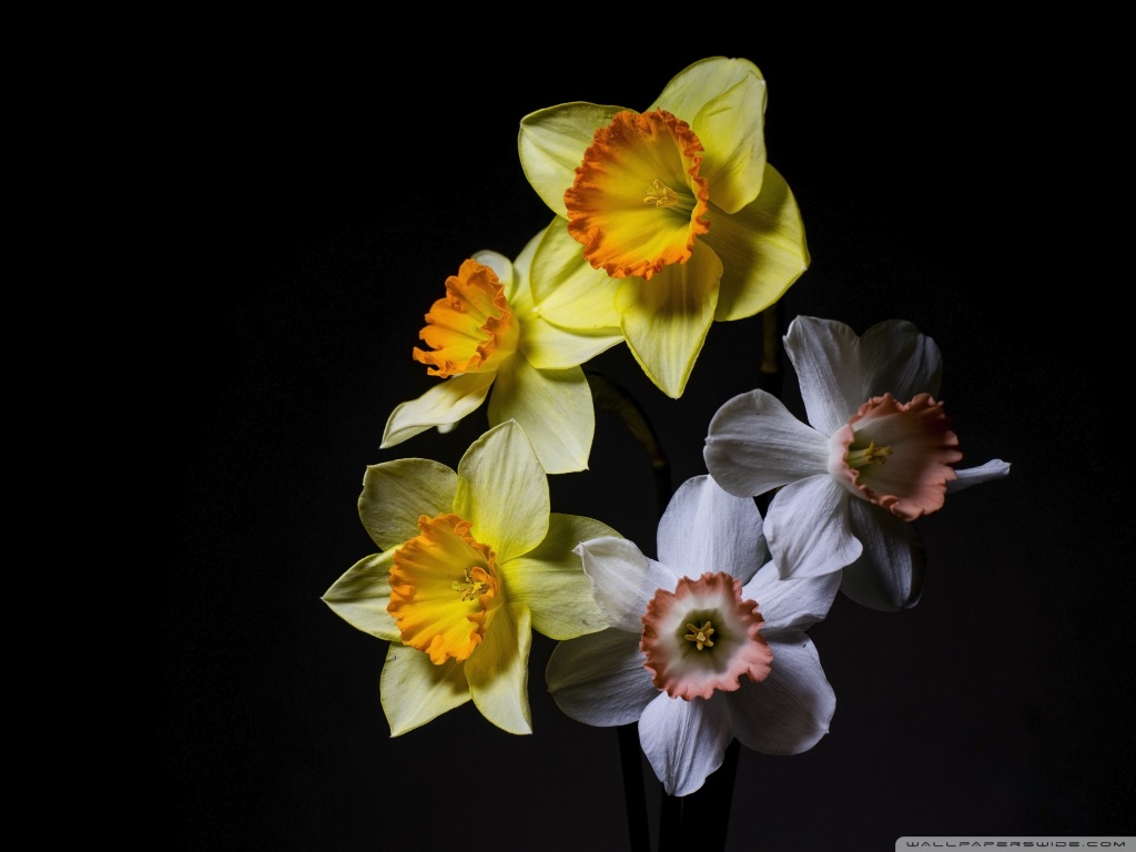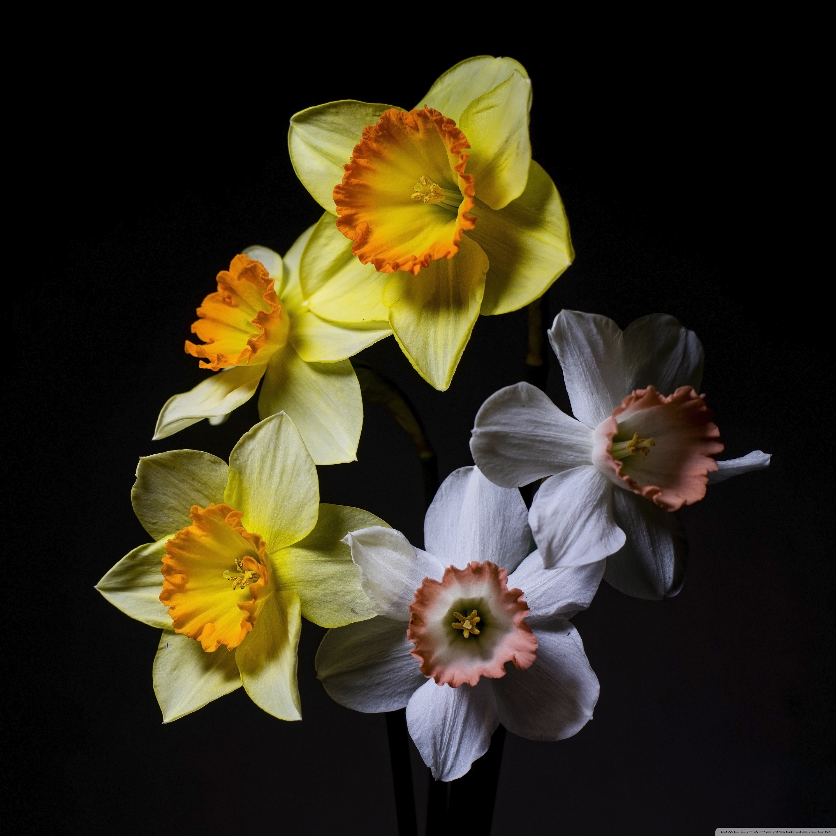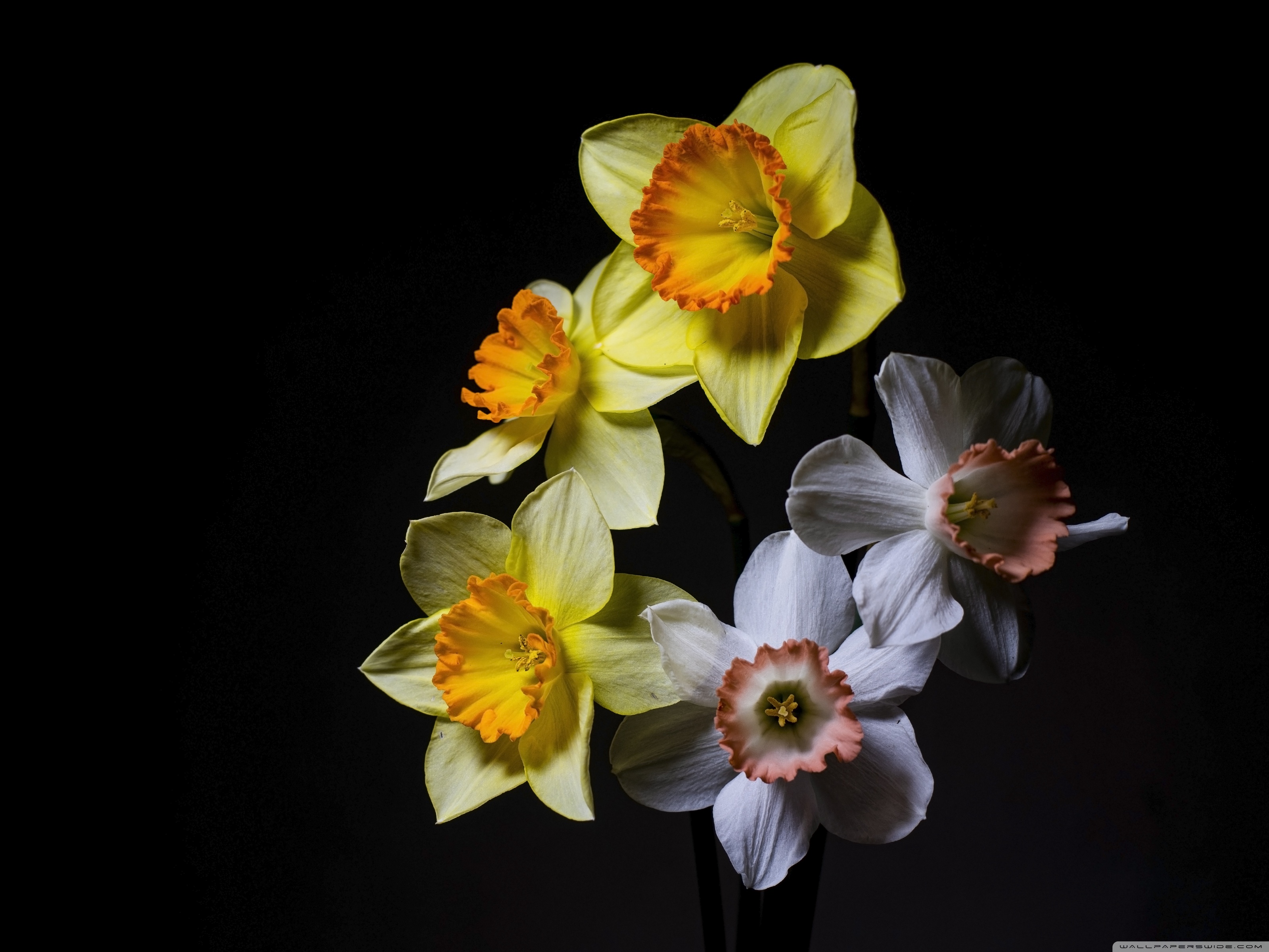 Download Mixed Daffodil Blooms in Studio Light 4K UHD Wallpaper
