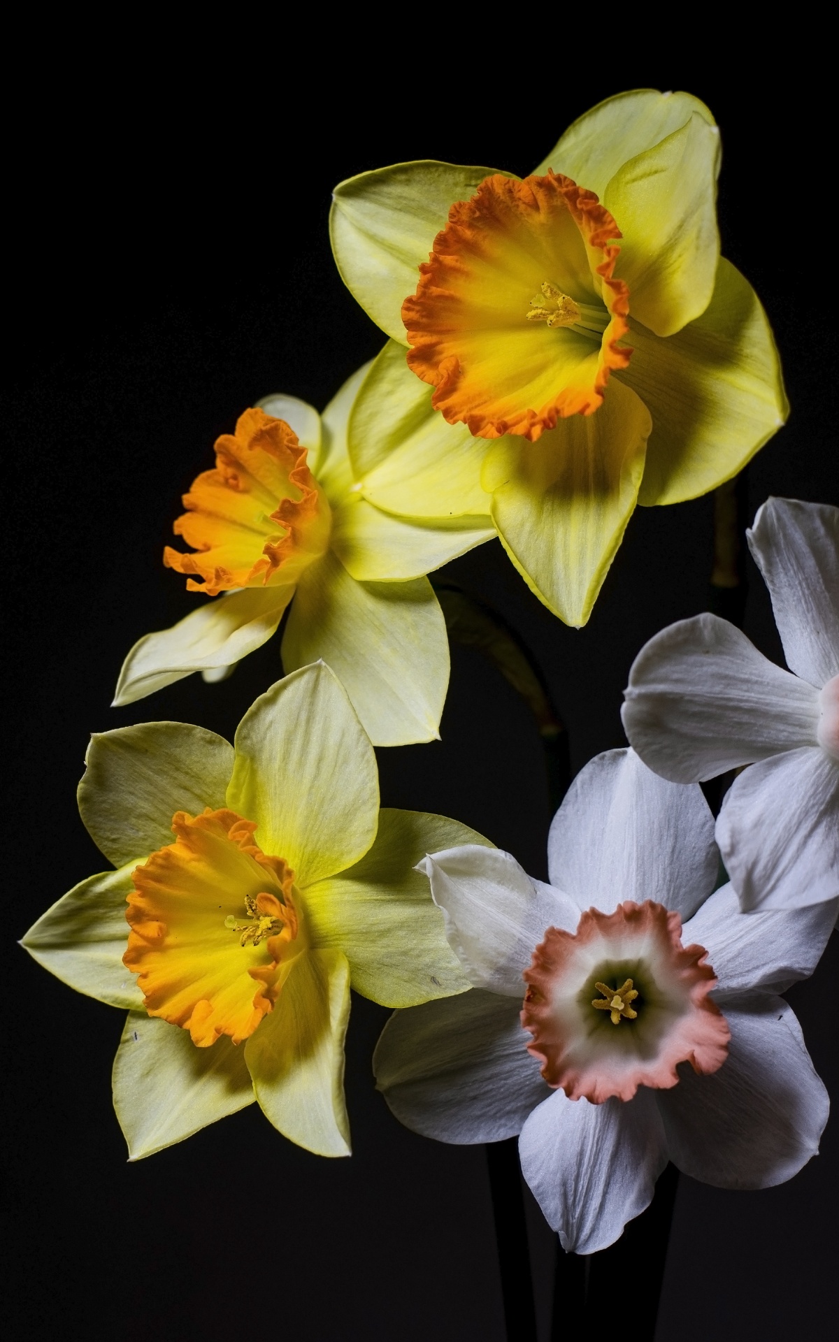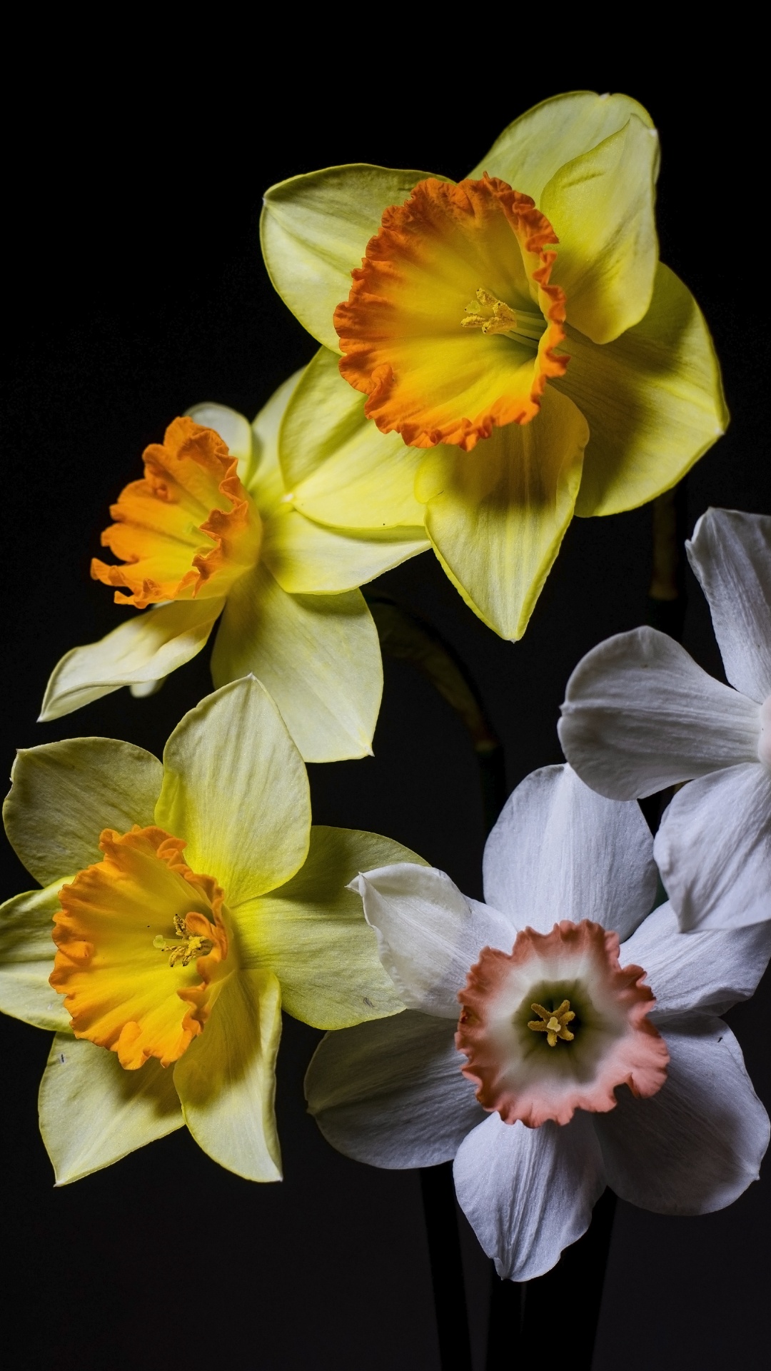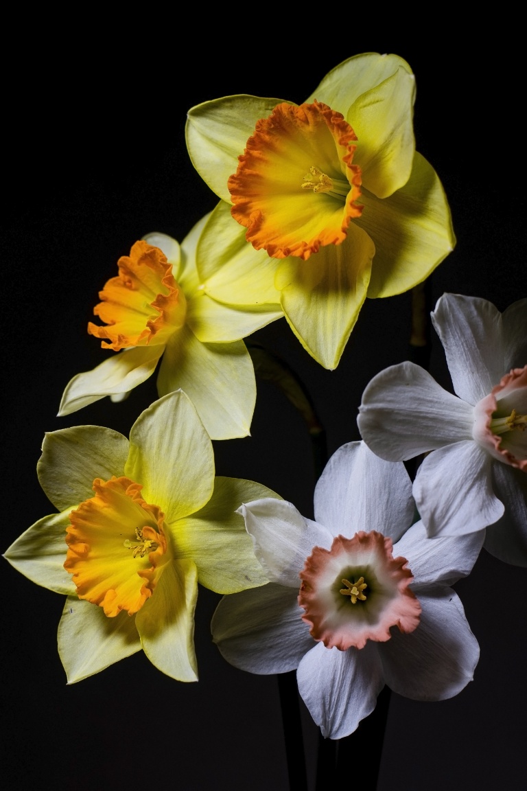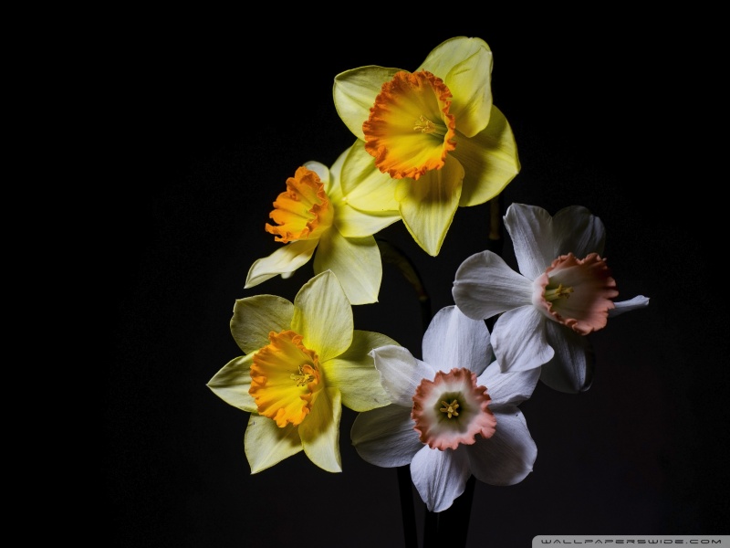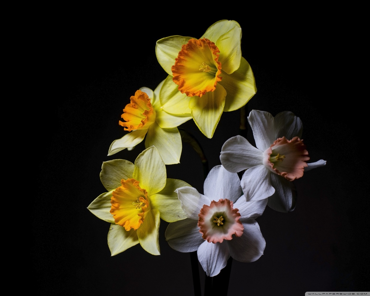Download Mixed Daffodil Blooms in Studio Light 4K UHD Wallpaper