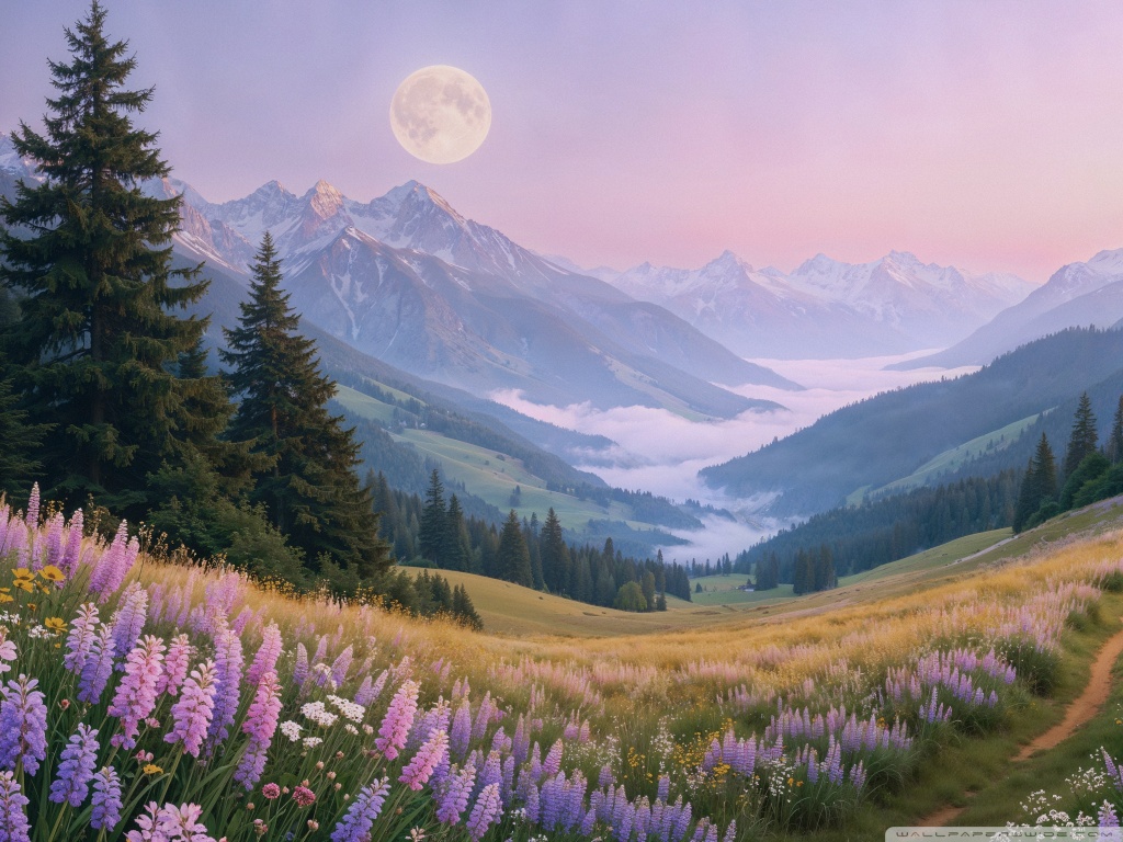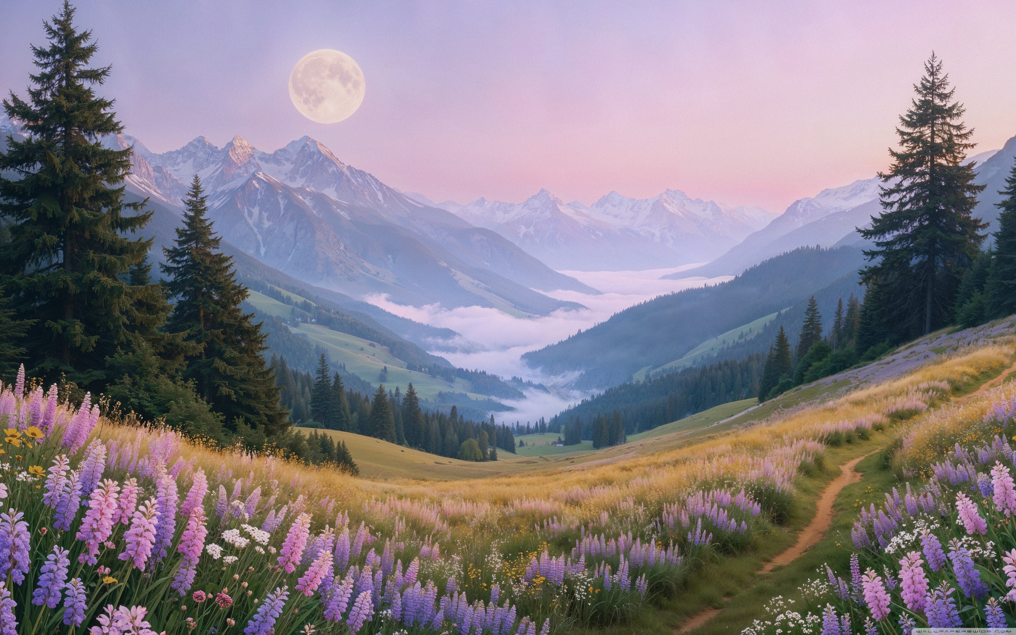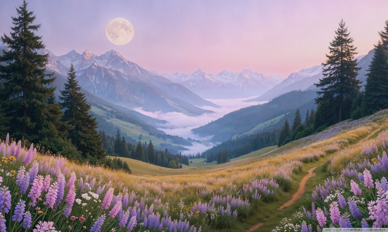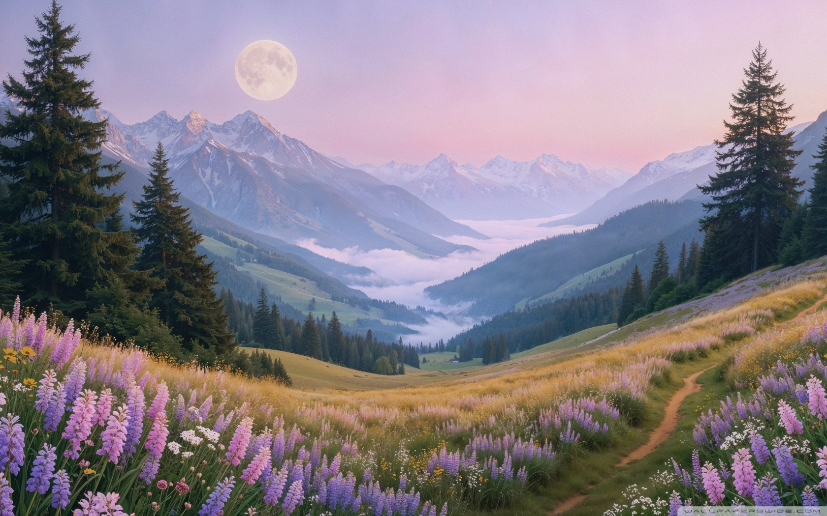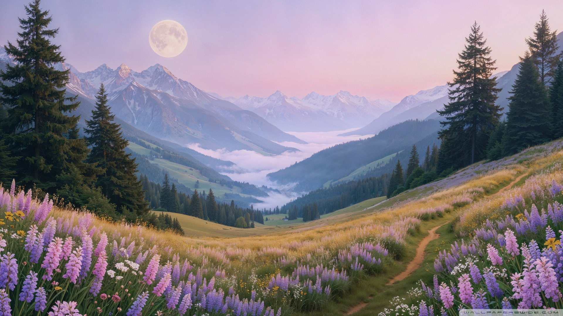 Download Moonrise Over Valley View 4K UHD Wallpaper