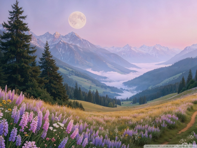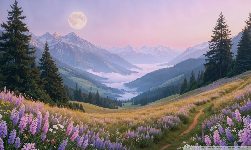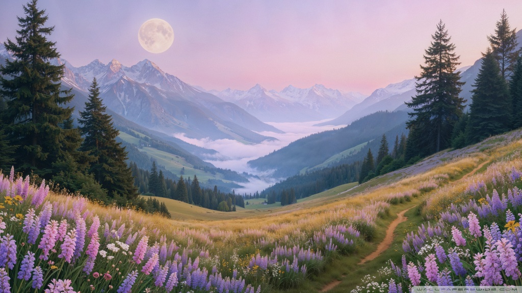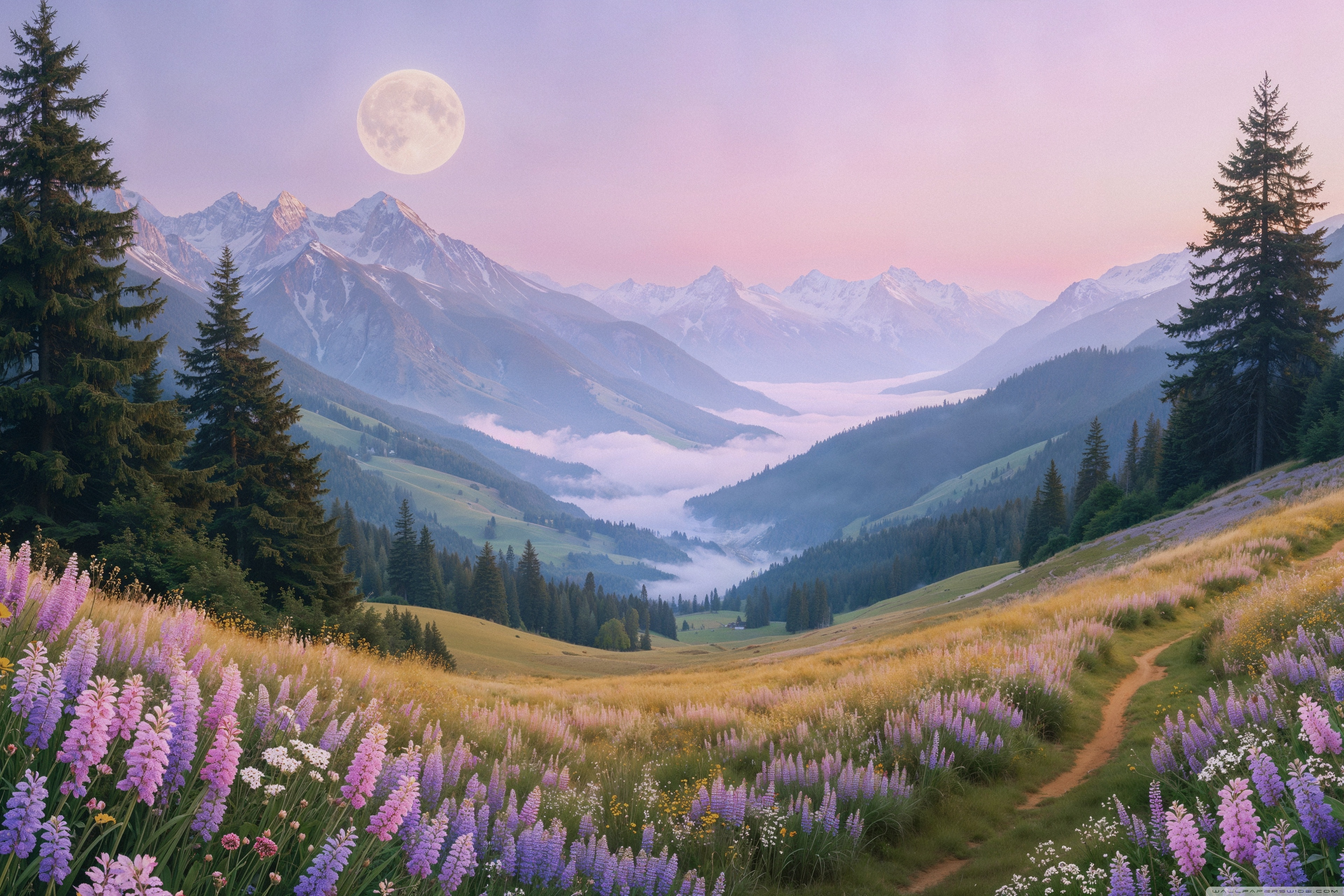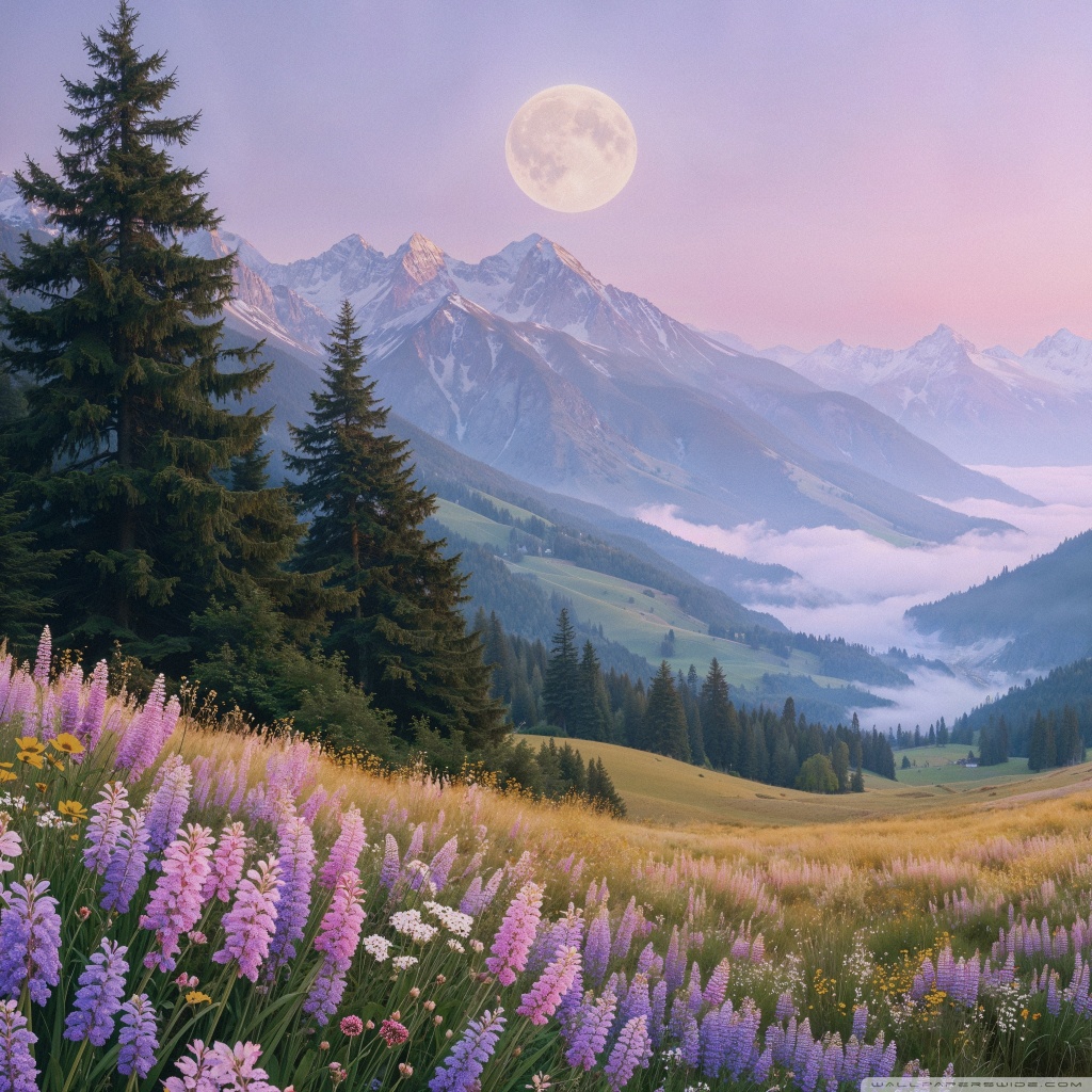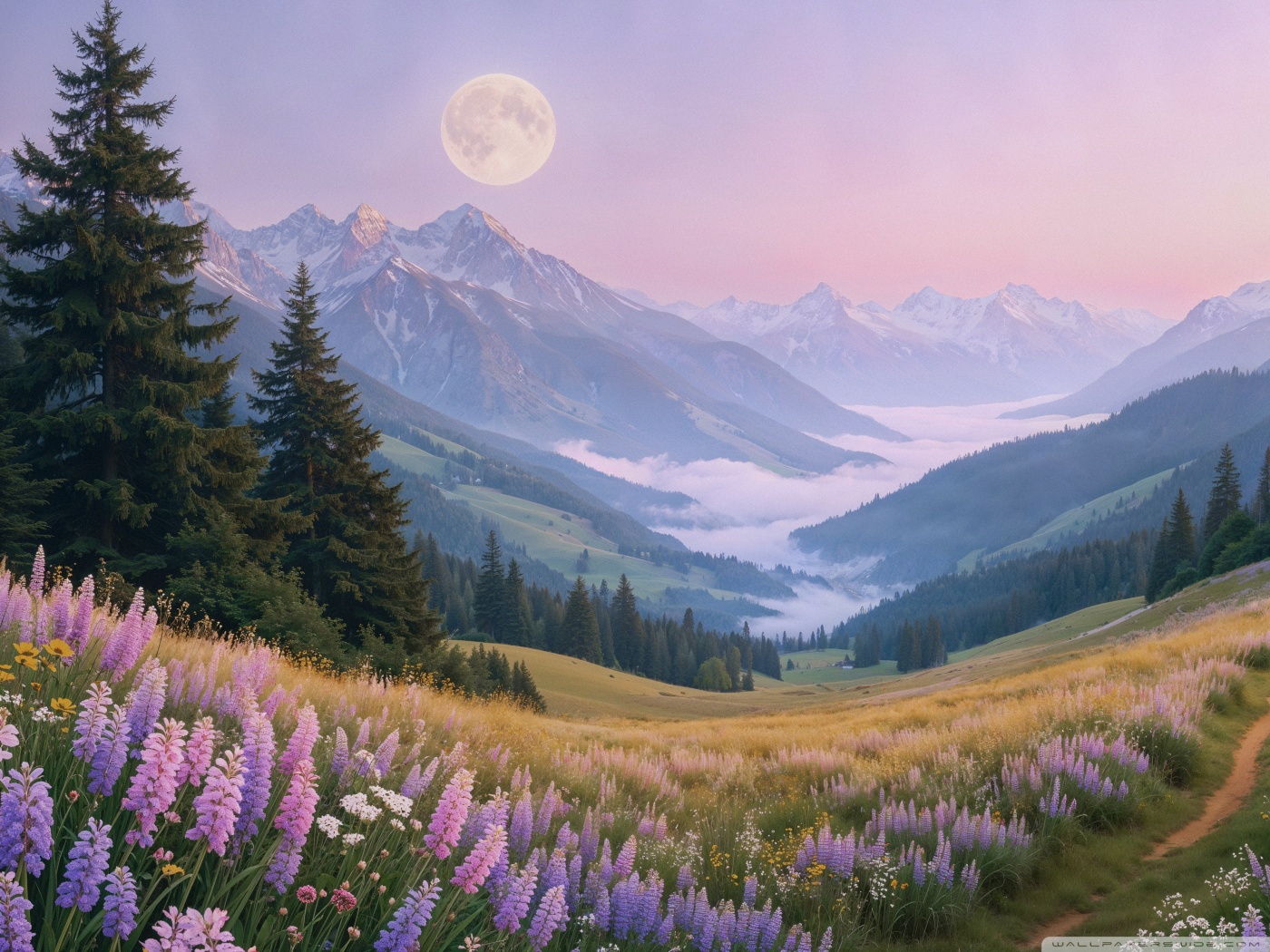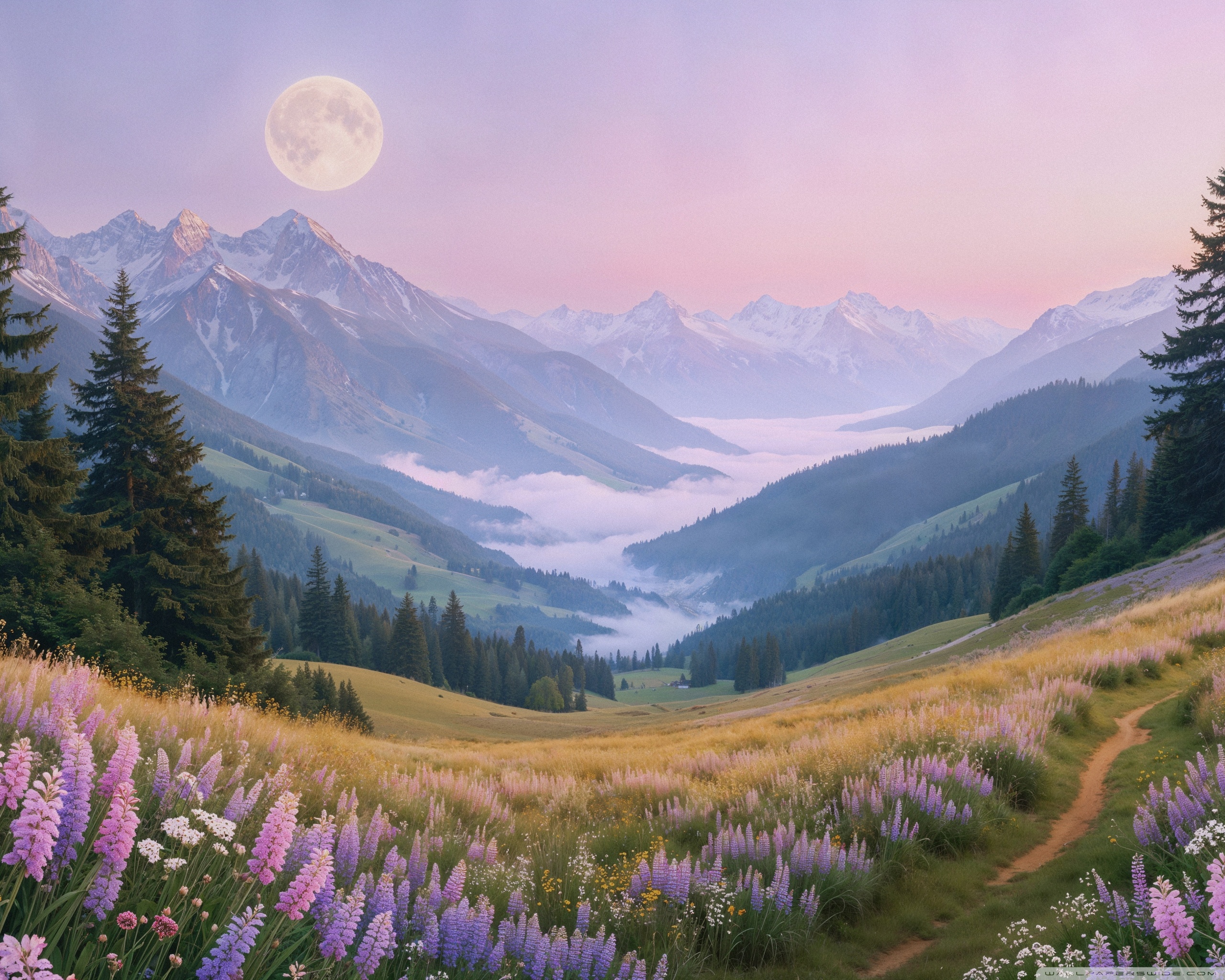Download Moonrise Over Valley View 4K UHD Wallpaper
