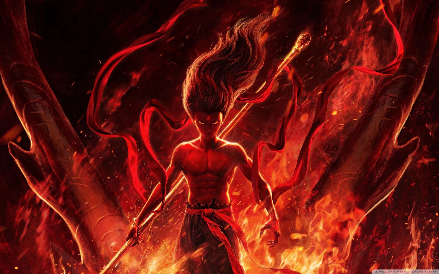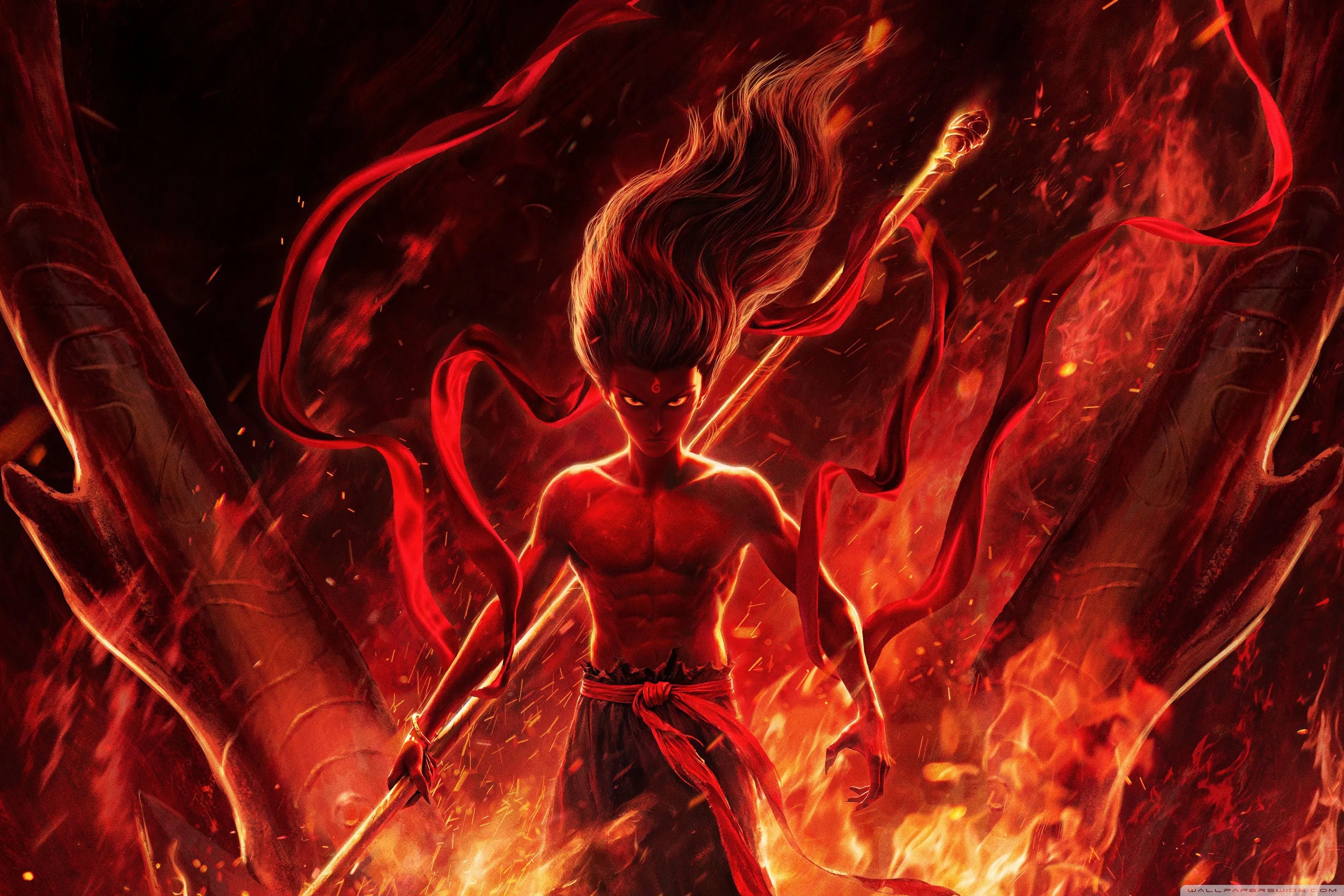 Download Ne Zha 2, Ne Zha Mastering Fire 4K UHD Wallpaper