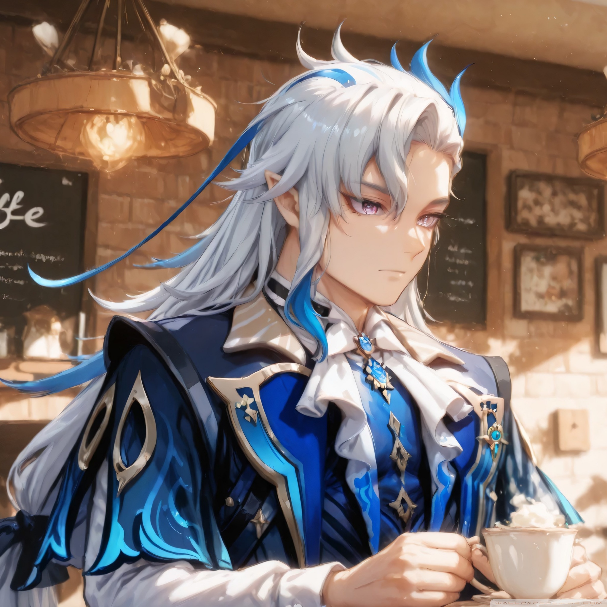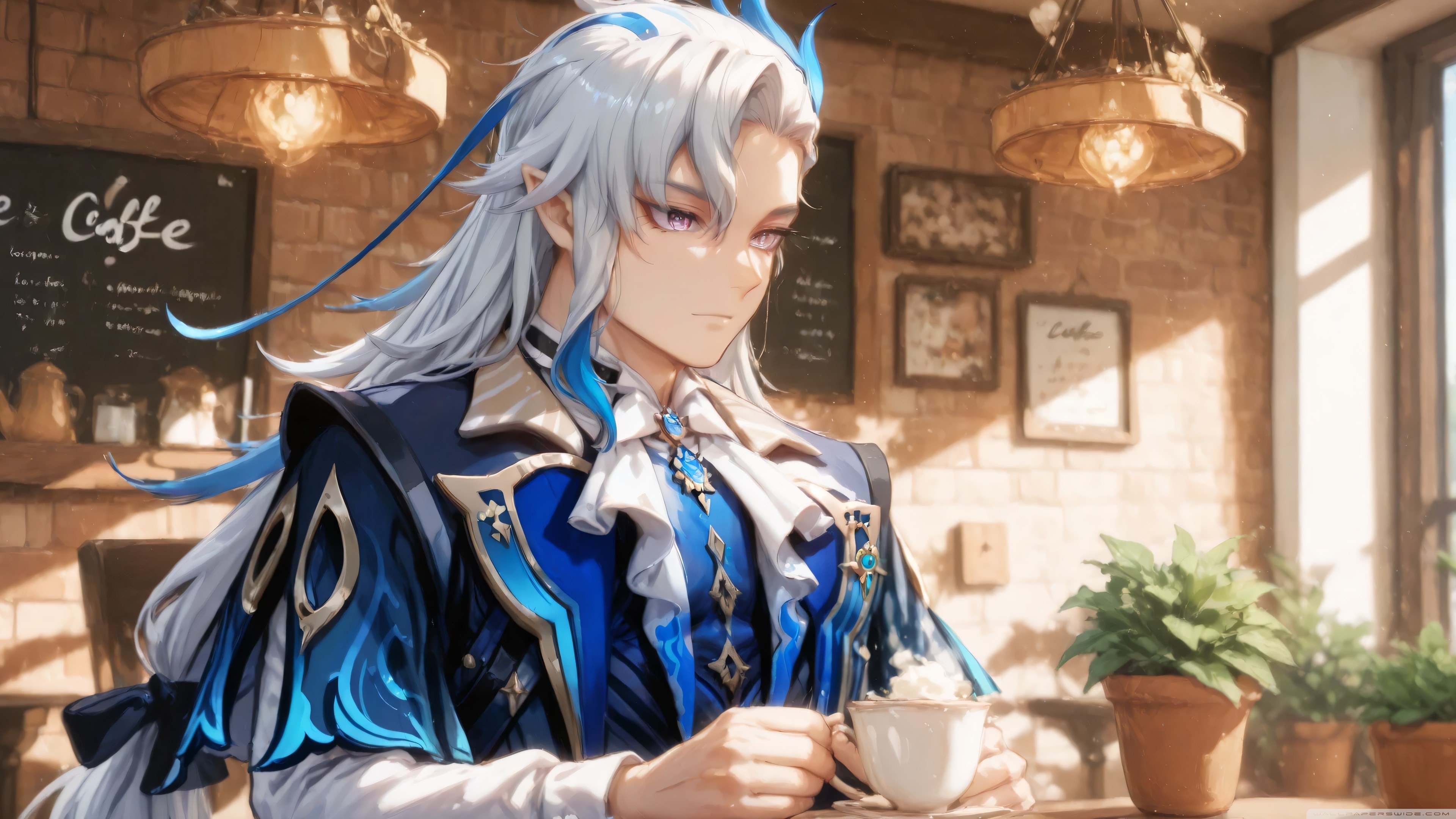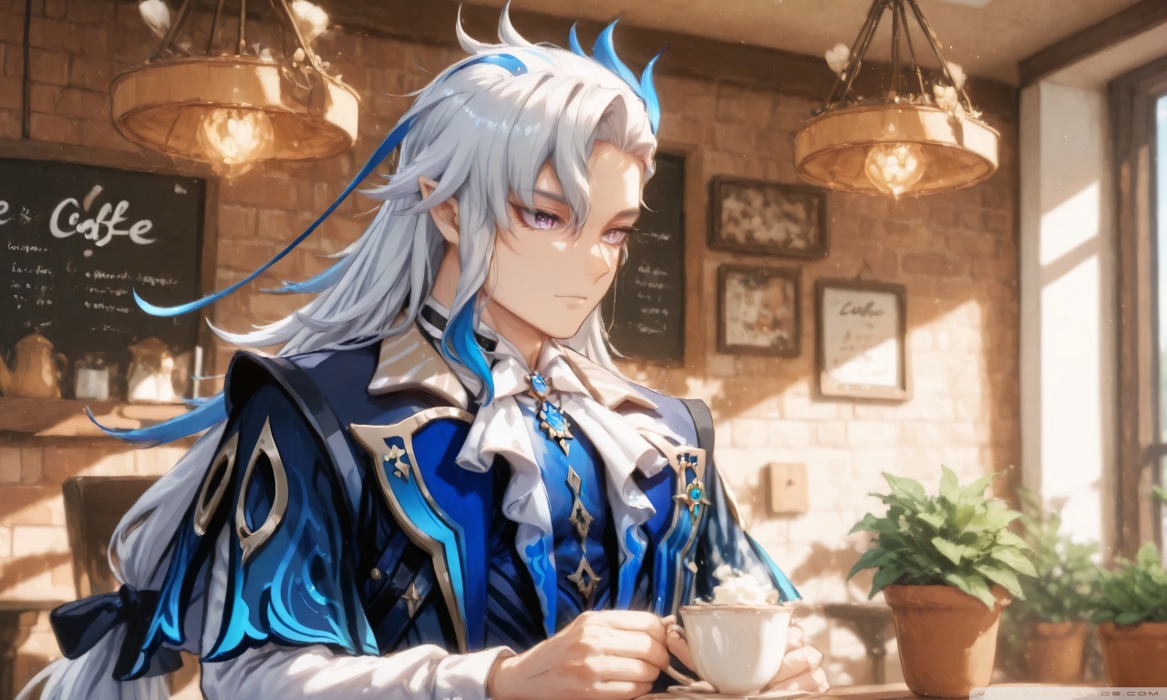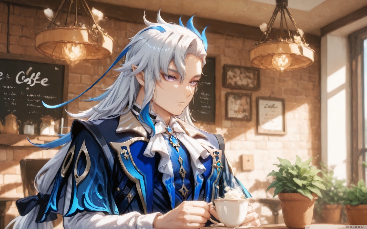 Download Neuvillette in a Coffee Shop - Genshin Impact 4K UHD Wallpaper