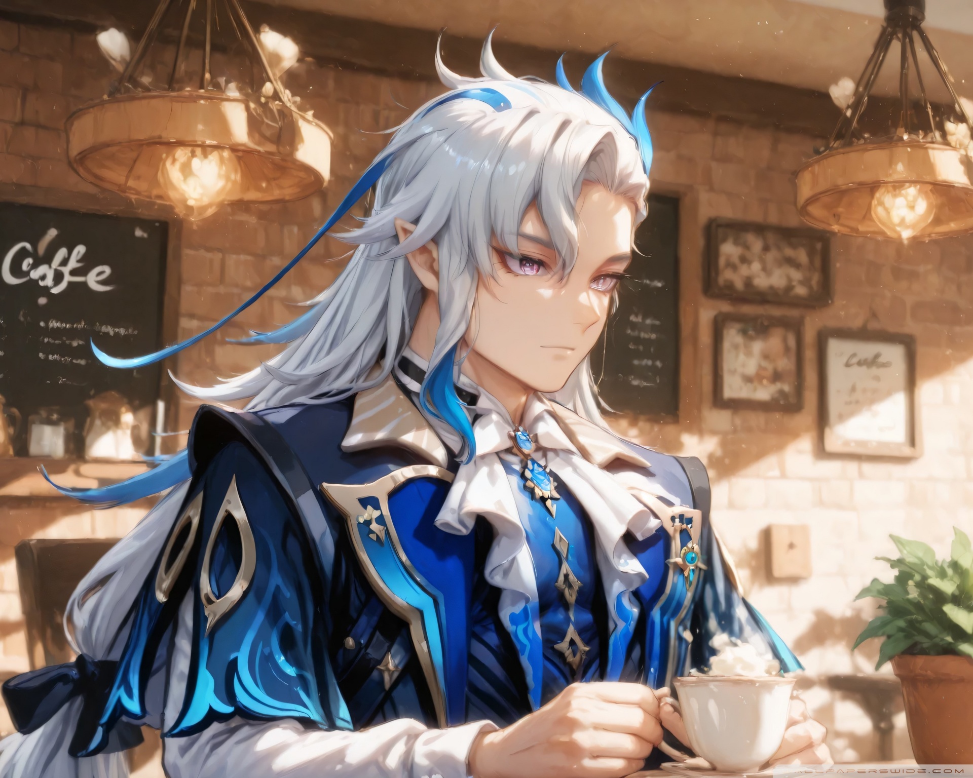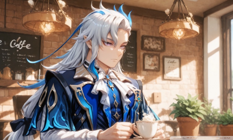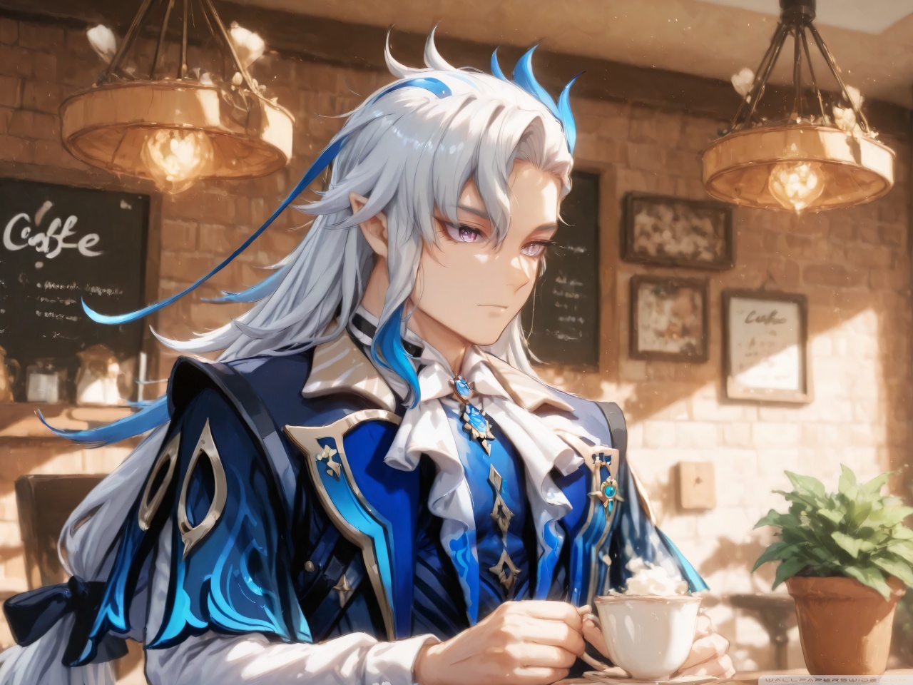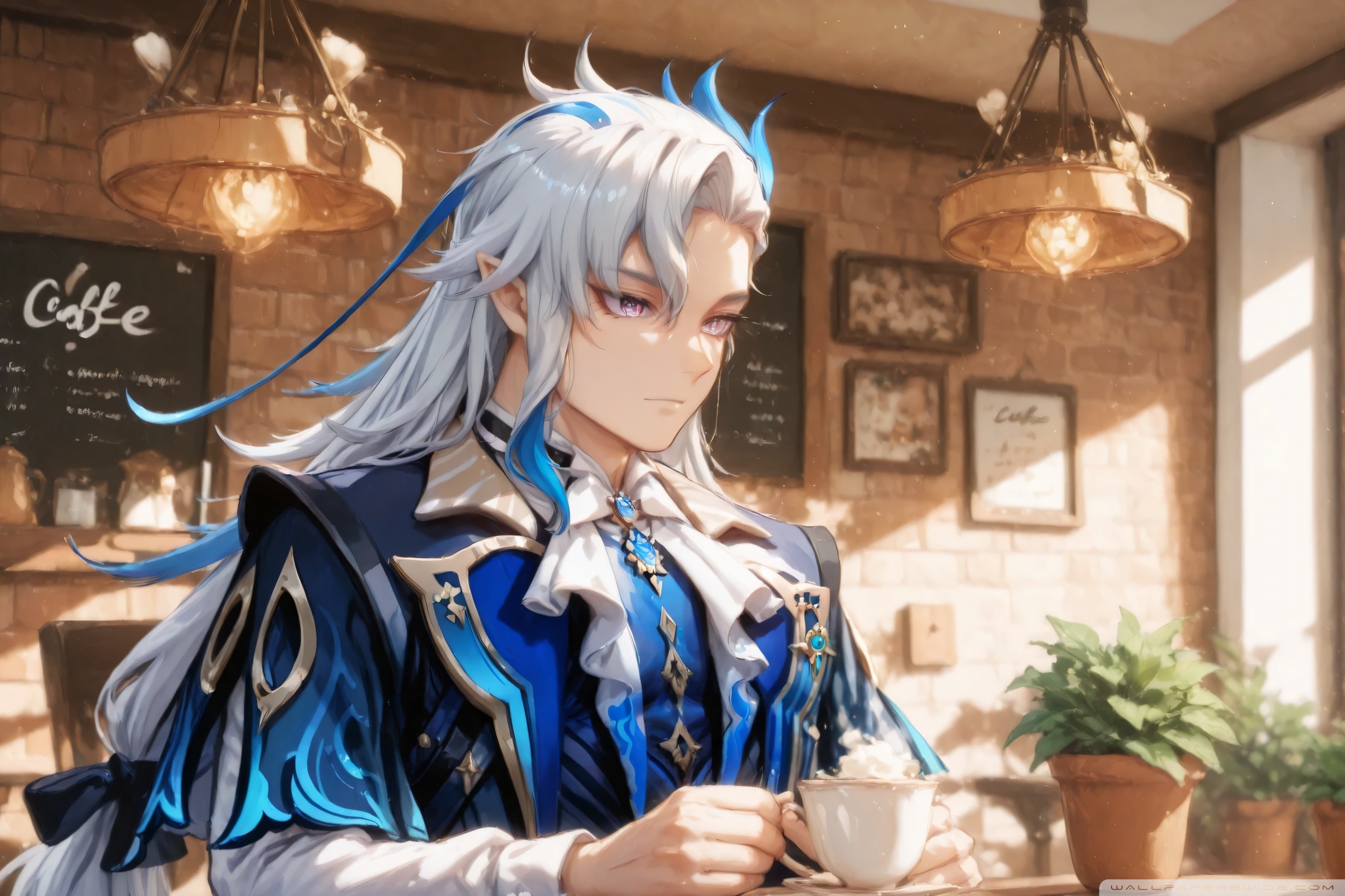 Download Neuvillette in a Coffee Shop - Genshin Impact 4K UHD Wallpaper