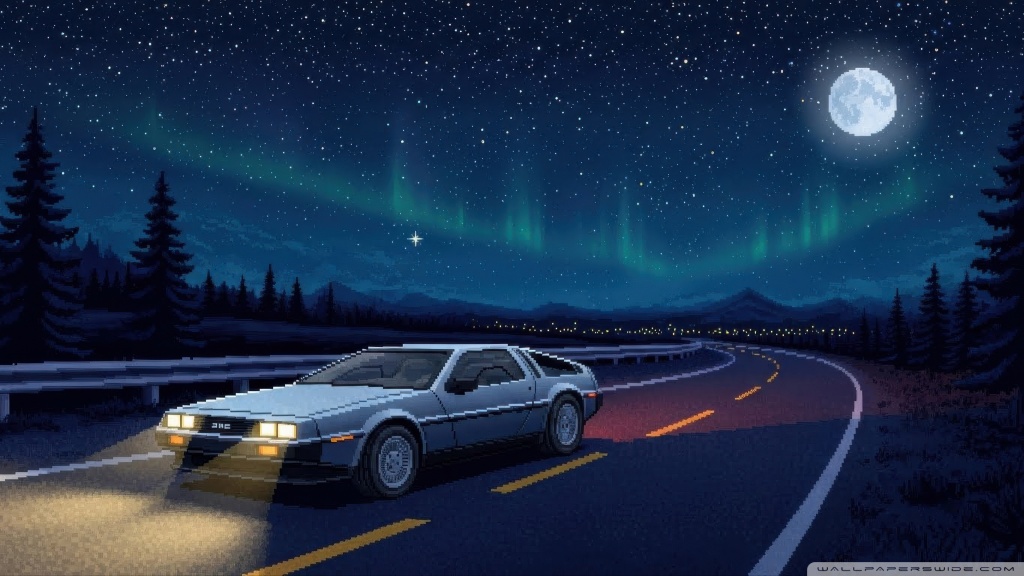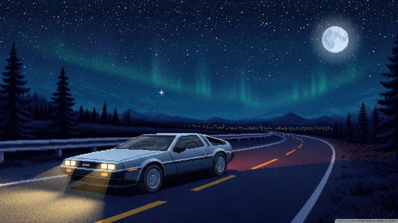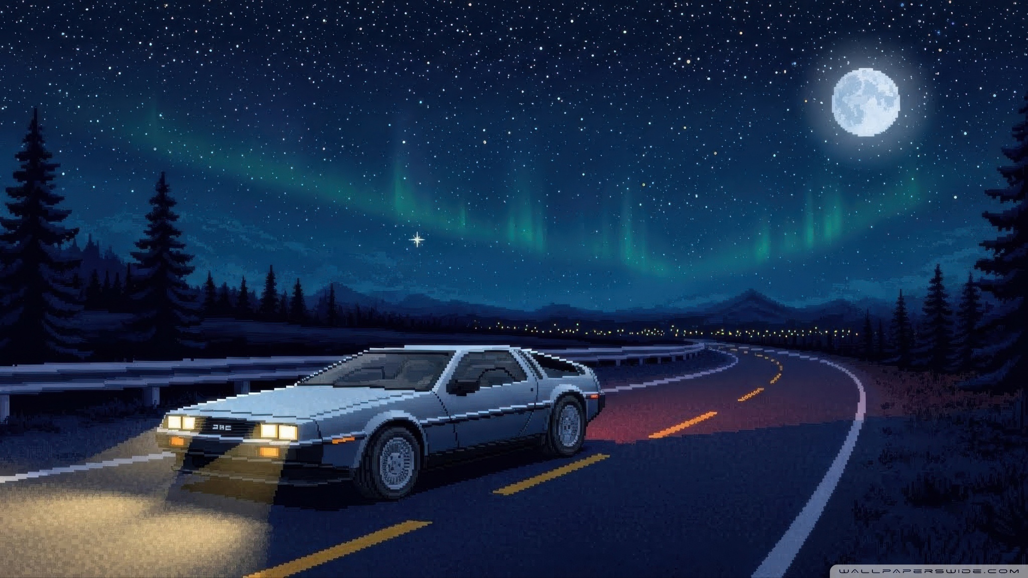Download Nighttime Mountain Road Aurora Borealis... 4K UHD Wallpaper