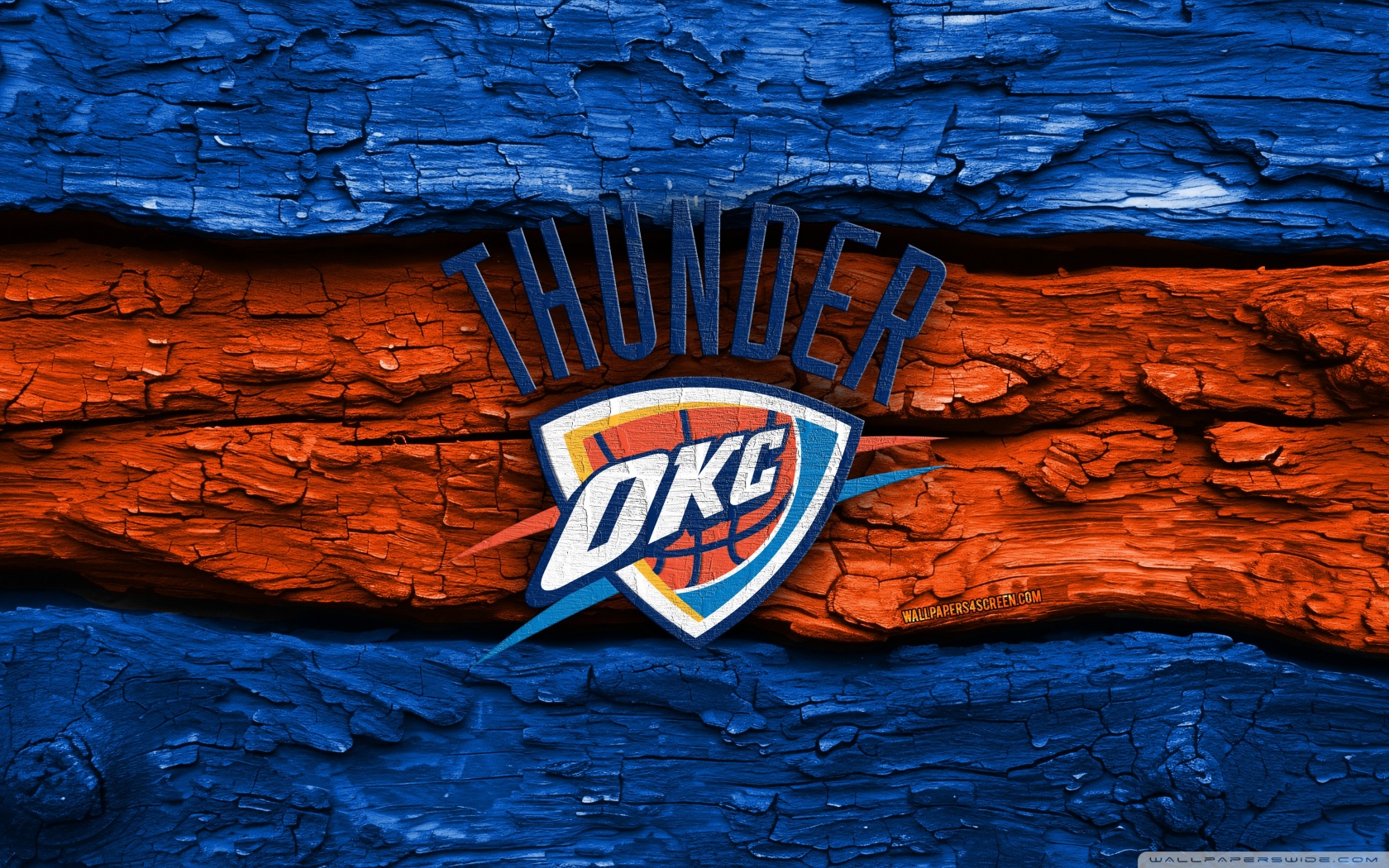 Download Oklahoma City Thunder Wooden Logo 4K UHD Wallpaper