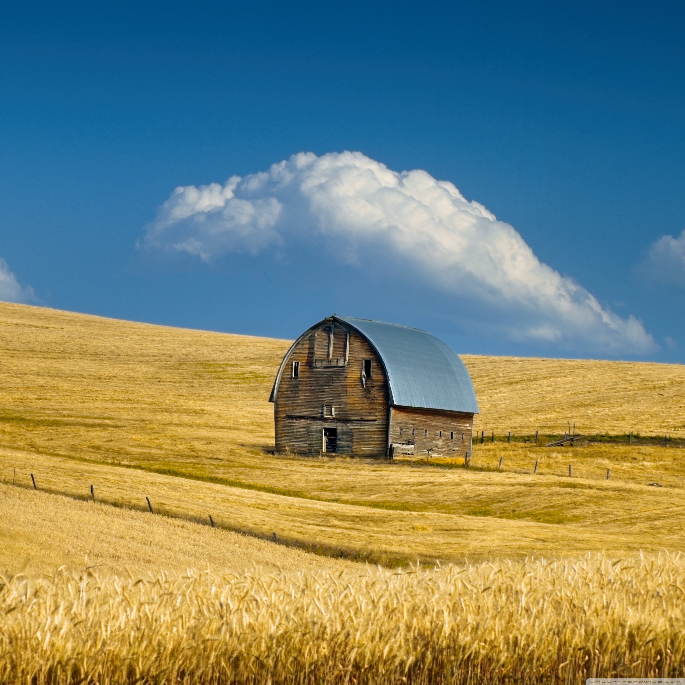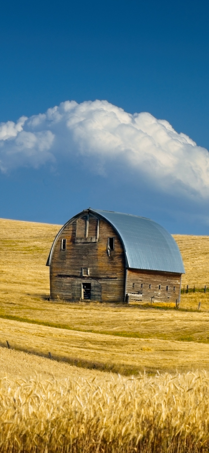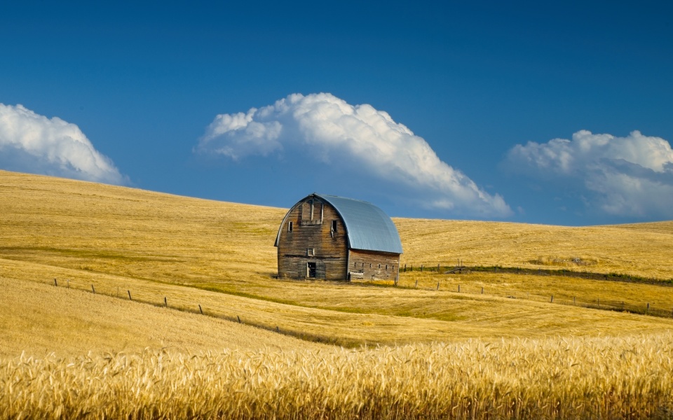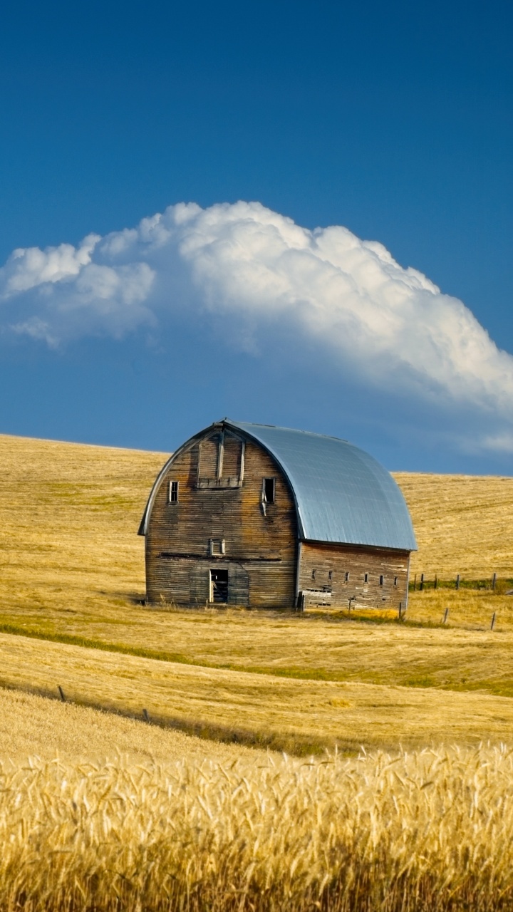 Download Old Barn, Summer Wheat Field, Idaho, US 4K UHD Wallpaper