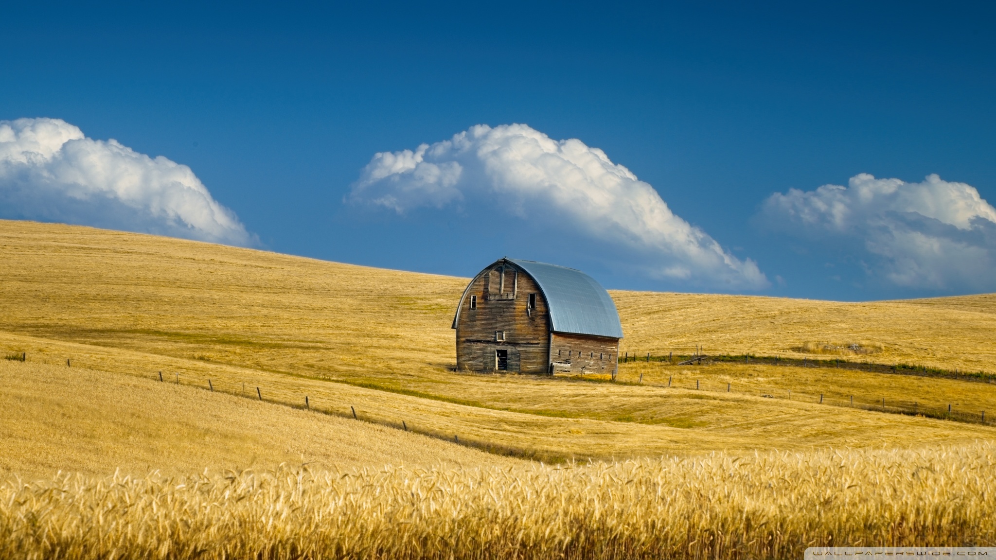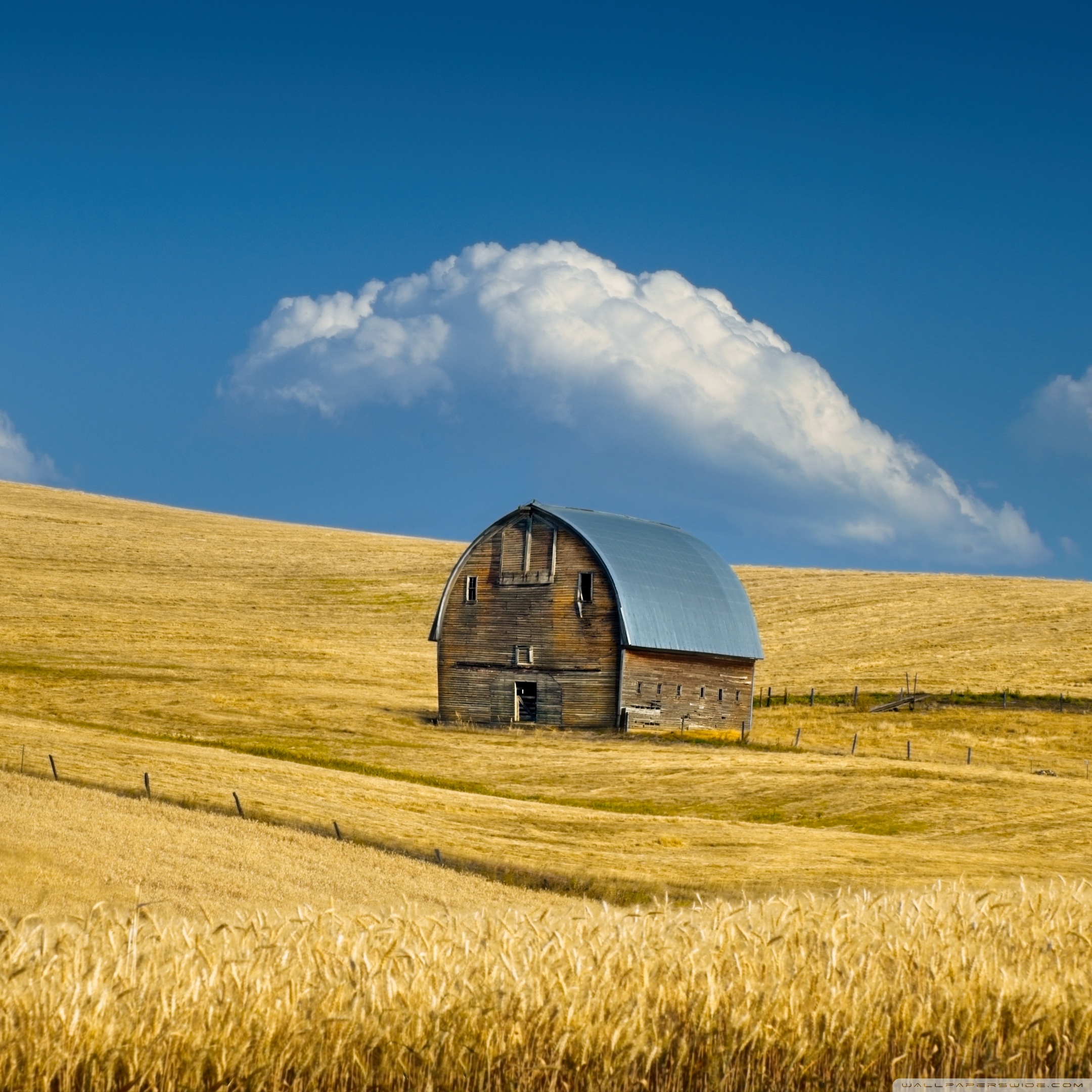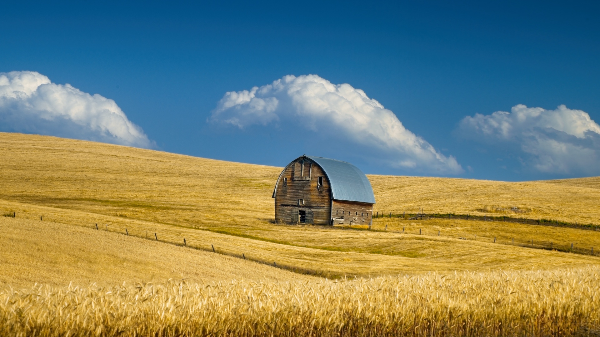 Download Old Barn, Summer Wheat Field, Idaho, US 4K UHD Wallpaper
