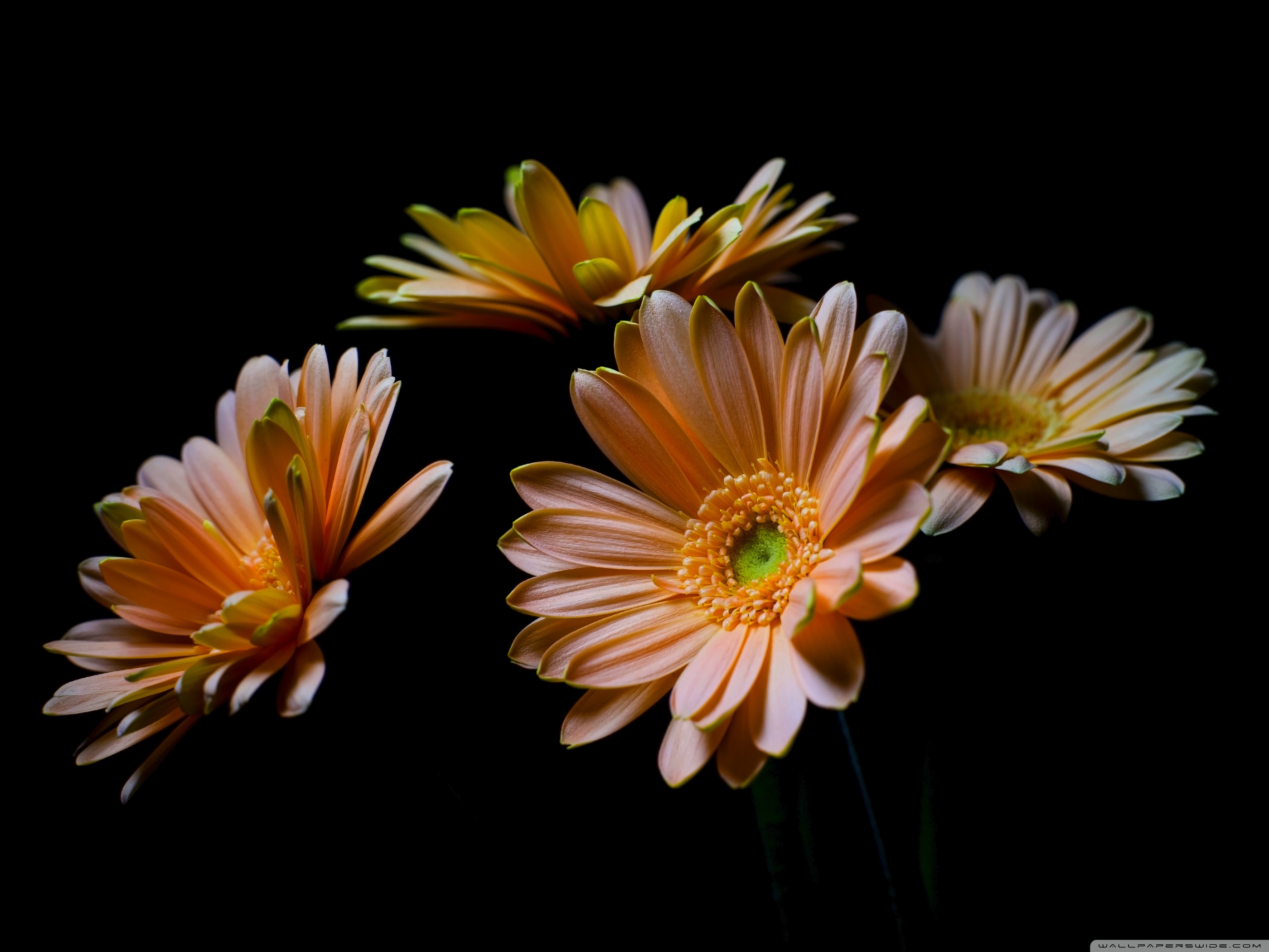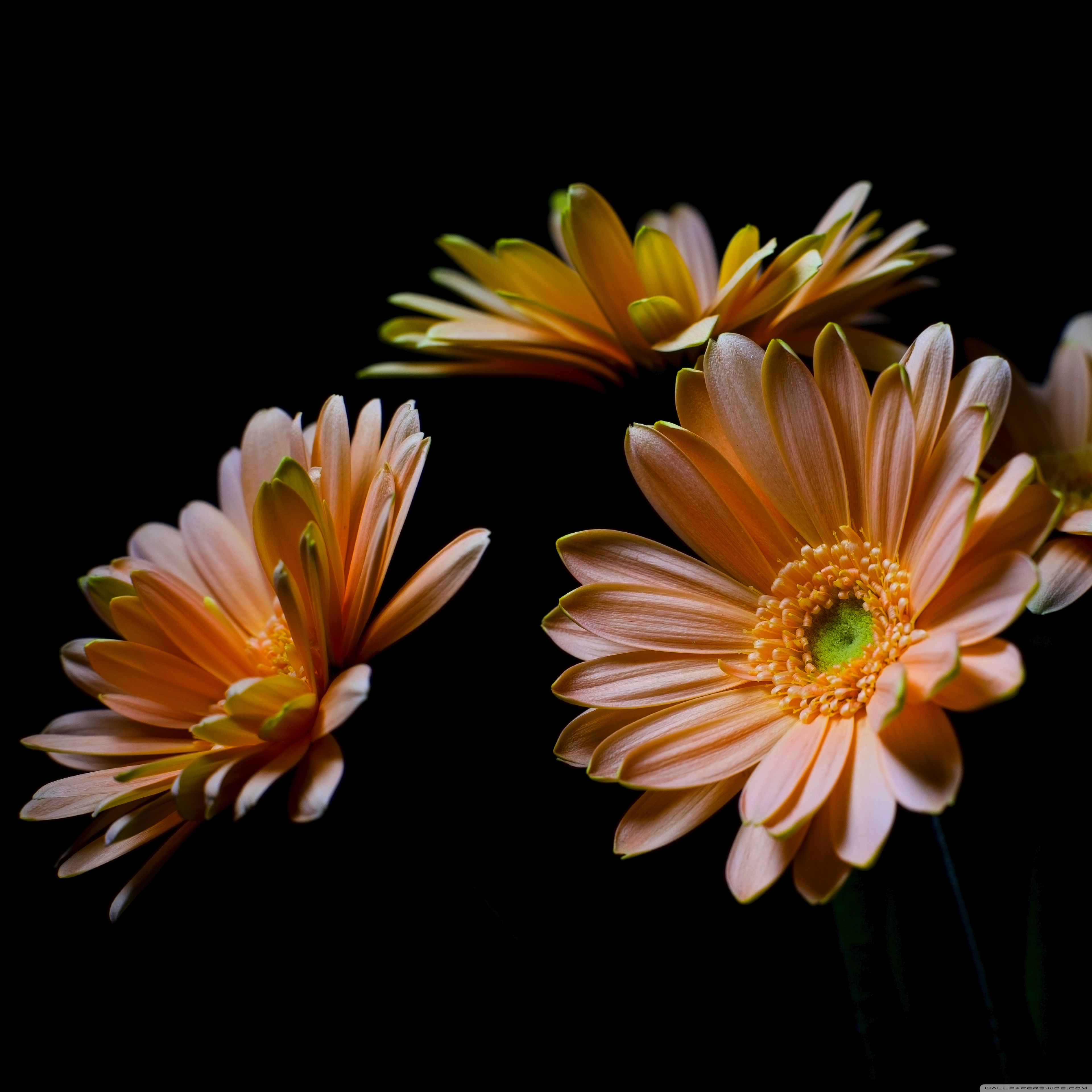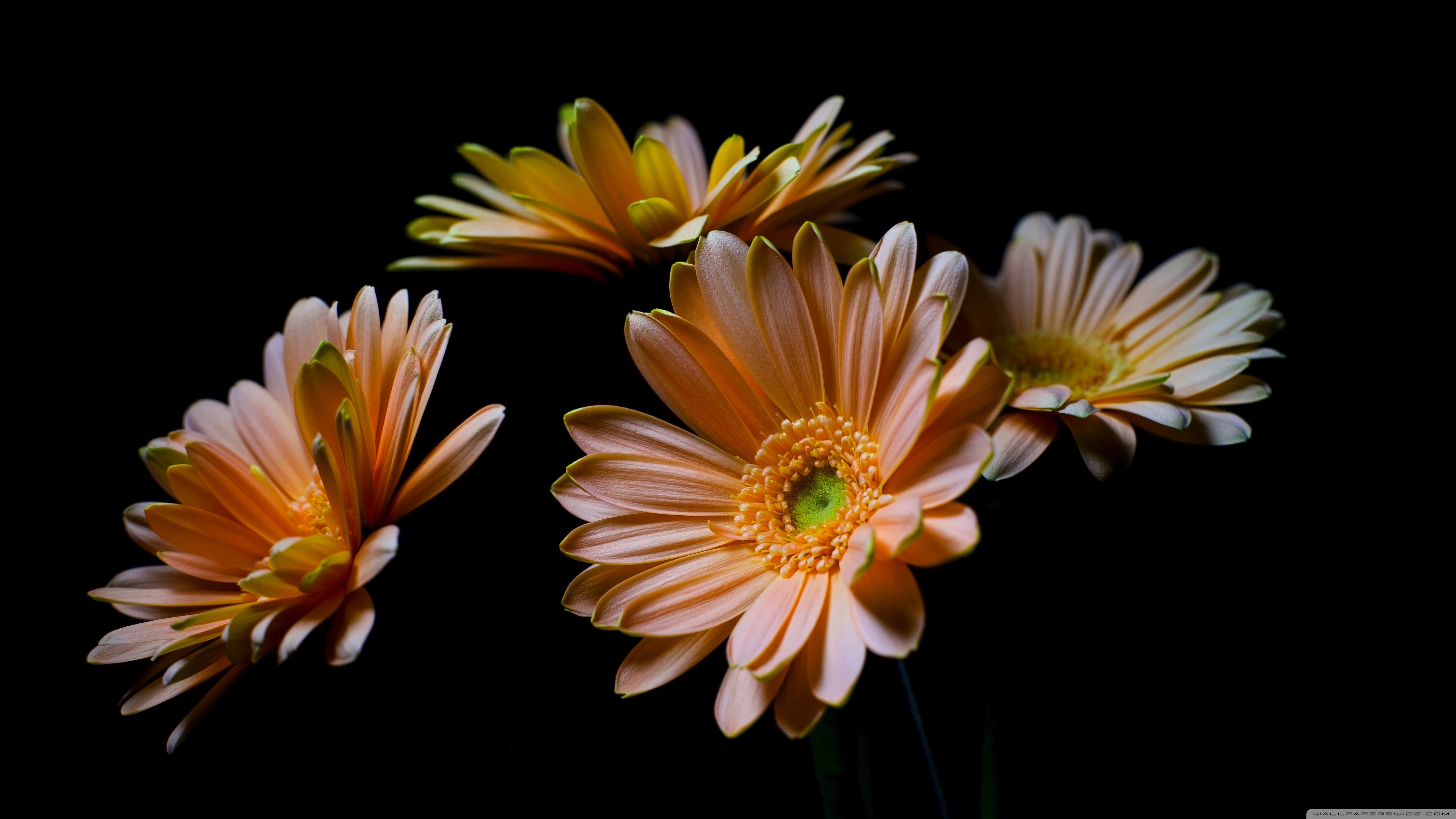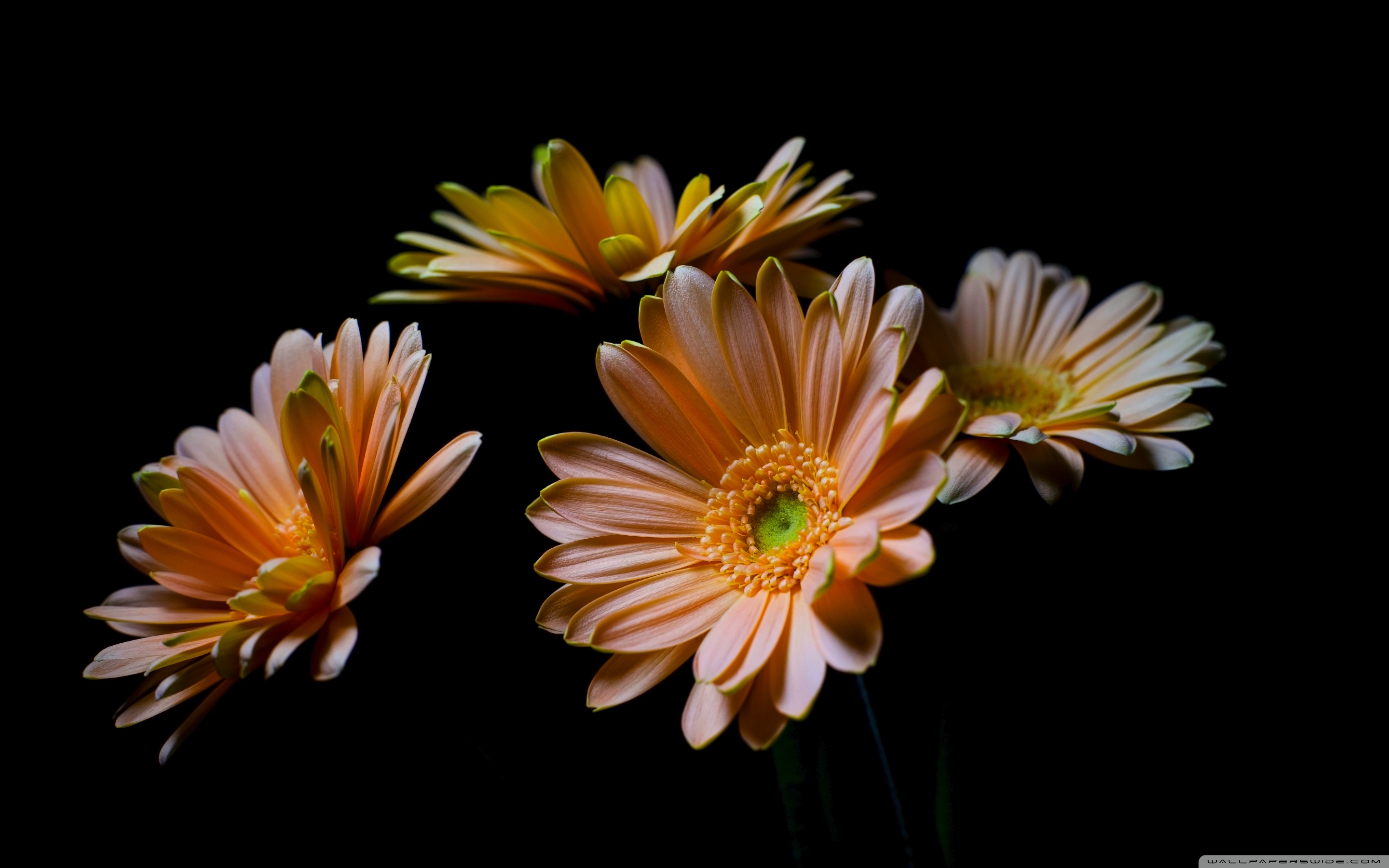 Download Orange Gerbera Daisy, Black Background 4K UHD Wallpaper