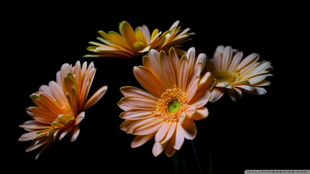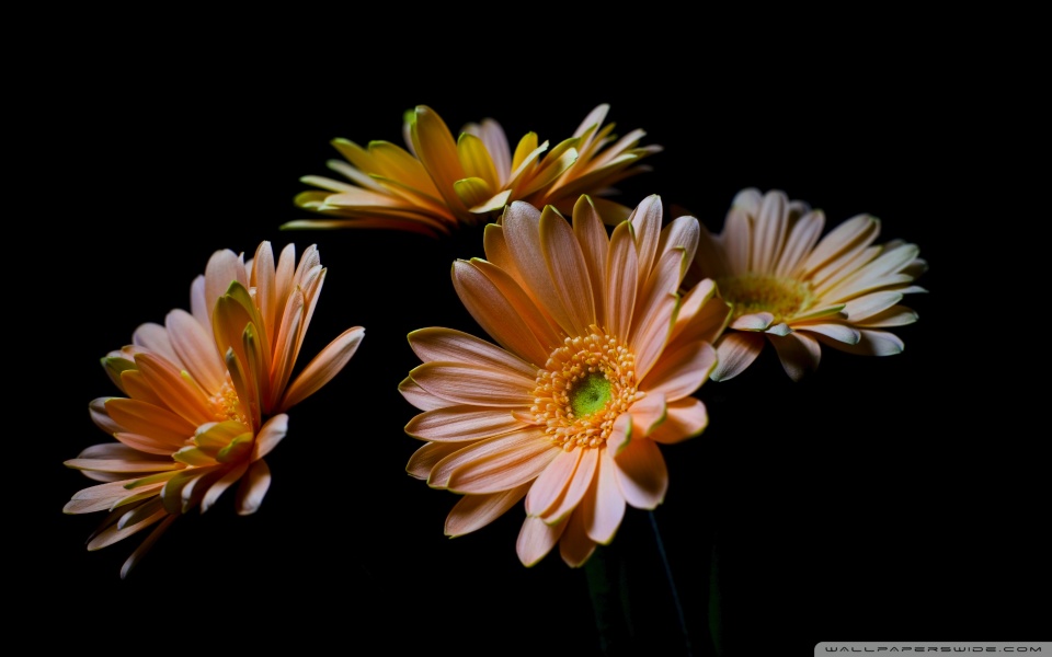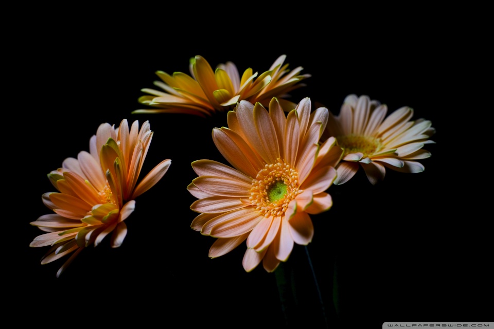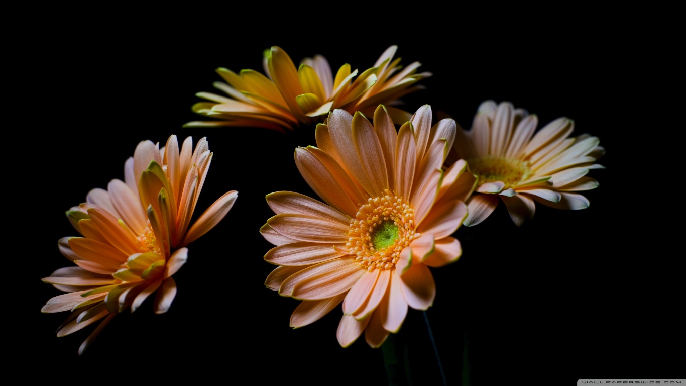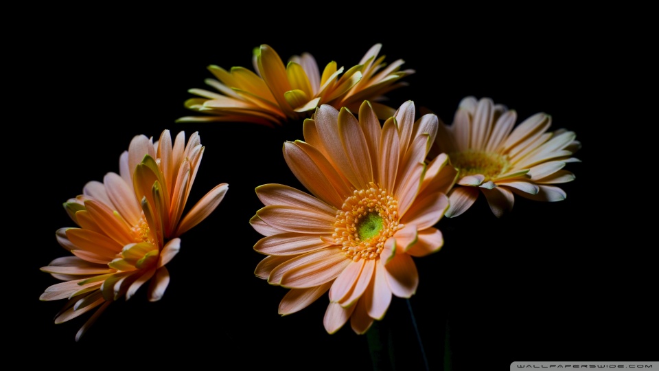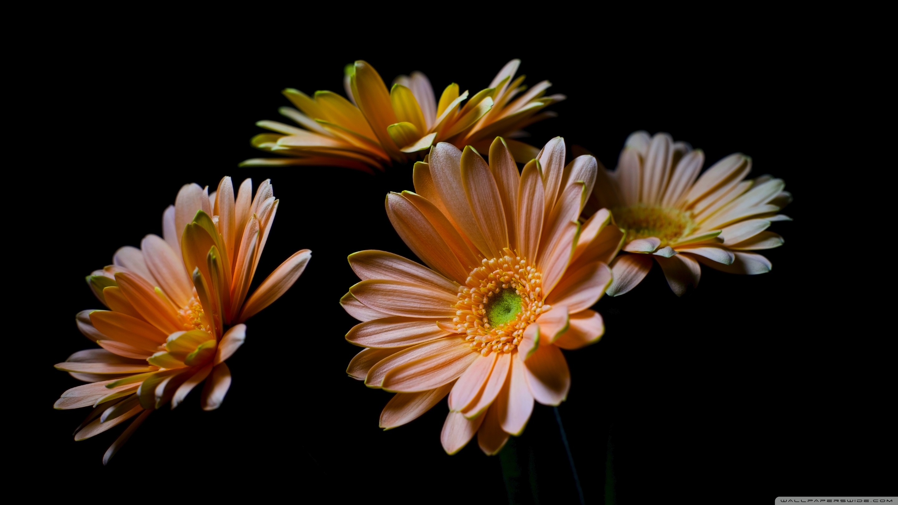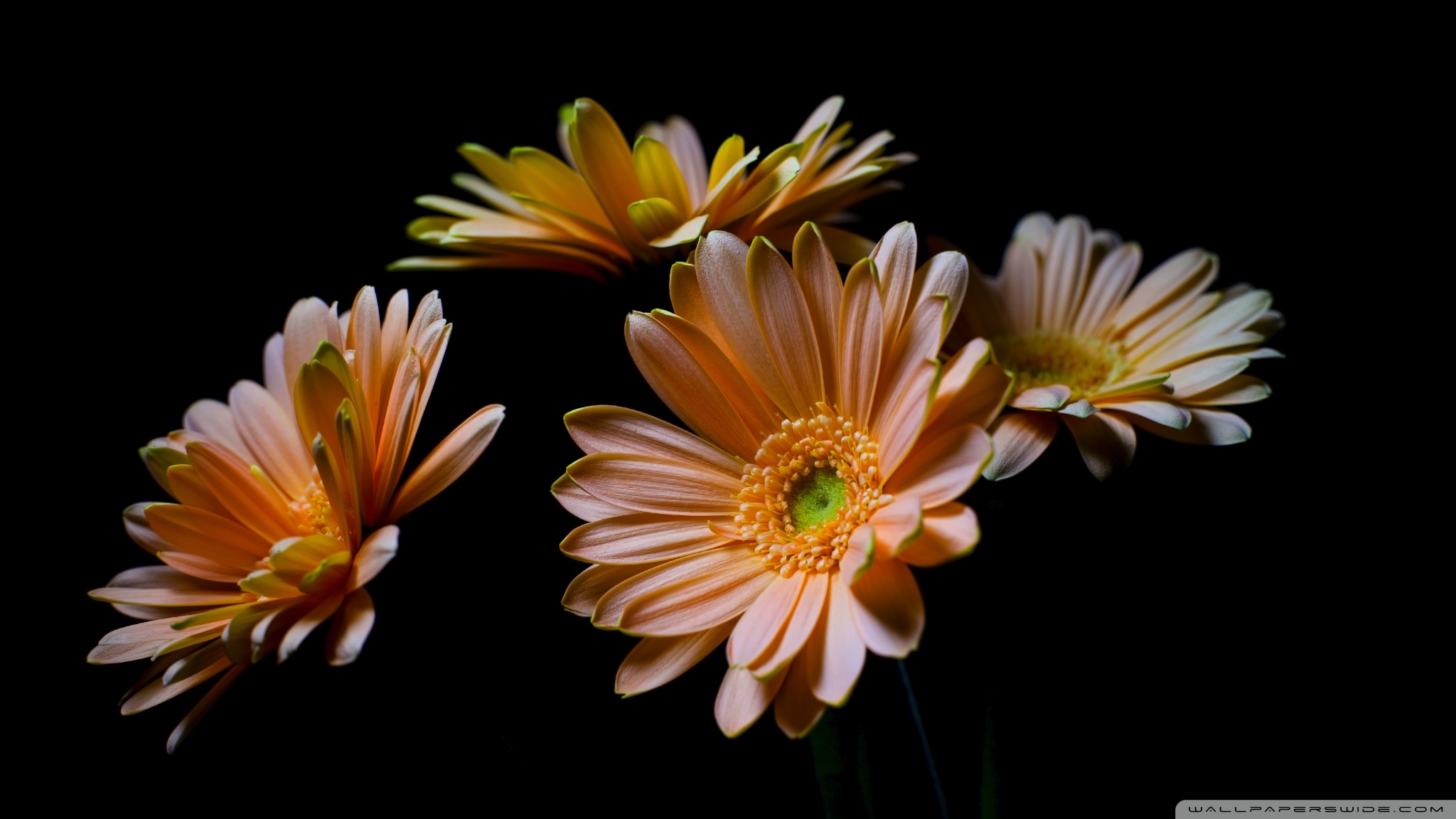 Download Orange Gerbera Daisy, Black Background 4K UHD Wallpaper