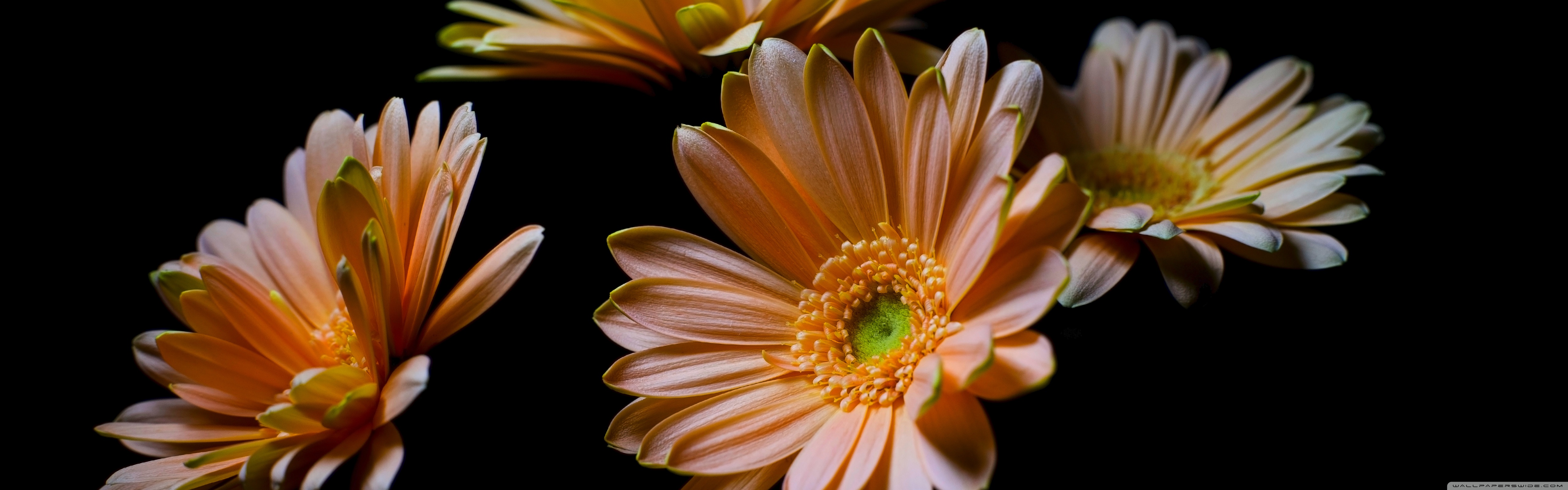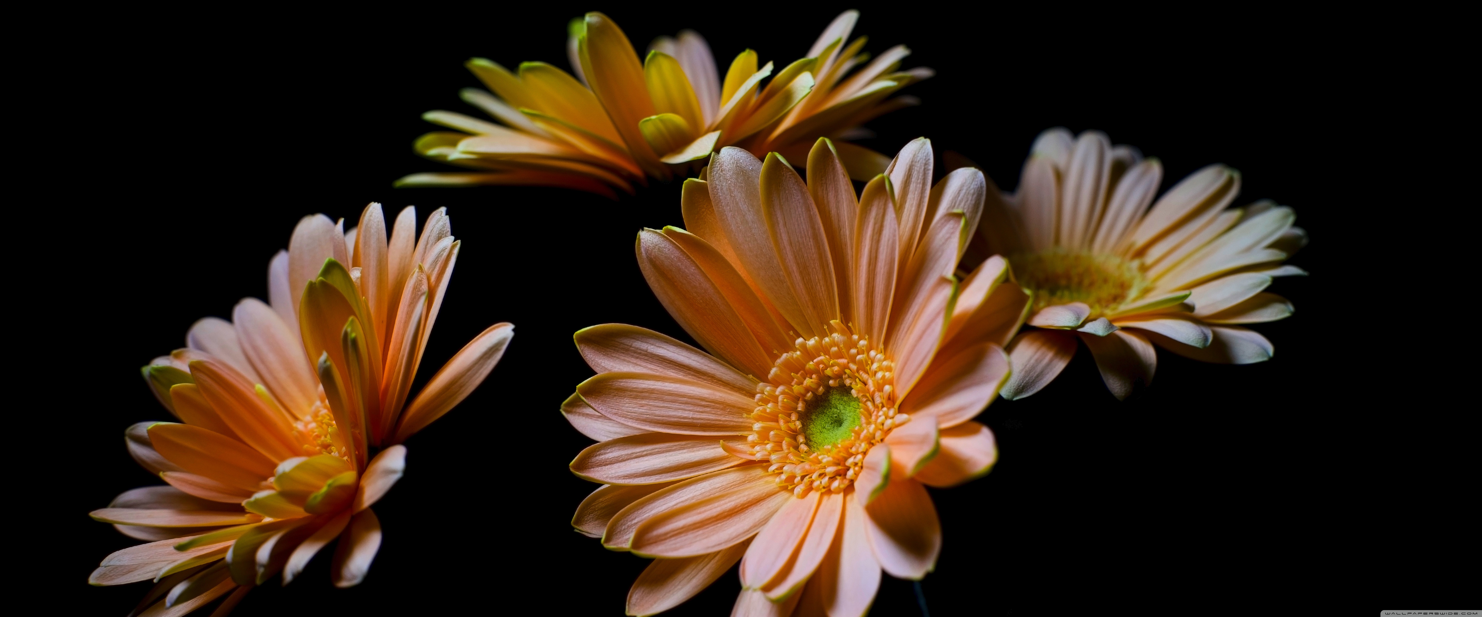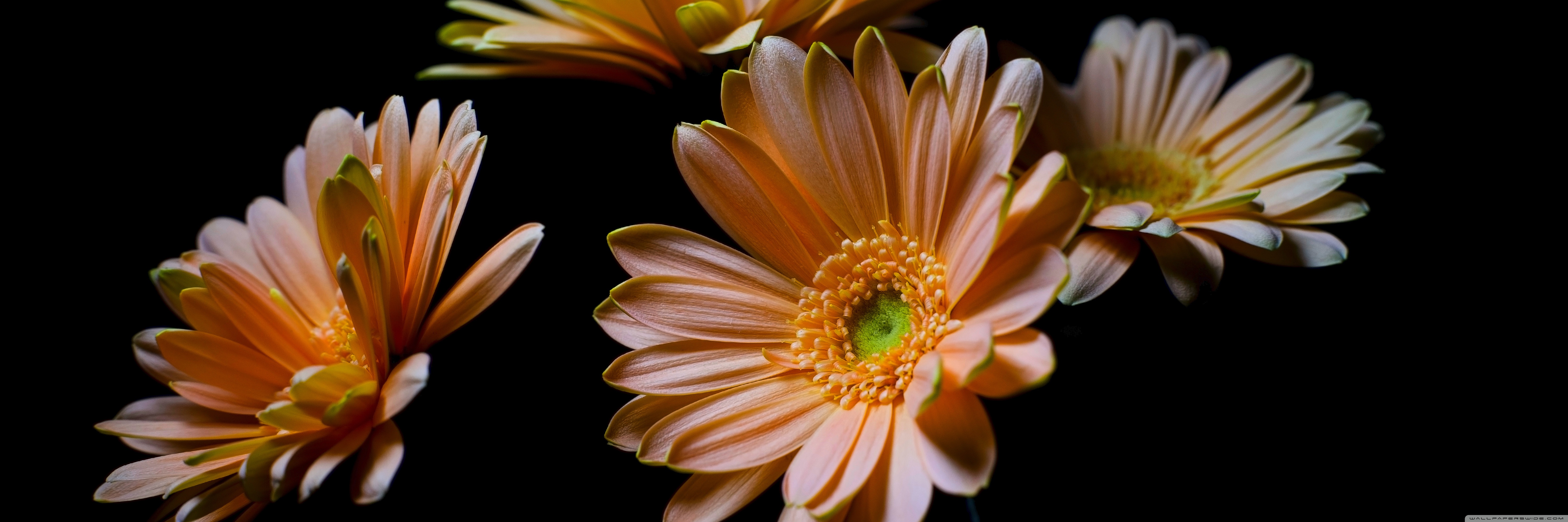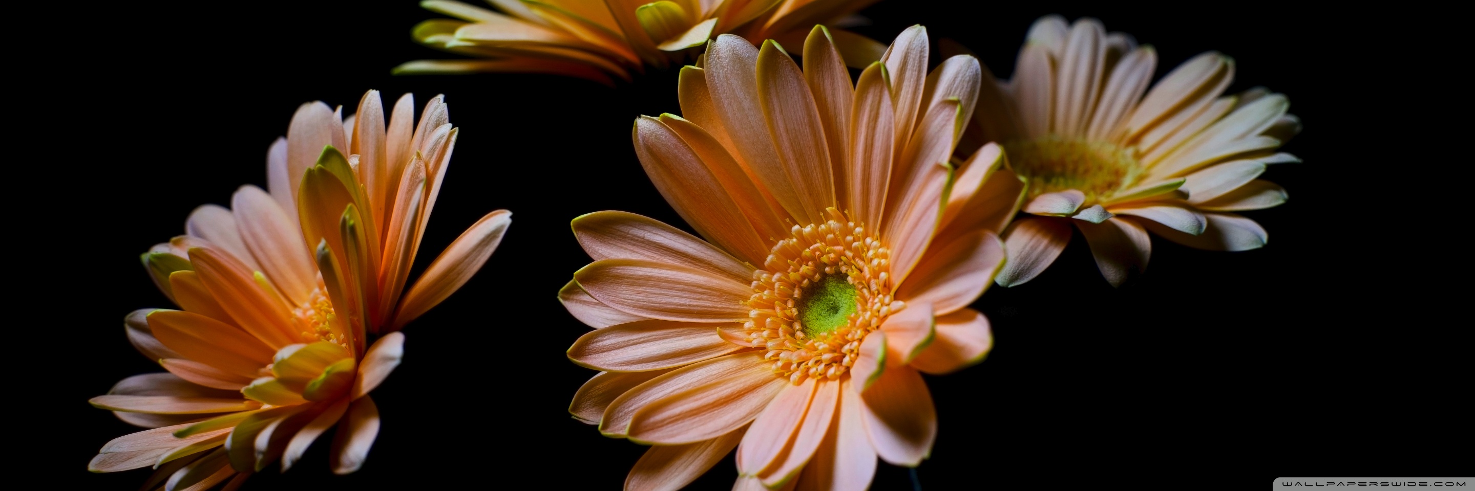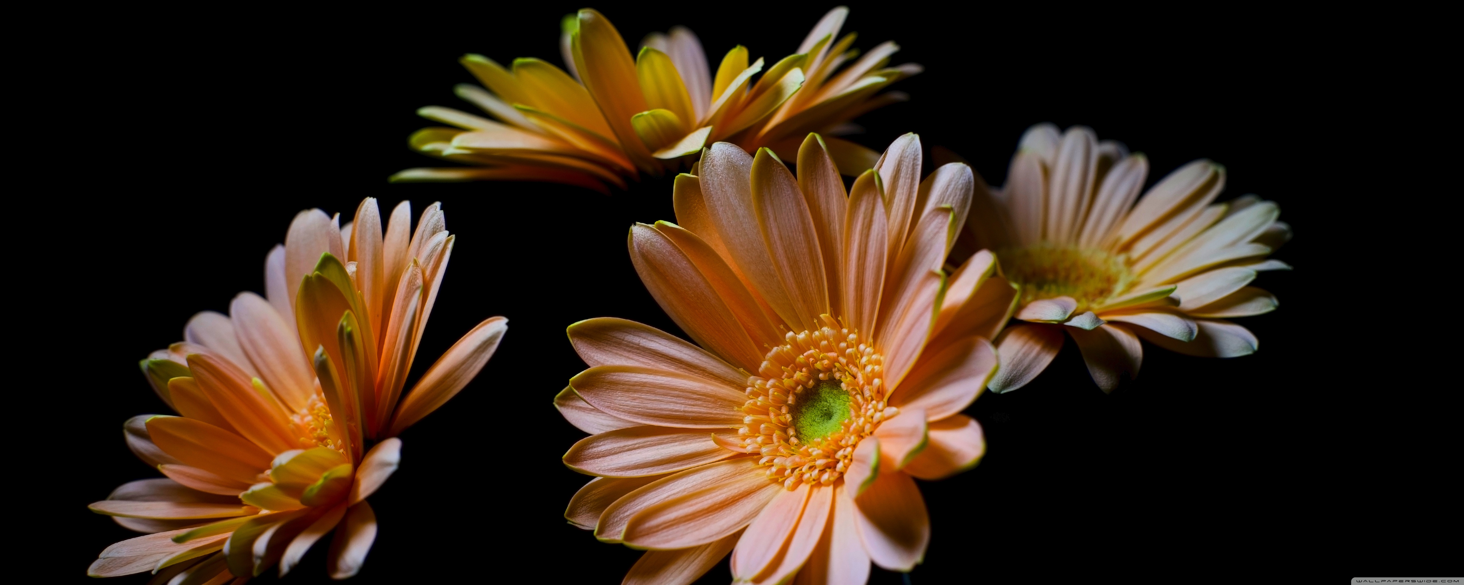 Download Orange Gerbera Daisy, Black Background 4K UHD Wallpaper