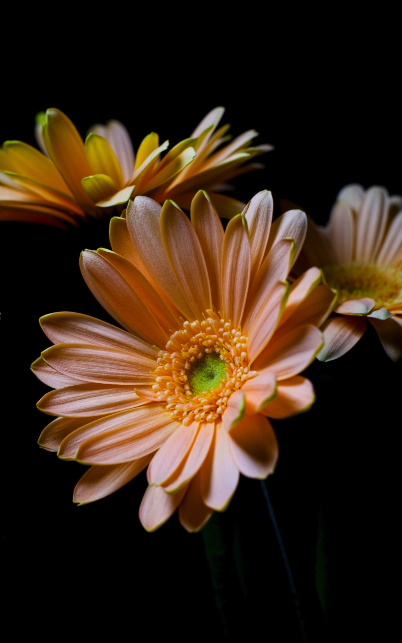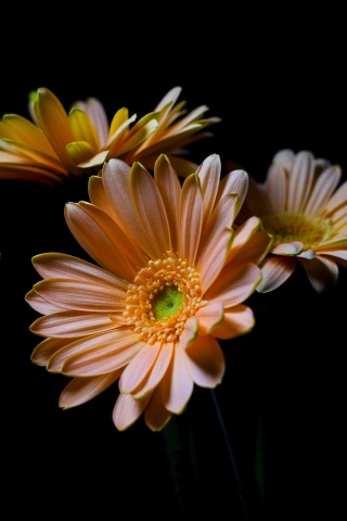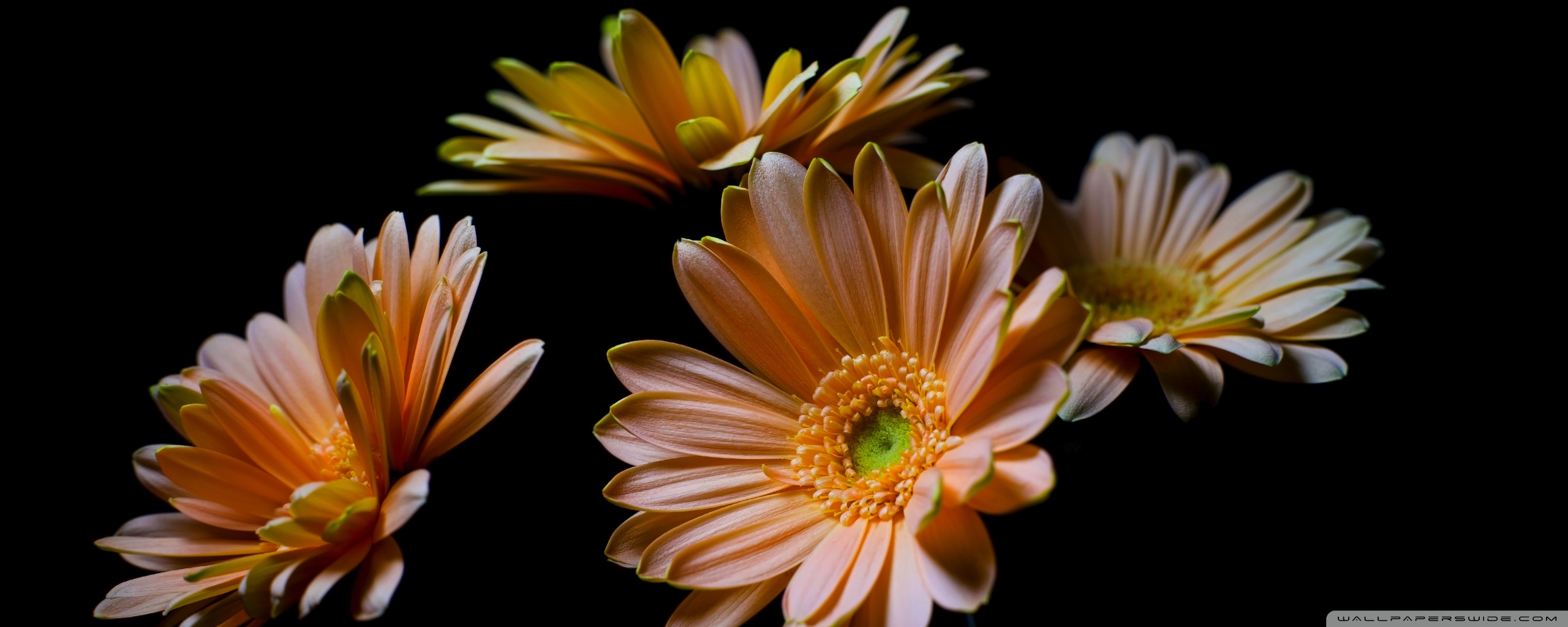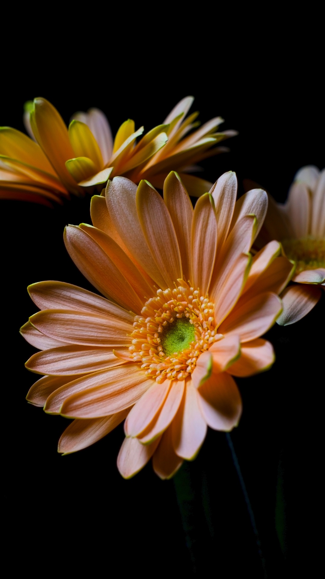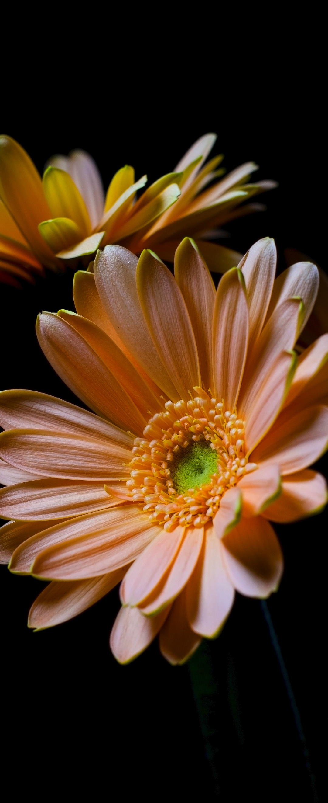 Download Orange Gerbera Daisy, Black Background 4K UHD Wallpaper