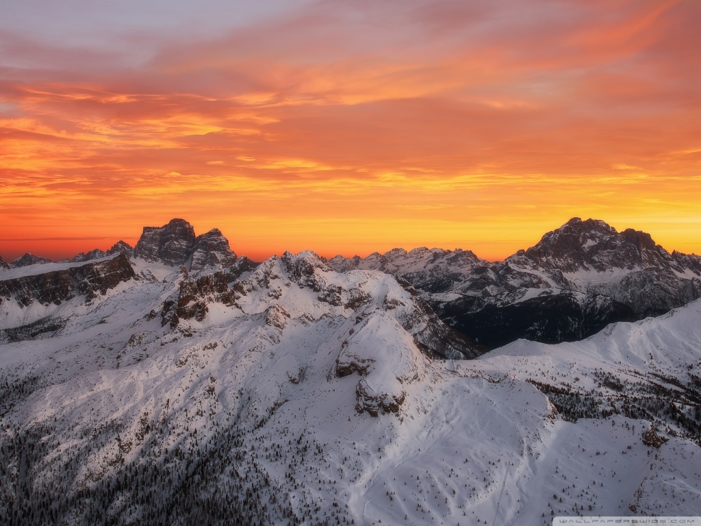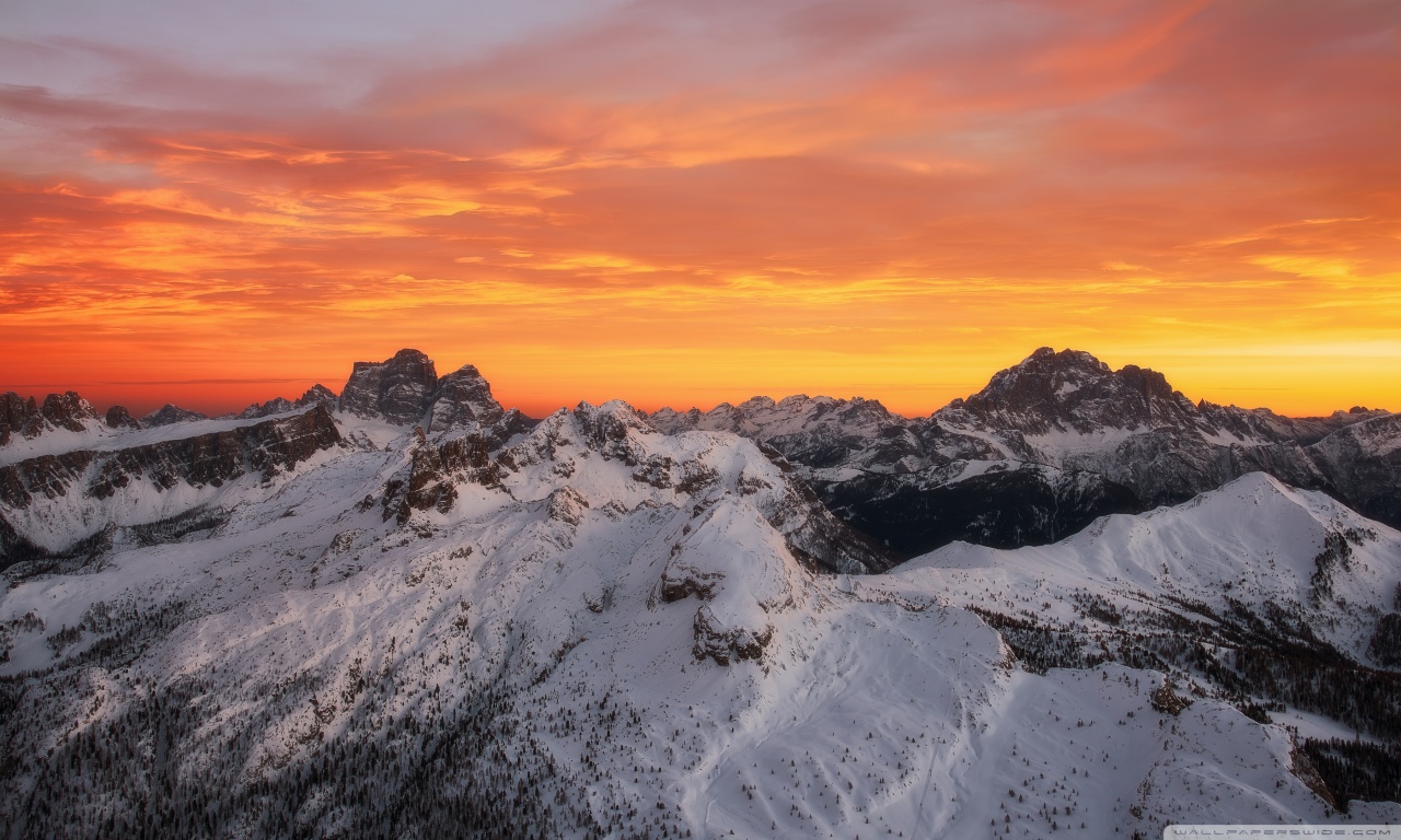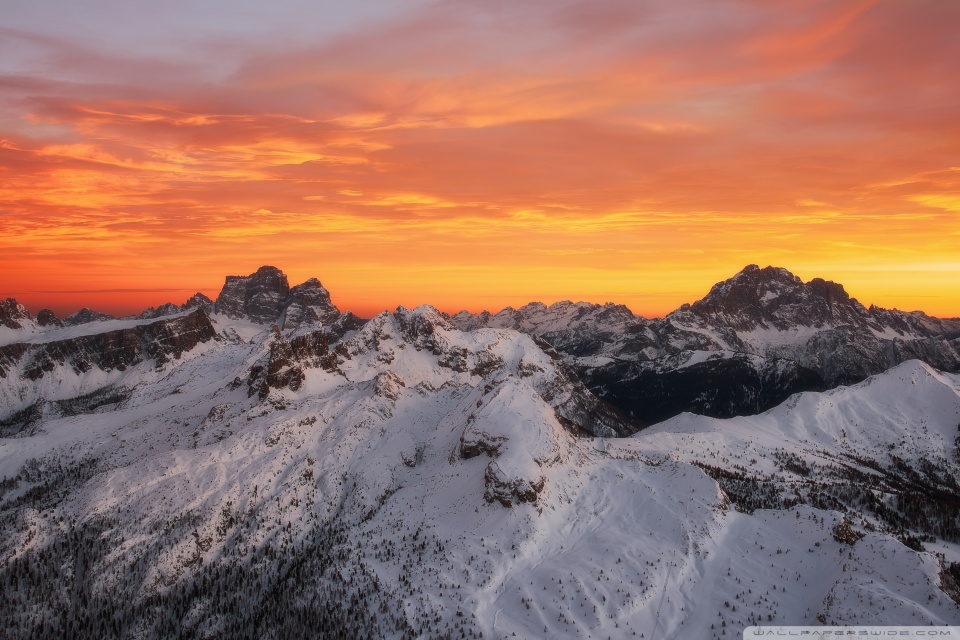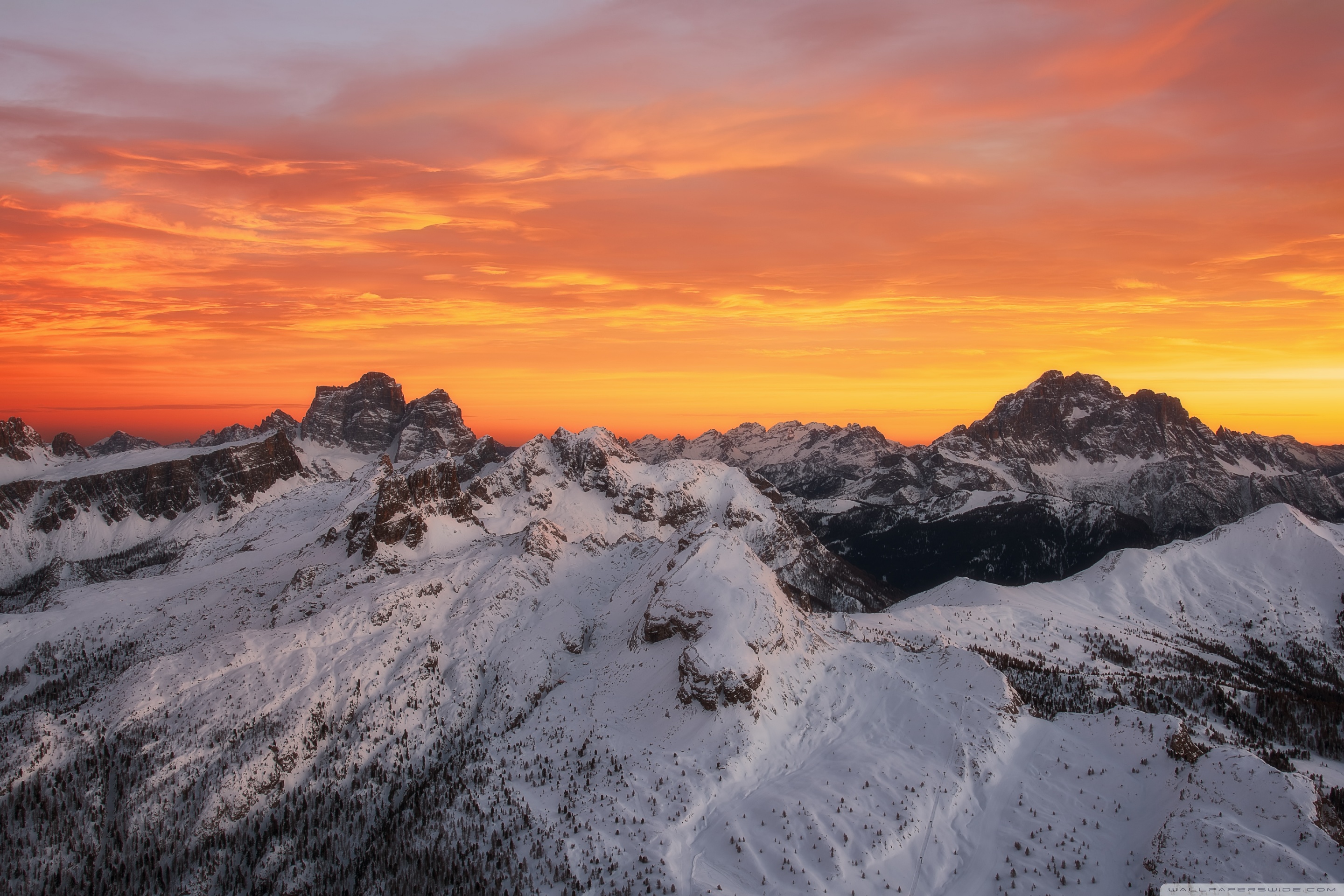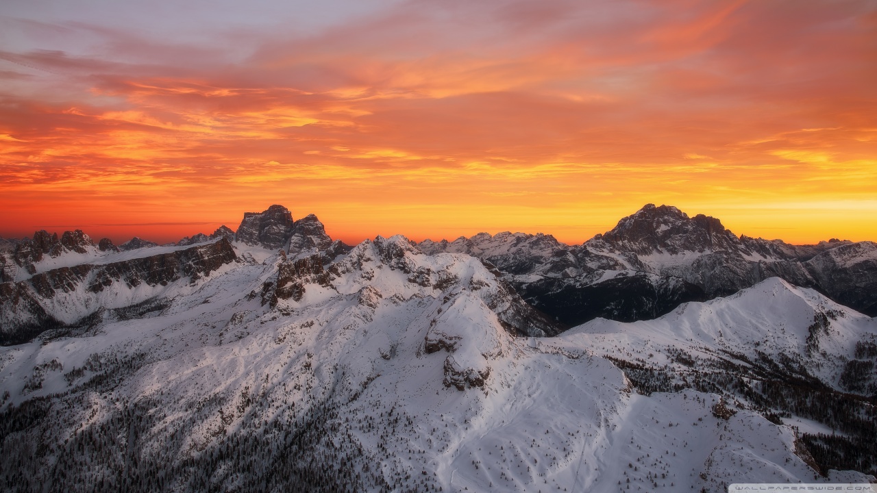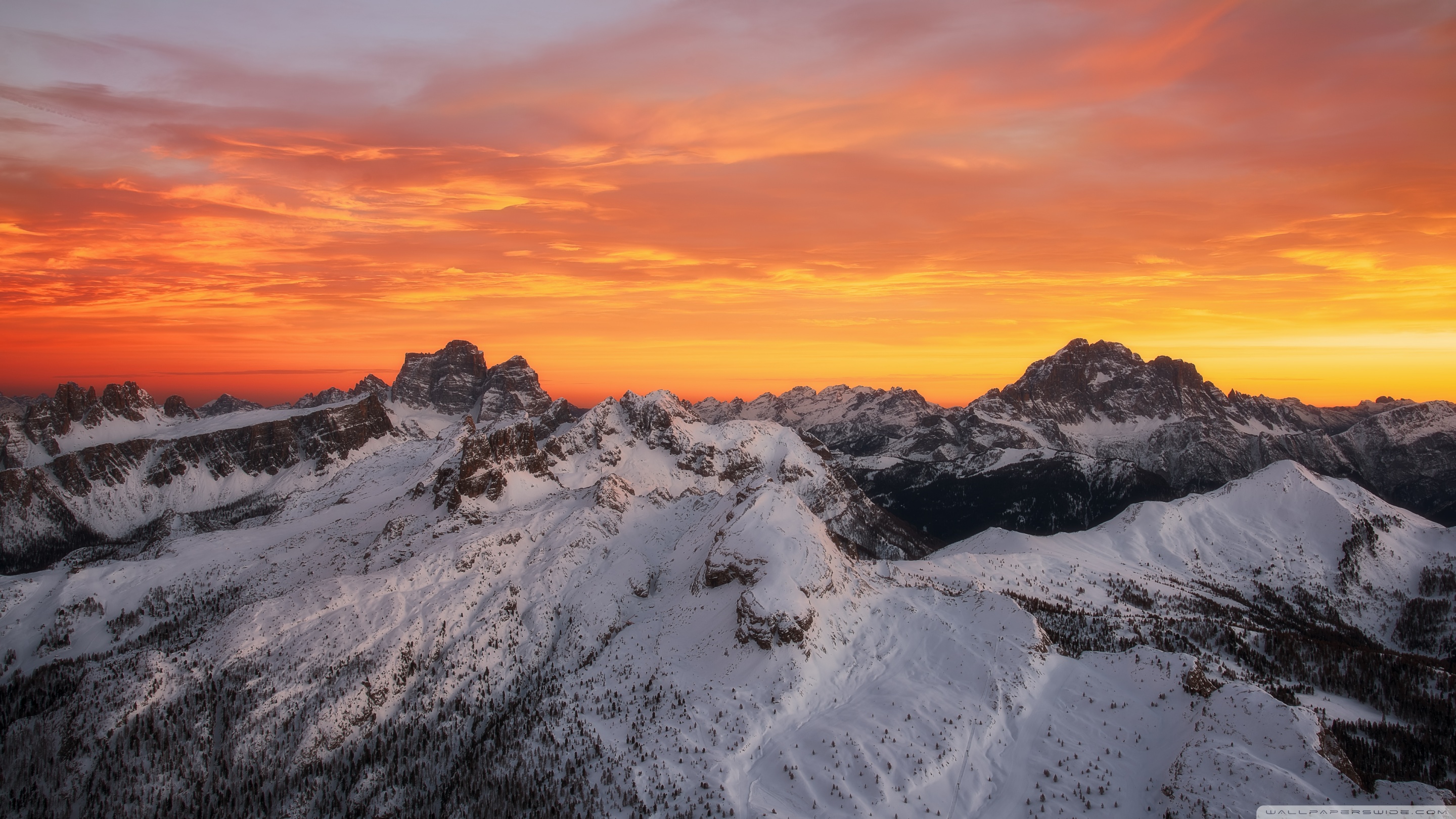 Download Orange Skies Above the Snowy Mountain Range 4K UHD Wallpaper