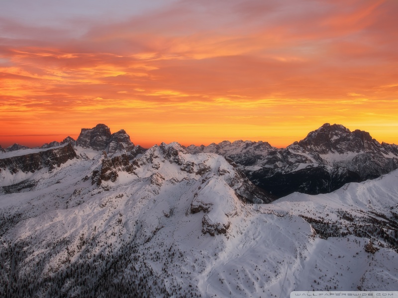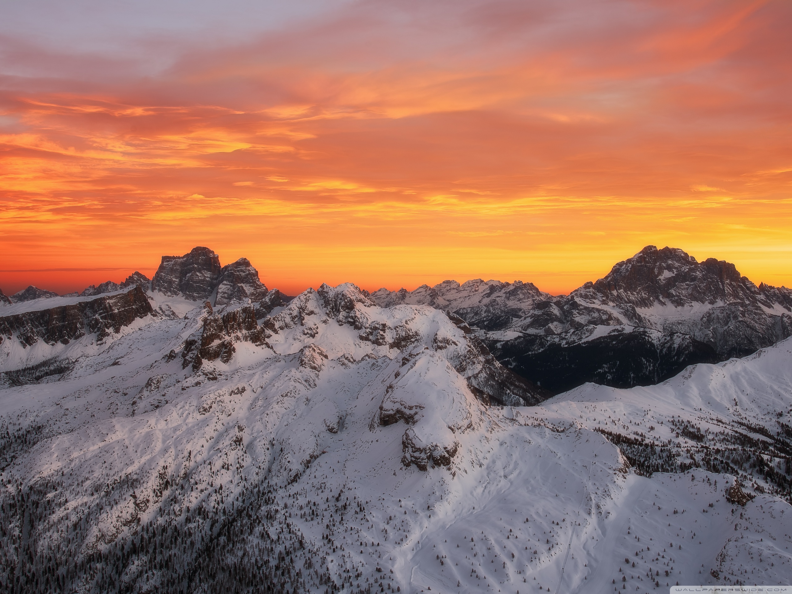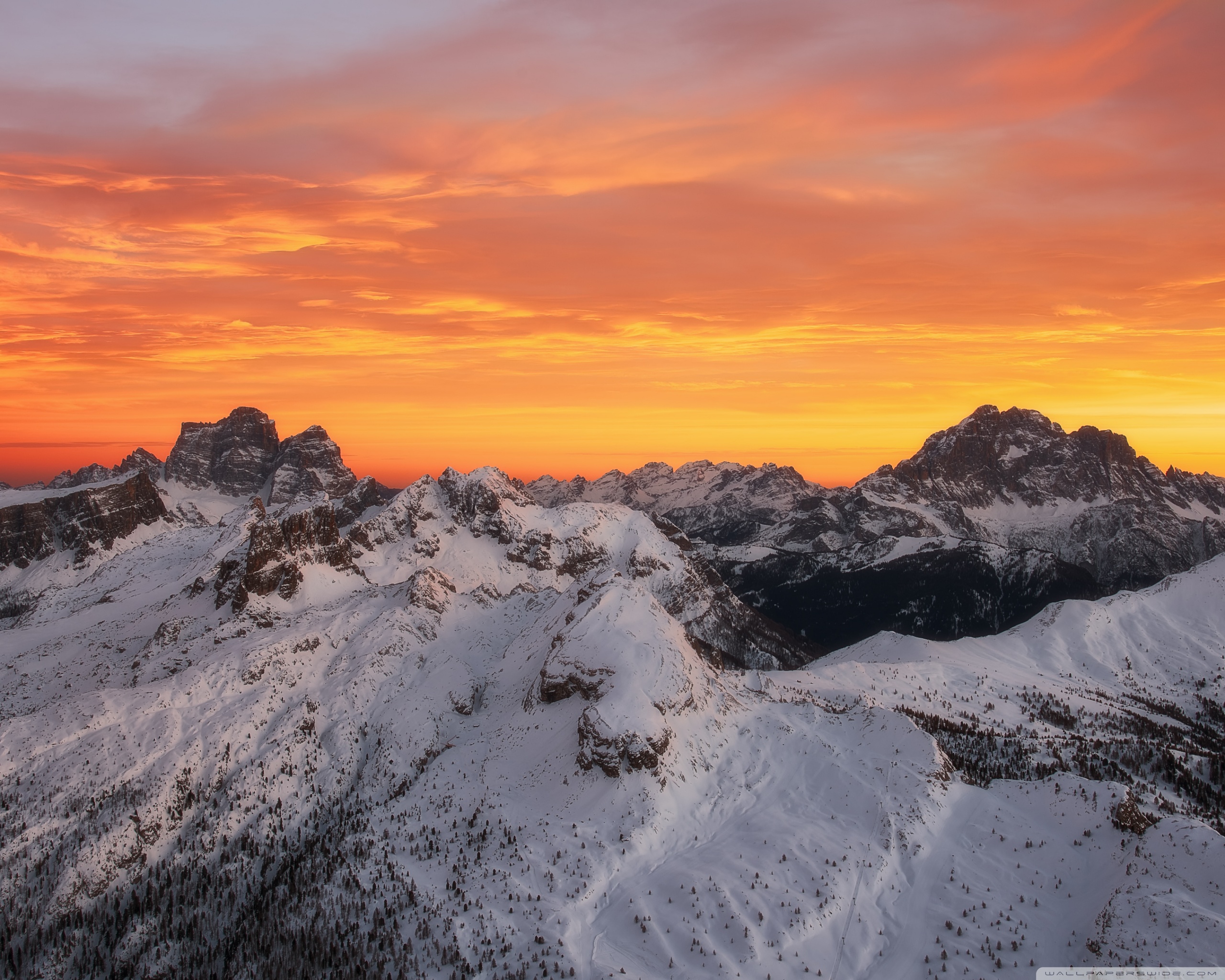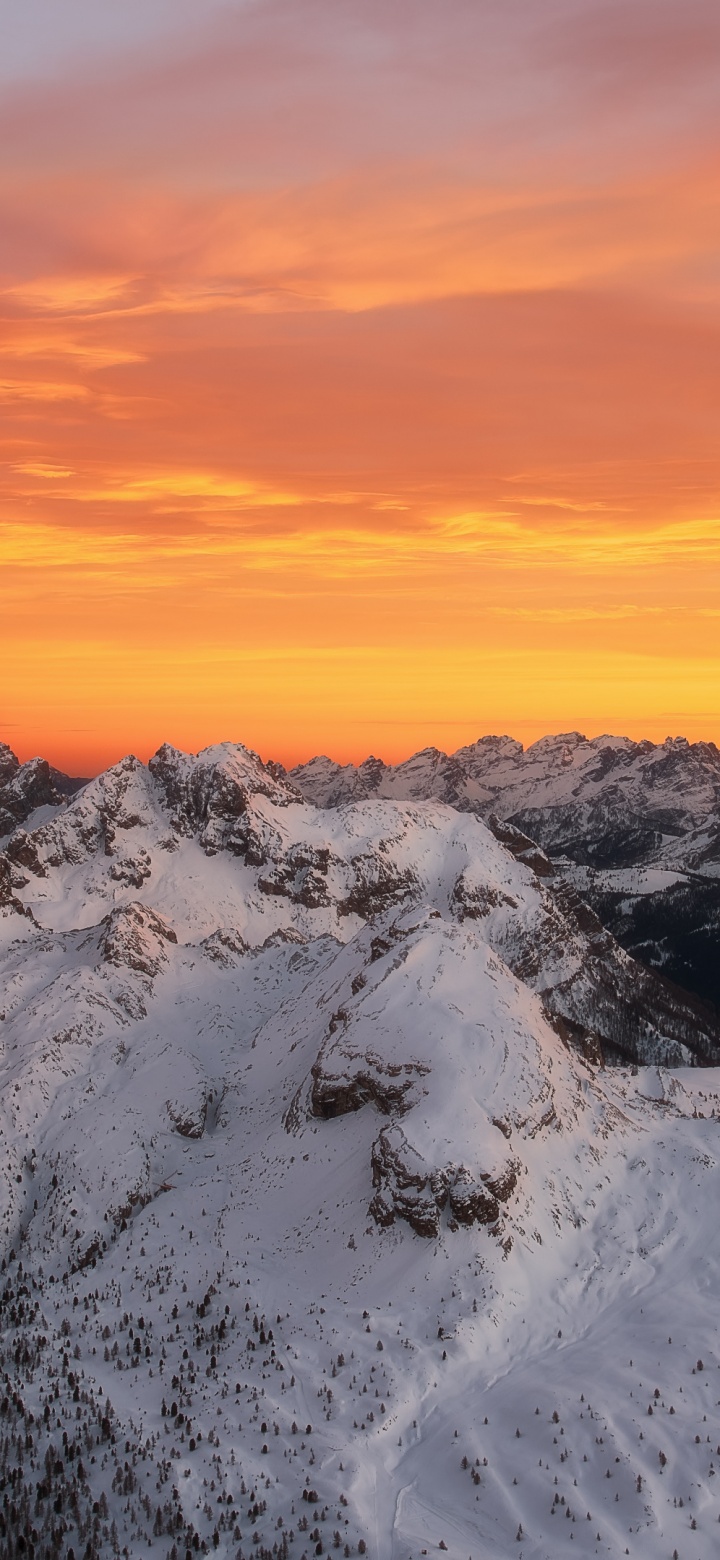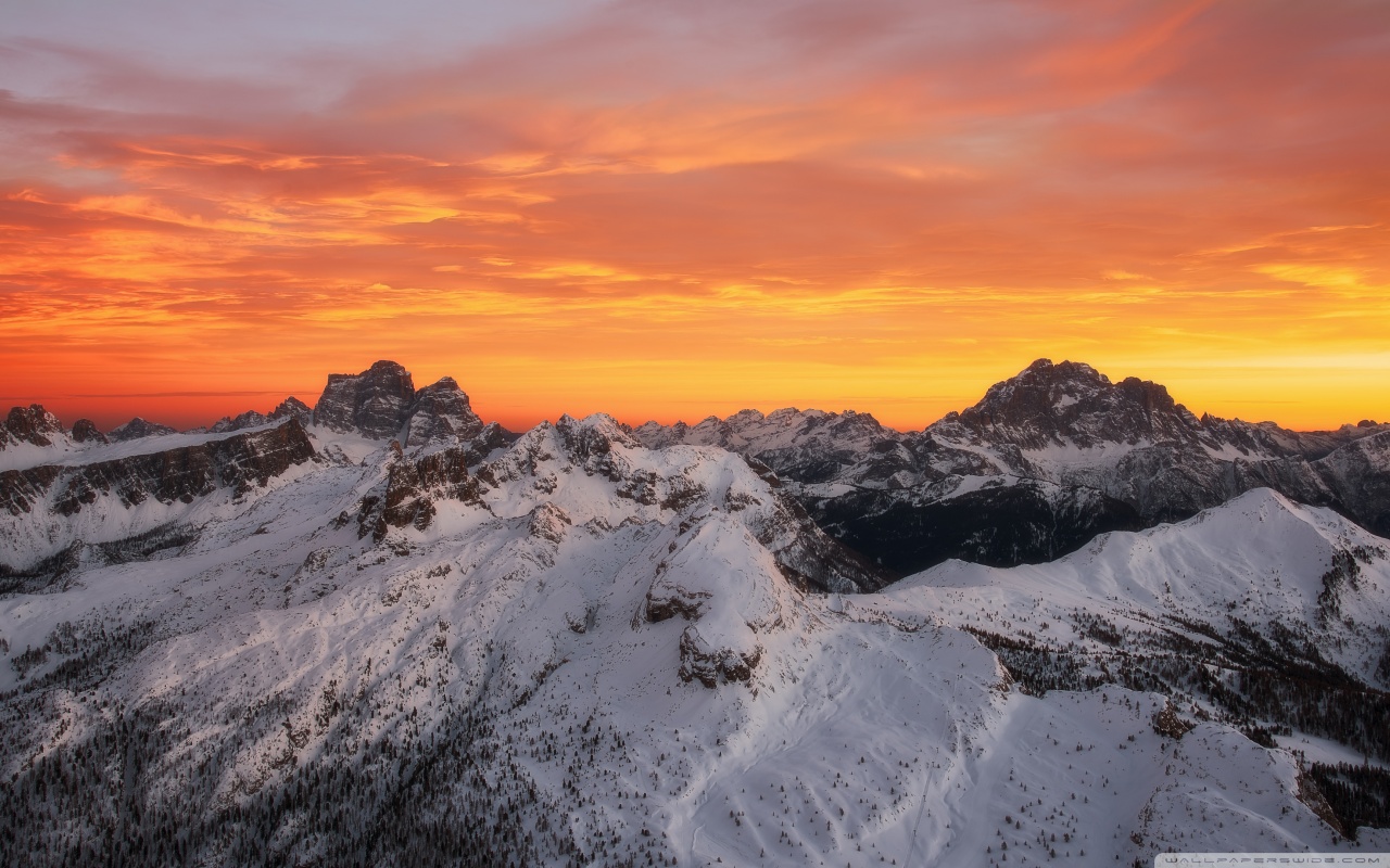 Download Orange Skies Above the Snowy Mountain Range 4K UHD Wallpaper
