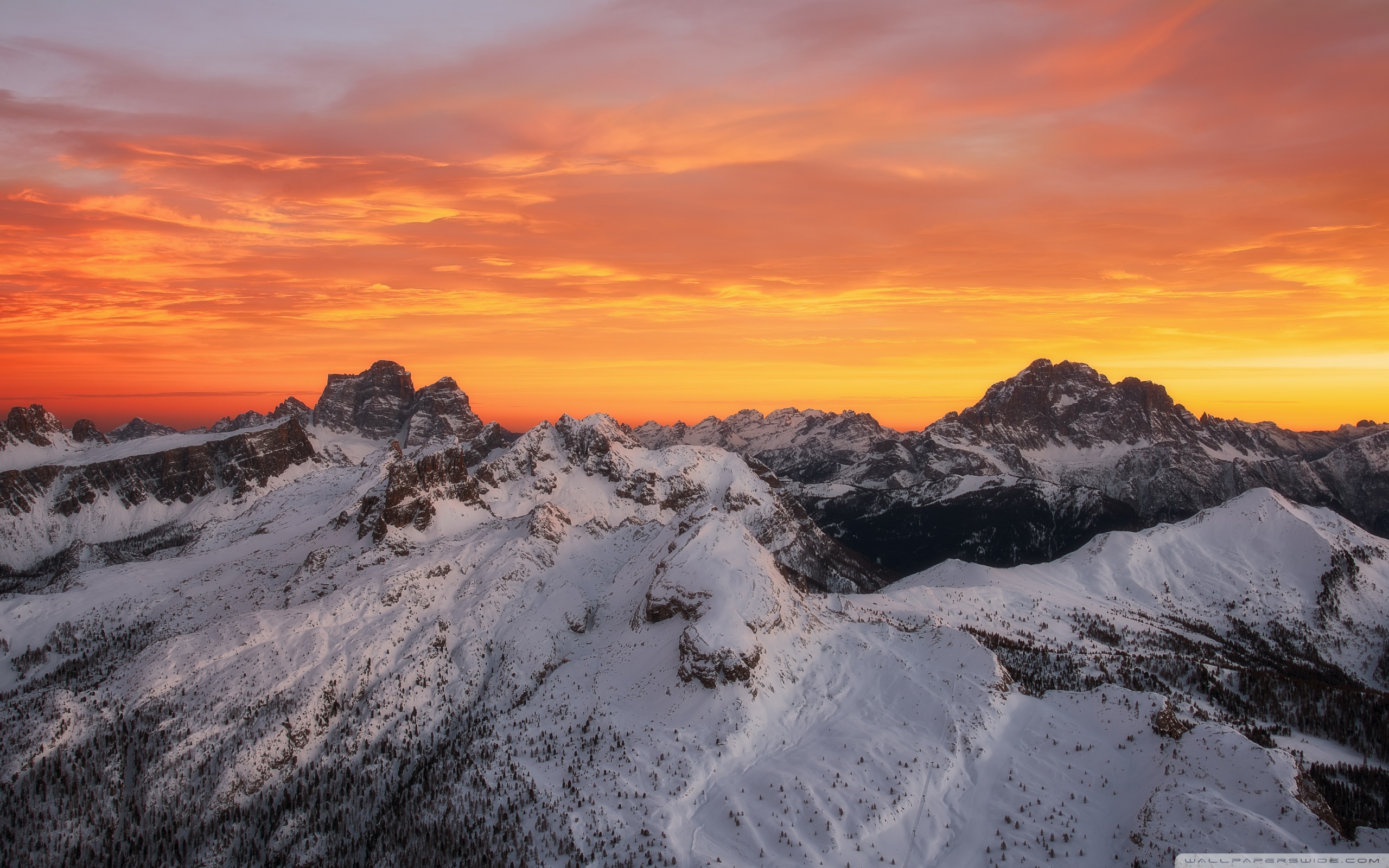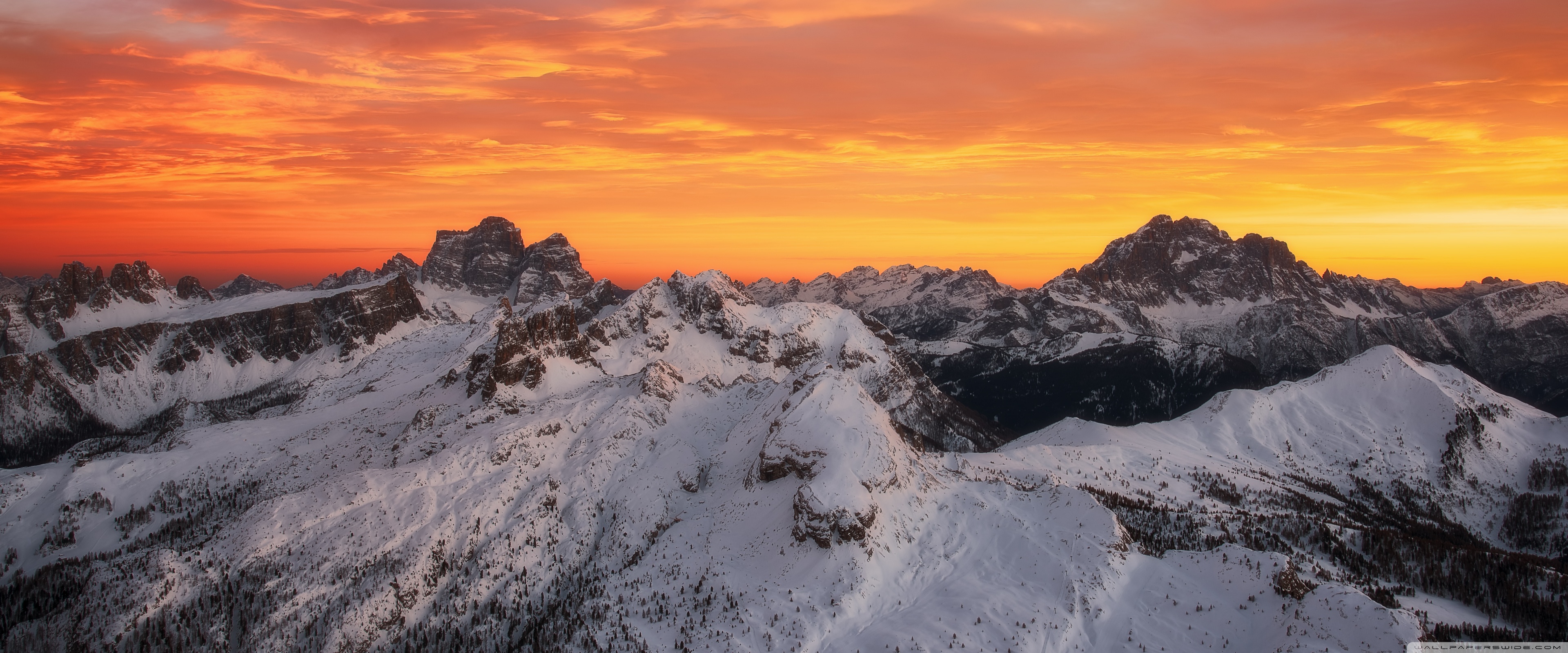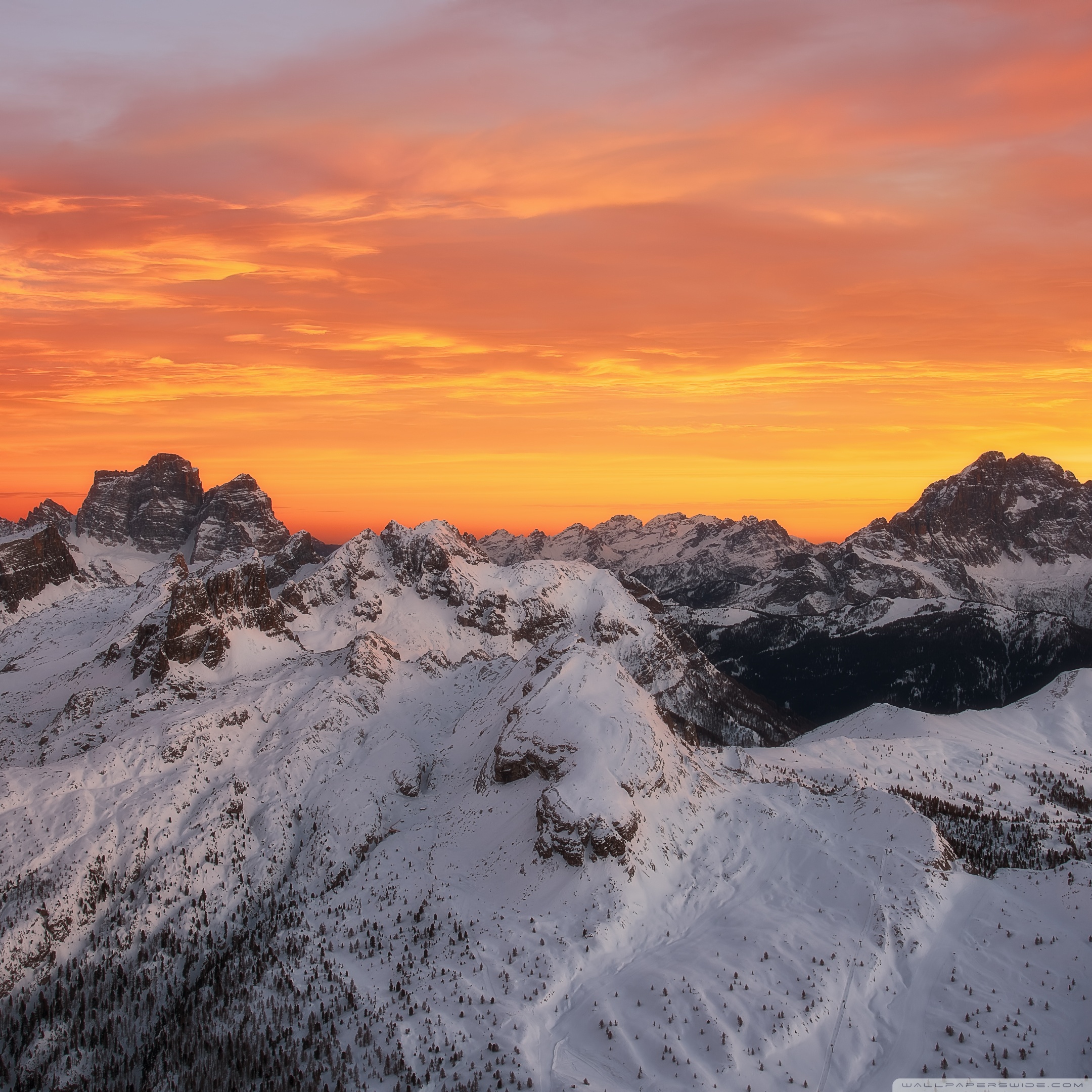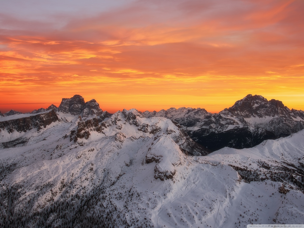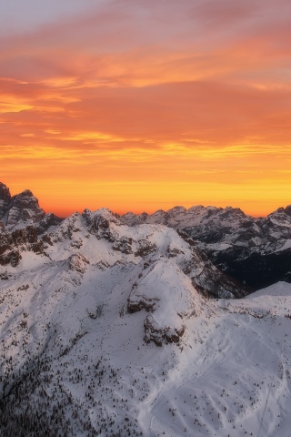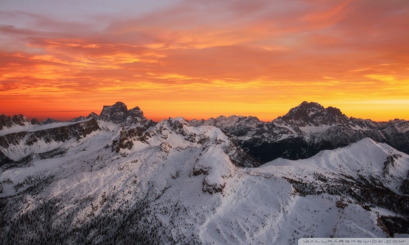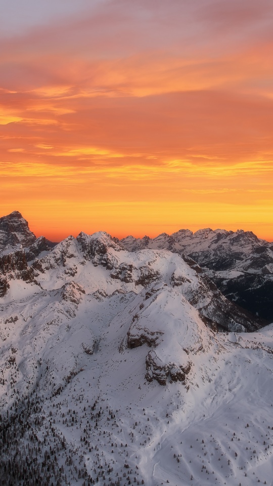 Download Orange Skies Above the Snowy Mountain Range 4K UHD Wallpaper