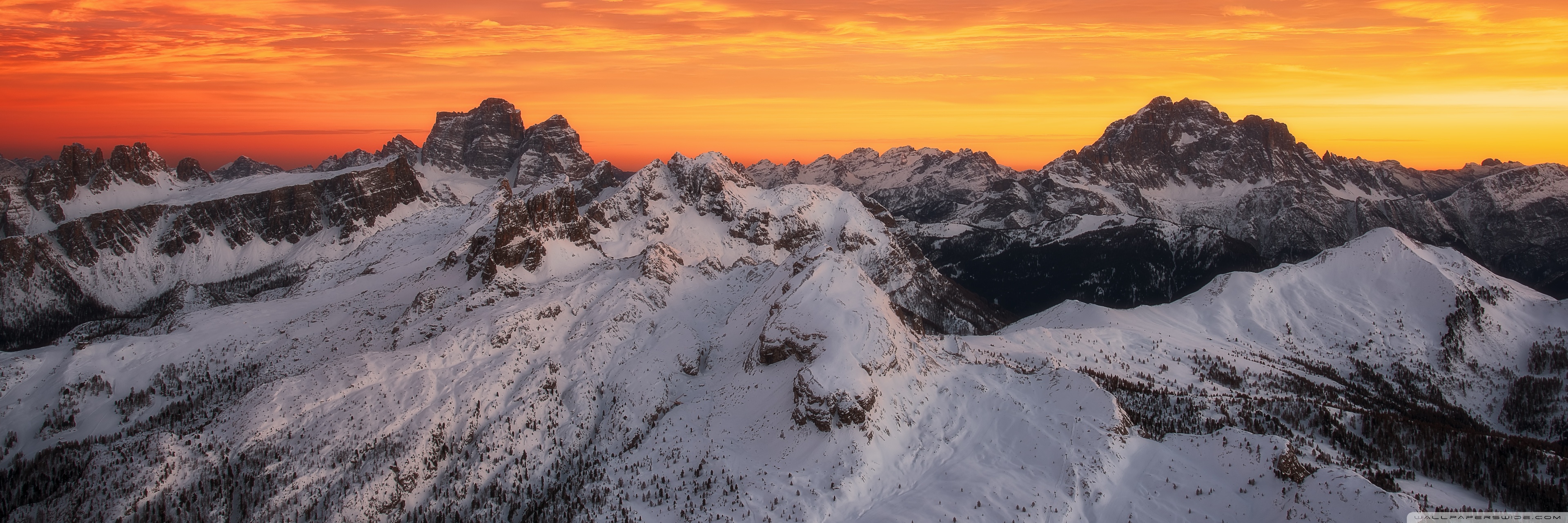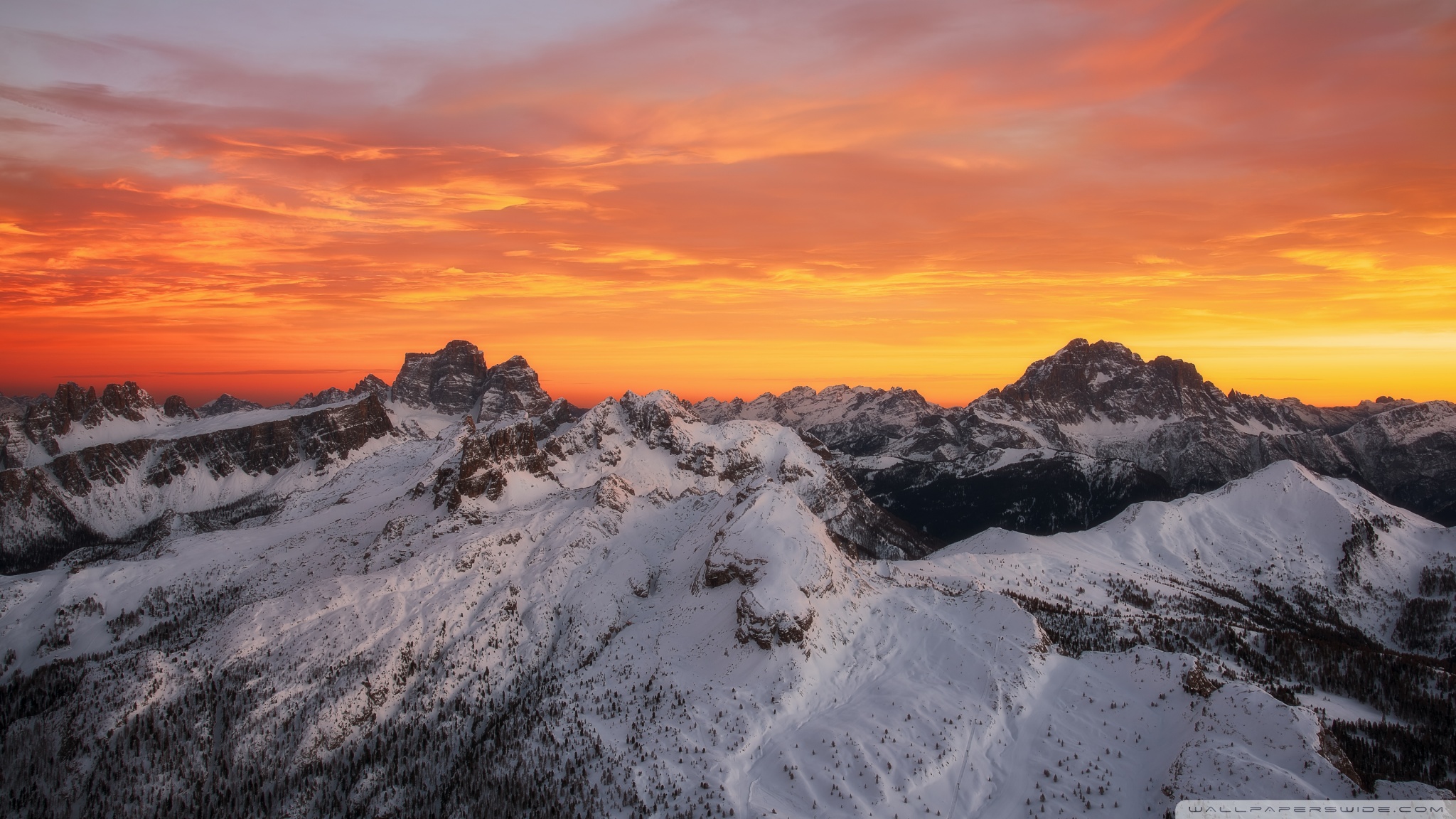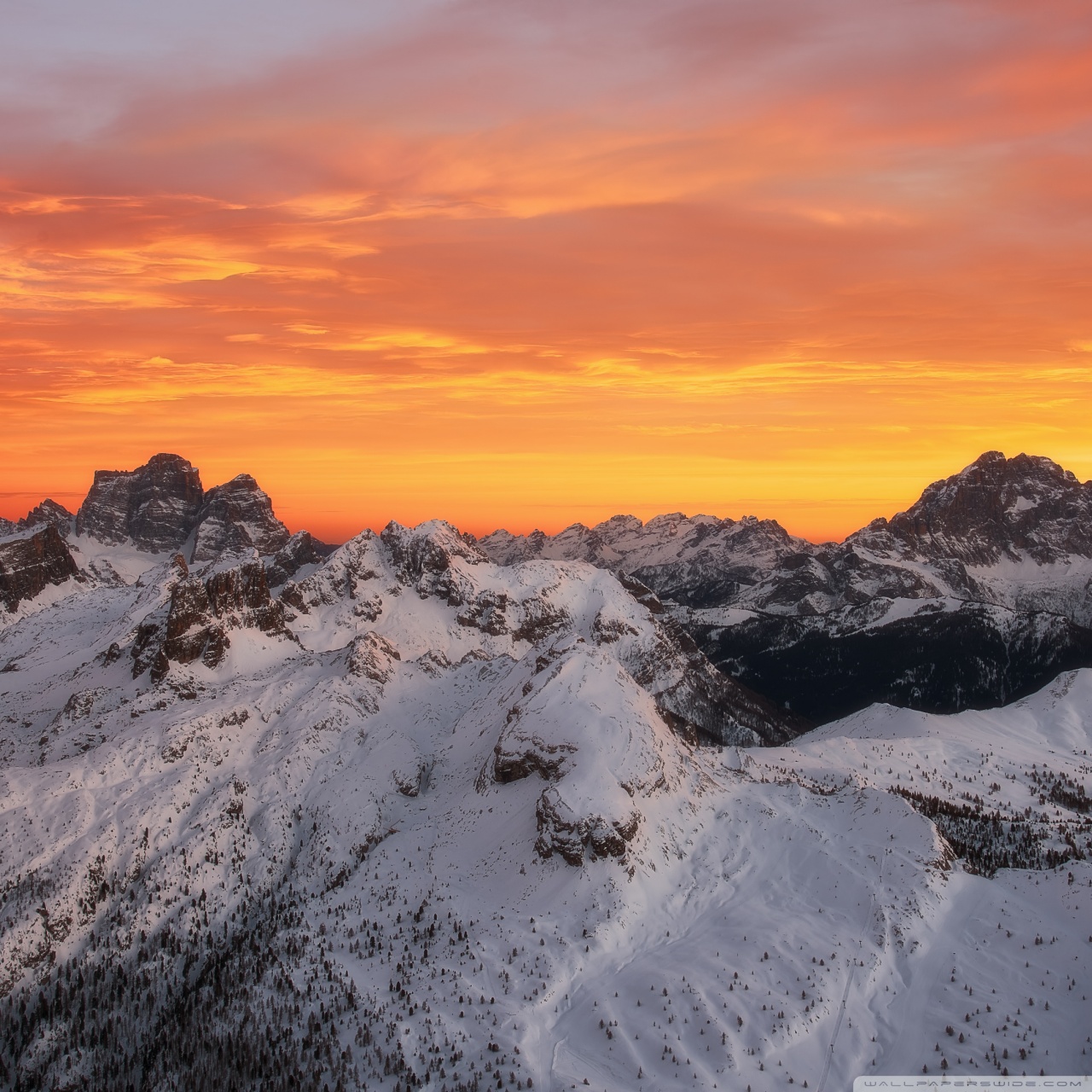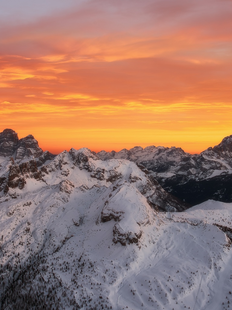 Download Orange Skies Above the Snowy Mountain Range 4K UHD Wallpaper
