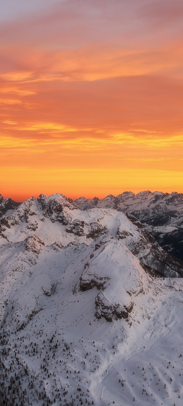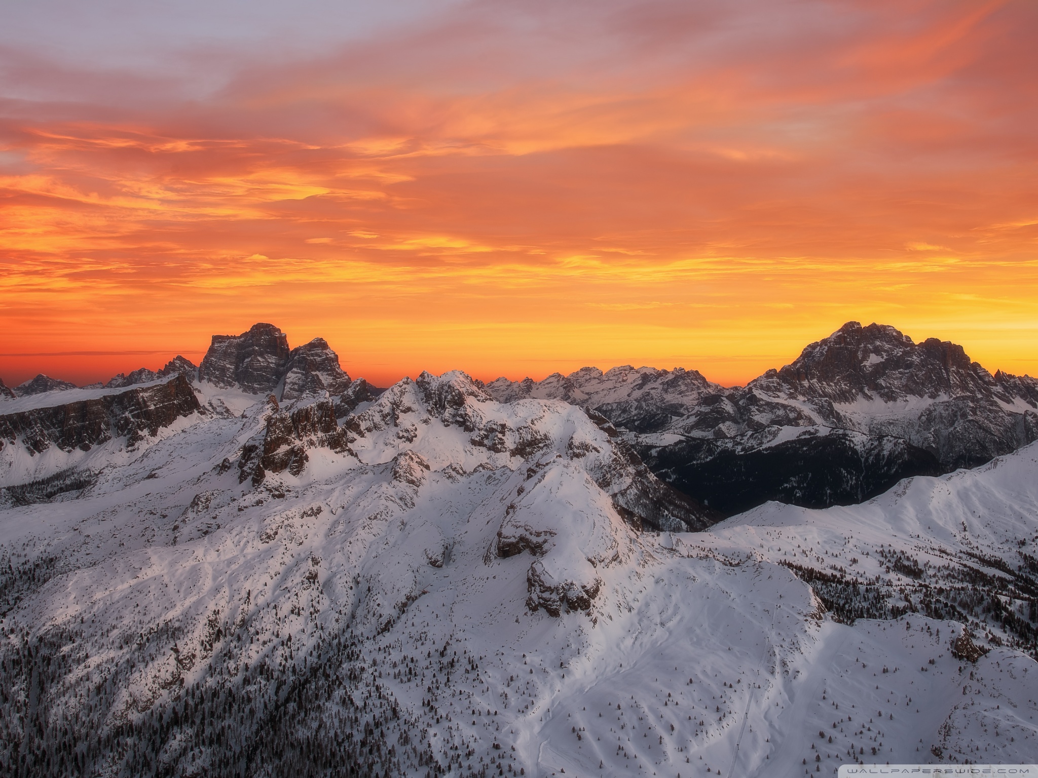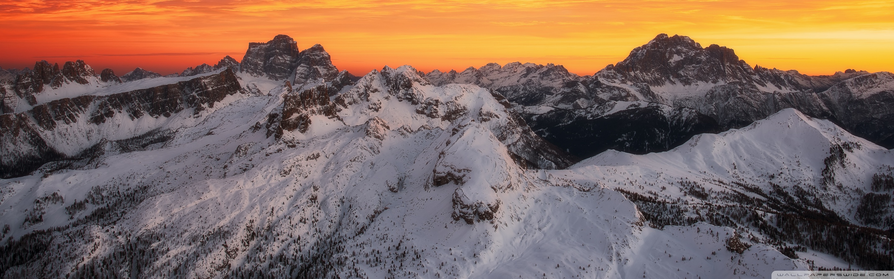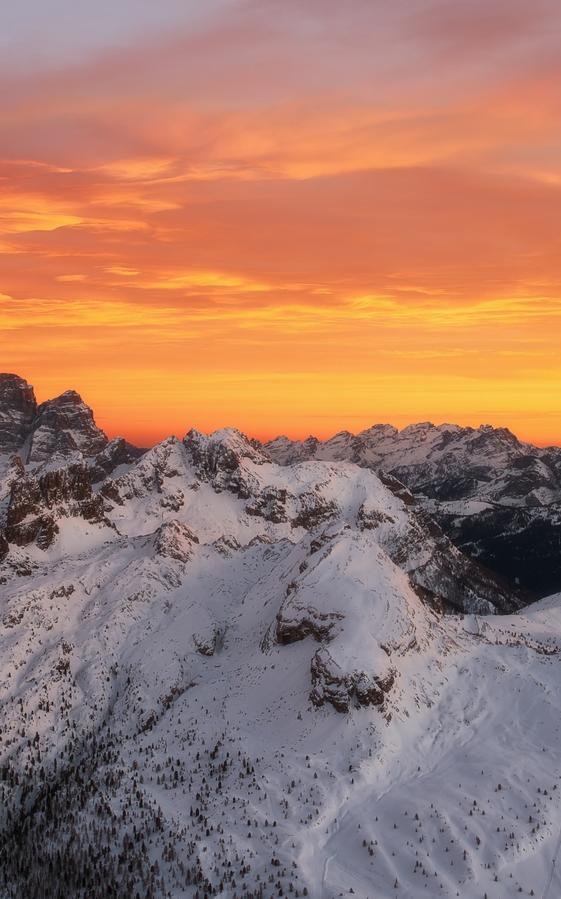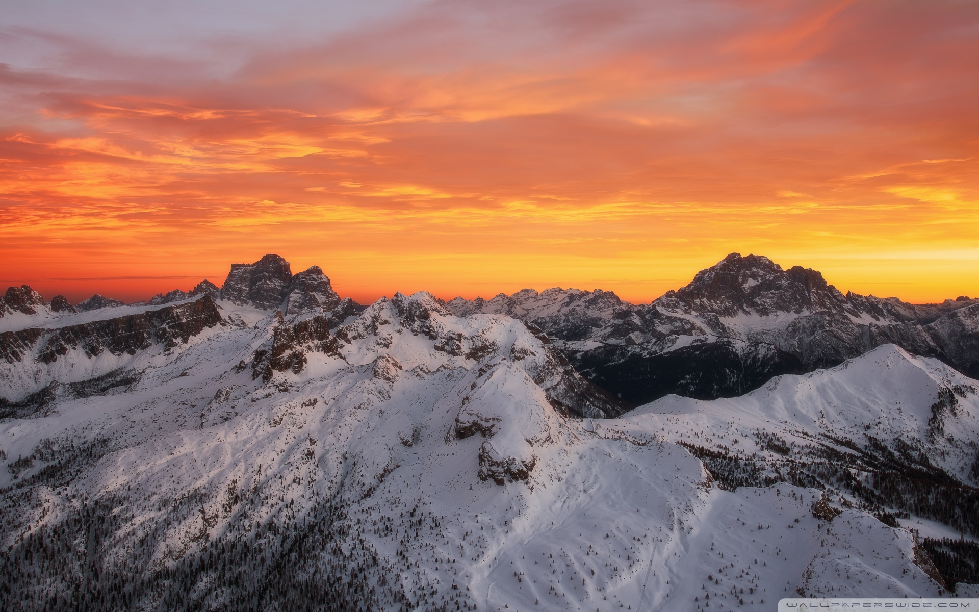 Download Orange Skies Above the Snowy Mountain Range 4K UHD Wallpaper