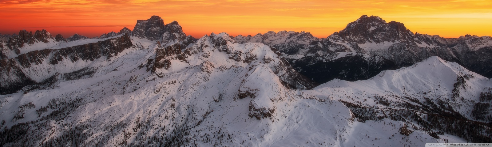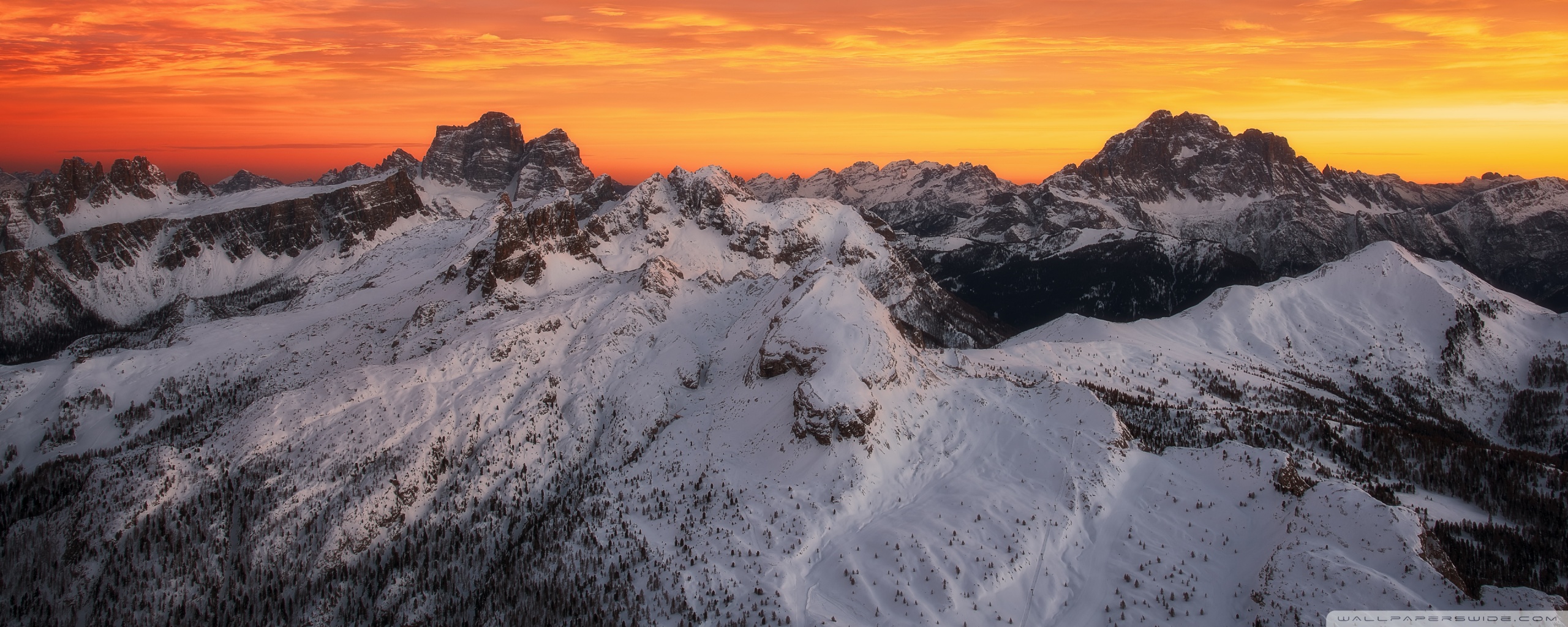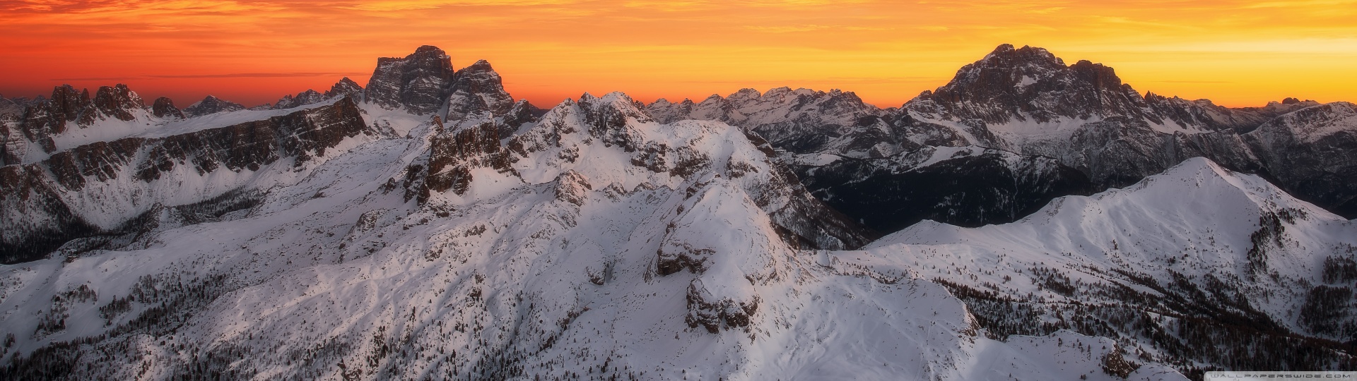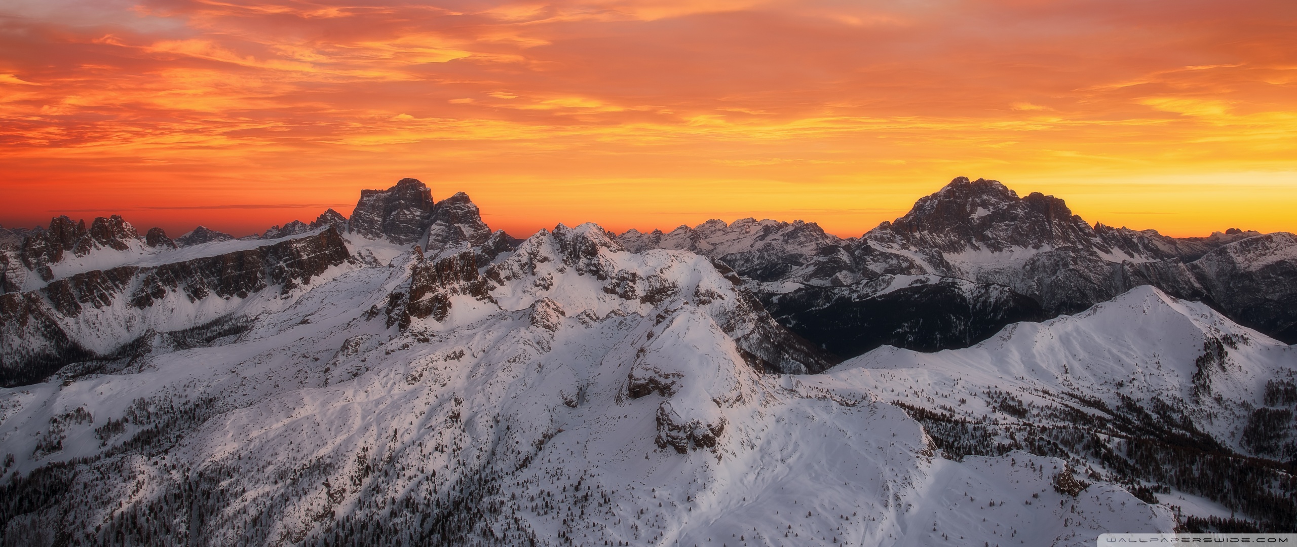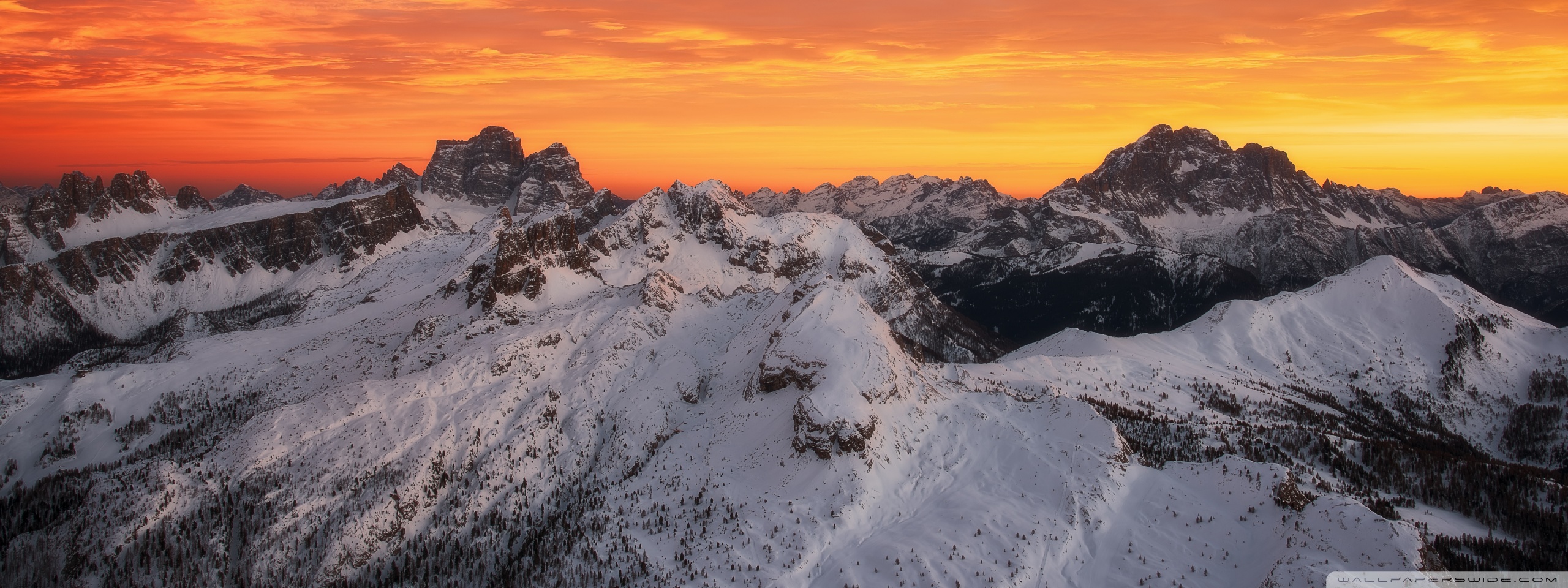 Download Orange Skies Above the Snowy Mountain Range 4K UHD Wallpaper