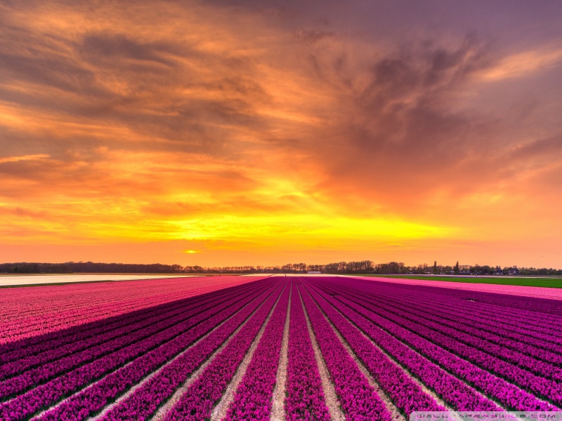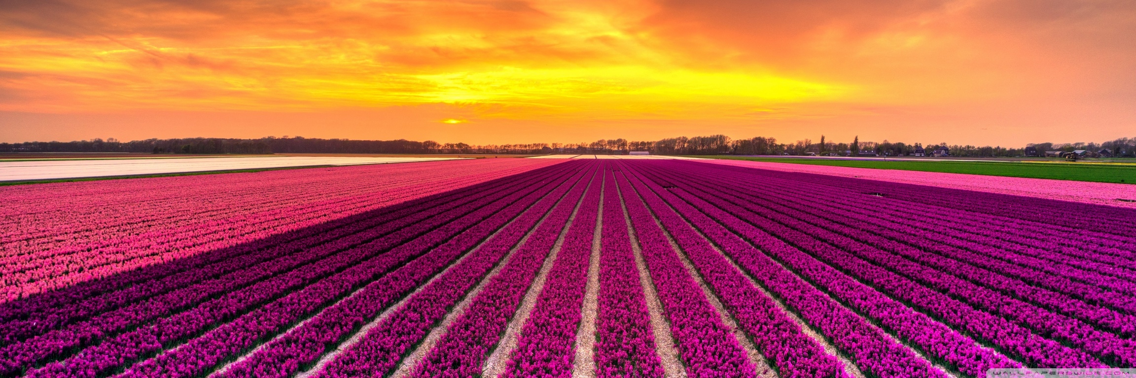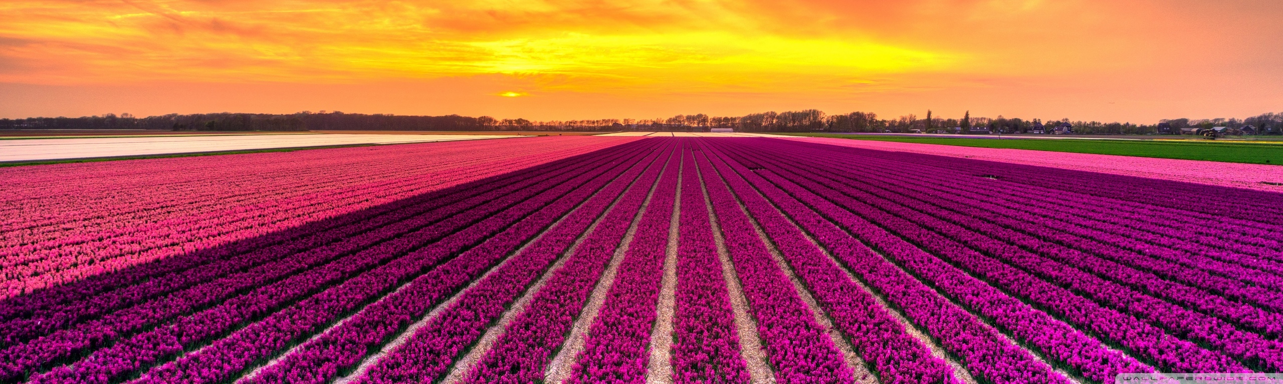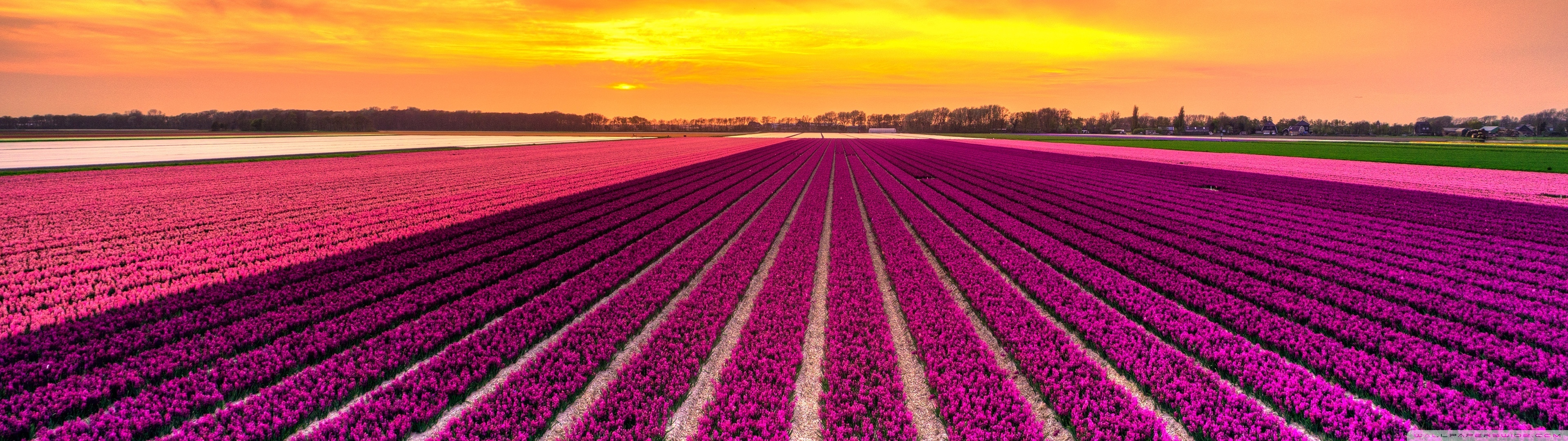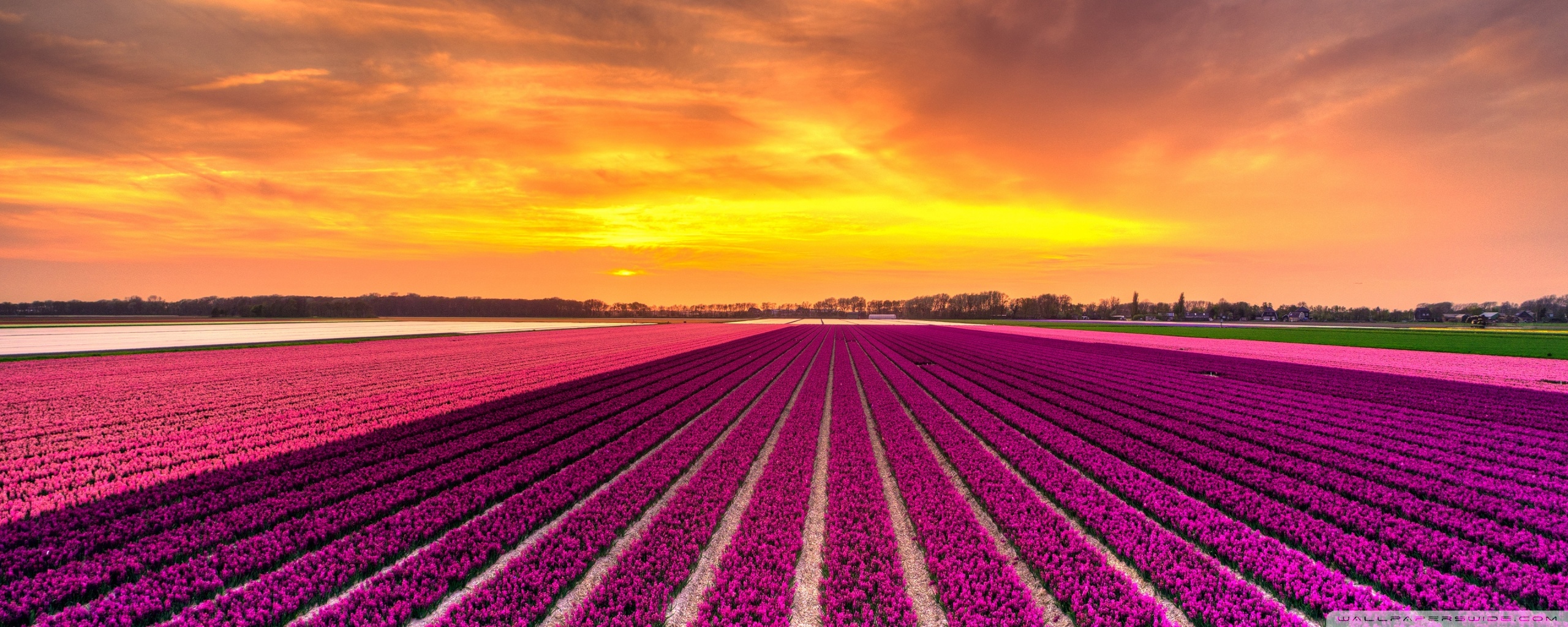 Download Orange Sky Over Flower Field 4K UHD Wallpaper