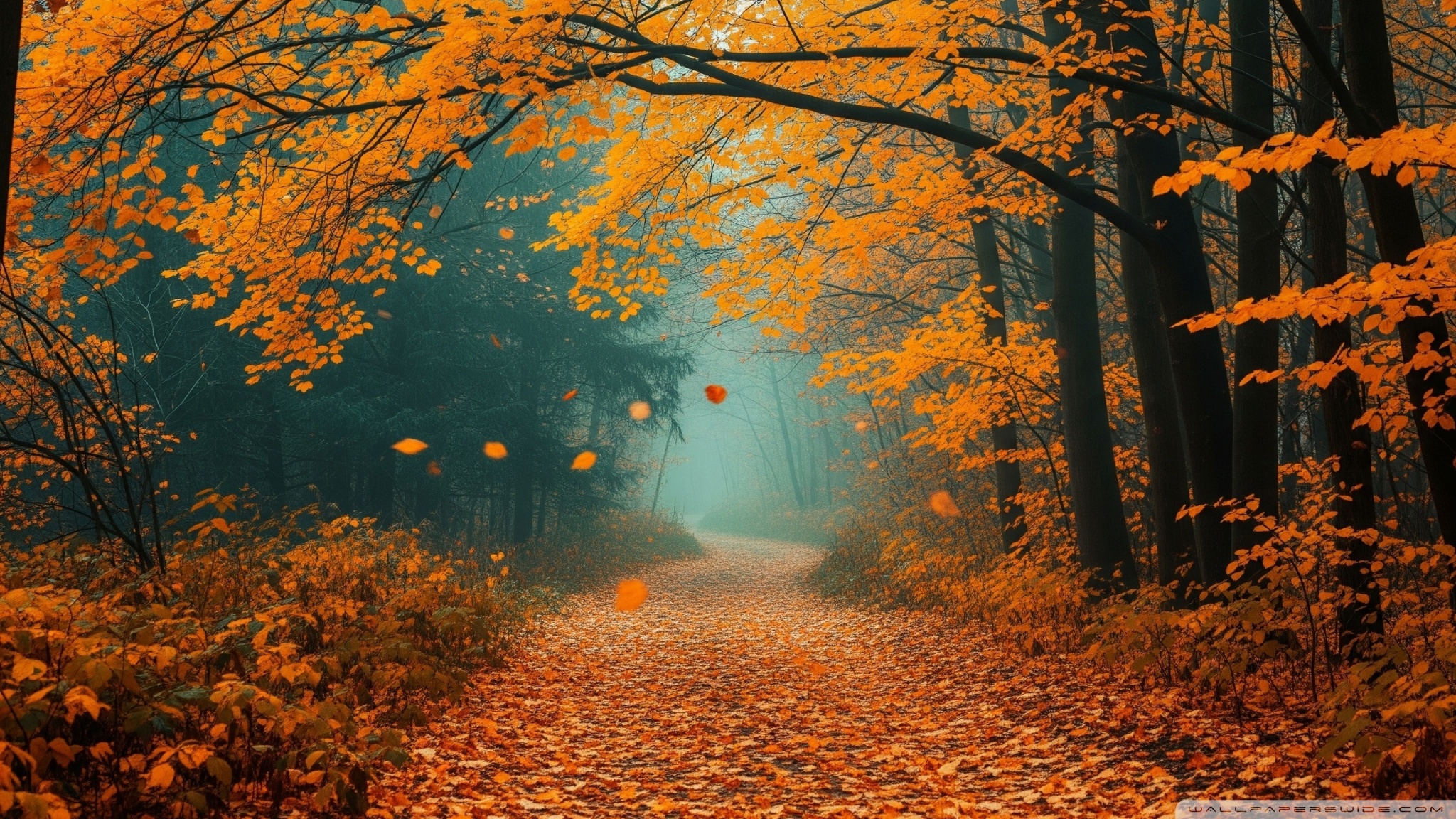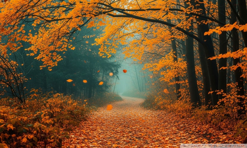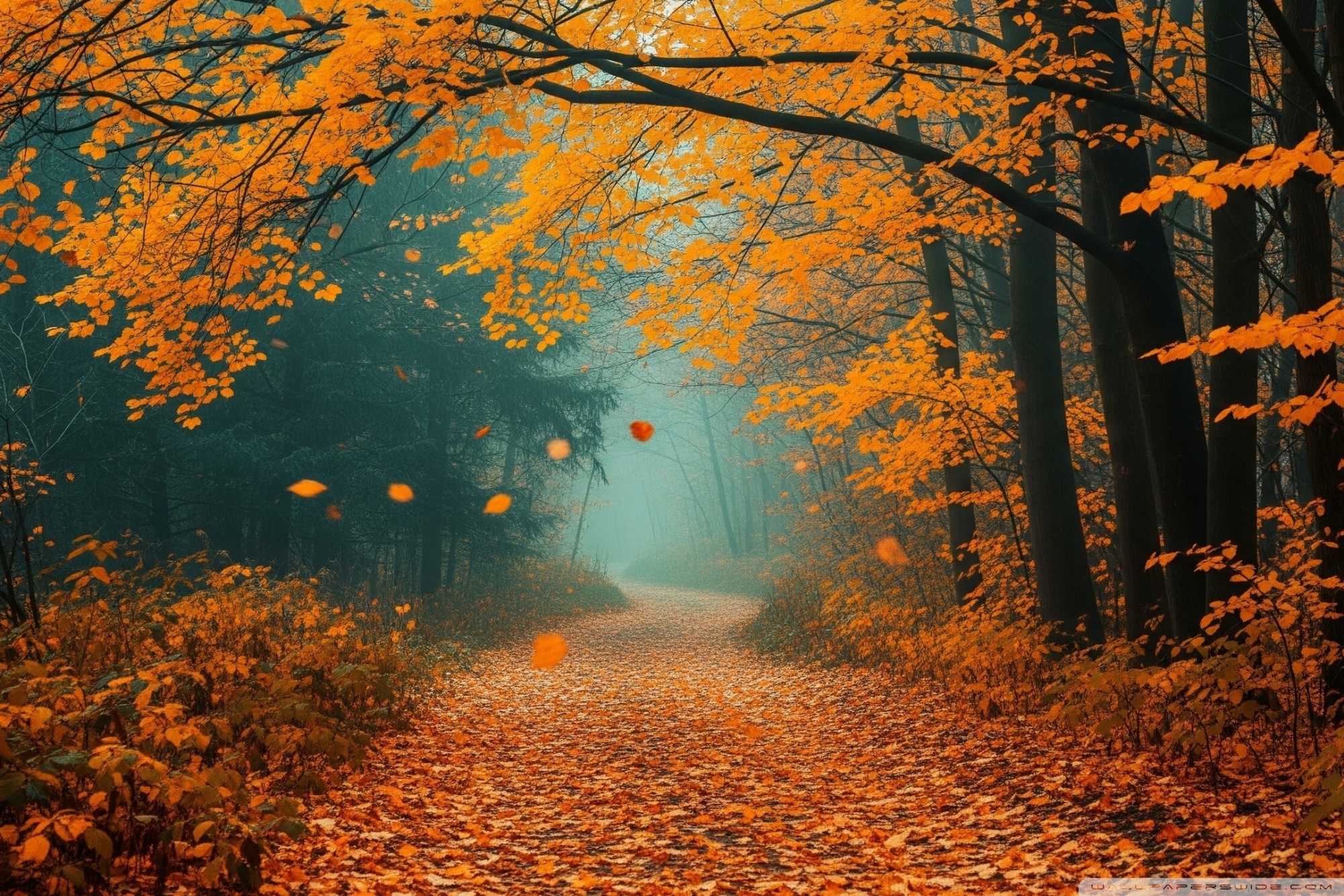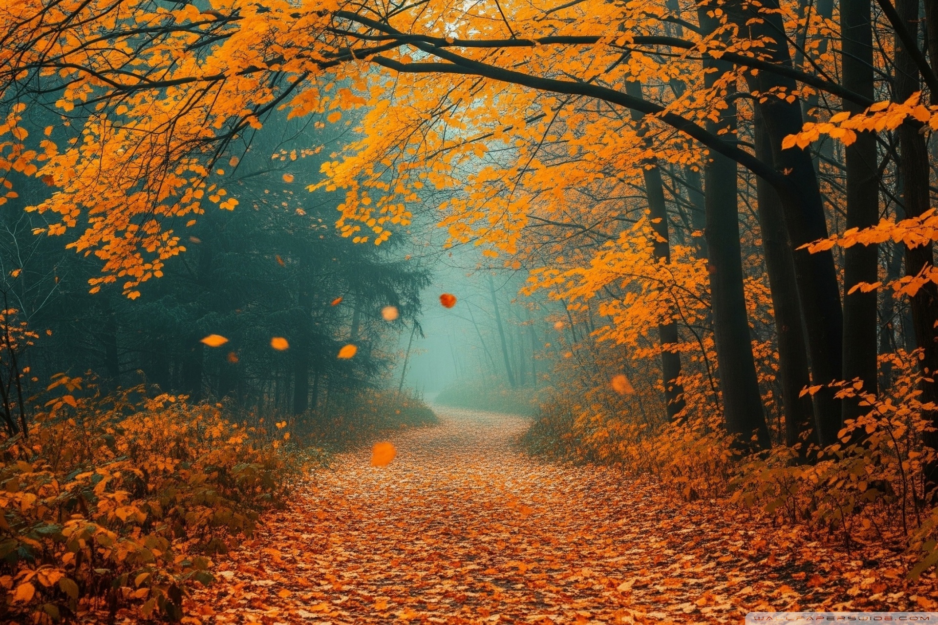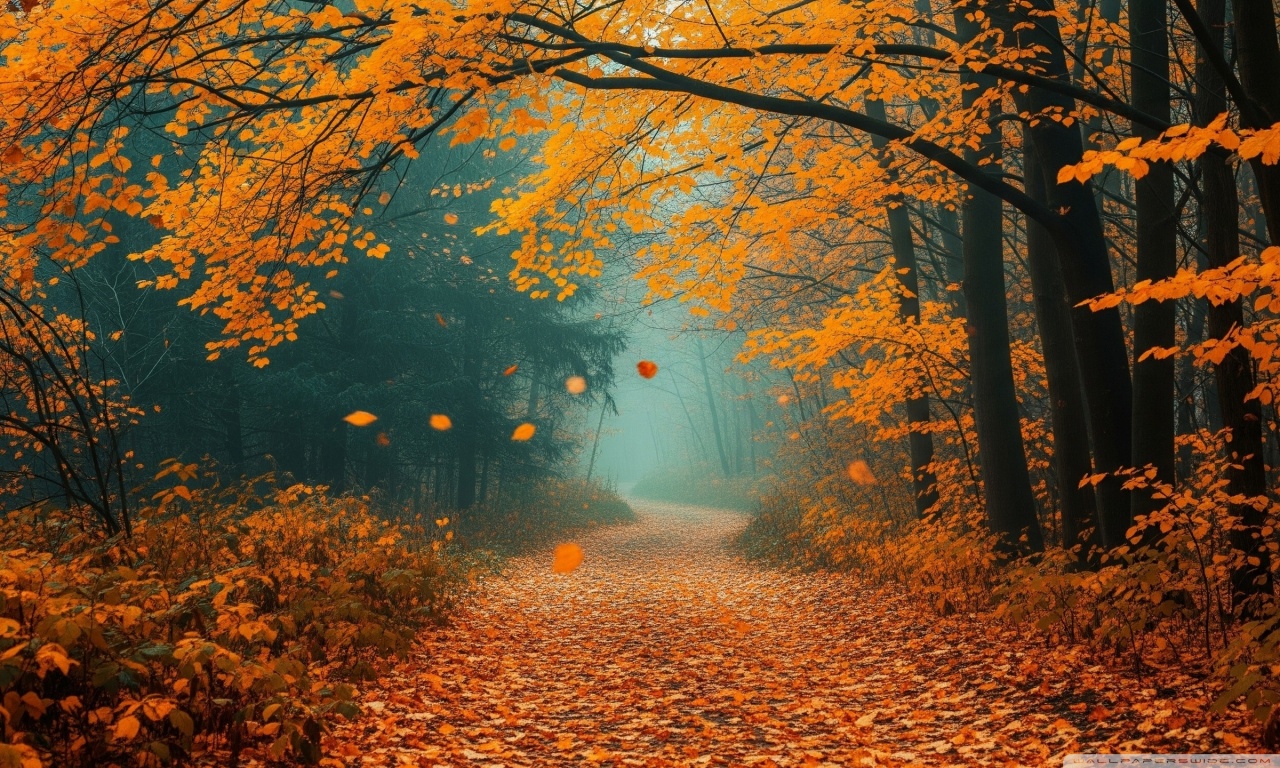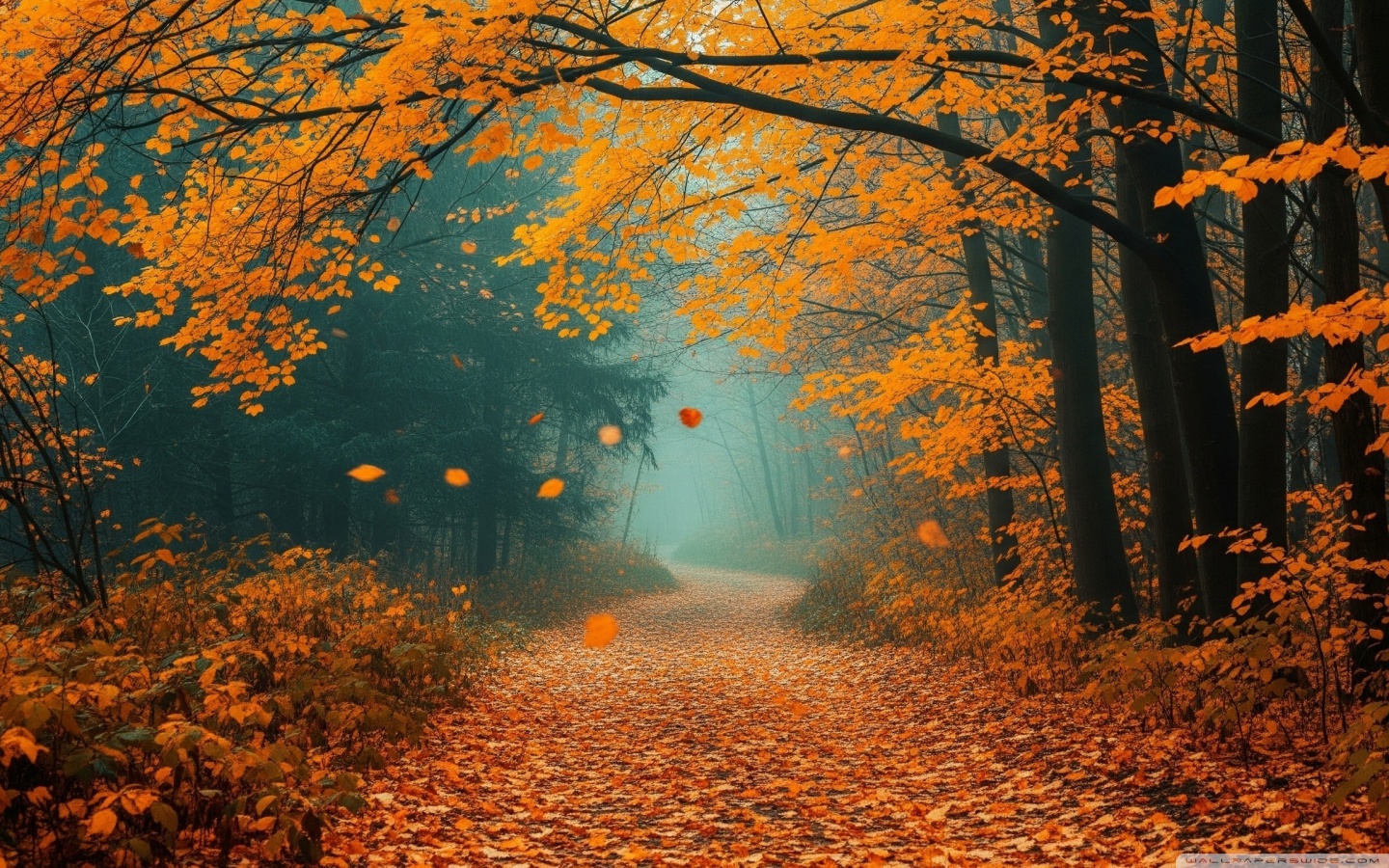 Download Orange Tree, Foliage, Autumn, Forest, Mist 4K UHD Wallpaper