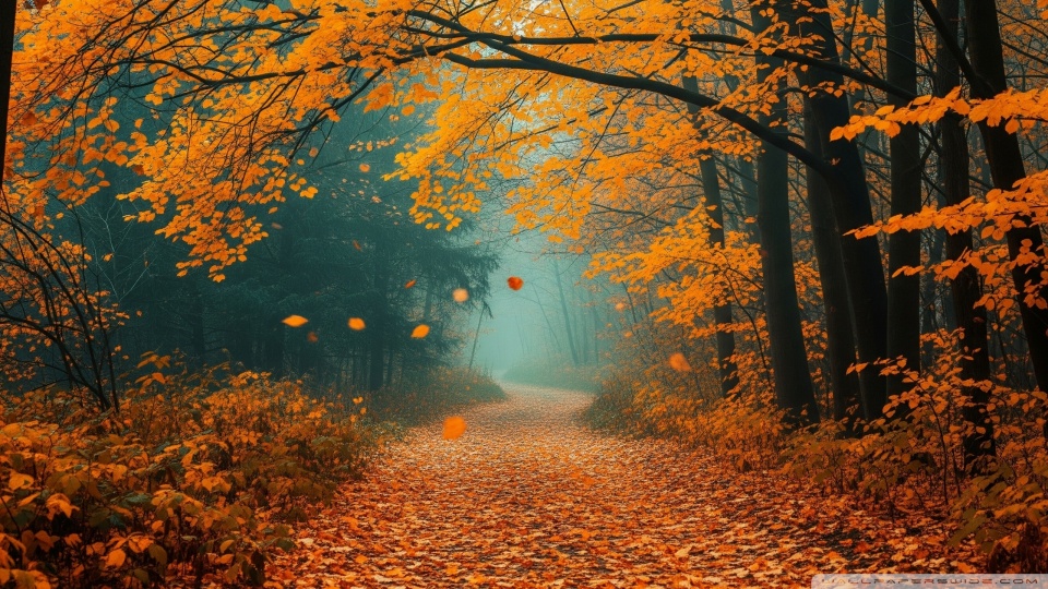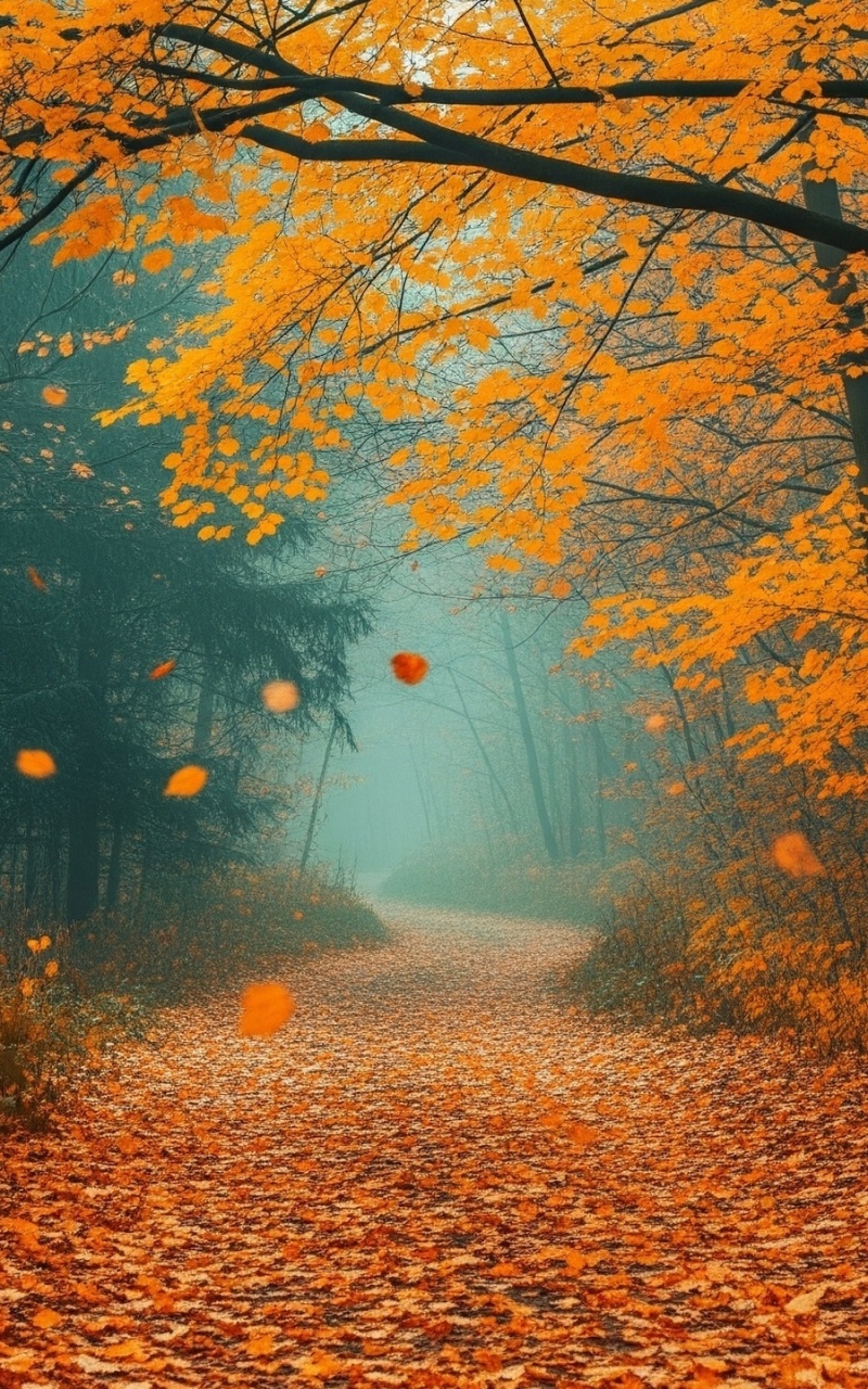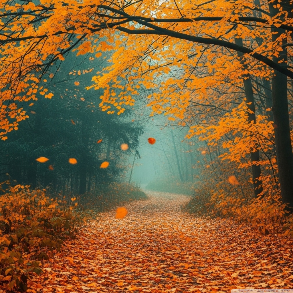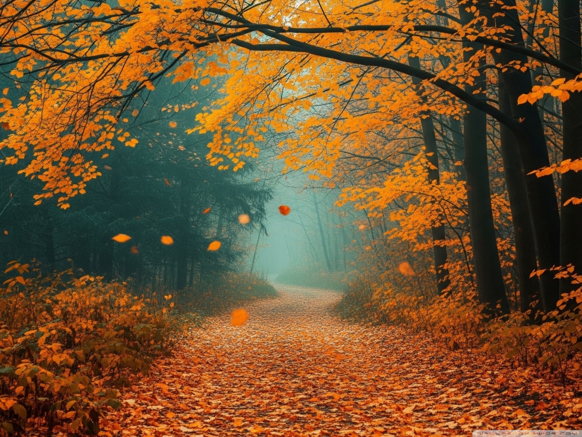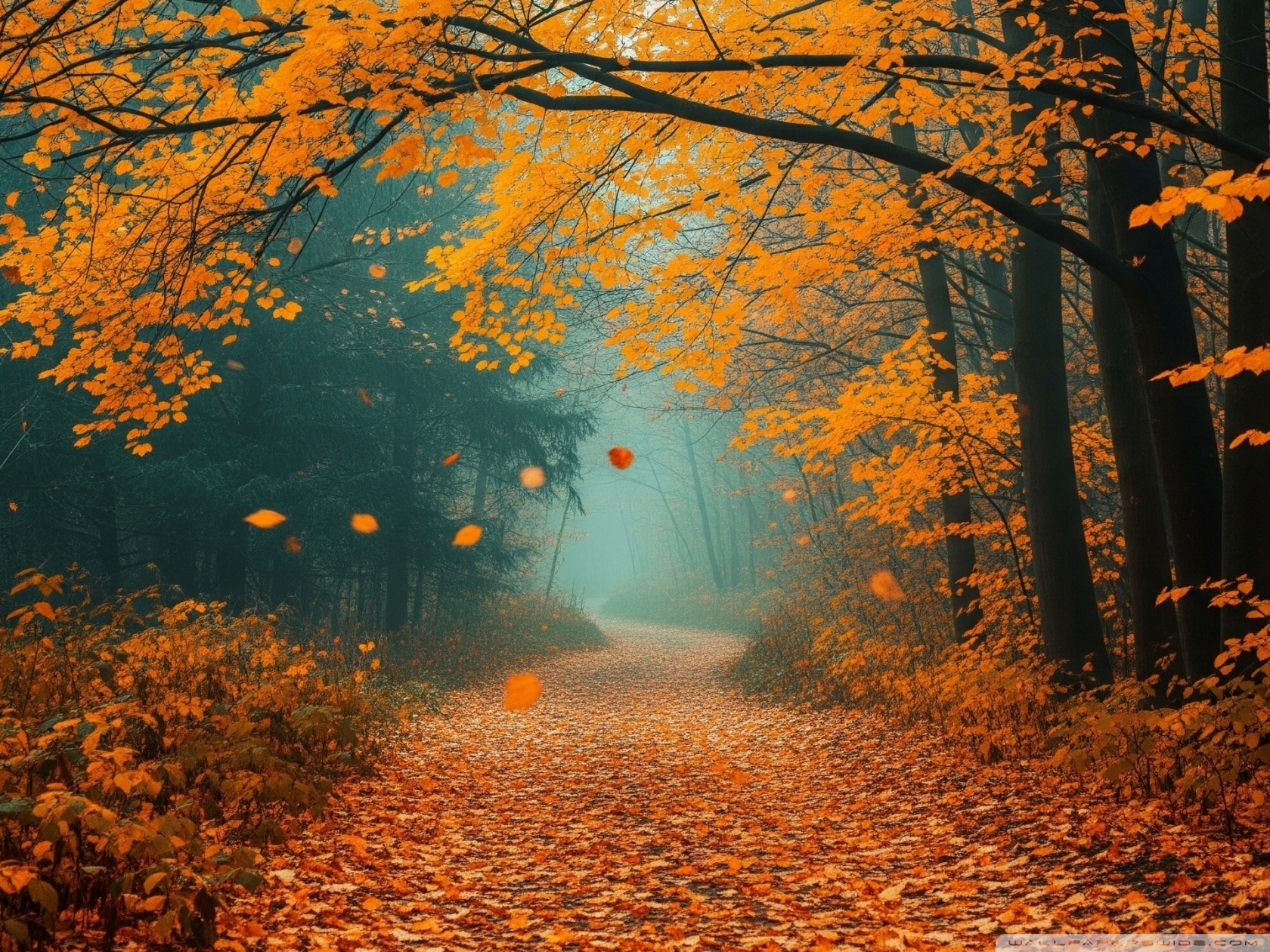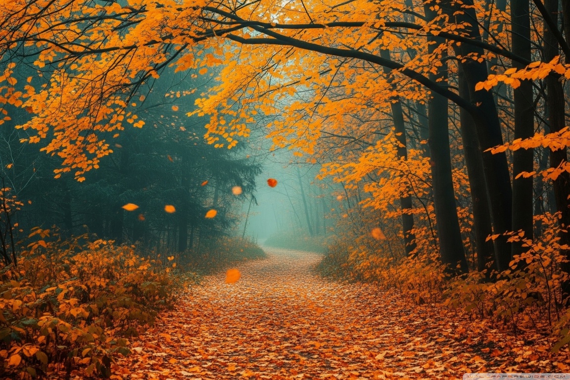Download Orange Tree, Foliage, Autumn, Forest, Mist 4K UHD Wallpaper