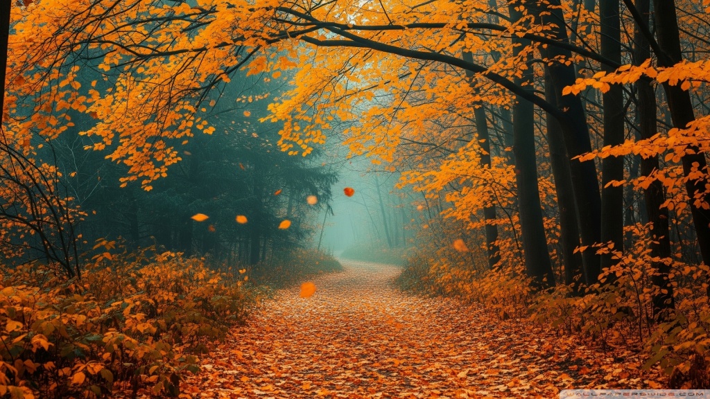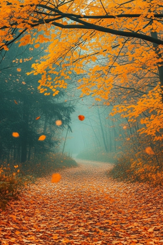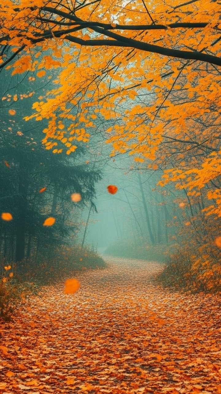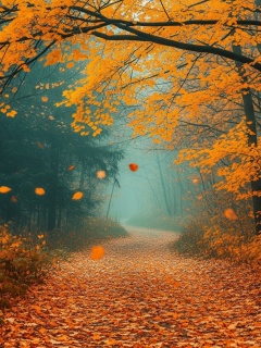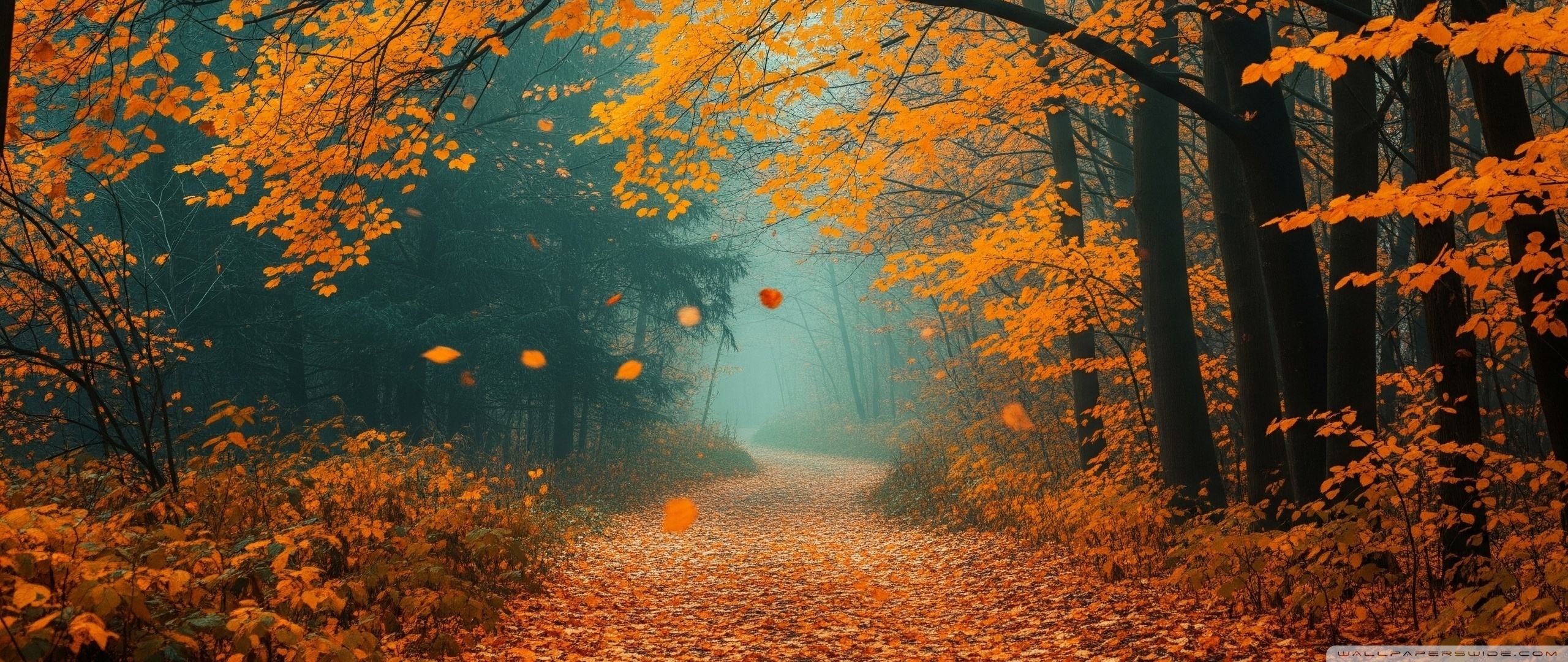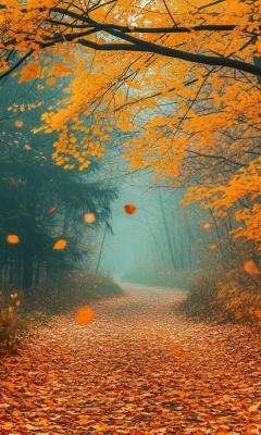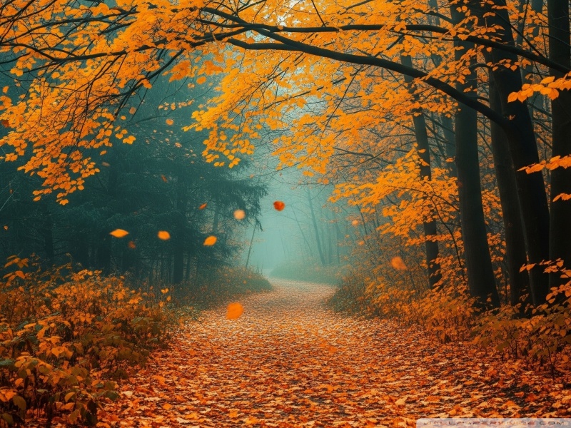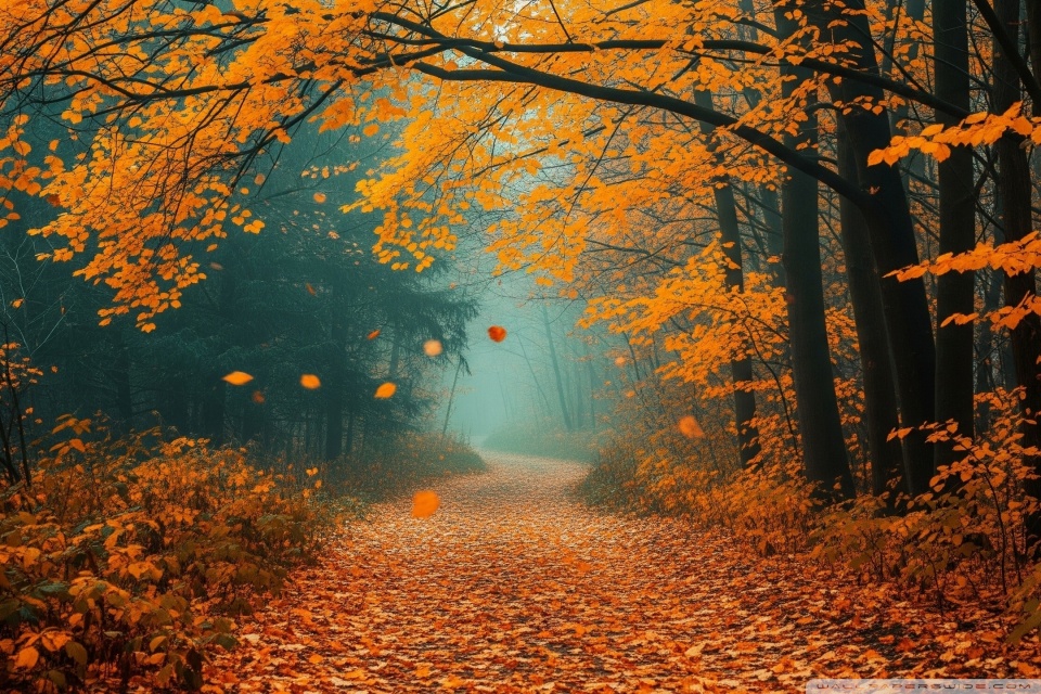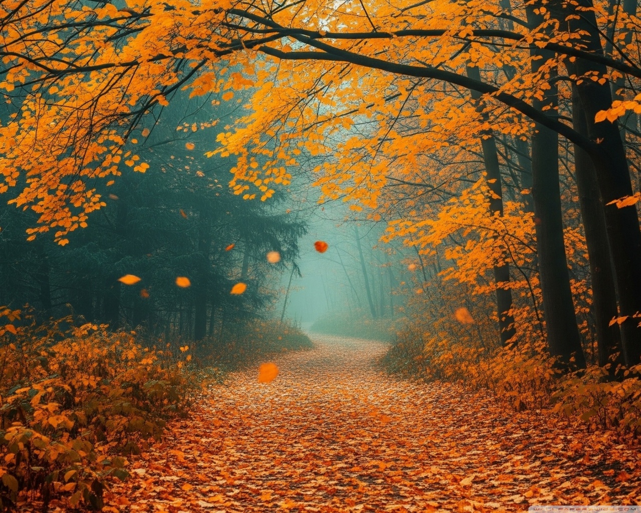 Download Orange Tree, Foliage, Autumn, Forest, Mist 4K UHD Wallpaper