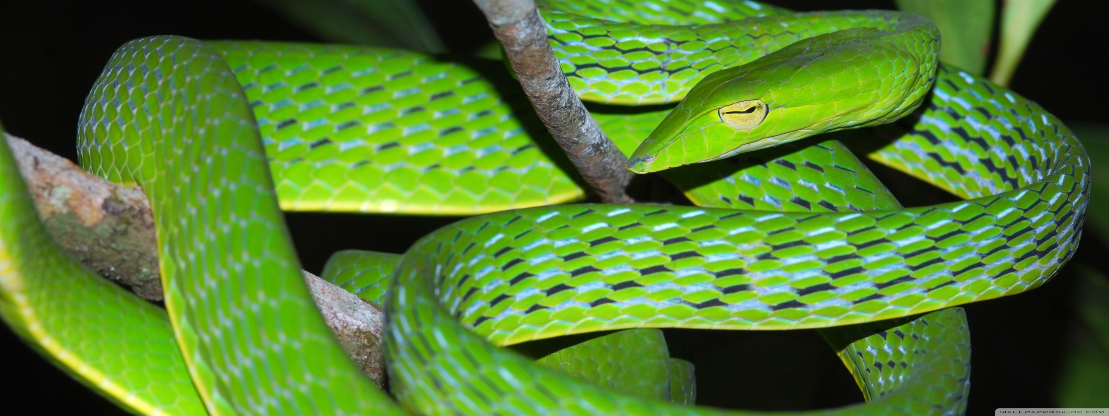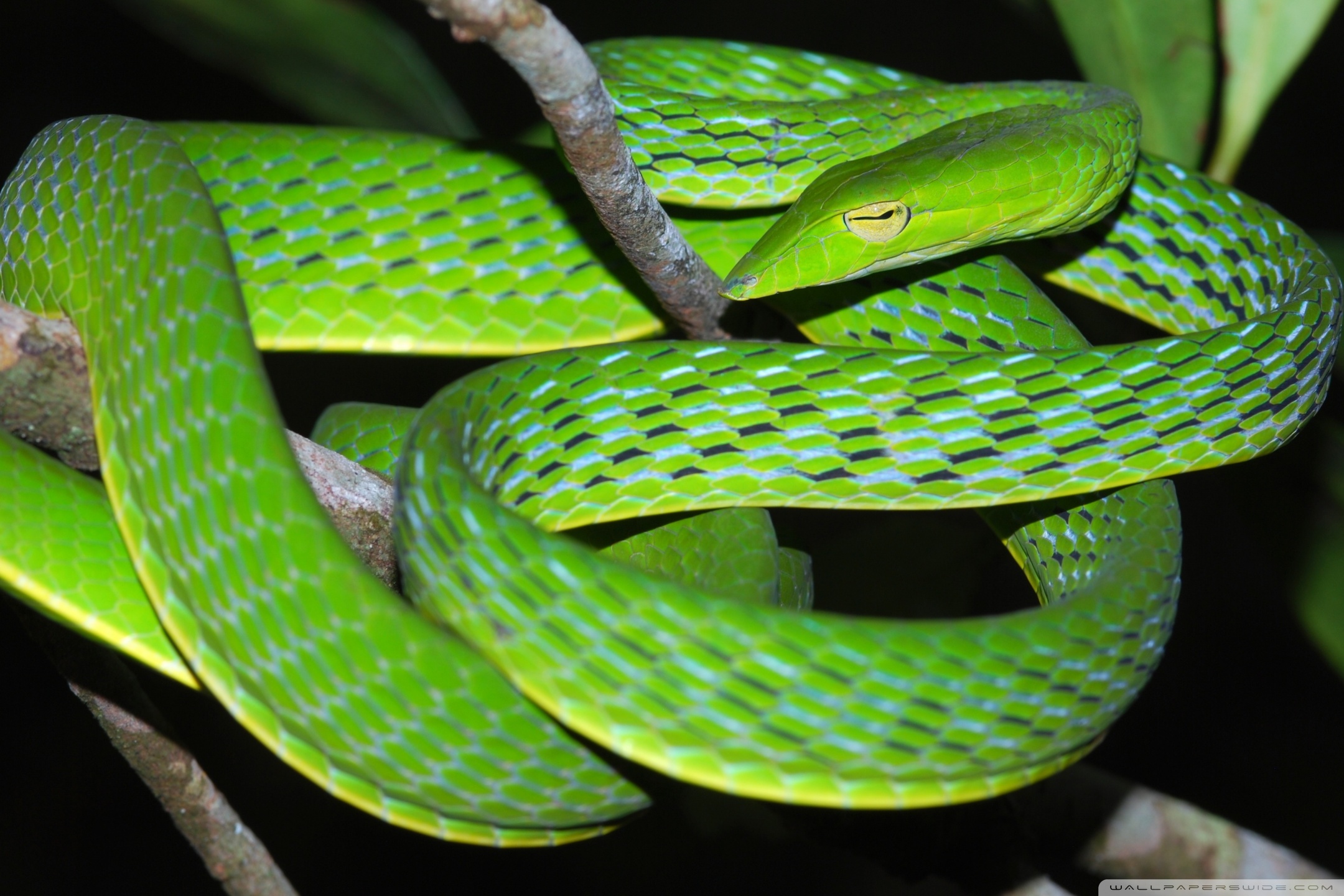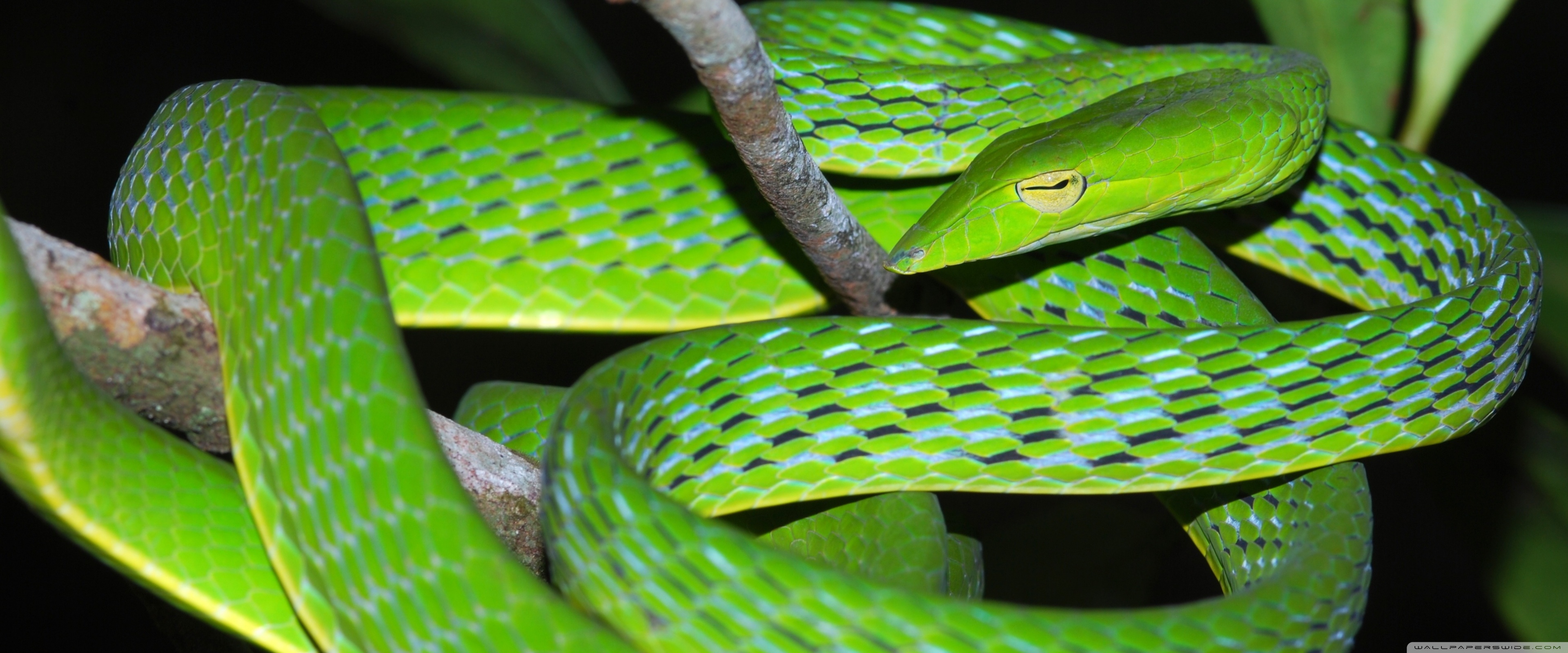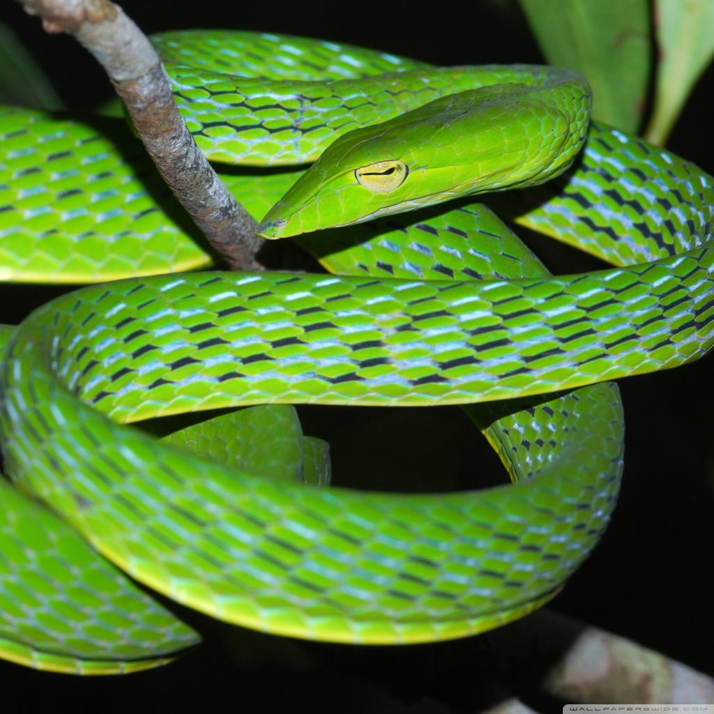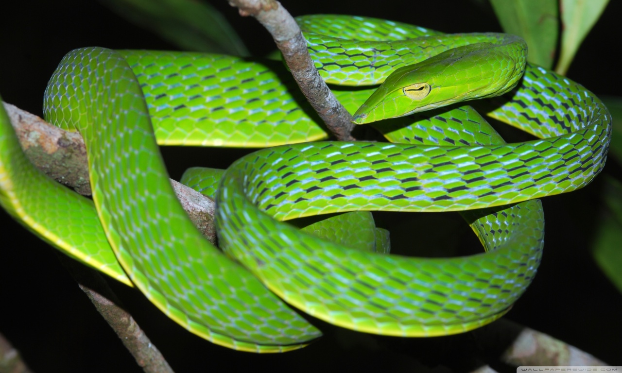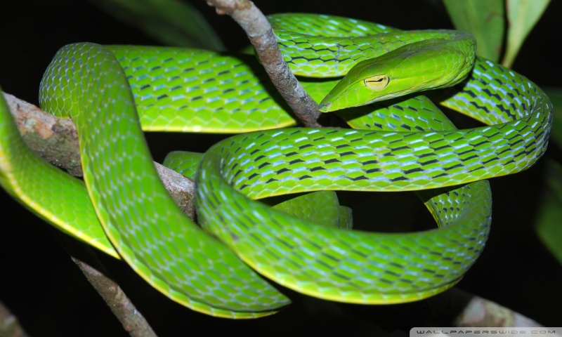Download Oriental Vine Snake Ahaetulla Prasina Among... 4K UHD Wallpaper