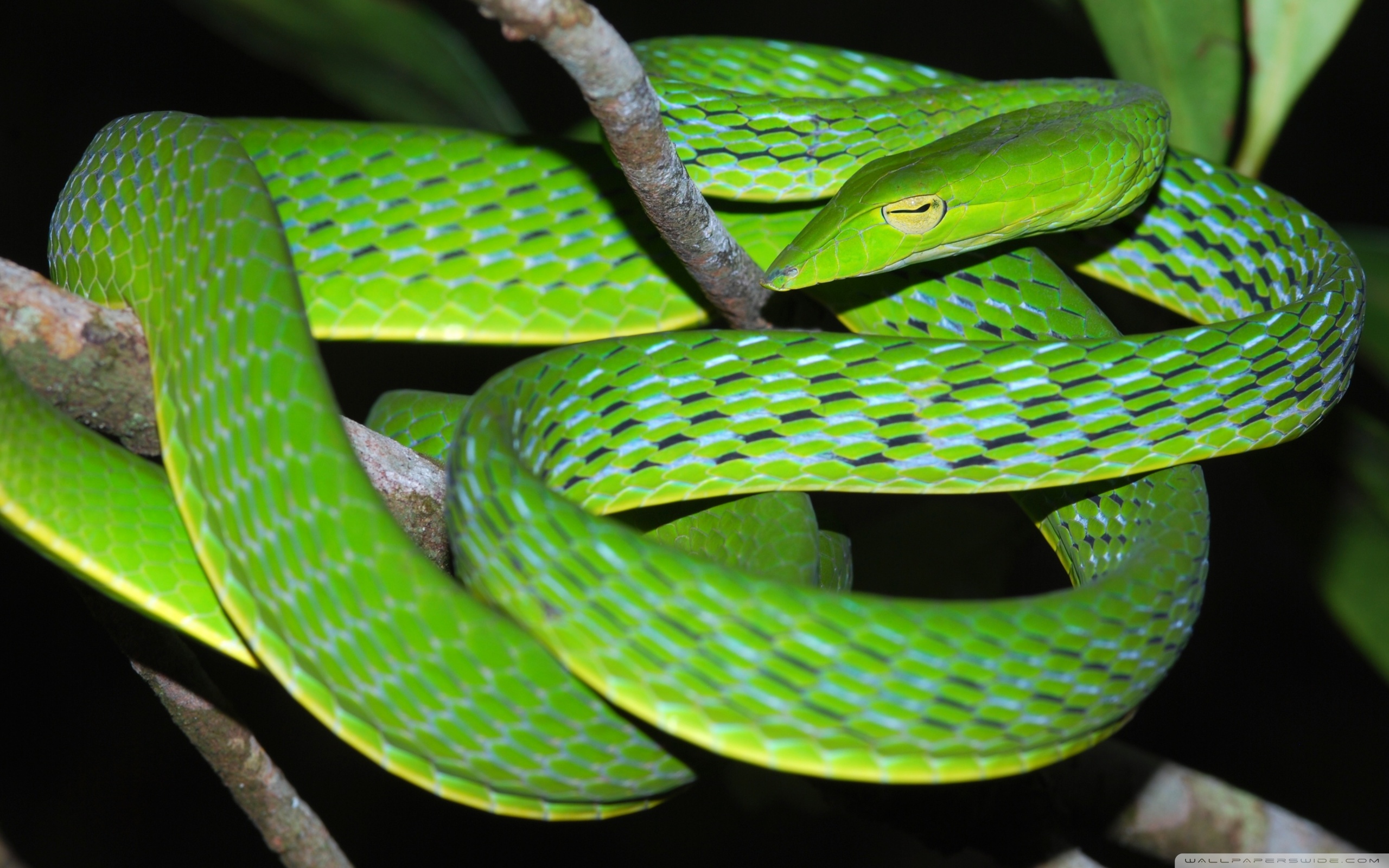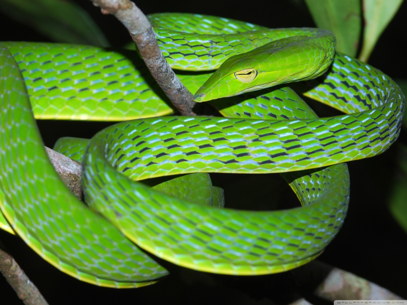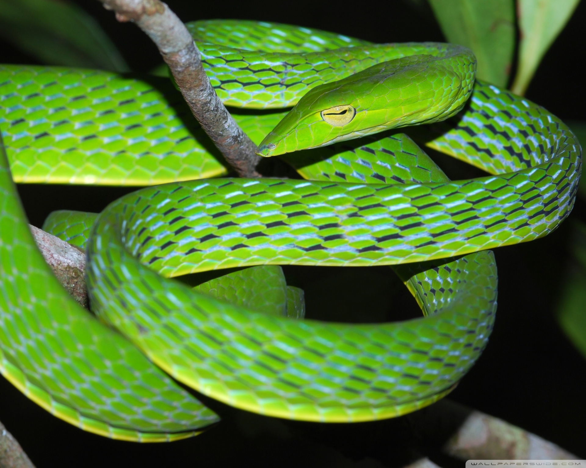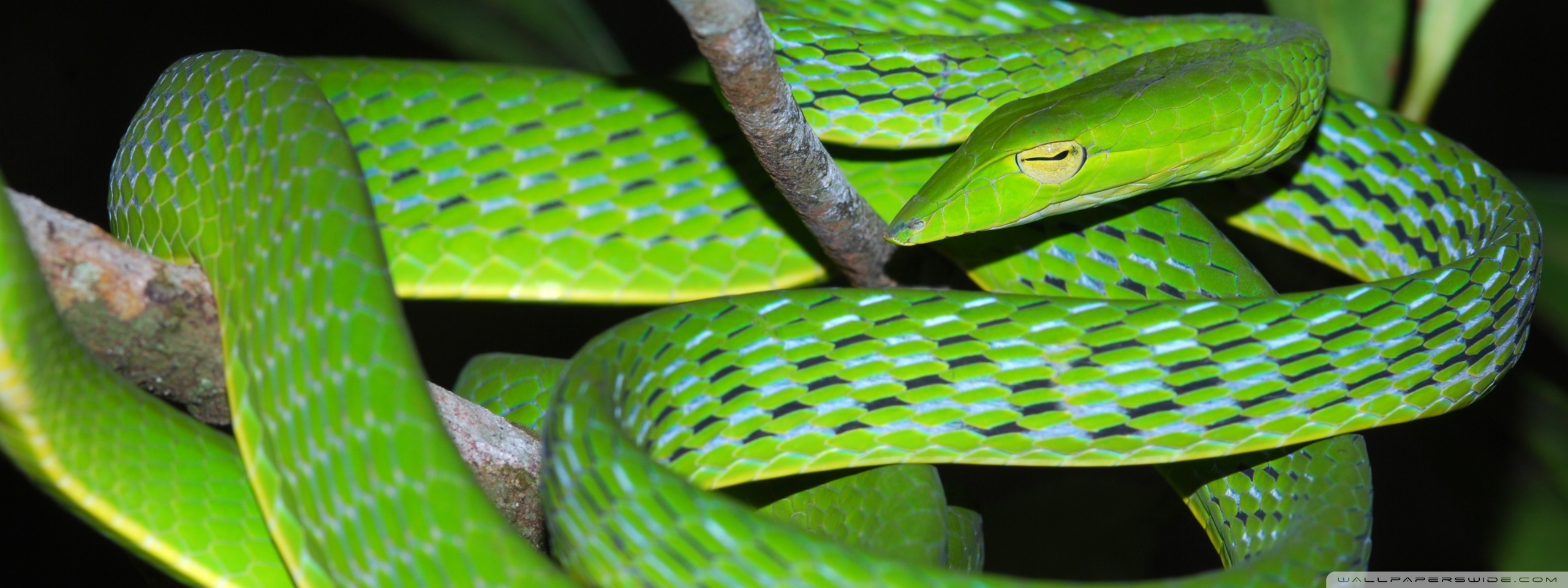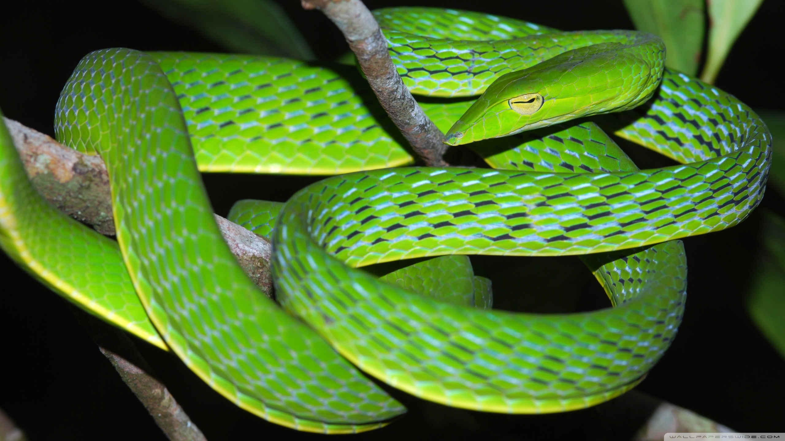 Download Oriental Vine Snake Ahaetulla Prasina Among... 4K UHD Wallpaper