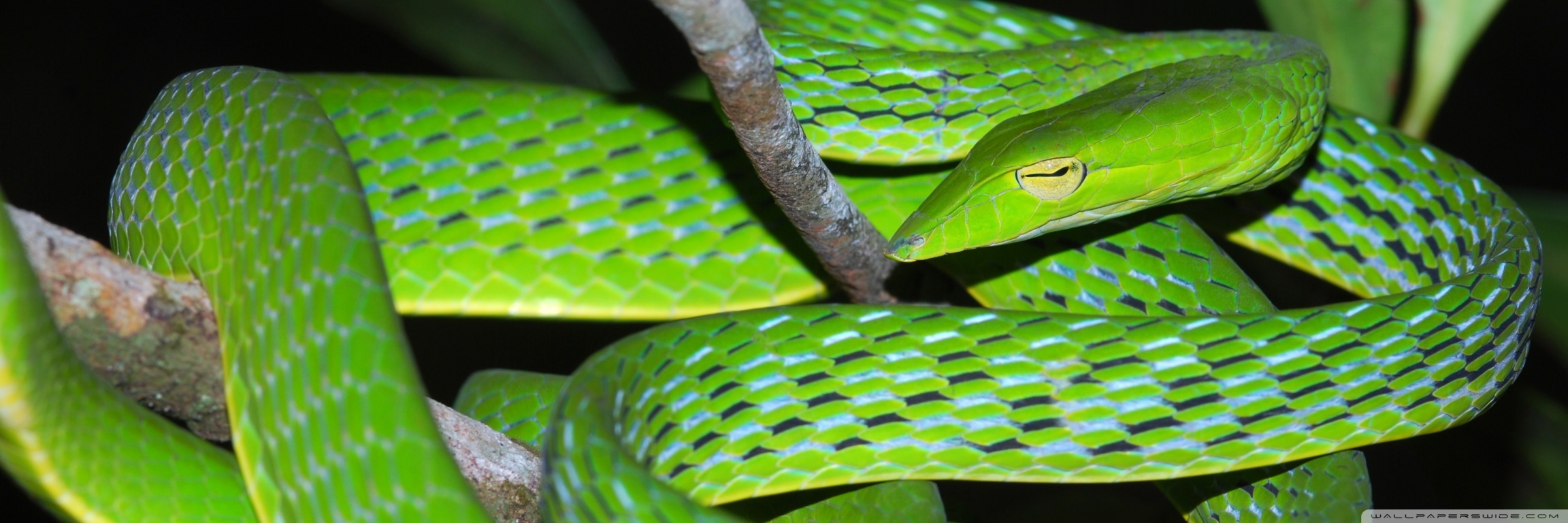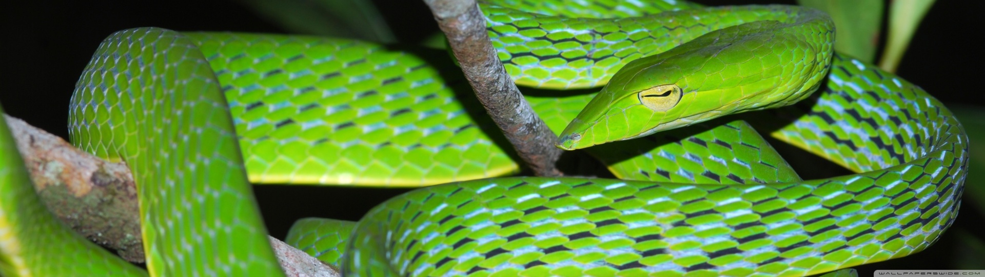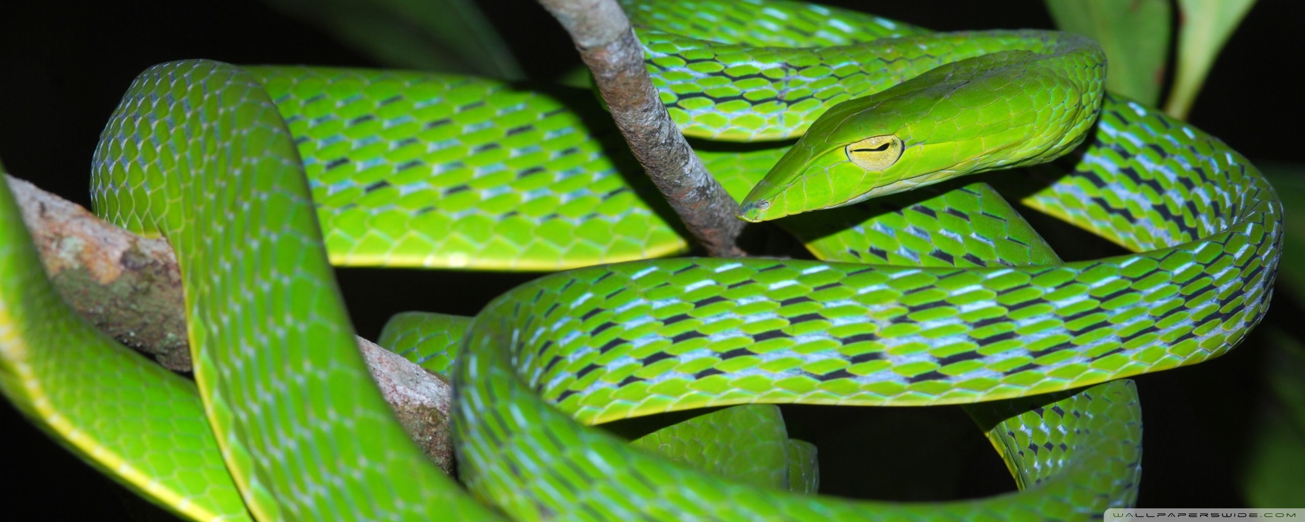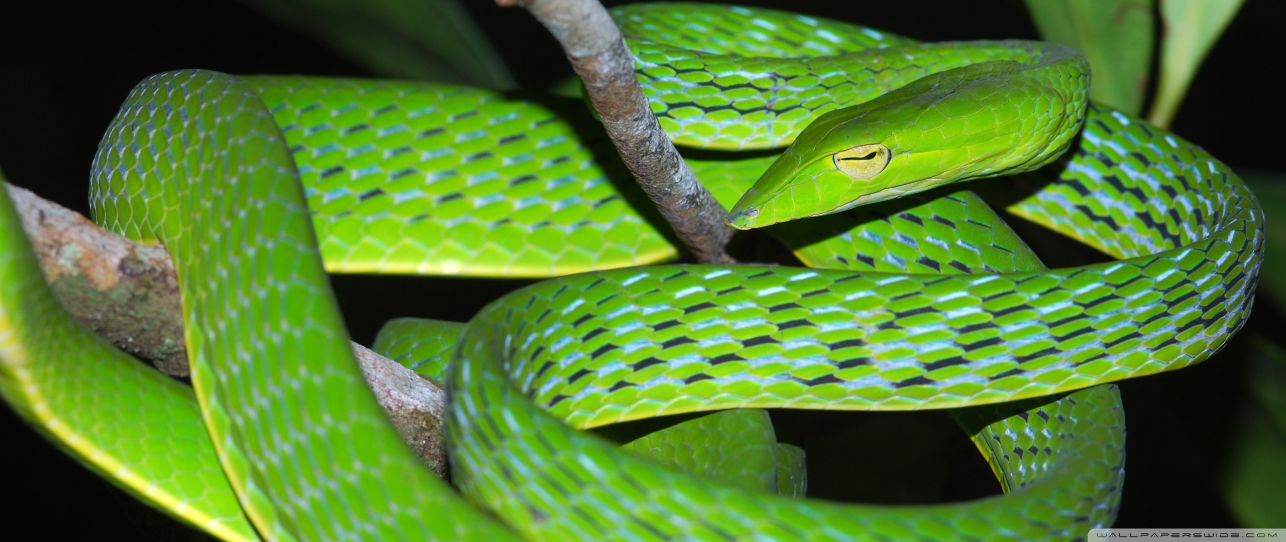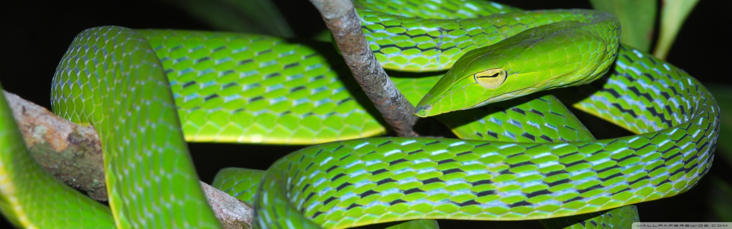 Download Oriental Vine Snake Ahaetulla Prasina Among... 4K UHD Wallpaper