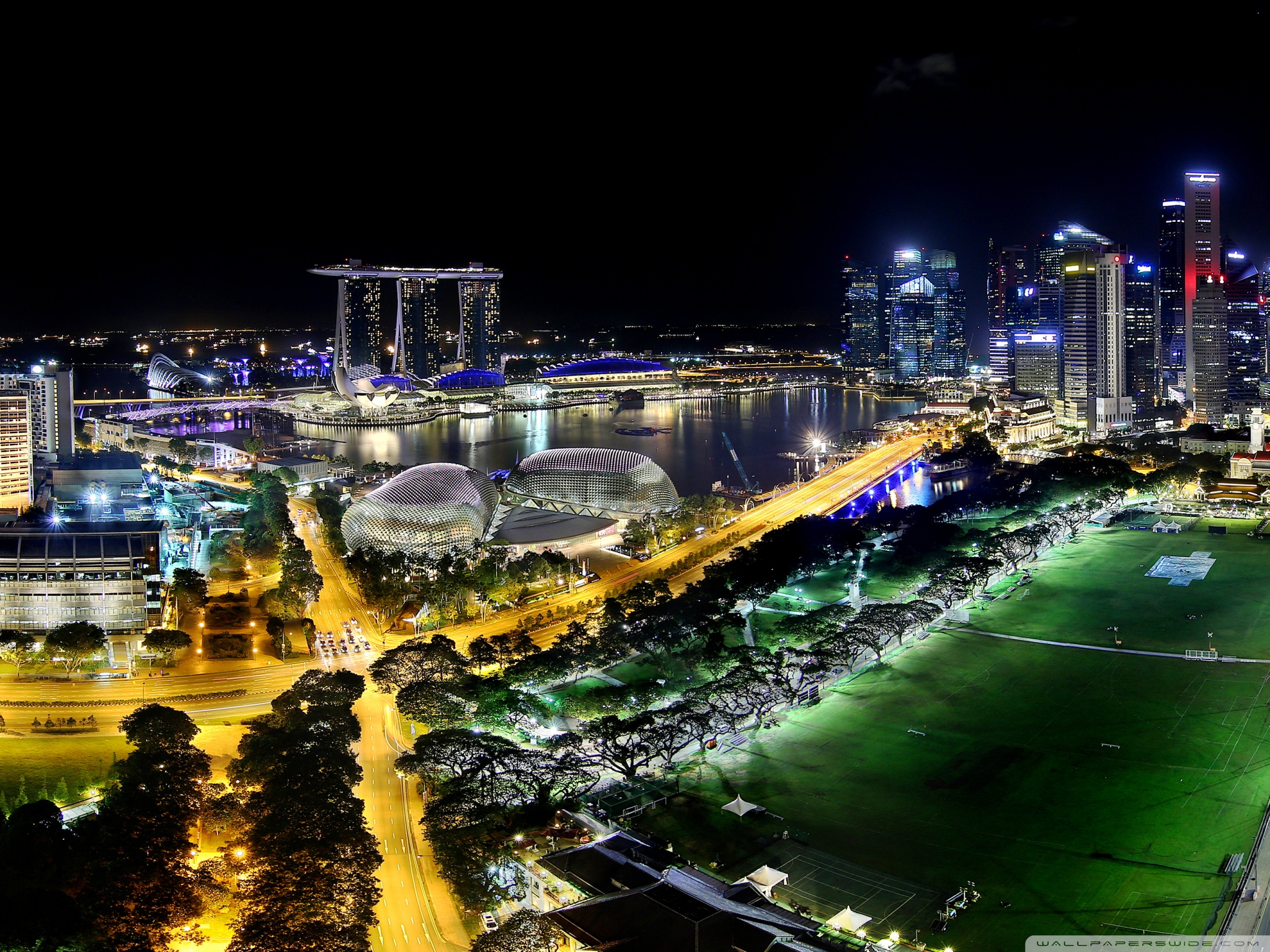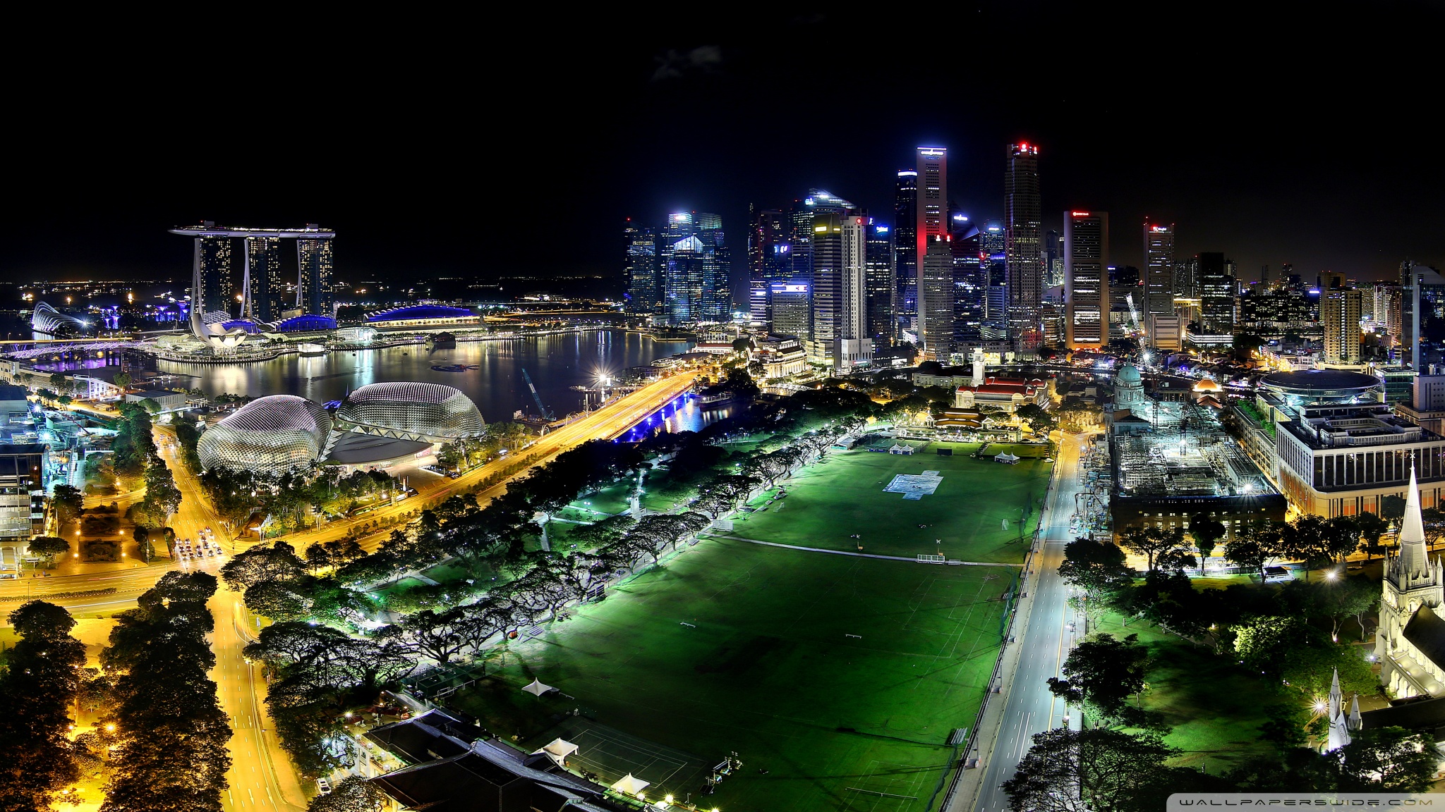Download Overlooking Marina Bay at Night 4K UHD Wallpaper