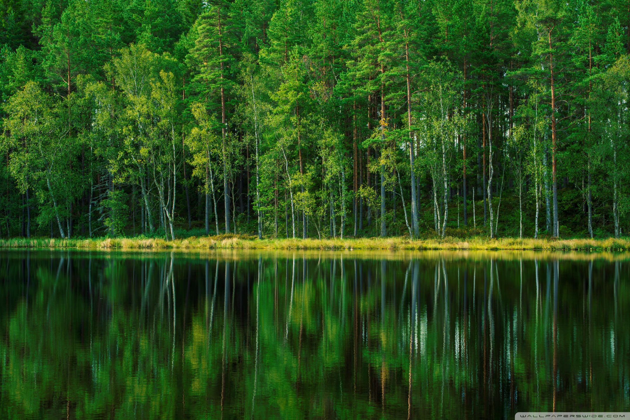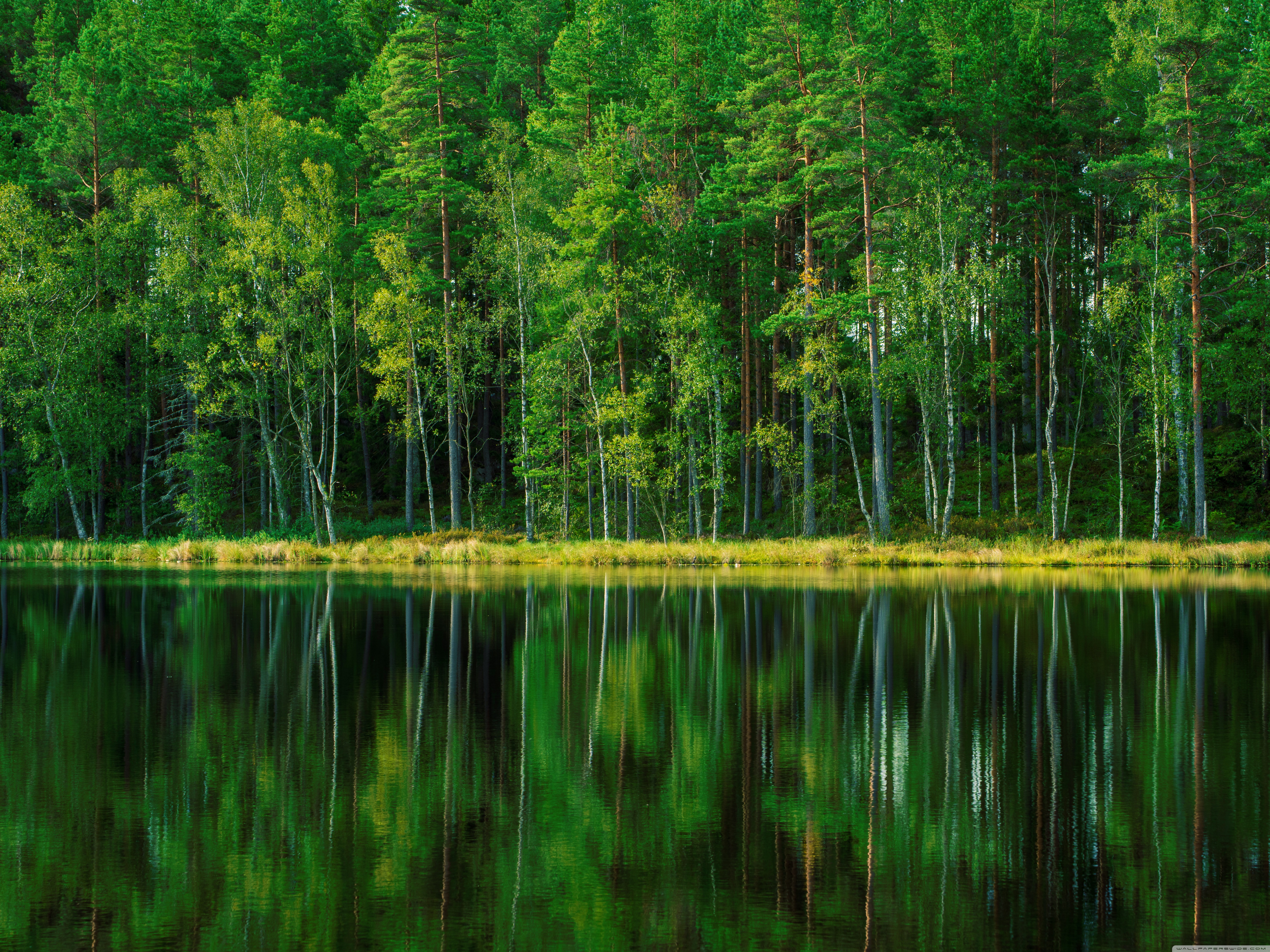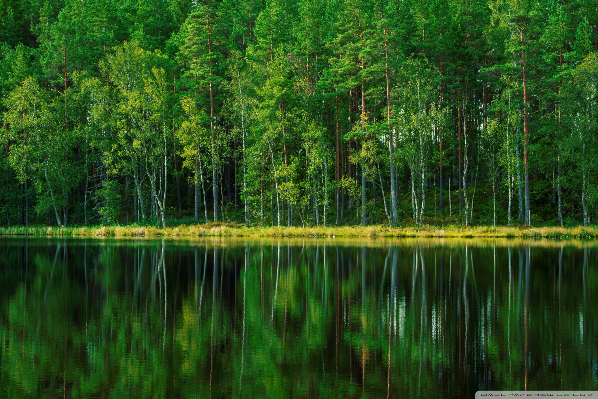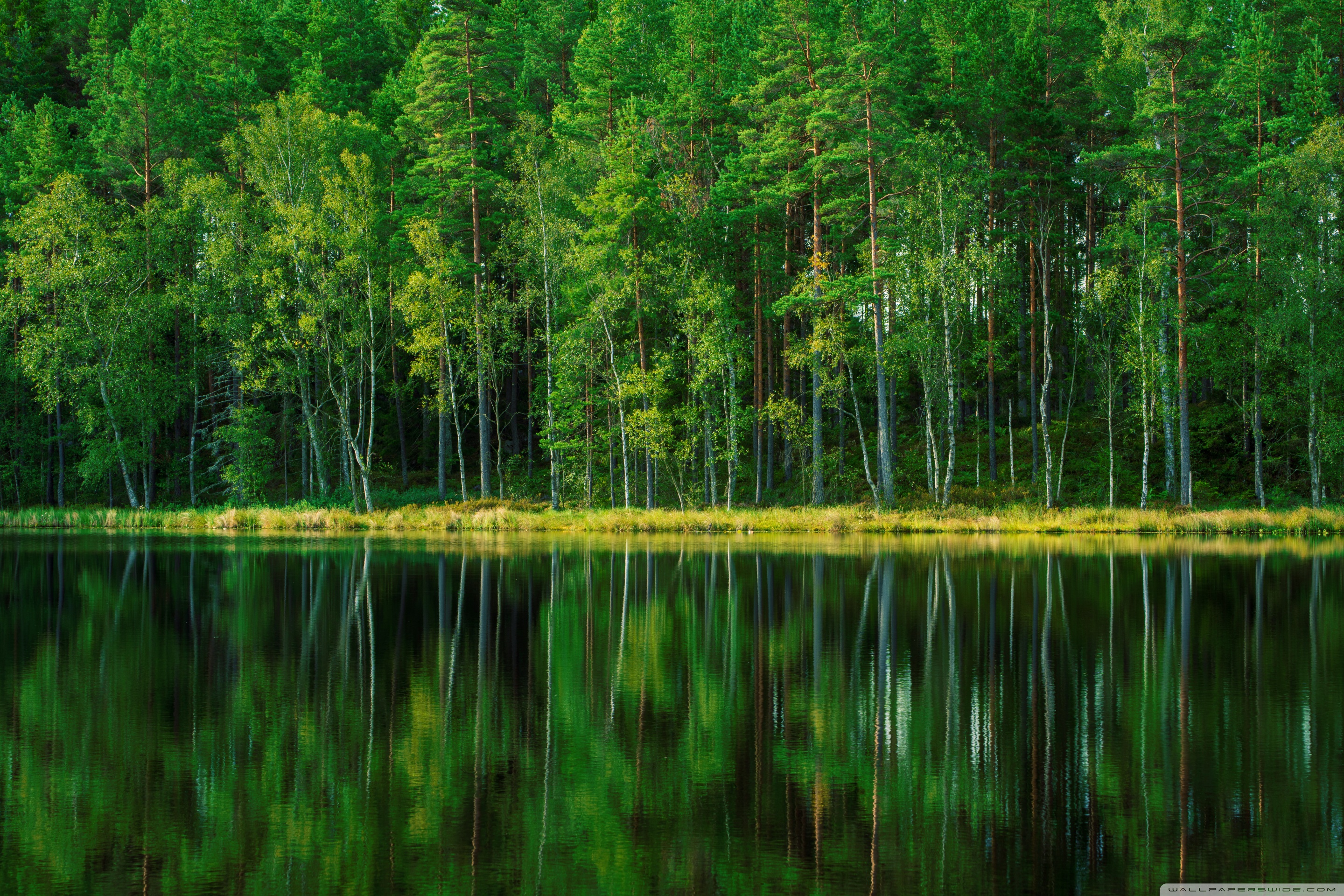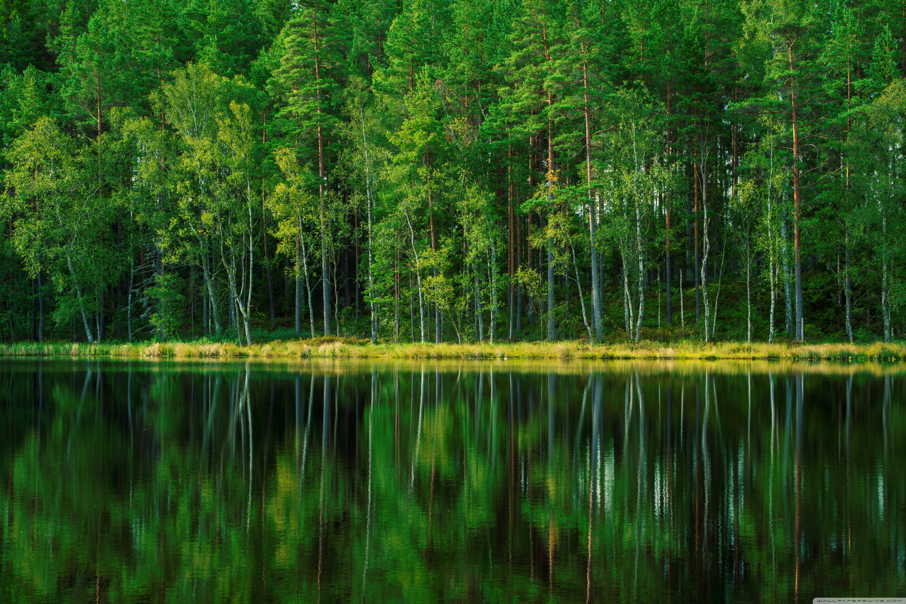 Download Pine and Birch Forest, Lake, Sweden 4K UHD Wallpaper