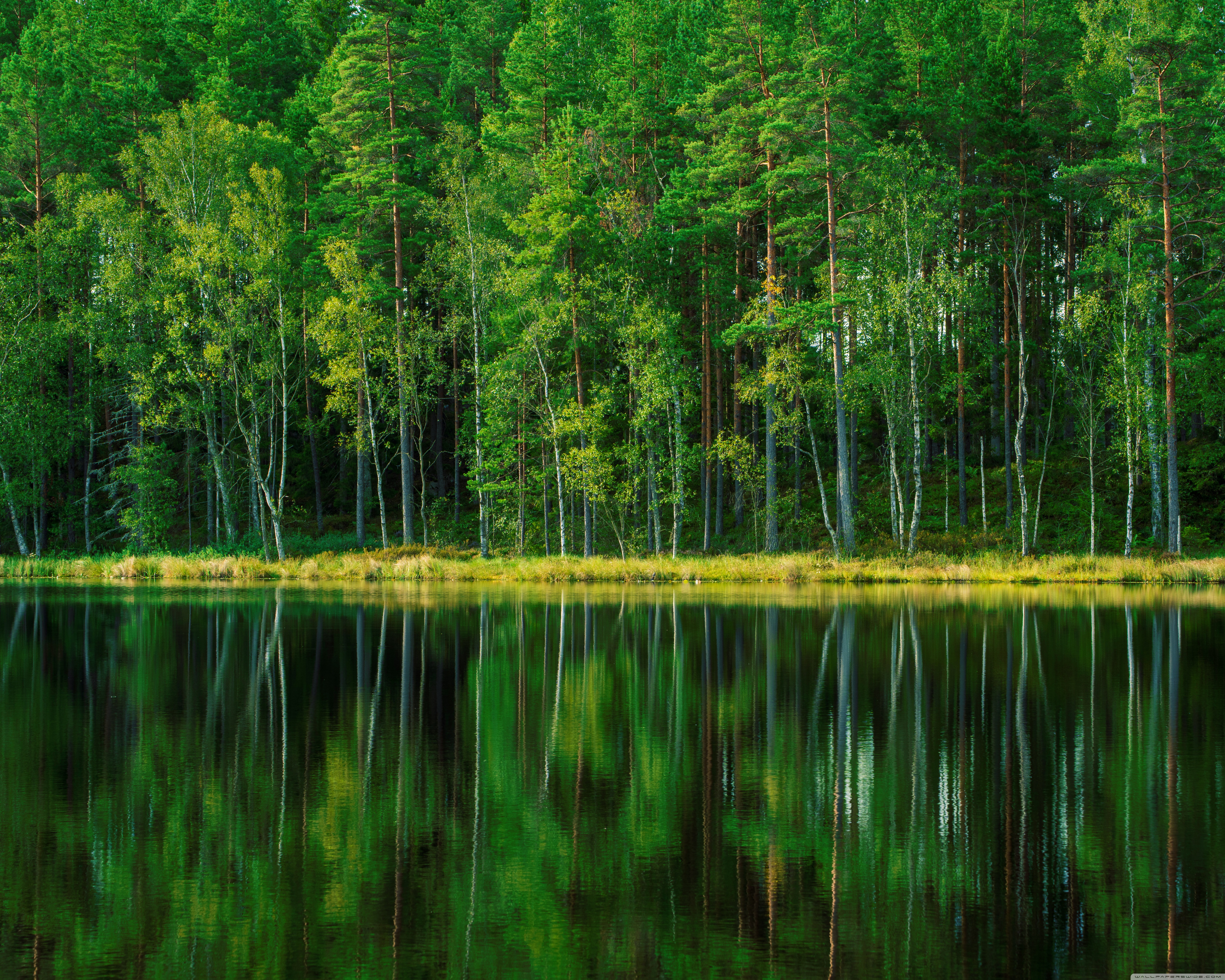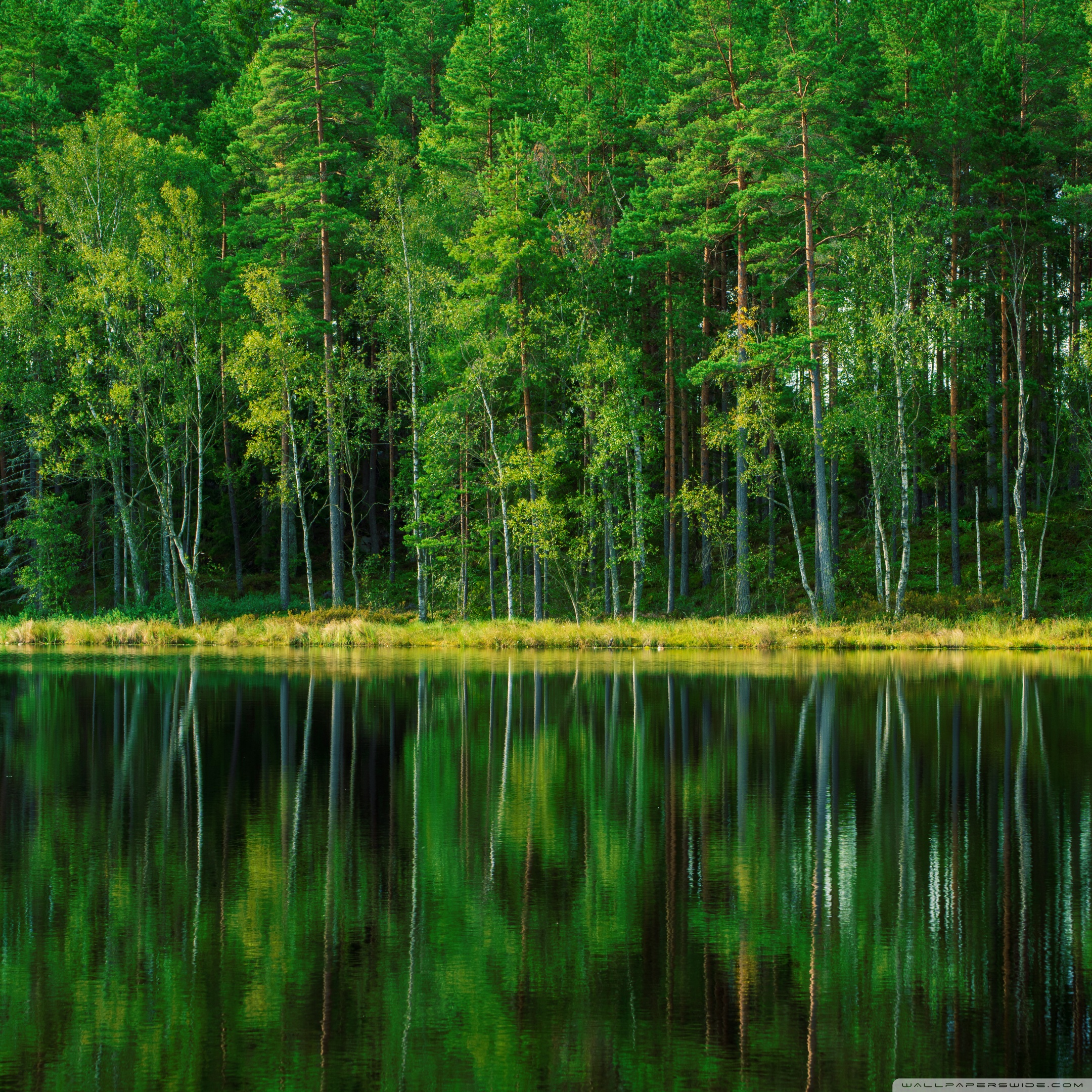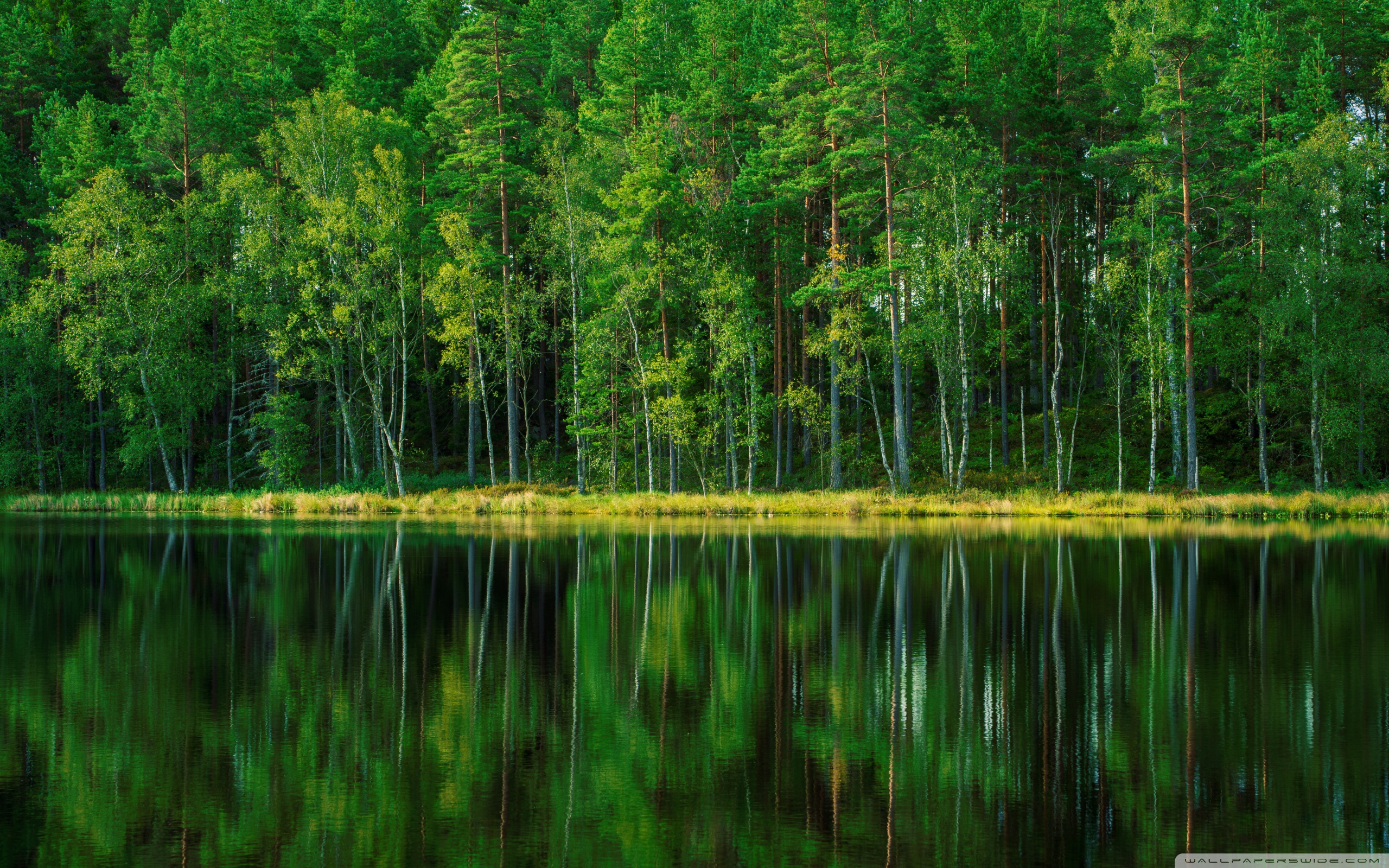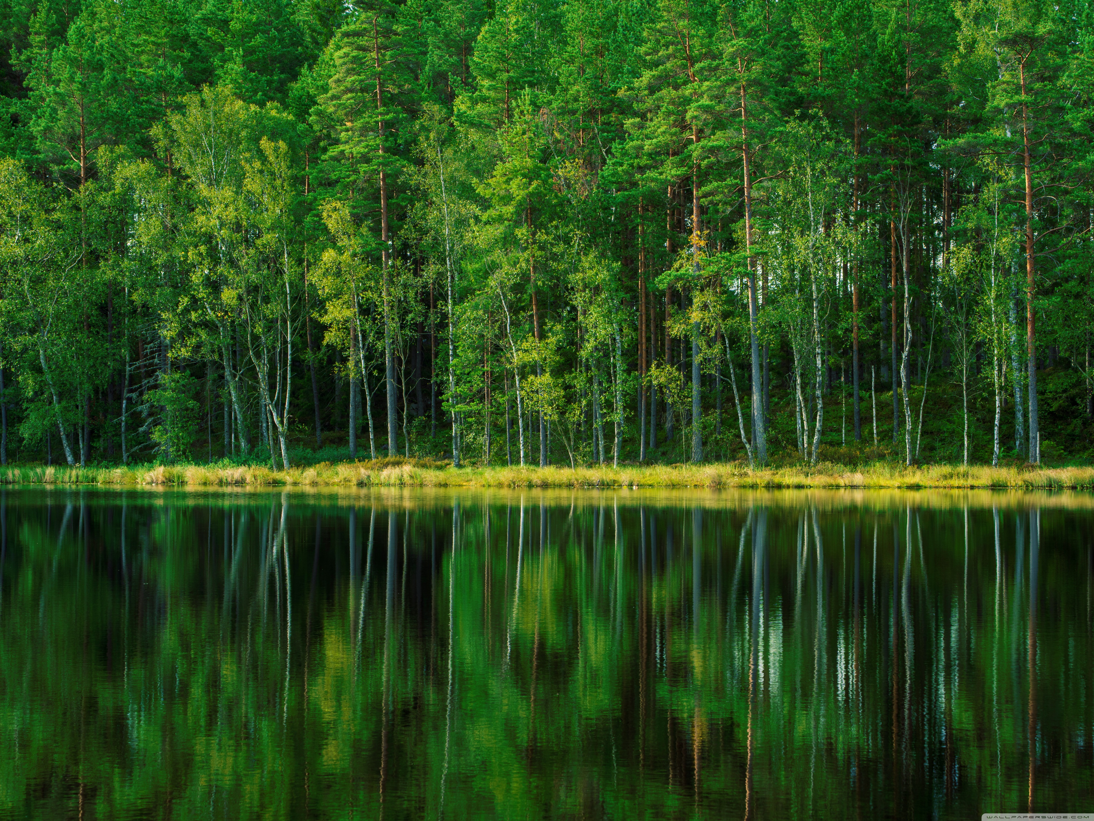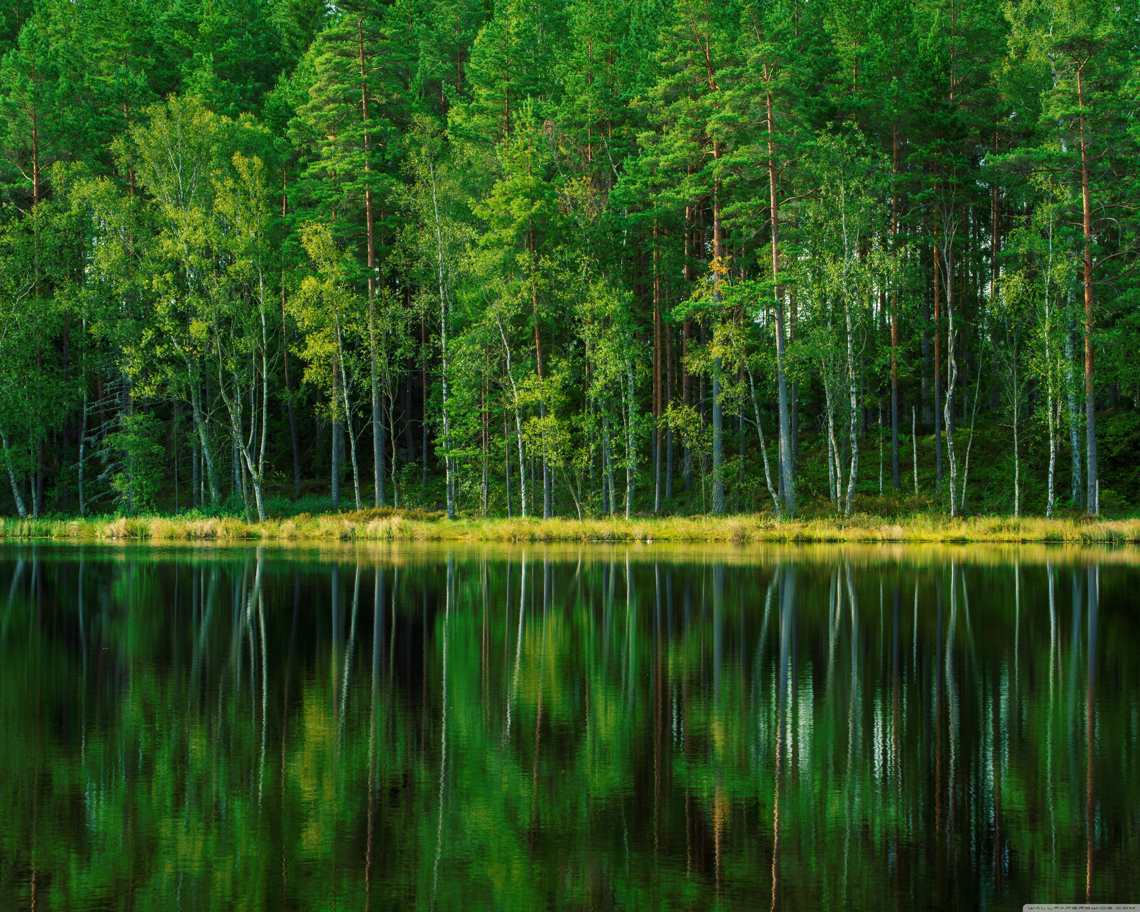 Download Pine and Birch Forest, Lake, Sweden 4K UHD Wallpaper