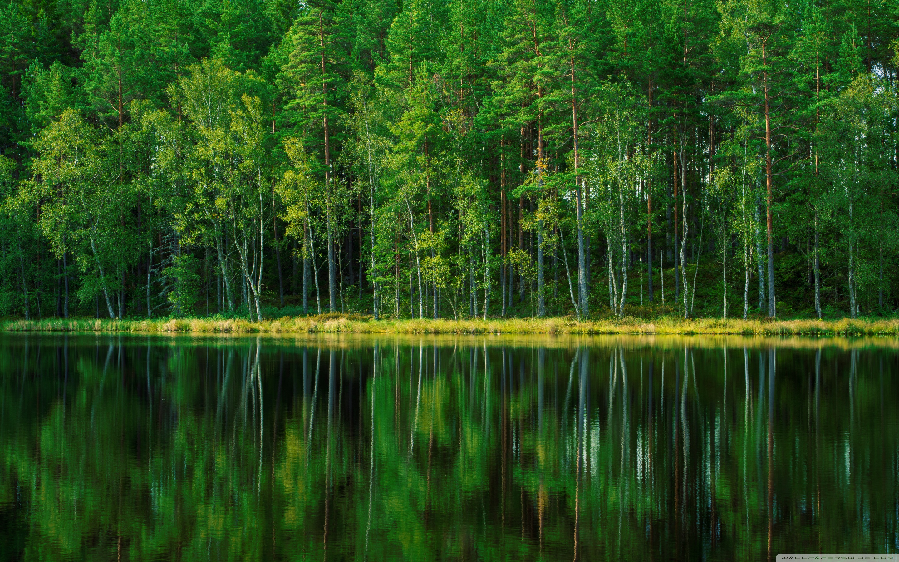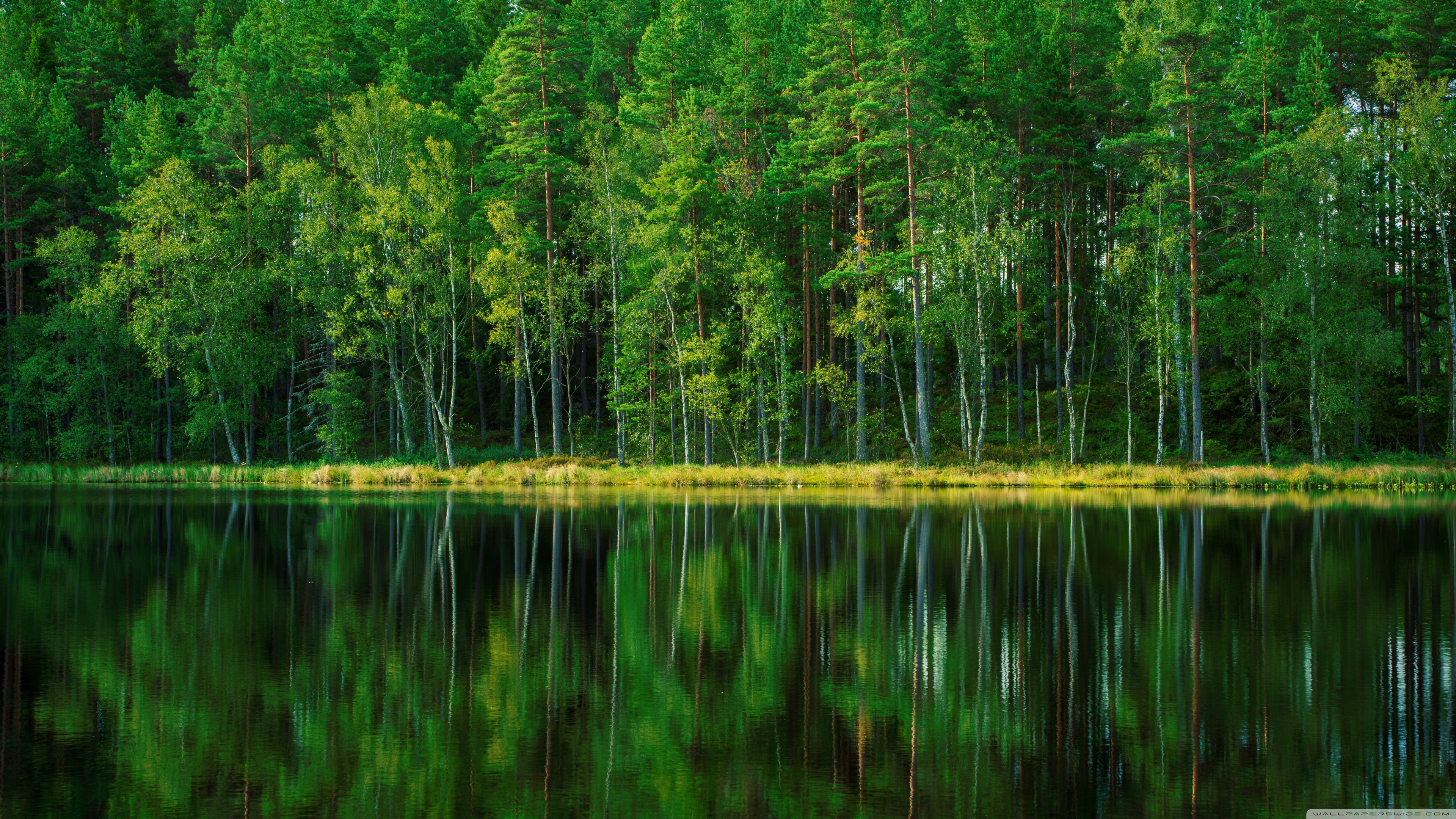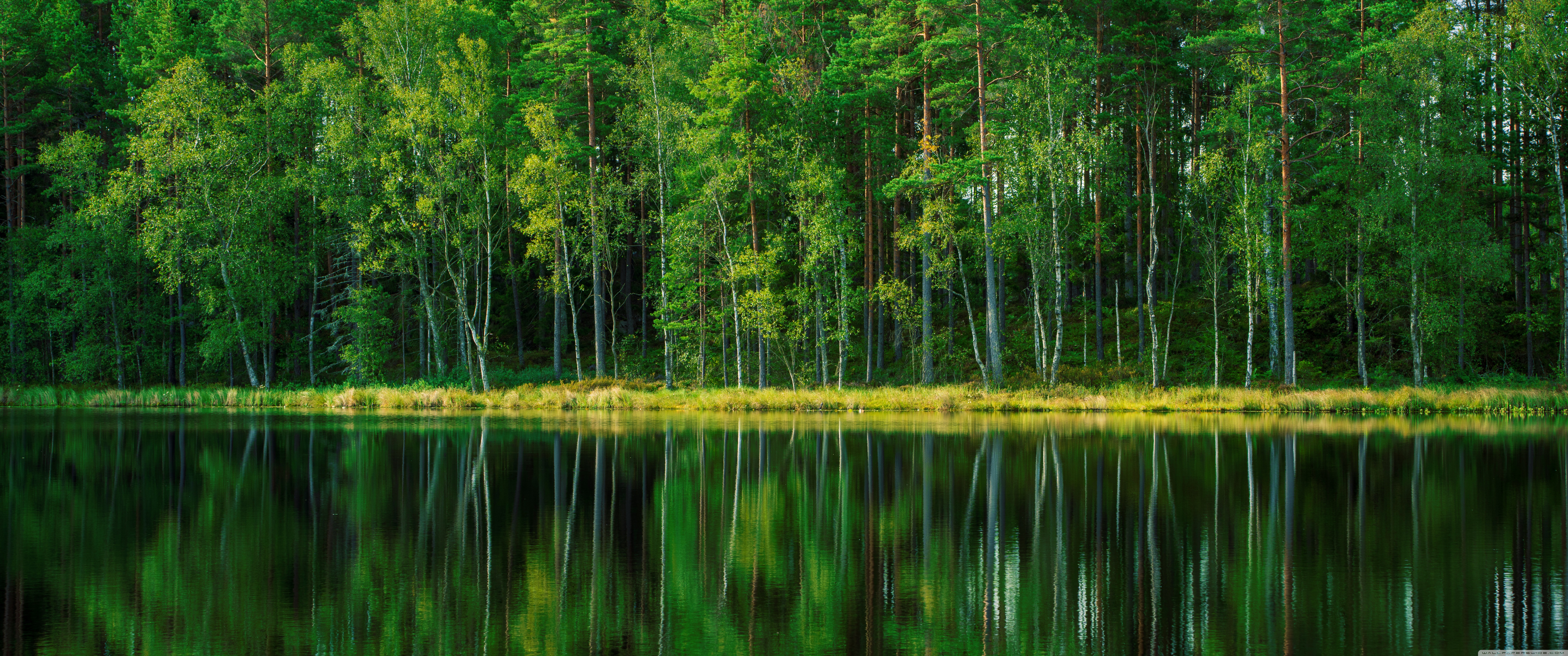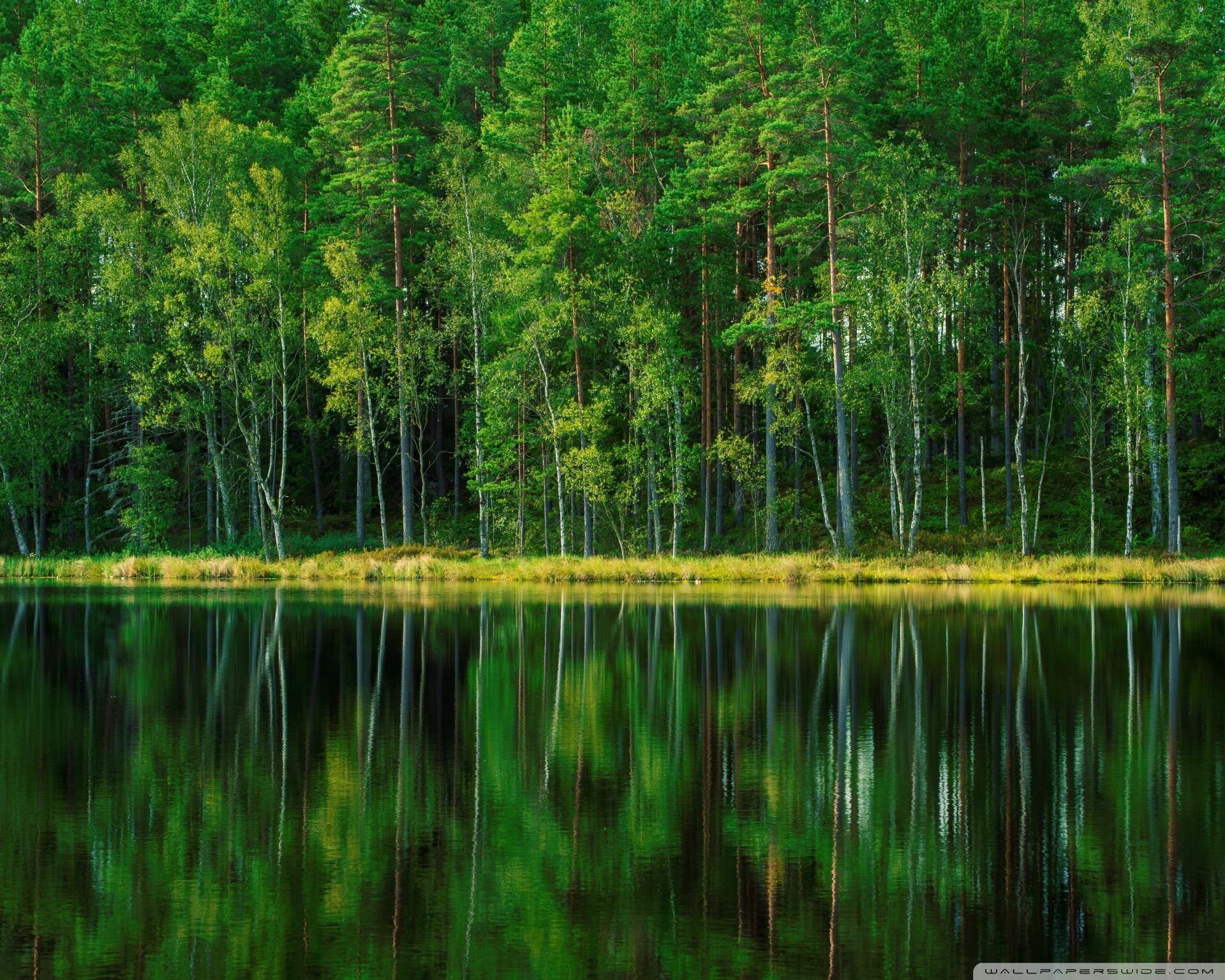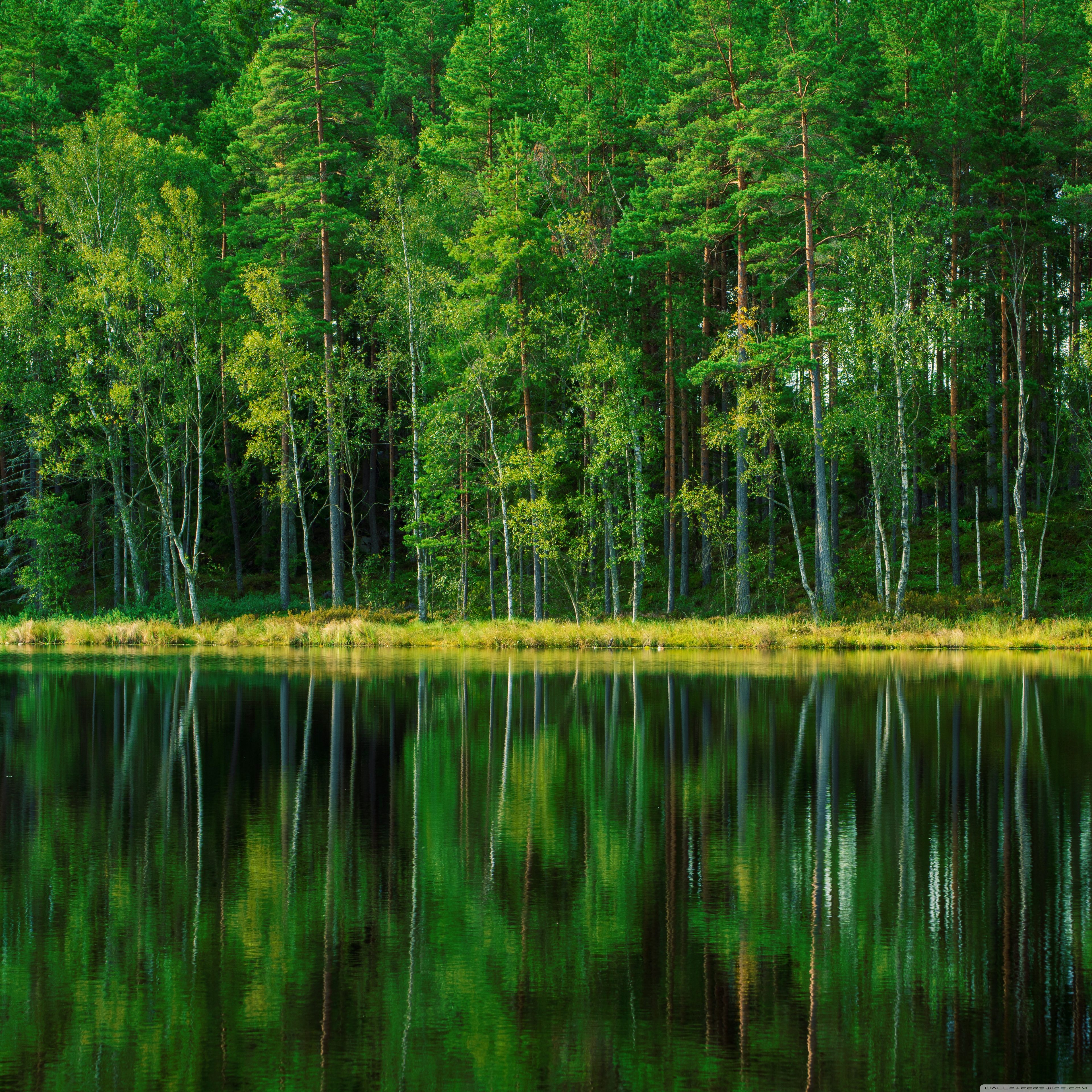 Download Pine and Birch Forest, Lake, Sweden 4K UHD Wallpaper