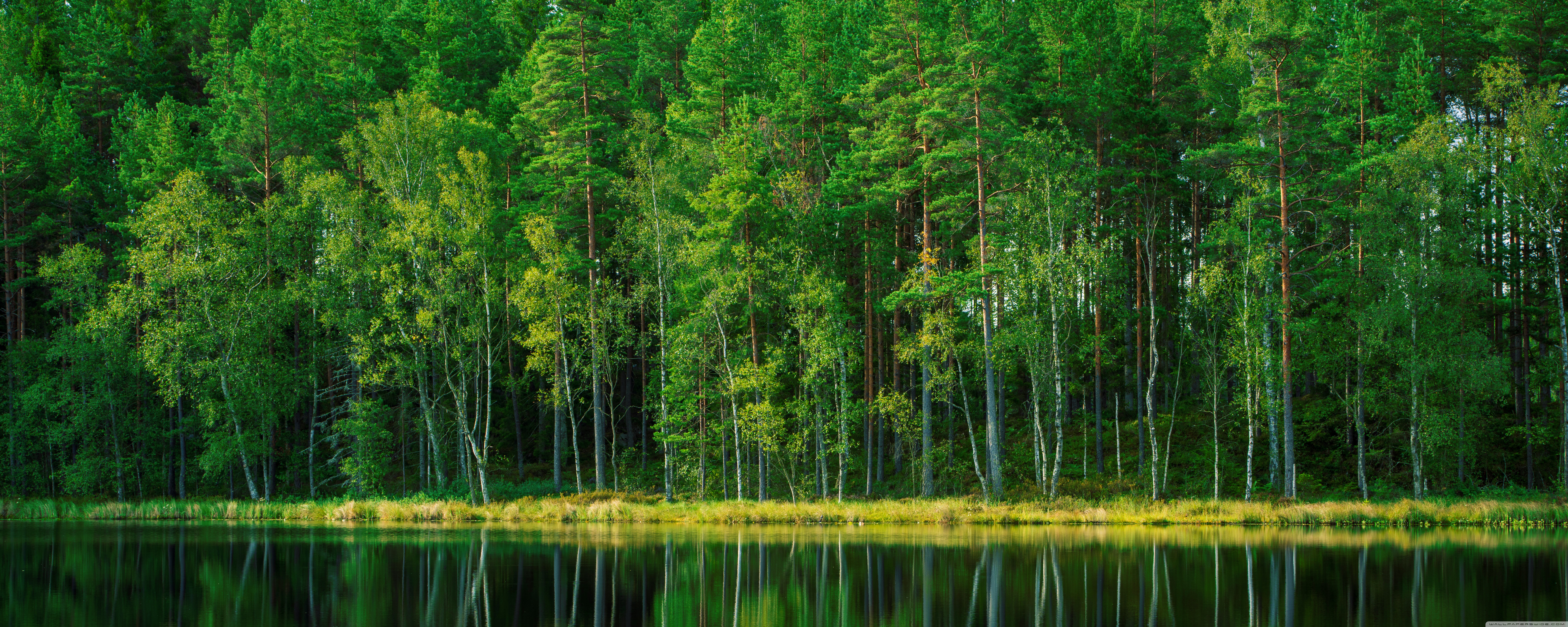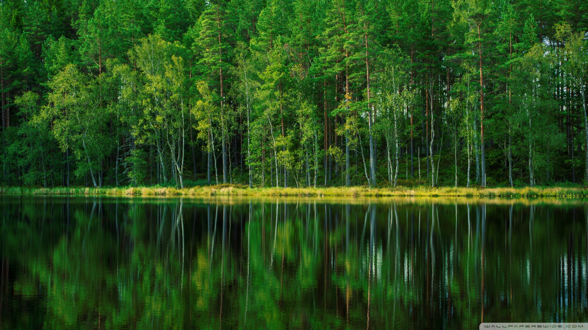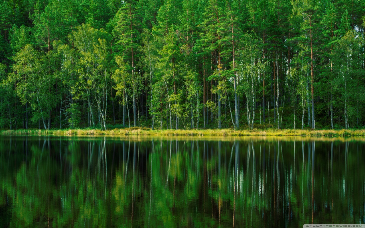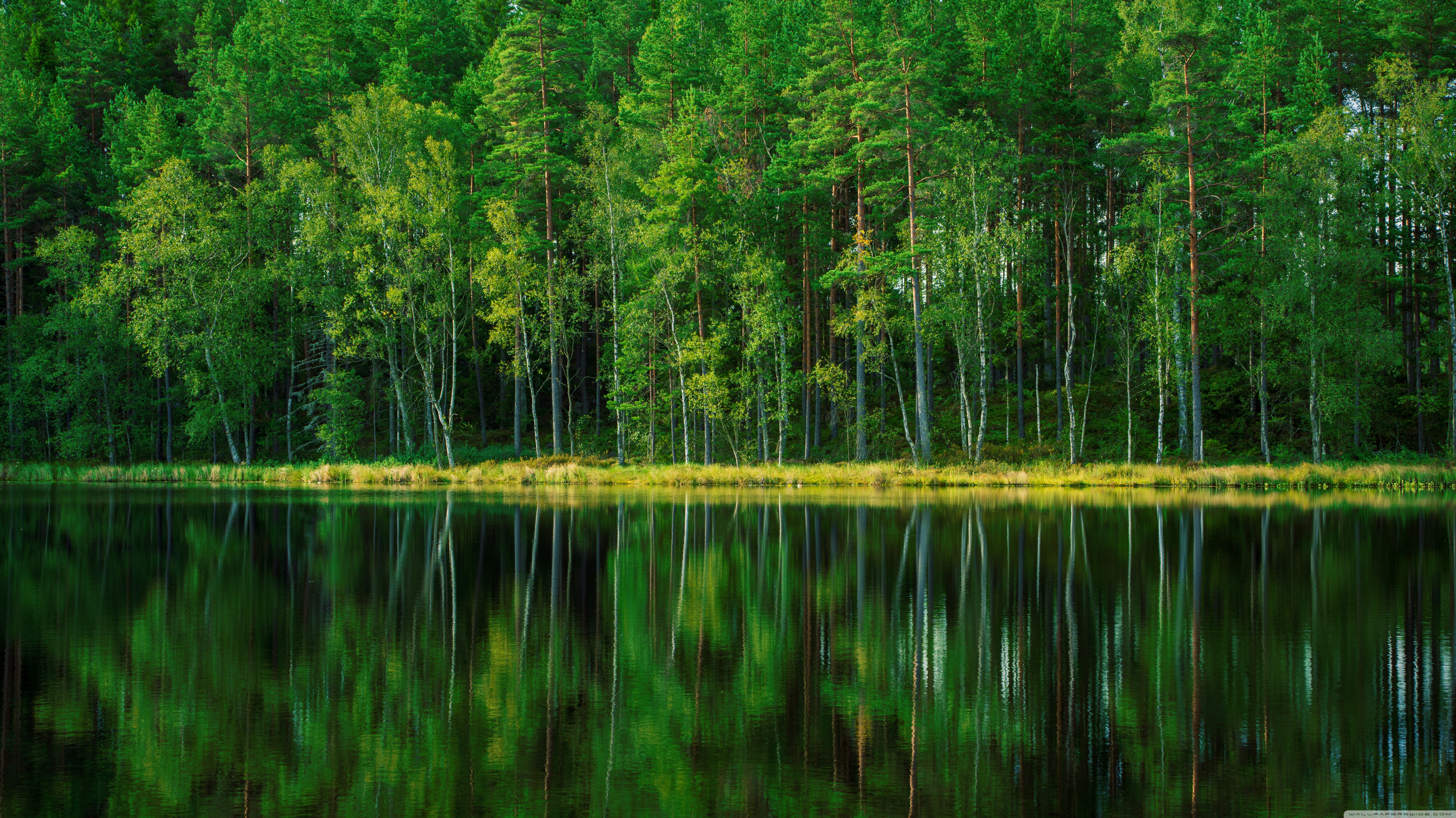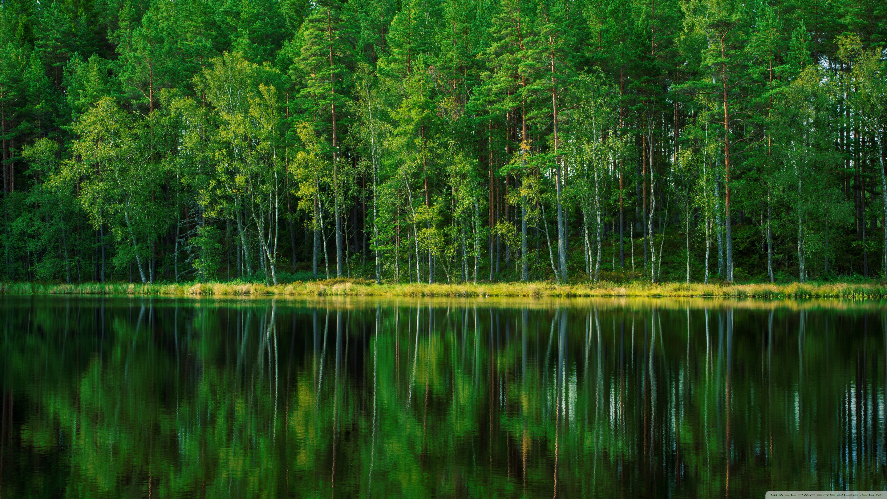 Download Pine and Birch Forest, Lake, Sweden 4K UHD Wallpaper