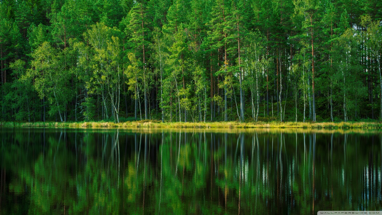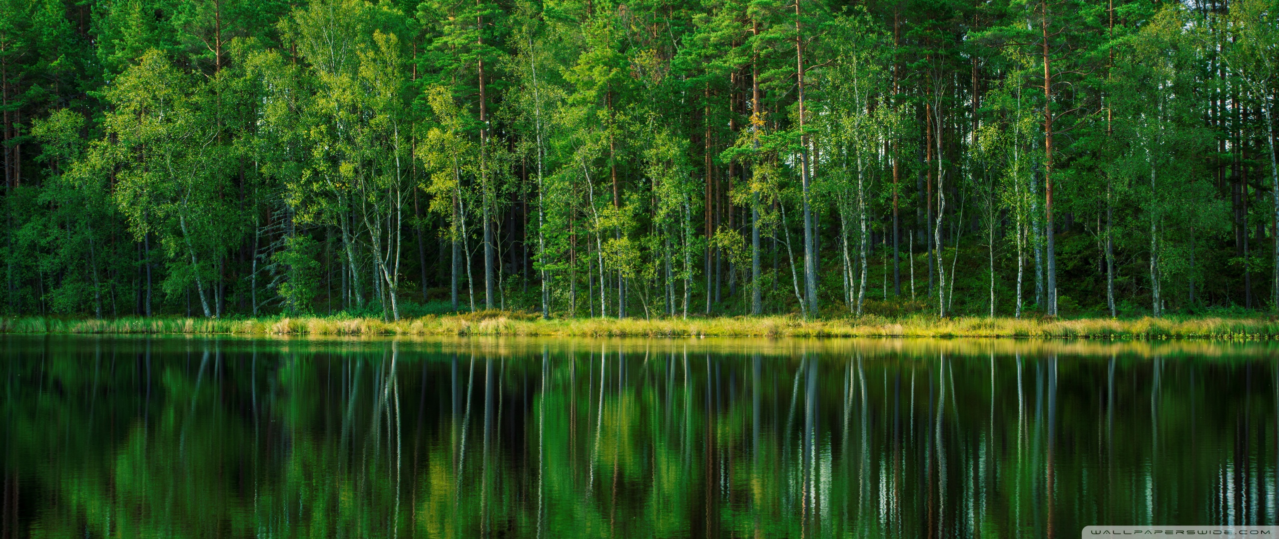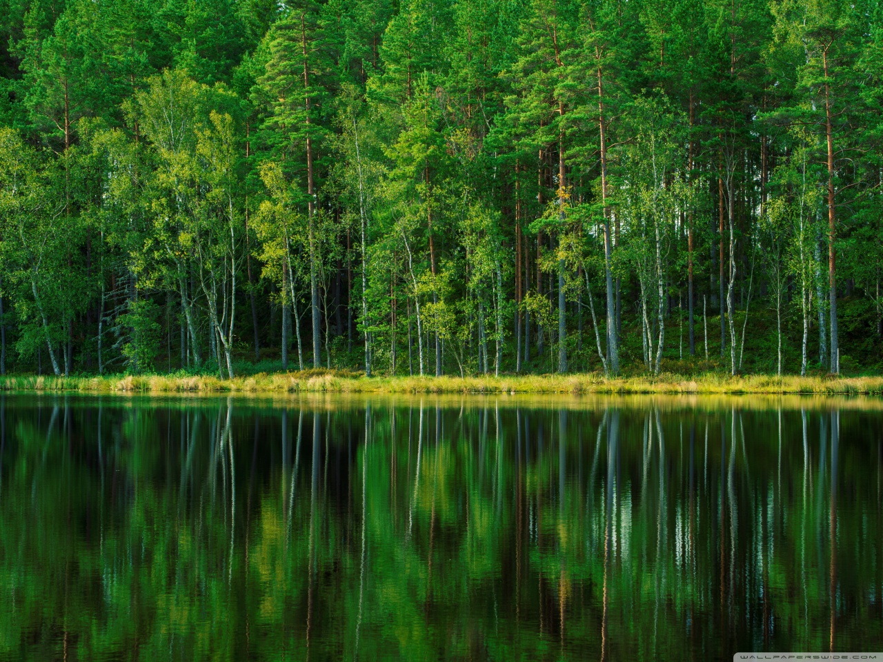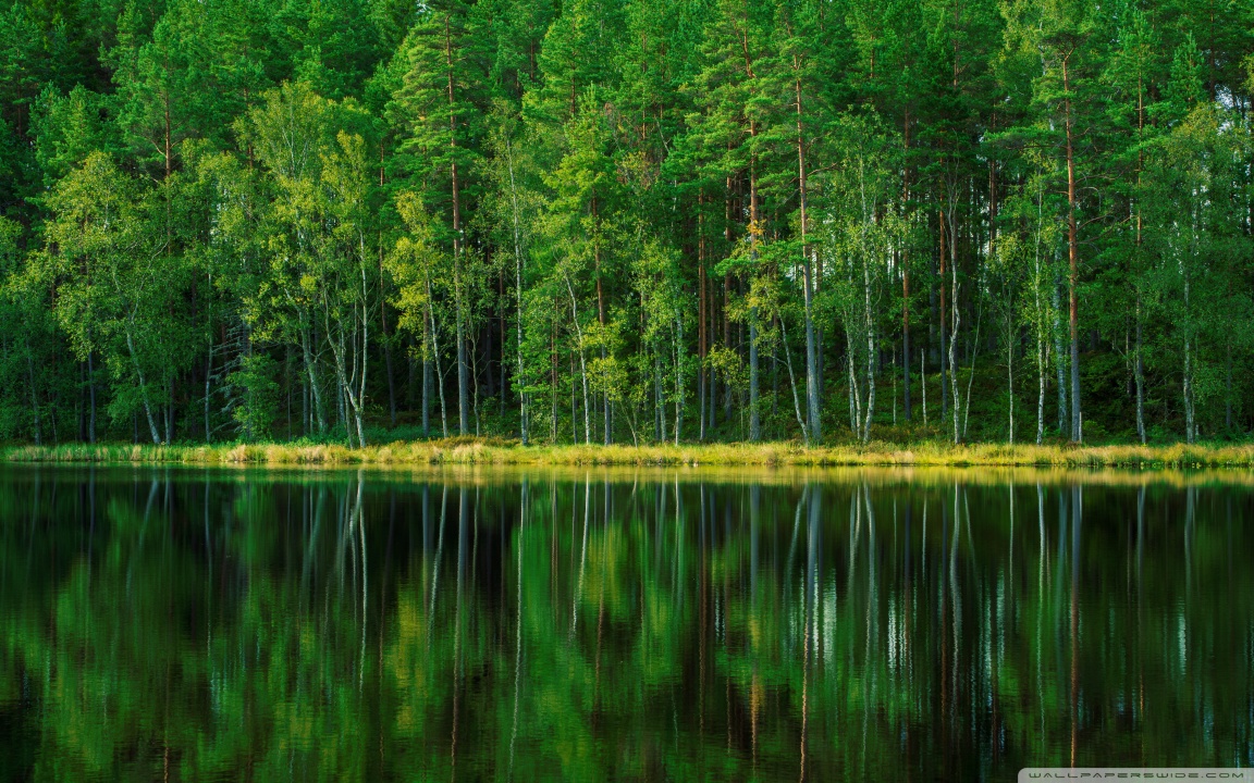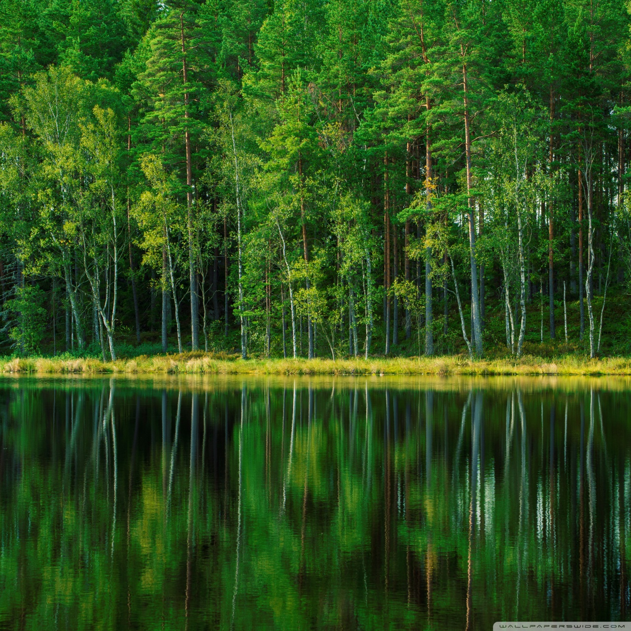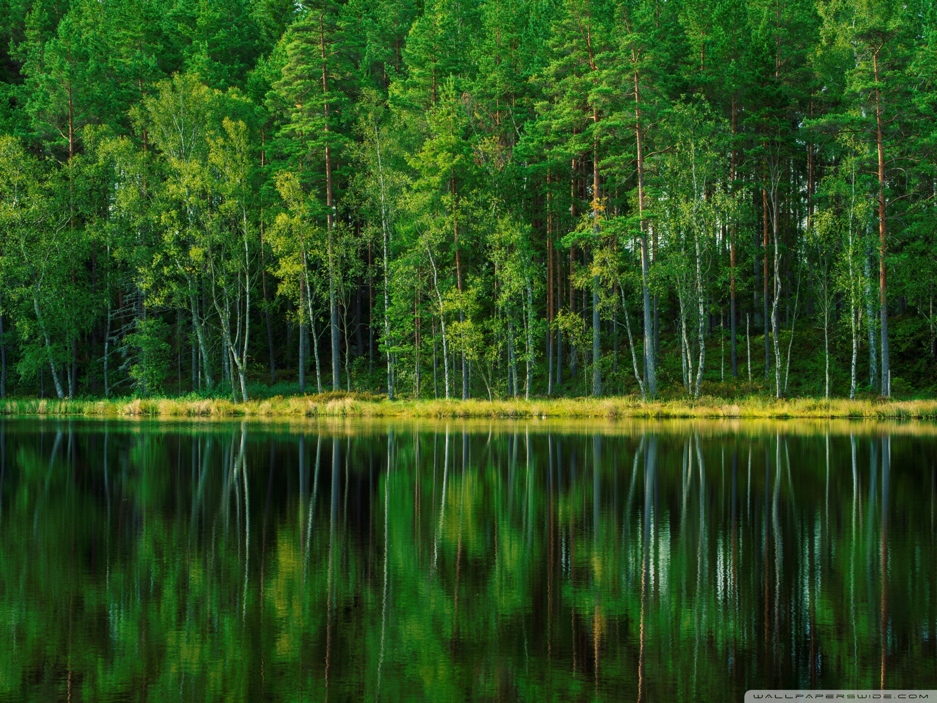 Download Pine and Birch Forest, Lake, Sweden 4K UHD Wallpaper